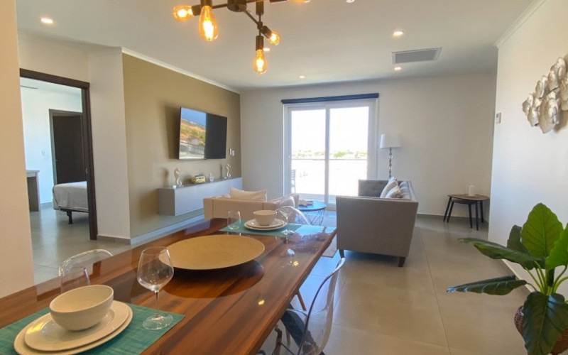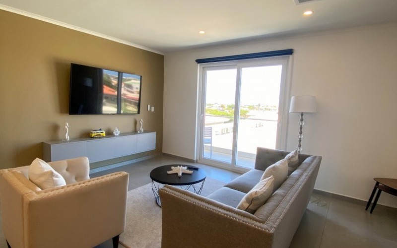 For Rent | 3 Bedroom Apartment | Longterm (min 6 months) | Available Per Direct | Solito, Oranjestad This beautiful 3 bedroom apartment is available for Long Term Rent. Centrally located in Solito, Oranjestad, close to shops, beaches and all the hotspots on the island. This beautiful 3-bedroom / 3-bathroom apartment welcomes you in a beautiful open space concept living room and dining area. The apartment comes completely furnished and with a fully equipped and modern kitchen with wooden cabinets and stainless steel appliances. The apartment is located on the third floor which can be reached by the stairs. All the tenants have their own key which gives them acces to the main entrance. There's also private parking for all the rental apartments. The apartment is located in a new and modern project, which has a relaxing area with a stunning pool and outside shower for all the tenants. The apartment is move-in-ready and waiting for you. Give me a call today and let's secure your new home! If you want to know more, call the listing Agent Lars Niemeijer at (+297) 742-0129 or send an email to