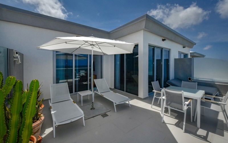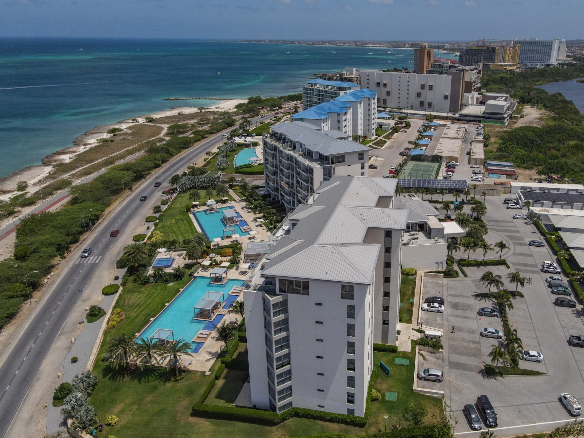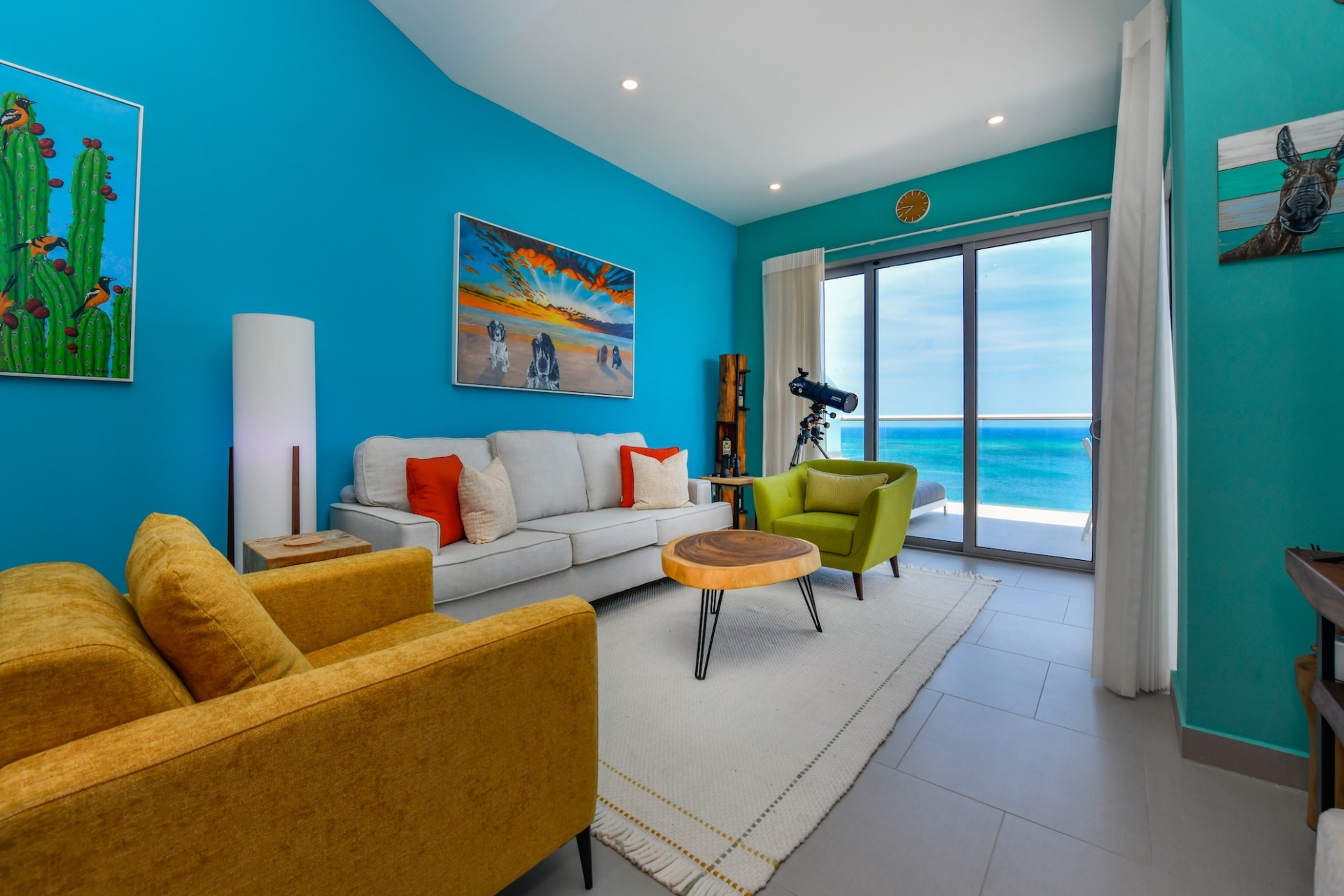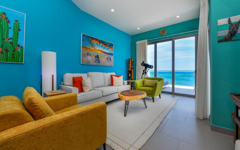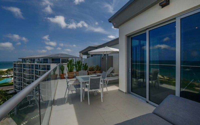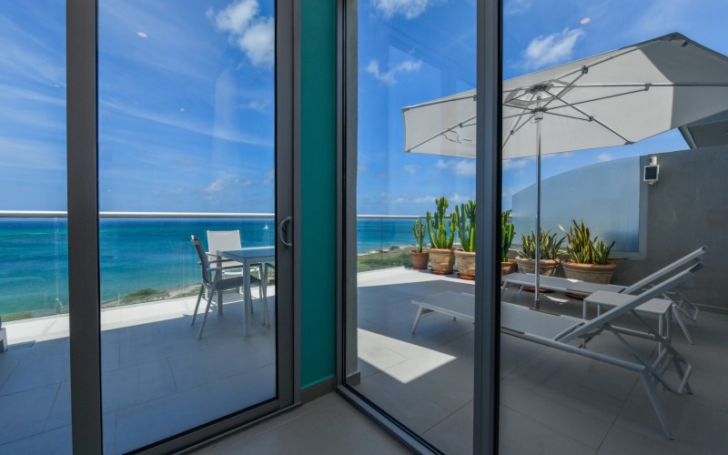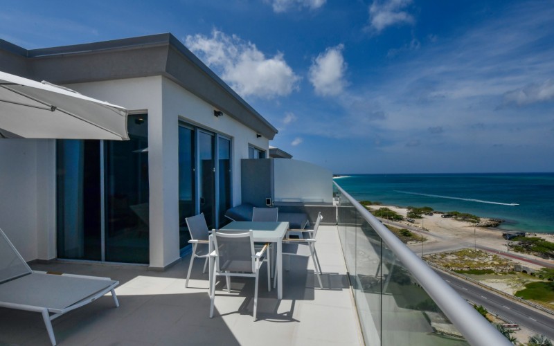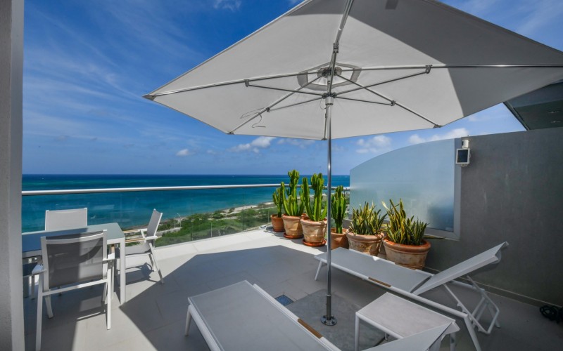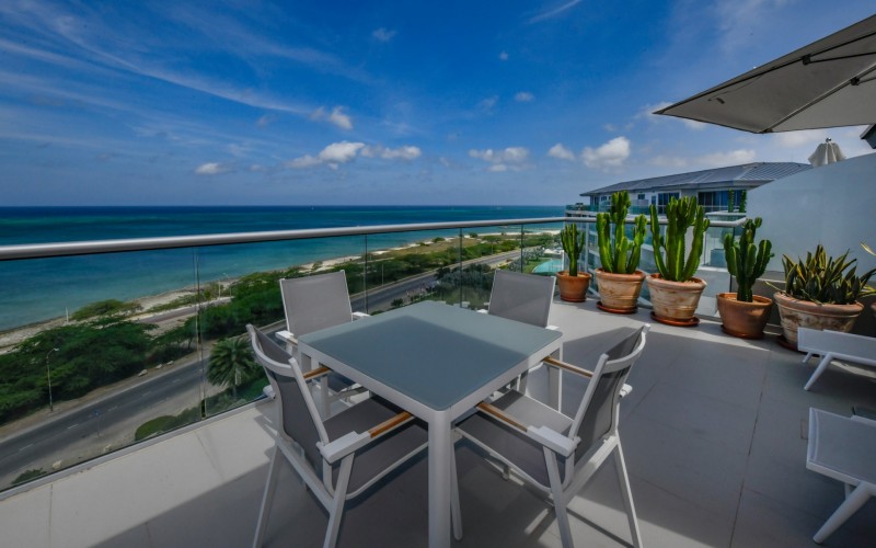For Sale | Azure Beach Residences | Oceanfront Penthouse | Million Dollar Views | Priced to Sell Welcome to your new home in paradise at Azure Beach Residences, where turquoise blue waters of the Caribbean Sea meet the powder-white sands of Aruba. Nestled within this exclusive beachfront community lies a meticulously crafted penthouse, offering 2 bedrooms, 2.5 bathrooms, and unparalleled oceanfront living with a touch of tropical charm. Azure Beach Residences boasts one of the finest oceanfront locations on the island, offering direct access to pristine beaches, two infinity saltwater pools, a heated jacuzzi, a well-equipped gym, and much more world-class amenities. From water sports to leisurely strolls along the shore, every day brings new opportunities for adventure and relaxation. Step into a world of bespoke luxury, where every corner reflects the passion and style of its first and current owners. Adorned in vibrant tropical hues, the loft-style layout exudes warmth and personality. Indulge in breathtaking vistas from your expansive roof terrace, where panoramic ocean views stretch as far as the eye can see. With a generous 1,175 sqft of living space each bedroom comes complete with its own ensuite bathroom. The fully equipped kitchen features a beautiful light countertop, perfectly complementing the island vibes. Additionally, the penthouse features a guest bathroom, assigned parking, and private storage space across from the front door. Oceanfront Penthouse Million Dollar Ocean Views 2 bedrooms | 2.5 bathrooms Completele Customized Condo Exclusive Beachfront Community 1,175 sqft living space | 350 sqft roof terrace Don't miss the opportunity to make this residency your dream home in paradise - schedule your viewing today! 📞 +297 742 0129 📨 [email protected]