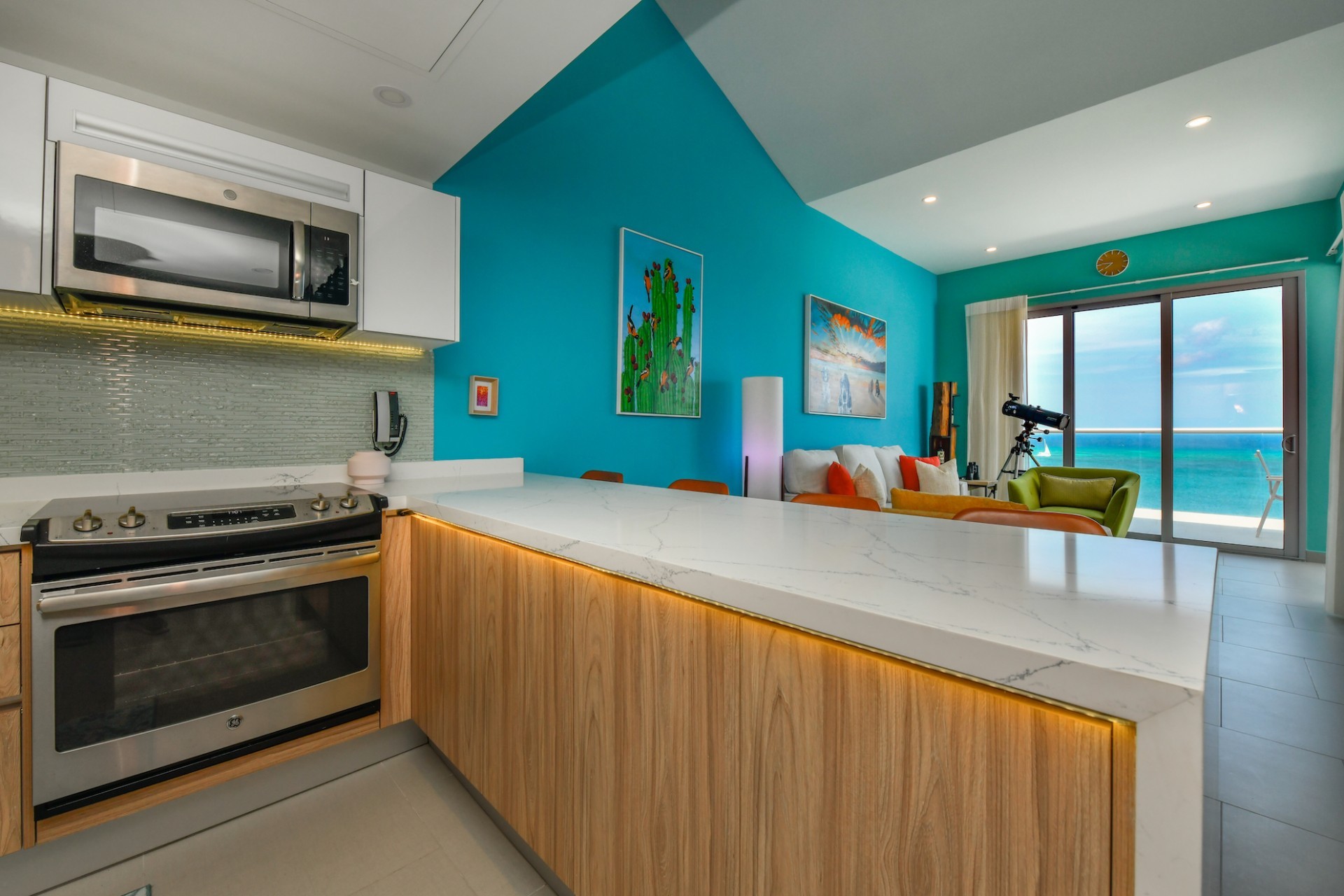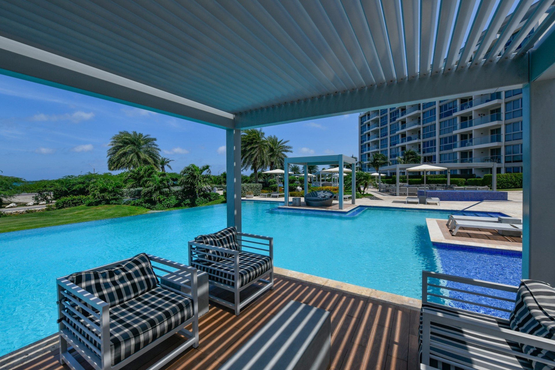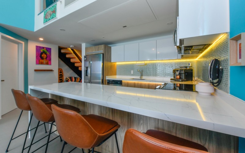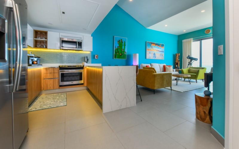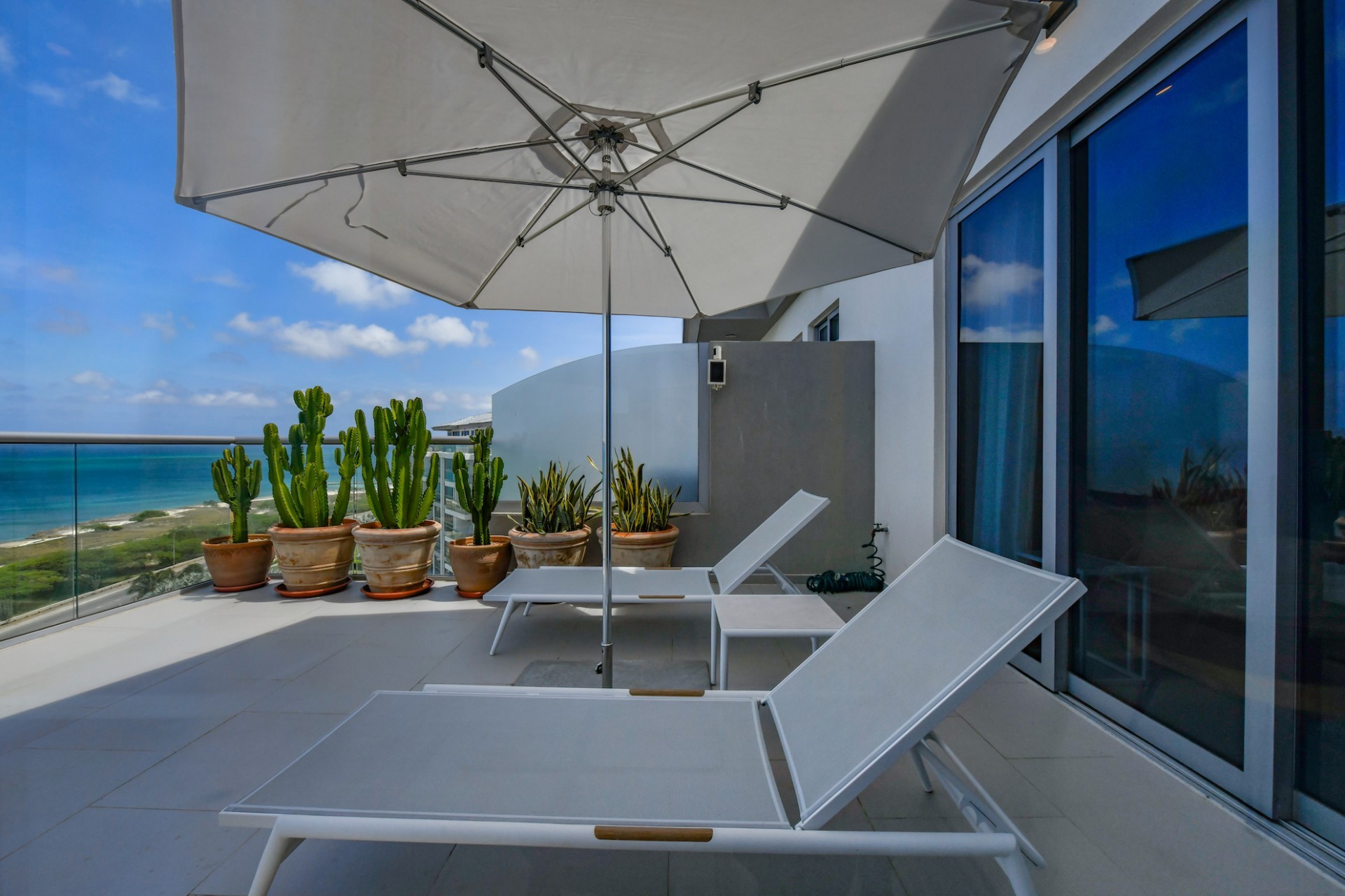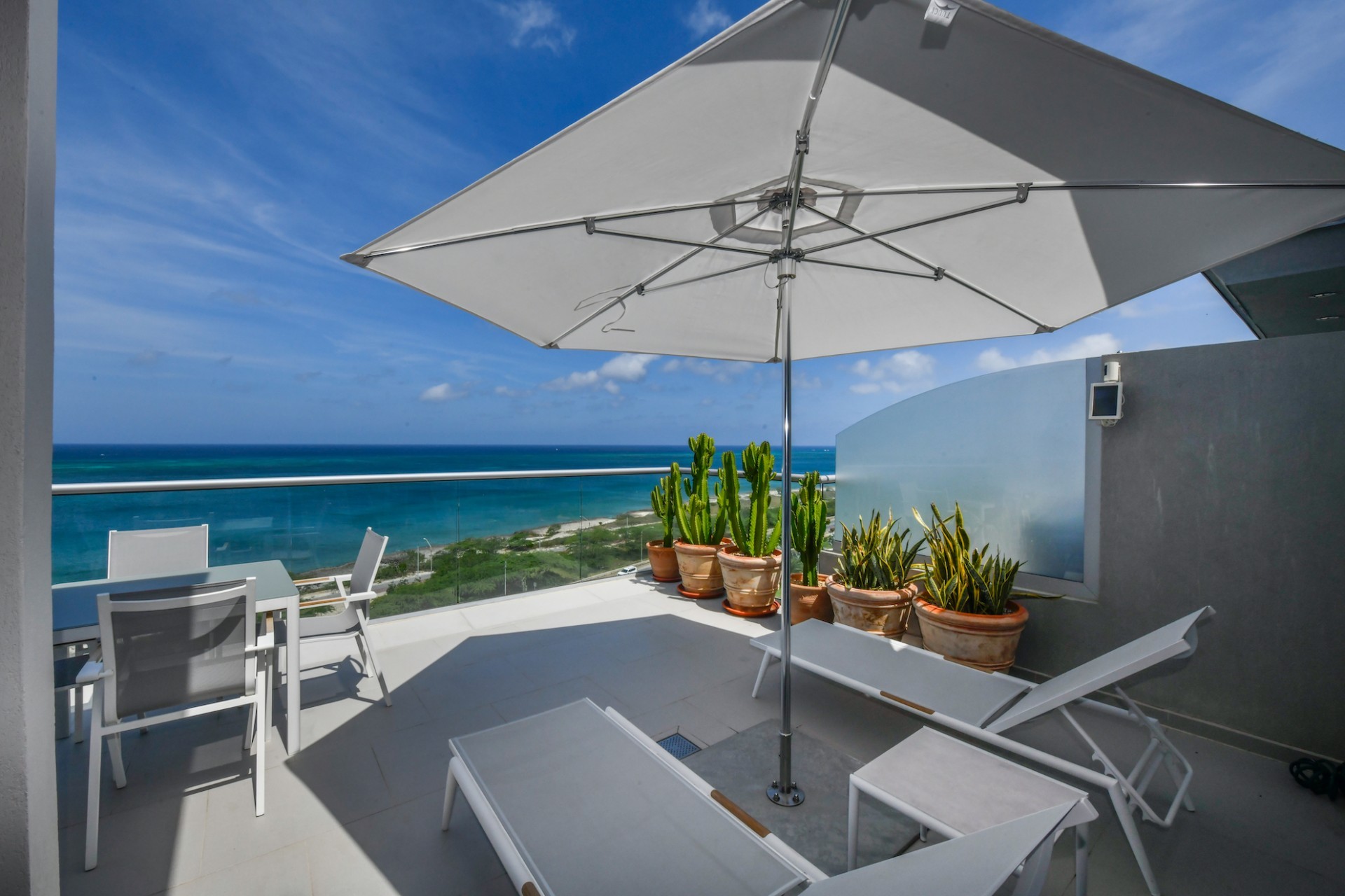 For Sale | Azure Beach Residences | Oceanfront Penthouse | Million Dollar Views | Priced to Sell Welcome to your new home in paradise at Azure Beach Residences, where turquoise blue waters of the Caribbean Sea meet the powder-white sands of Aruba. Nestled within this exclusive beachfront community lies a meticulously crafted penthouse, offering 2 bedrooms, 2.5 bathrooms, and unparalleled oceanfront living with a touch of tropical charm. Azure Beach Residences boasts one of the finest oceanfront locations on the island, offering direct access to pristine beaches, two infinity saltwater pools, a heated jacuzzi, a well-equipped gym, and much more world-class amenities. From water sports to leisurely strolls along the shore, every day brings new opportunities for adventure and relaxation. Step into a world of bespoke luxury, where every corner reflects the passion and style of its first and current owners. Adorned in vibrant tropical hues, the loft-style layout exudes warmth and personality. Indulge in breathtaking vistas from your expansive roof terrace, where panoramic ocean views stretch as far as the eye can see. With a generous 1,175 sqft of living space each bedroom comes complete with its own ensuite bathroom. The fully equipped kitchen features a beautiful light countertop, perfectly complementing the island vibes. Additionally, the penthouse features a guest bathroom, assigned parking, and private storage space across from the front door. Oceanfront Penthouse Million Dollar Ocean Views 2 bedrooms | 2.5 bathrooms Completele Customized Condo Exclusive Beachfront Community 1,175 sqft living space | 350 sqft roof terrace Don't miss the opportunity to make this residency your dream home in paradise - schedule your viewing today! 📞 +297 742 0129 📨 [email protected]