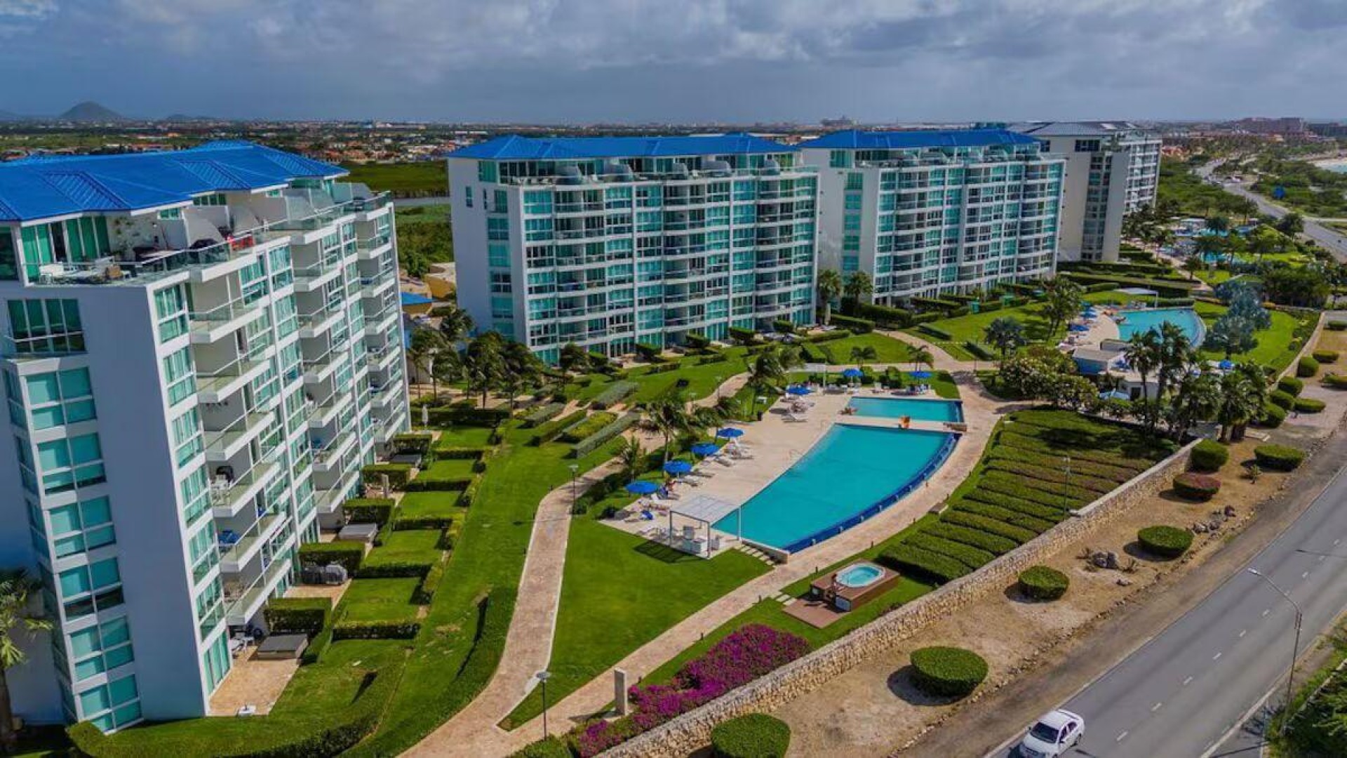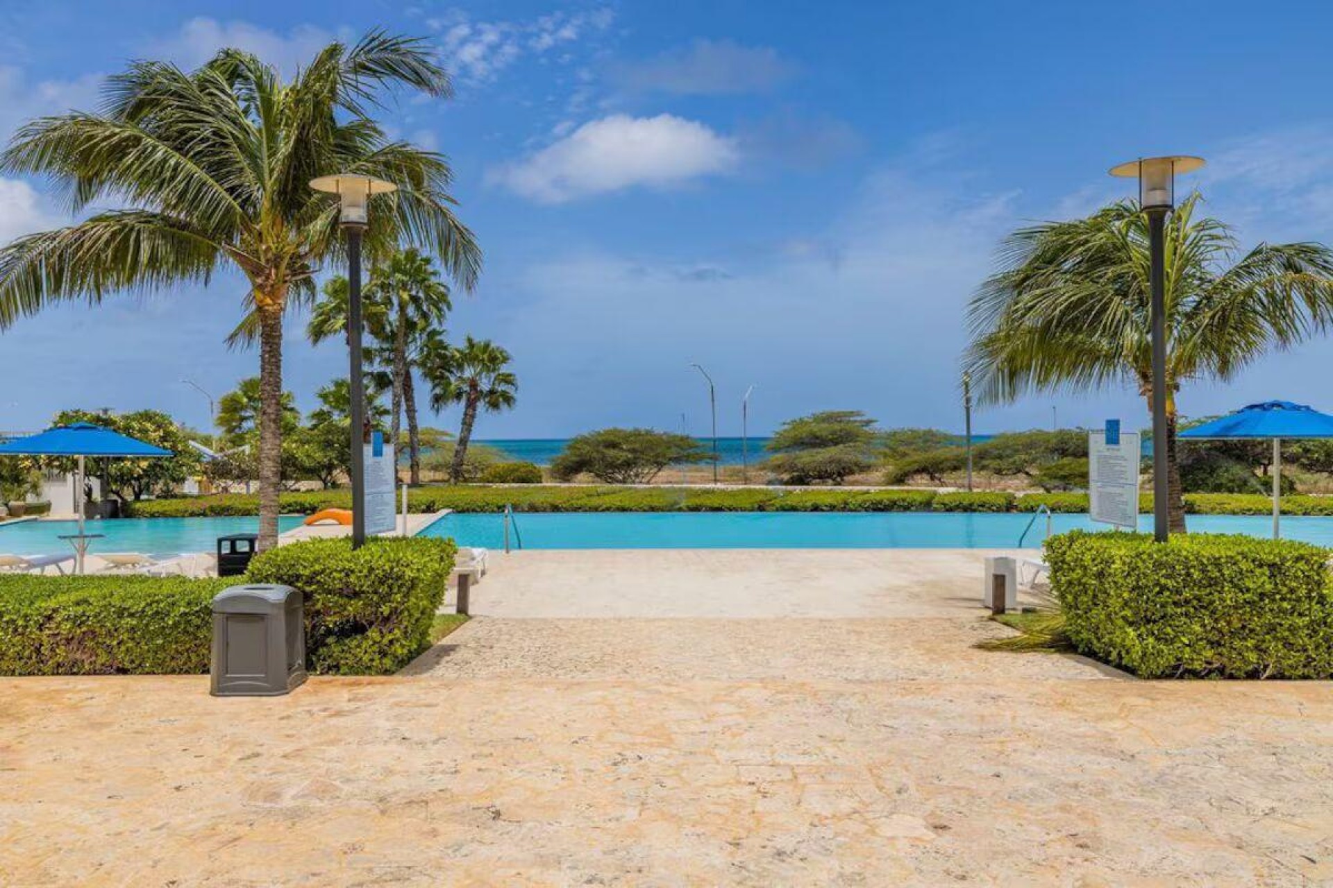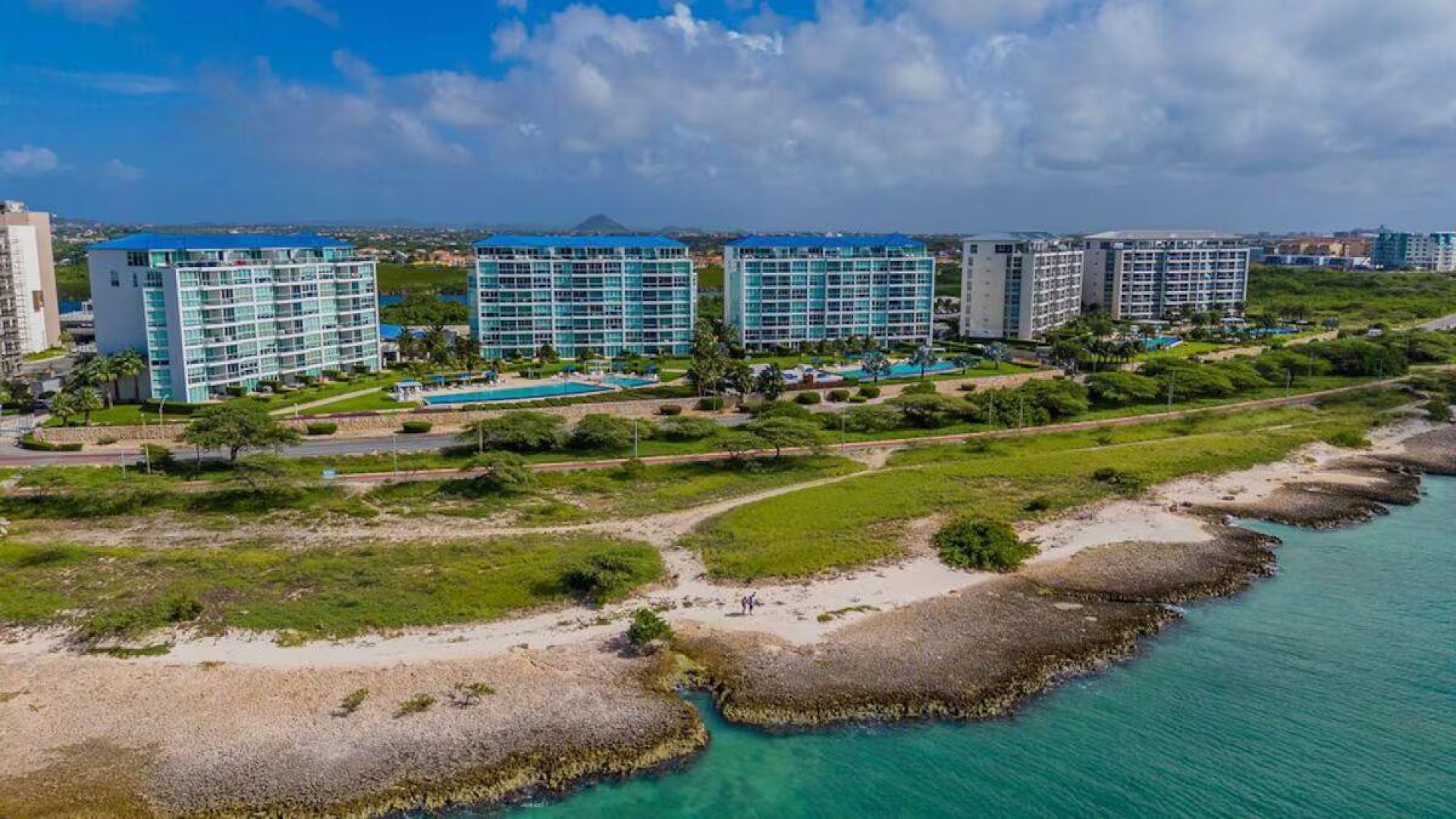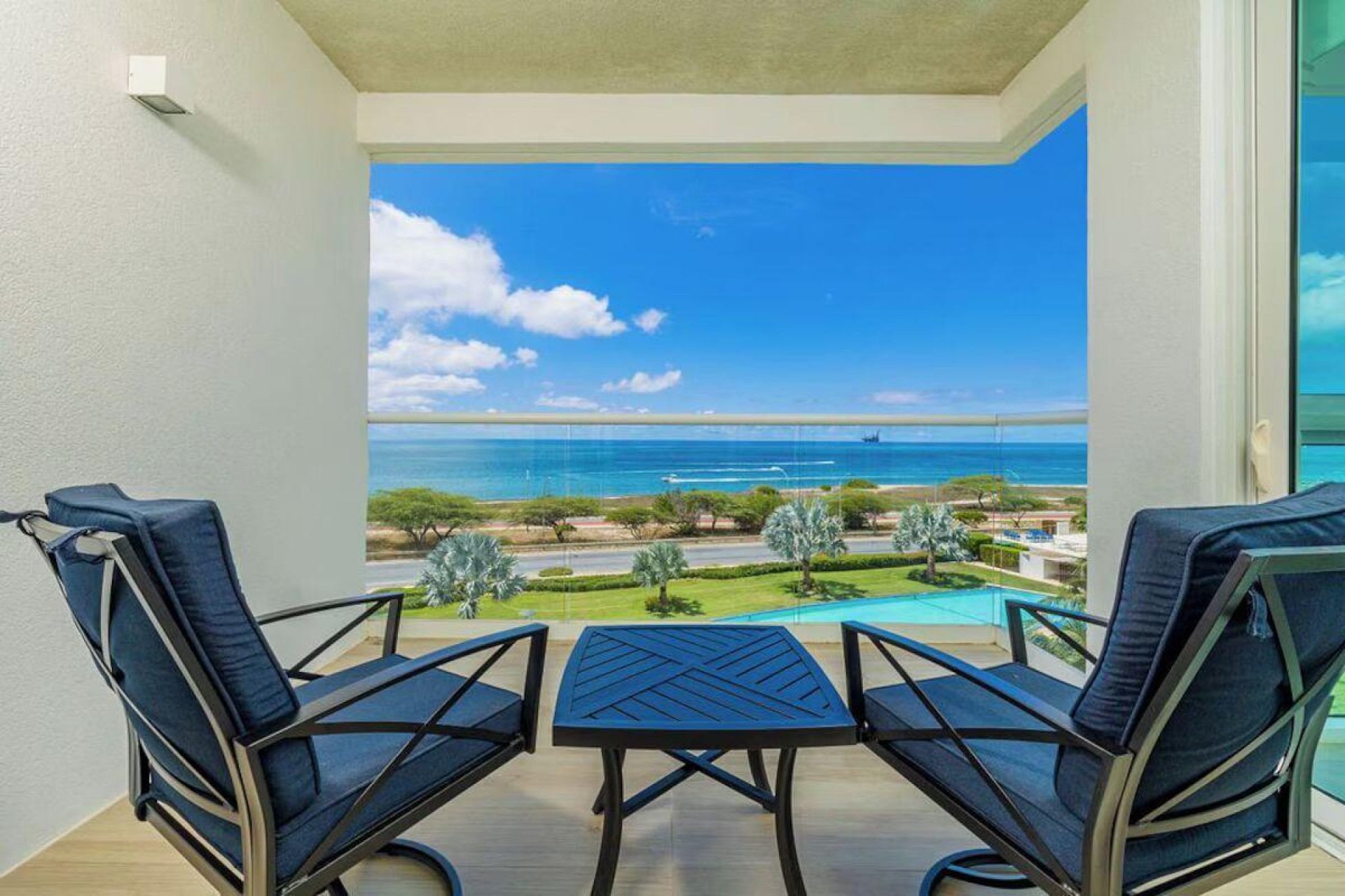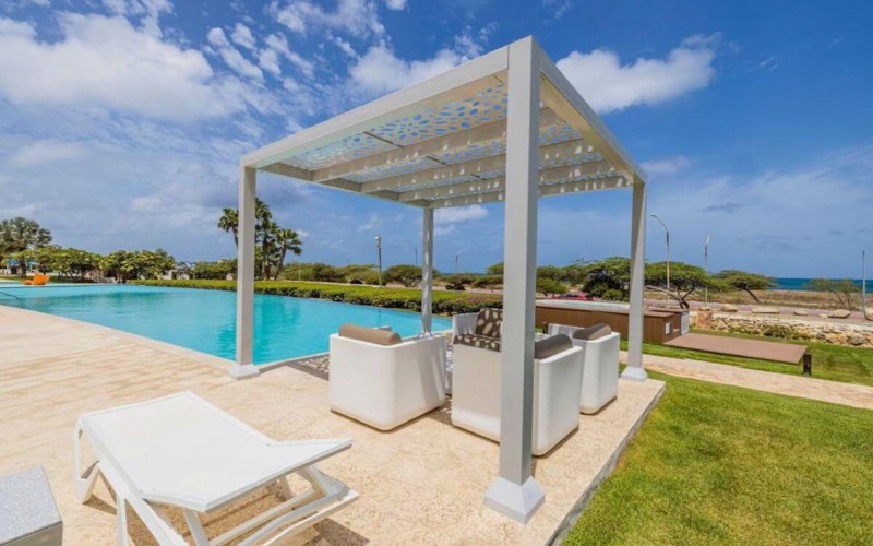 Enjoy the luxury of swimming in a pool with a stunning ocean view or taking a peaceful stroll along the beach. Stay in style in this bright and spacious condo, just a short walk from Eagle Beach and Palm Beach. From this 4th-floor location, you’ll be treated to breathtaking panoramic sea views, a private balcony, and resort-like amenities including a fitness center, hot tub, two swimming pools, 24-hour security, and concierge services. For those on a workcation, there’s a dedicated workstation and high-speed Wi-Fi perfect for remote work. Centrally located between Eagle Beach and Palm Beach, this condo offers easy access to a variety of restaurants and bars within walking distance. Scooters and bikes are available at the entrance, making getting around quick and convenient. You’ll also have four beach chairs, a cooler with wheels, toys, and floats to make your beach days even more enjoyable. This 2-bedroom unit comfortably sleeps 6 with one king bed and two double beds. The fully equipped kitchen provides everything you need to prepare meals, which you can enjoy on the balcony while taking in the perfect sunset view. The condo also features a brand-new full-size washer and dryer, an iron, and ironing board. With plenty of closet and drawer space, you'll have room to unpack and settle in. The two bathrooms come with bath and beach towels, washcloths, hairdryers, and ample under-sink storage. Air conditioning, hot water, and excellent water pressure are also included for your comfort. After a day in the sun or exploring the island, come back to relax with games or streaming movies on the smart TVs. The spacious living room is perfect for family time, with books, games, cards, and coloring books available for everyone to enjoy. You can access the balcony from either the primary bedroom or living room to watch the sunset or sip a glass of wine while taking in the stunning landscape. This condo has been part of a rental program with Blue Realty since 2021 and already has 15 bookings secured for 2025. For more information or to schedule a viewing, please reach out via: Call/WhatsApp: +297 592-7256 Email: