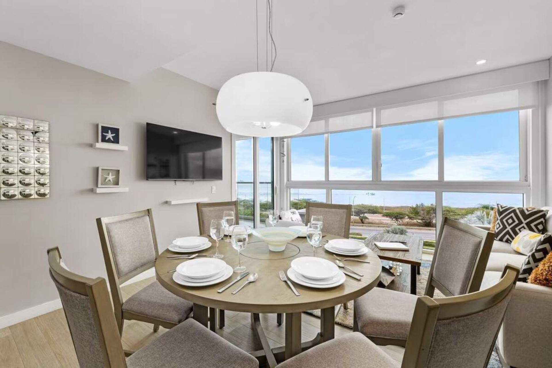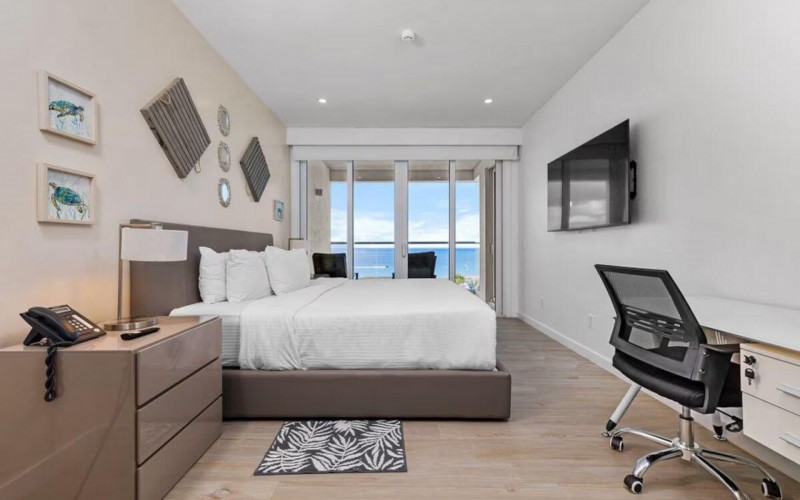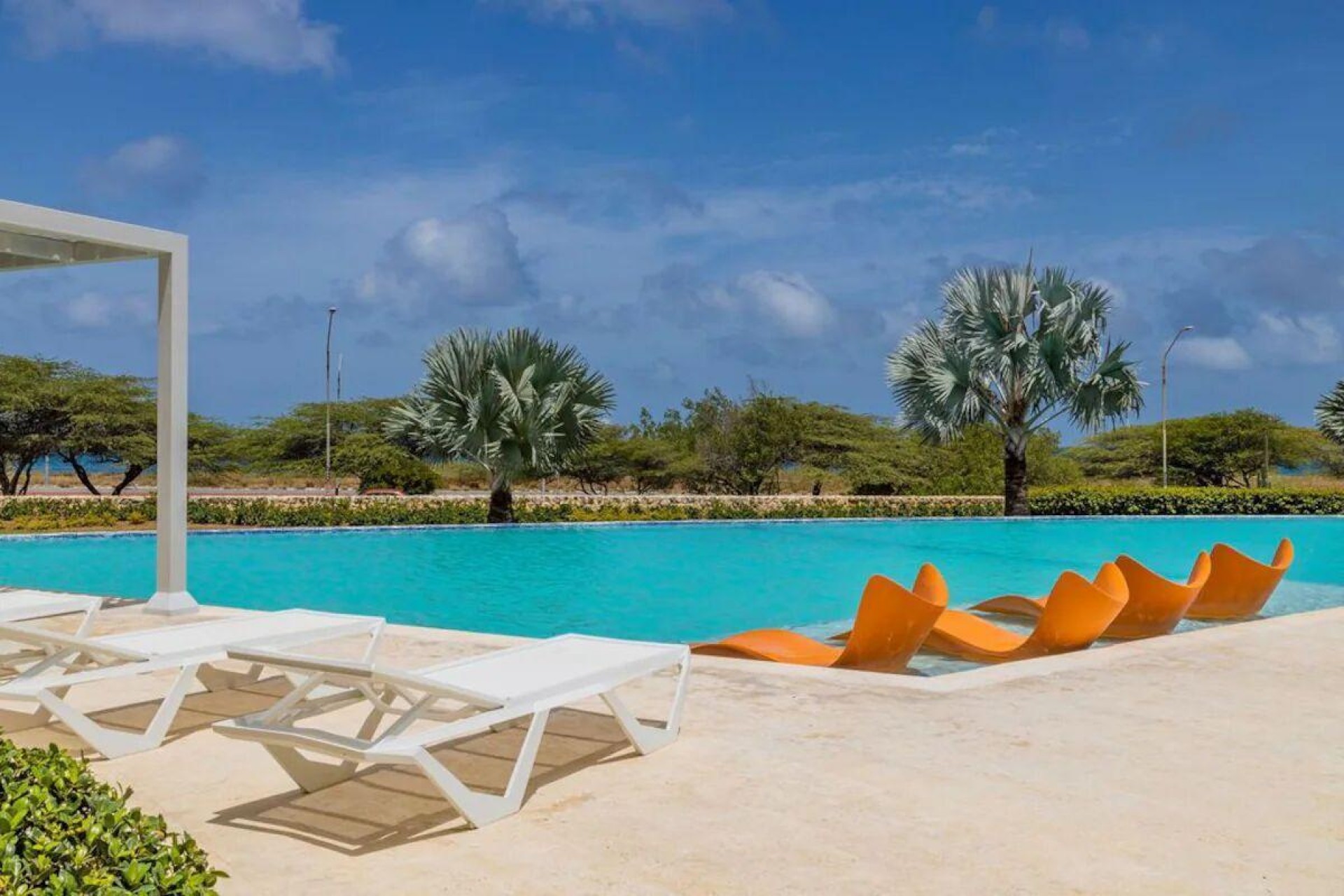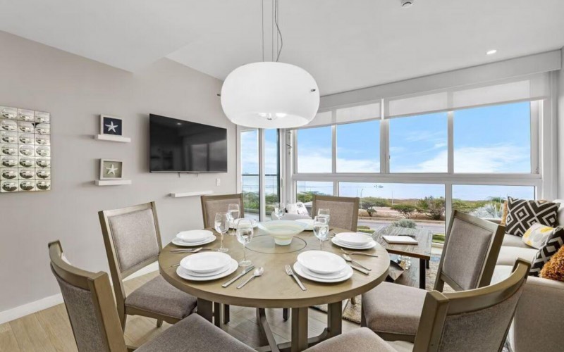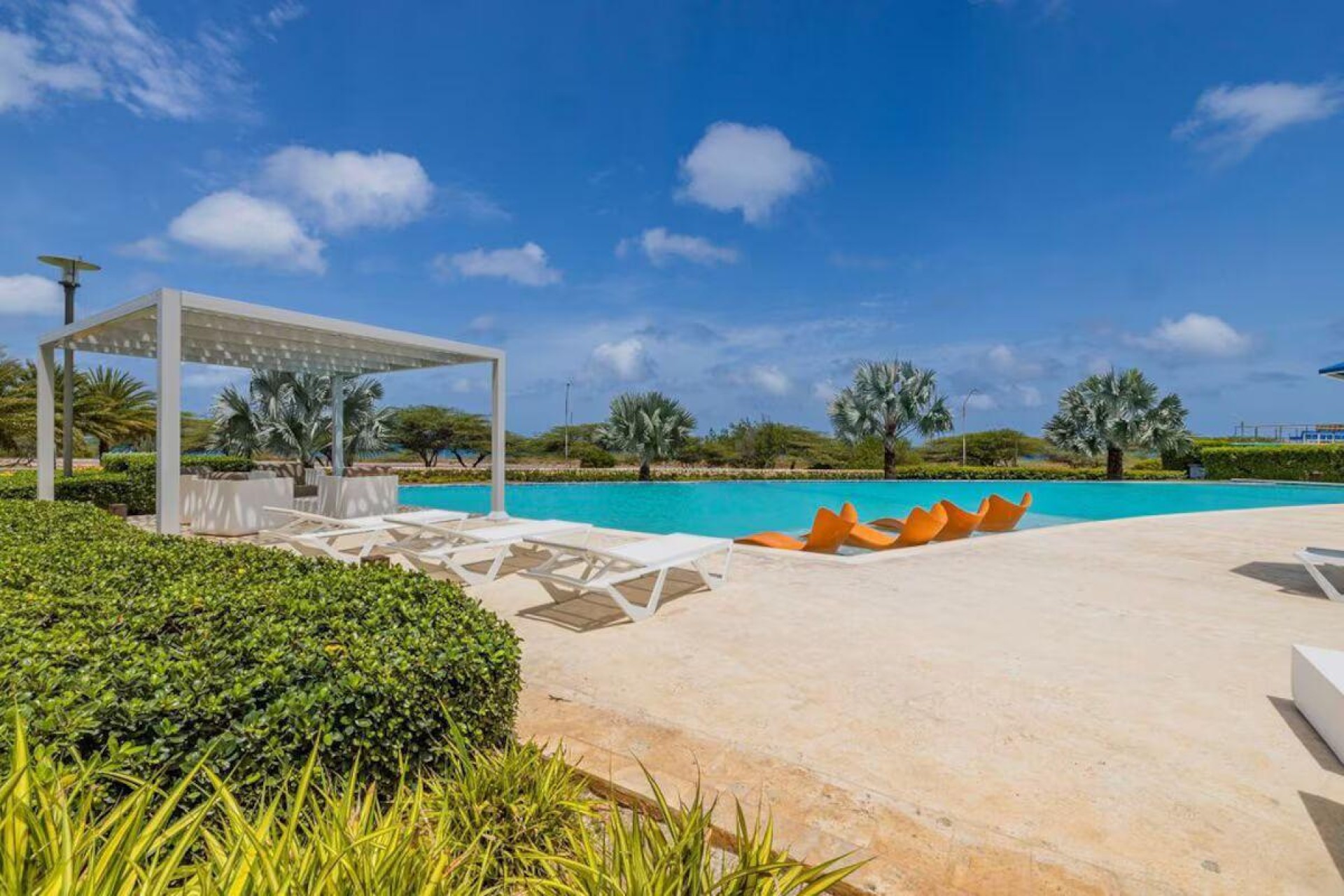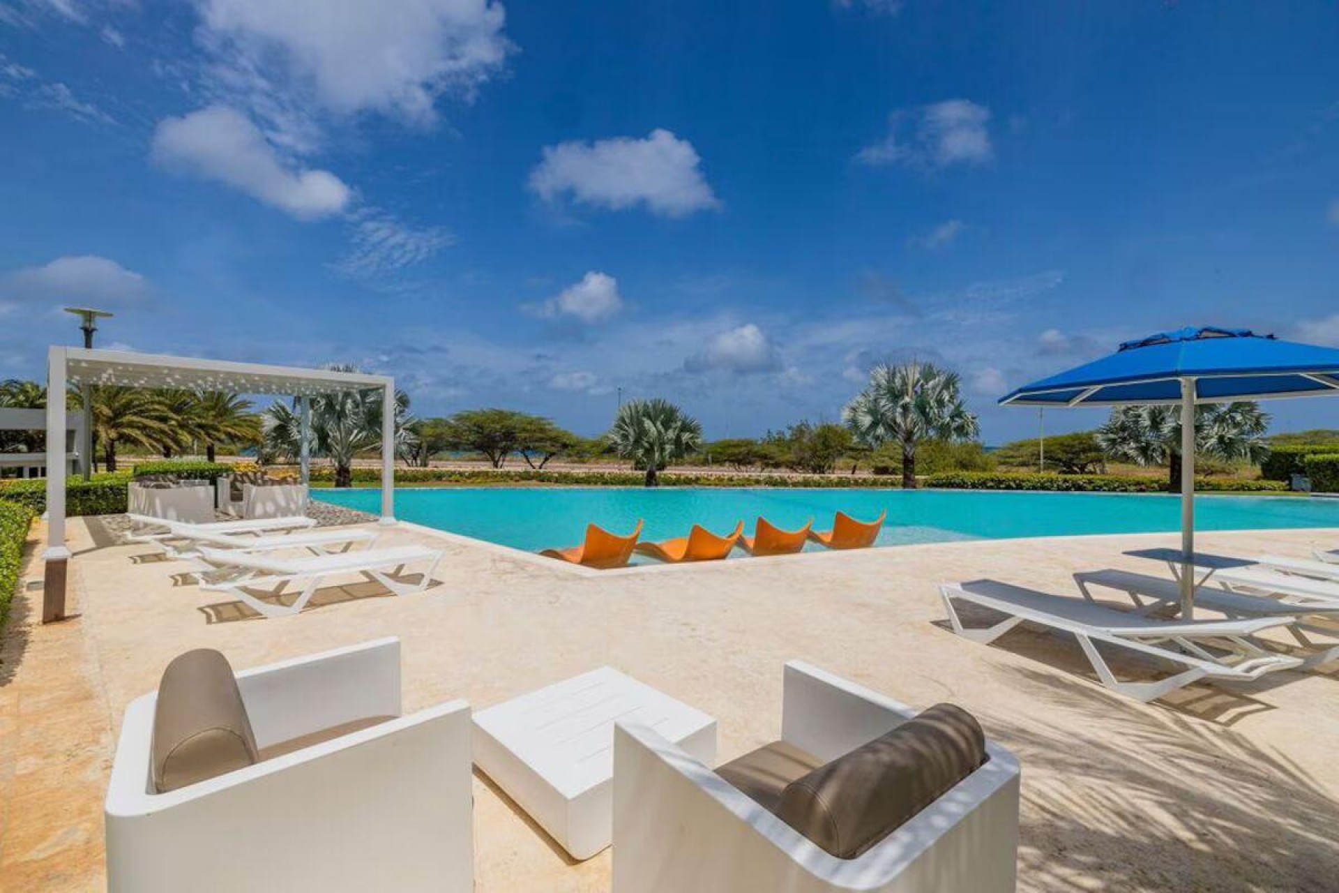 Enjoy the luxury of swimming in a pool with a stunning ocean view or taking a peaceful stroll along the beach. Stay in style in this bright and spacious condo, just a short walk from Eagle Beach and Palm Beach. From this 4th-floor location, you’ll be treated to breathtaking panoramic sea views, a private balcony, and resort-like amenities including a fitness center, hot tub, two swimming pools, 24-hour security, and concierge services. For those on a workcation, there’s a dedicated workstation and high-speed Wi-Fi perfect for remote work. Centrally located between Eagle Beach and Palm Beach, this condo offers easy access to a variety of restaurants and bars within walking distance. Scooters and bikes are available at the entrance, making getting around quick and convenient. You’ll also have four beach chairs, a cooler with wheels, toys, and floats to make your beach days even more enjoyable. This 2-bedroom unit comfortably sleeps 6 with one king bed and two double beds. The fully equipped kitchen provides everything you need to prepare meals, which you can enjoy on the balcony while taking in the perfect sunset view. The condo also features a brand-new full-size washer and dryer, an iron, and ironing board. With plenty of closet and drawer space, you'll have room to unpack and settle in. The two bathrooms come with bath and beach towels, washcloths, hairdryers, and ample under-sink storage. Air conditioning, hot water, and excellent water pressure are also included for your comfort. After a day in the sun or exploring the island, come back to relax with games or streaming movies on the smart TVs. The spacious living room is perfect for family time, with books, games, cards, and coloring books available for everyone to enjoy. You can access the balcony from either the primary bedroom or living room to watch the sunset or sip a glass of wine while taking in the stunning landscape. This condo has been part of a rental program with Blue Realty since 2021 and already has 15 bookings secured for 2025. For more information or to schedule a viewing, please reach out via: Call/WhatsApp: +297 592-7256 Email:
