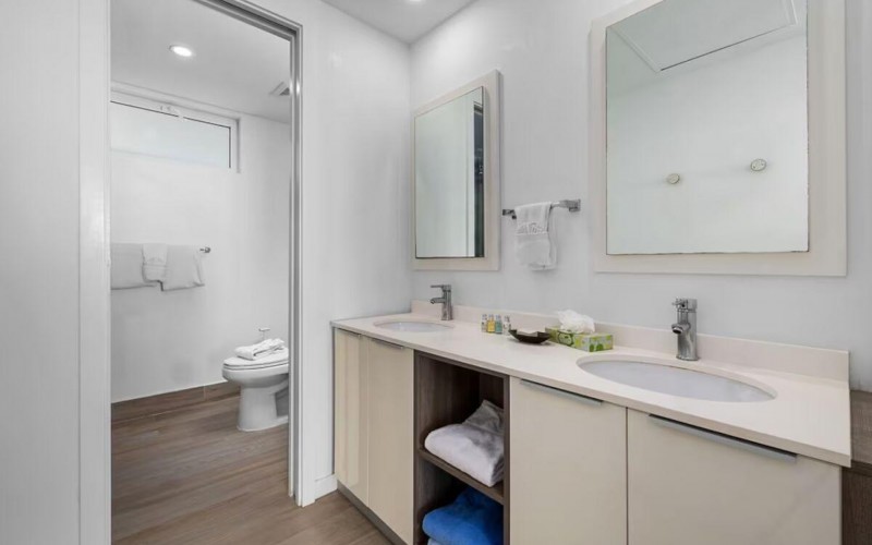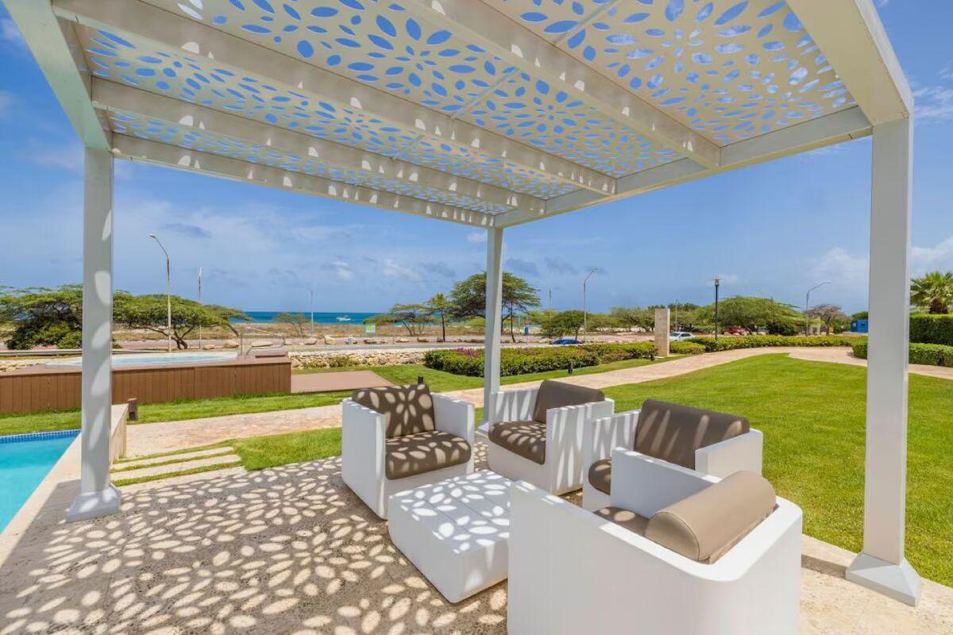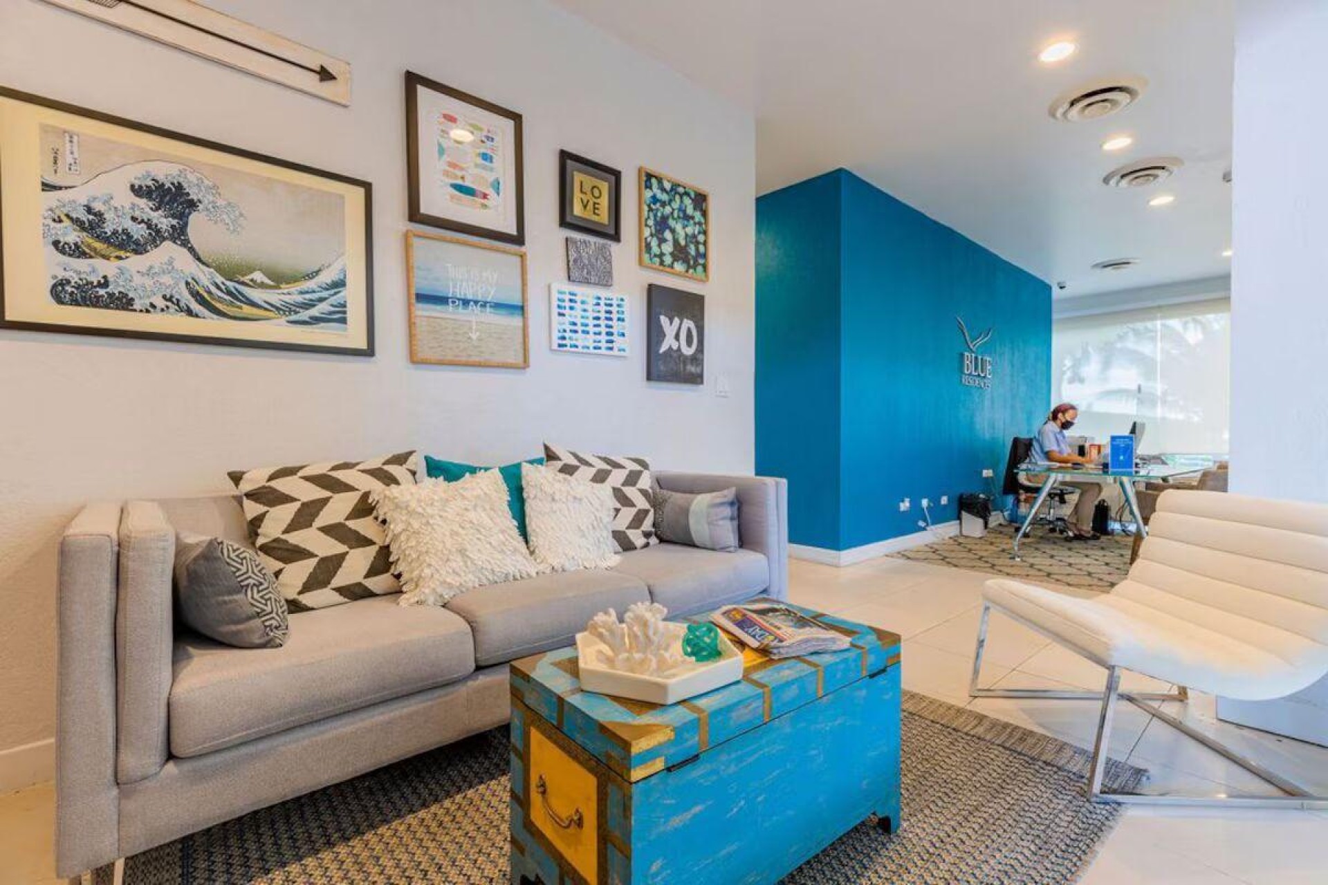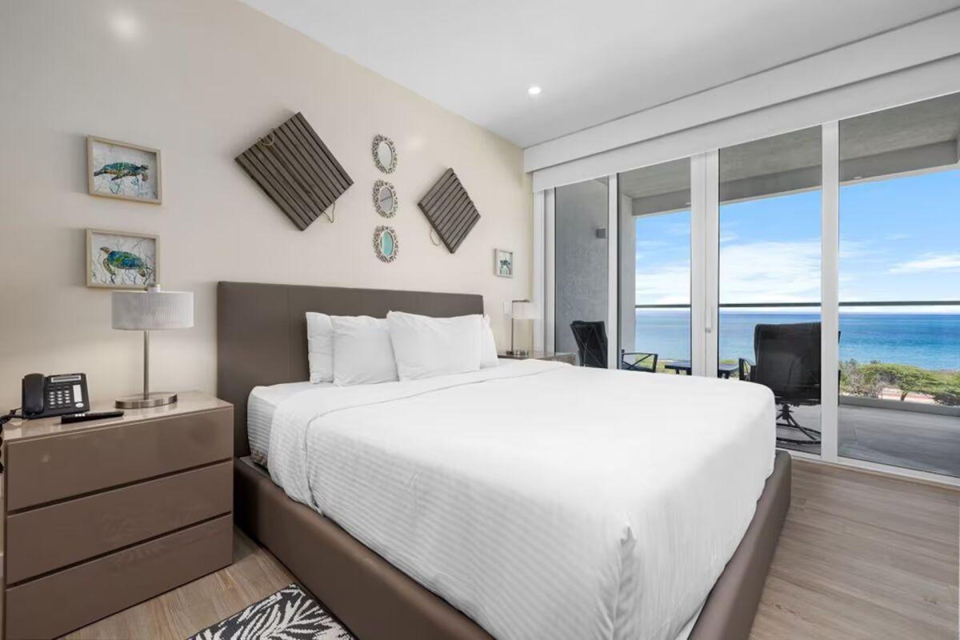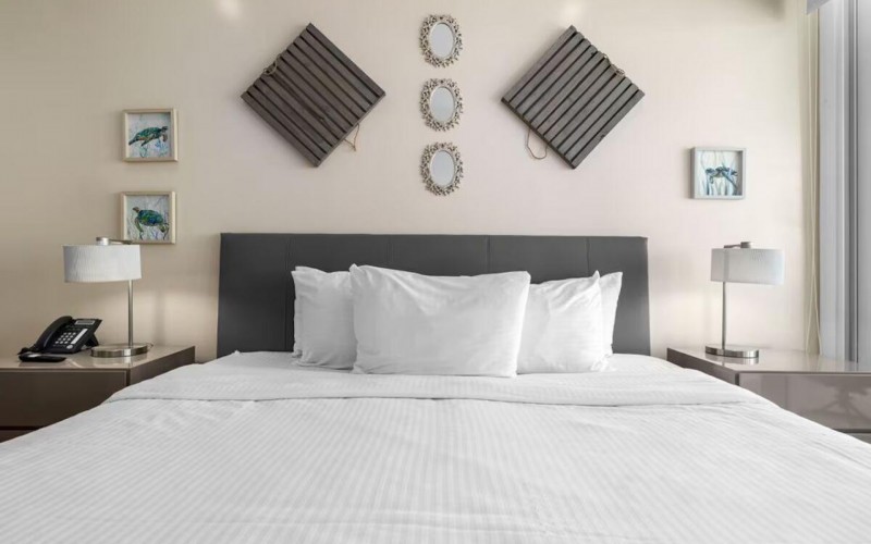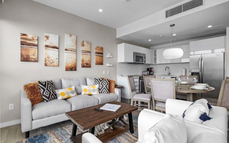 Enjoy the luxury of swimming in a pool with a stunning ocean view or taking a peaceful stroll along the beach. Stay in style in this bright and spacious condo, just a short walk from Eagle Beach and Palm Beach. From this 4th-floor location, you’ll be treated to breathtaking panoramic sea views, a private balcony, and resort-like amenities including a fitness center, hot tub, two swimming pools, 24-hour security, and concierge services. For those on a workcation, there’s a dedicated workstation and high-speed Wi-Fi perfect for remote work. Centrally located between Eagle Beach and Palm Beach, this condo offers easy access to a variety of restaurants and bars within walking distance. Scooters and bikes are available at the entrance, making getting around quick and convenient. You’ll also have four beach chairs, a cooler with wheels, toys, and floats to make your beach days even more enjoyable. This 2-bedroom unit comfortably sleeps 6 with one king bed and two double beds. The fully equipped kitchen provides everything you need to prepare meals, which you can enjoy on the balcony while taking in the perfect sunset view. The condo also features a brand-new full-size washer and dryer, an iron, and ironing board. With plenty of closet and drawer space, you'll have room to unpack and settle in. The two bathrooms come with bath and beach towels, washcloths, hairdryers, and ample under-sink storage. Air conditioning, hot water, and excellent water pressure are also included for your comfort. After a day in the sun or exploring the island, come back to relax with games or streaming movies on the smart TVs. The spacious living room is perfect for family time, with books, games, cards, and coloring books available for everyone to enjoy. You can access the balcony from either the primary bedroom or living room to watch the sunset or sip a glass of wine while taking in the stunning landscape. This condo has been part of a rental program with Blue Realty since 2021 and already has 15 bookings secured for 2025. For more information or to schedule a viewing, please reach out via: Call/WhatsApp: +297 592-7256 Email: