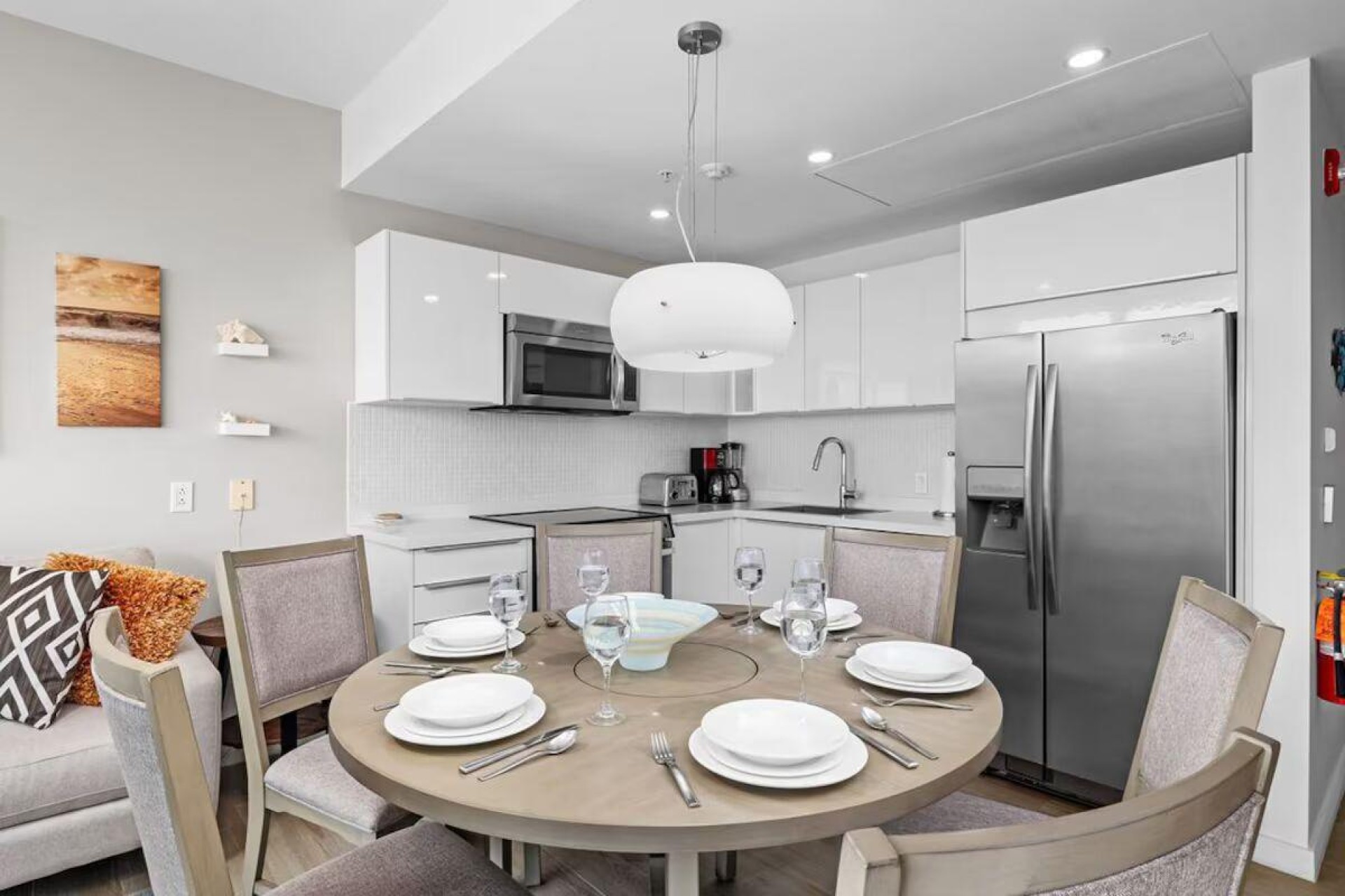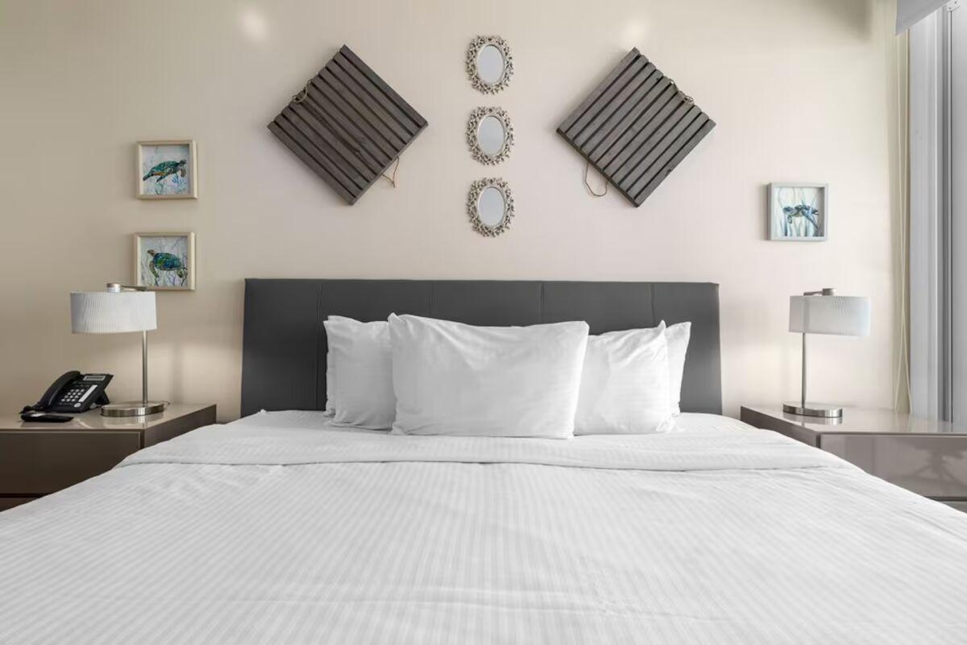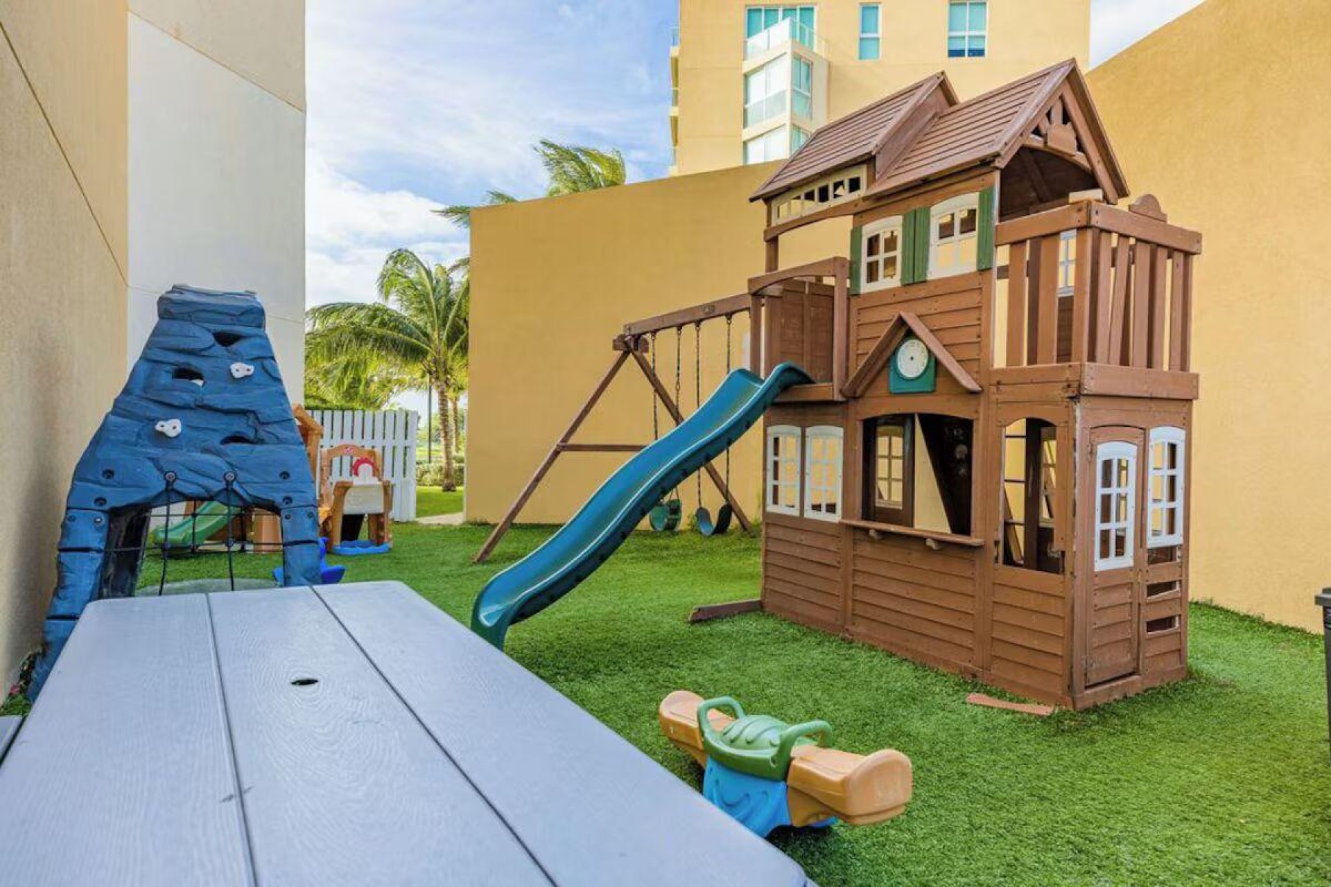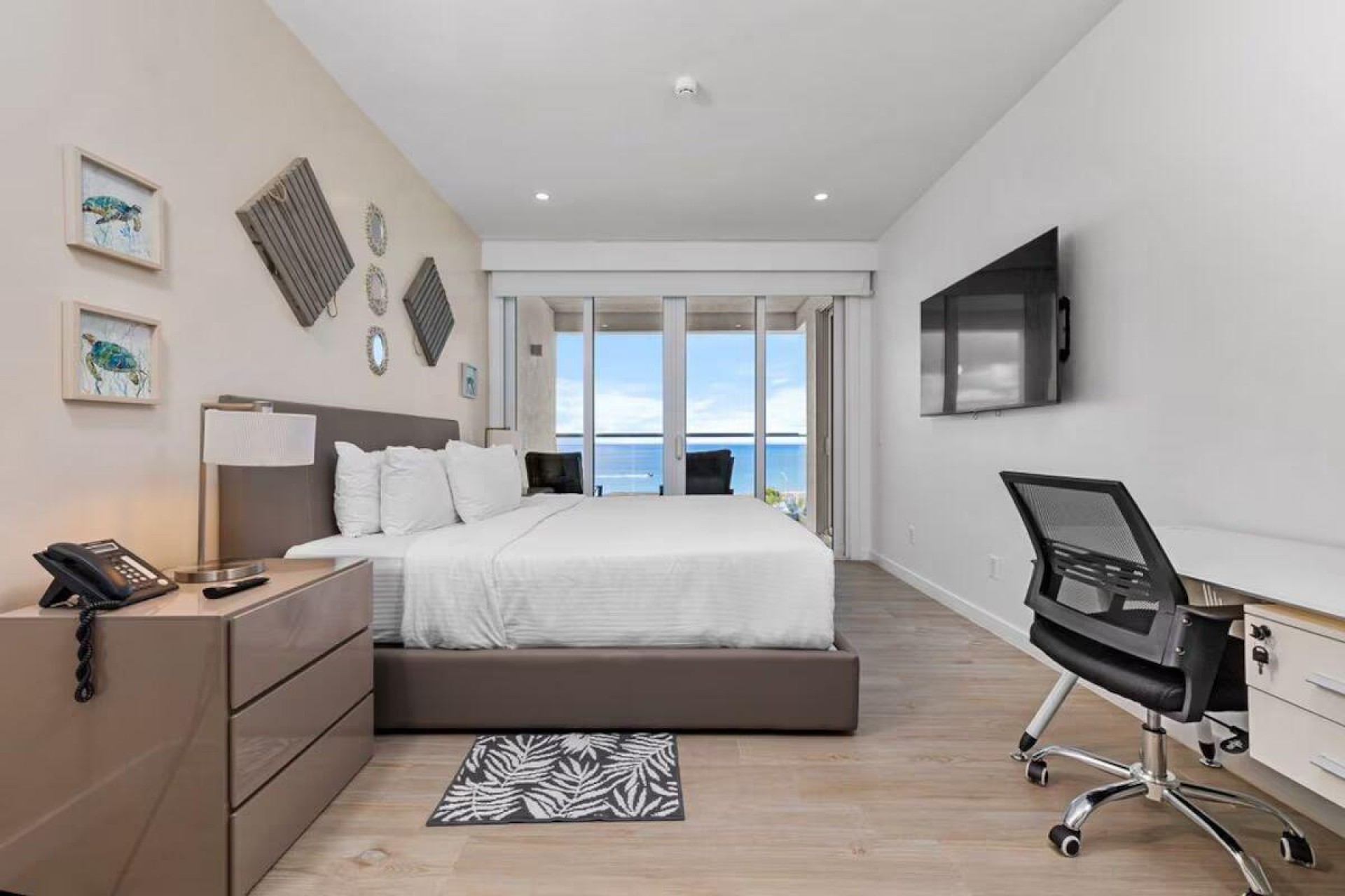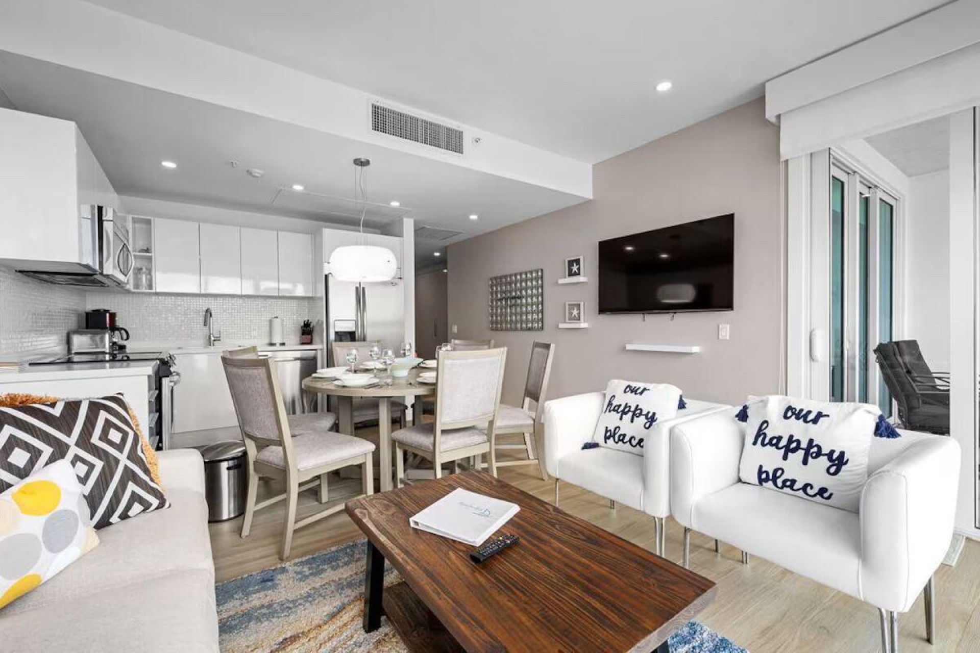 Enjoy the luxury of swimming in a pool with a stunning ocean view or taking a peaceful stroll along the beach. Stay in style in this bright and spacious condo, just a short walk from Eagle Beach and Palm Beach. From this 4th-floor location, you’ll be treated to breathtaking panoramic sea views, a private balcony, and resort-like amenities including a fitness center, hot tub, two swimming pools, 24-hour security, and concierge services. For those on a workcation, there’s a dedicated workstation and high-speed Wi-Fi perfect for remote work. Centrally located between Eagle Beach and Palm Beach, this condo offers easy access to a variety of restaurants and bars within walking distance. Scooters and bikes are available at the entrance, making getting around quick and convenient. You’ll also have four beach chairs, a cooler with wheels, toys, and floats to make your beach days even more enjoyable. This 2-bedroom unit comfortably sleeps 6 with one king bed and two double beds. The fully equipped kitchen provides everything you need to prepare meals, which you can enjoy on the balcony while taking in the perfect sunset view. The condo also features a brand-new full-size washer and dryer, an iron, and ironing board. With plenty of closet and drawer space, you'll have room to unpack and settle in. The two bathrooms come with bath and beach towels, washcloths, hairdryers, and ample under-sink storage. Air conditioning, hot water, and excellent water pressure are also included for your comfort. After a day in the sun or exploring the island, come back to relax with games or streaming movies on the smart TVs. The spacious living room is perfect for family time, with books, games, cards, and coloring books available for everyone to enjoy. You can access the balcony from either the primary bedroom or living room to watch the sunset or sip a glass of wine while taking in the stunning landscape. This condo has been part of a rental program with Blue Realty since 2021 and already has 15 bookings secured for 2025. For more information or to schedule a viewing, please reach out via: Call/WhatsApp: +297 592-7256 Email:
