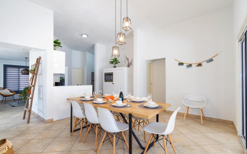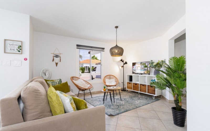 Experience Island Living at Its Finest – Welcome to Casa Iguana in Prestigious Washington, Aruba PRICE REDUCED FROM $825,000 to $795,000 Discover Casa Iguana, a serene and stylish tropical retreat nestled in one of Aruba’s most sought-after residential areas—the upscale and tranquil Washington neighborhood. This exceptional 3-bedroom, 2-bathroom home is a rare gem that blends privacy, comfort, and the ultimate island lifestyle, all just minutes from Aruba’s world-famous beaches. Step through the gates into your private paradise, surrounded by lush tropical gardens filled with towering palm trees and vibrant greenery. At the heart of the outdoor living space lies a sparkling private pool, perfectly complemented by a spacious palapa-covered gazebo—ideal for outdoor dining, grilling, or even a private chef experience under the stars. Whether you’re entertaining guests or enjoying a quiet moment with loved ones, this space is designed to impress. Inside, Casa Iguana has been thoughtfully updated with fresh décor and high-quality furnishings, offering a turn-key living experience. The primary suite features a king-size bed and a beautifully appointed ensuite bathroom, providing a peaceful retreat after a day of sun and sand. The second bedroom also offers a king bed, while the third bedroom includes a full-size bed—perfect for guests or family. A sleeper sofa in the living area adds extra flexibility for overnight visitors. The open-concept living and dining area is perfect for relaxing or gathering with friends and family. Enjoy meals around the indoor dining table for six, or take advantage of Aruba’s perfect weather and dine outdoors under the gazebo. With multiple lounging and seating areas both inside and out, Casa Iguana is made for living well. Located just 20 minutes from Queen Beatrix International Airport, and only 9 minutes from Eagle Beach, you’ll enjoy quick access to the best of Aruba: from sun-drenched shores and crystal-clear waters to restaurants, shopping, and nightlife. Daily essentials are a breeze, too, with the island’s top grocery store, Super Food, only 4 minutes away. Whether you're looking for a luxurious vacation home, a profitable short-term rental investment, or a peaceful island escape, Casa Iguana delivers on all fronts. This property is a standout in Aruba’s real estate market—offering style, location, and resort-style living in one exceptional package. Casa Iguana has been a short term rental property for a couple of years and has a great ROI in the Aruba short term rental market. This is a turnkey property, fully furnished and comes with reservations already booked in 2025. Don’t miss the opportunity to make Casa Iguana your island sanctuary. Contact me today to schedule a private showing—let’s make your dream of owning a piece of paradise in Aruba a reality.