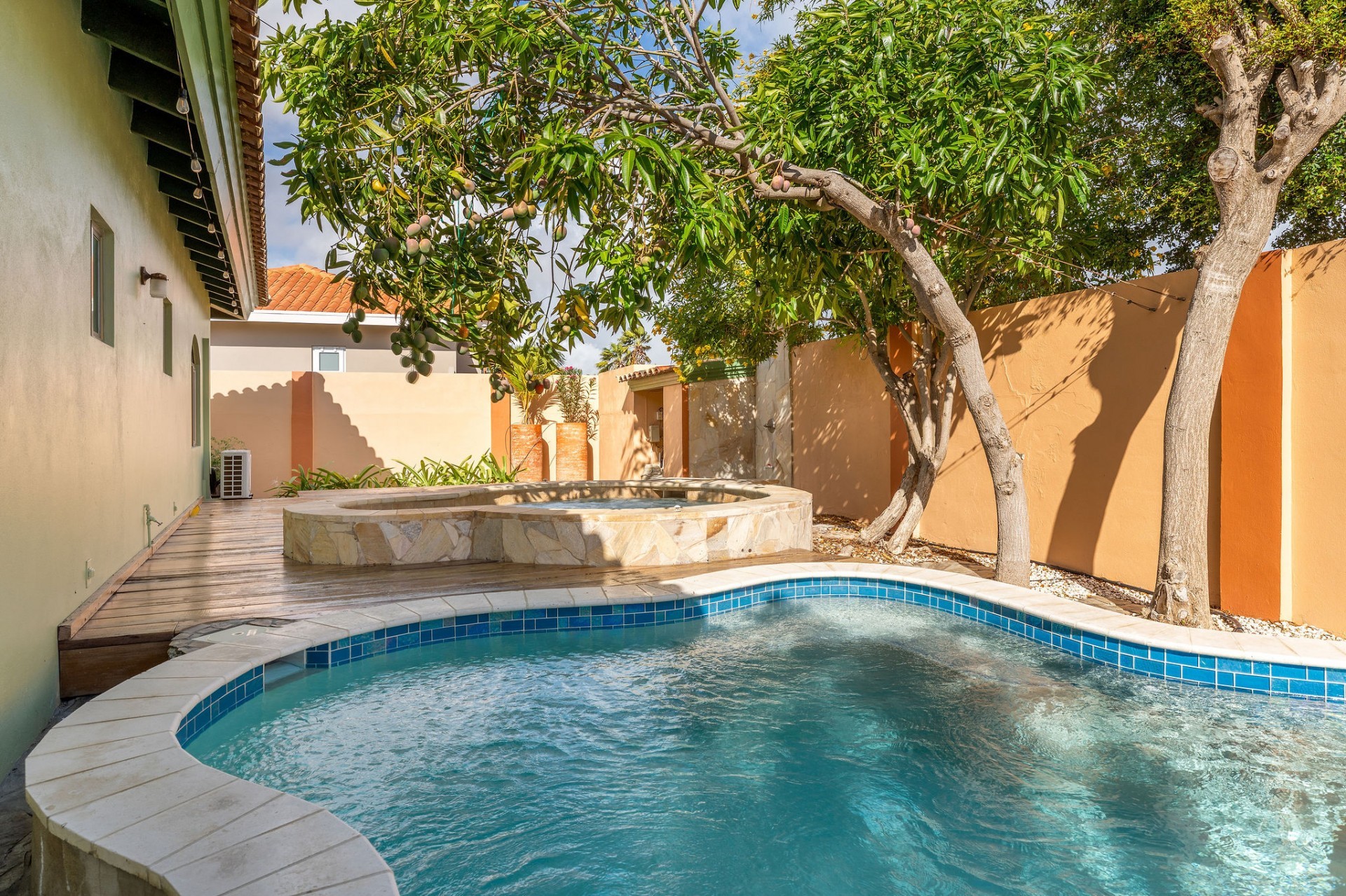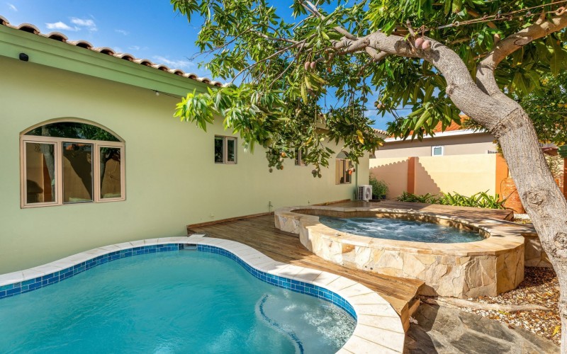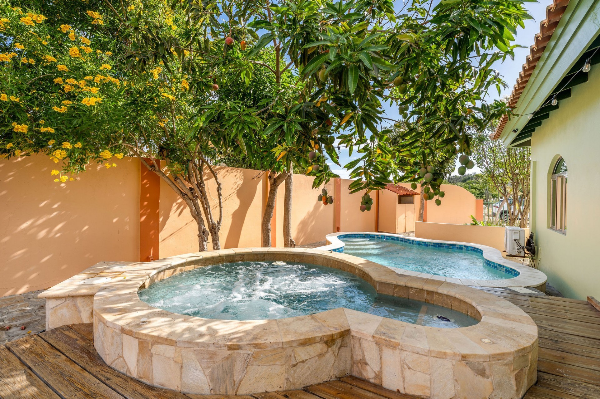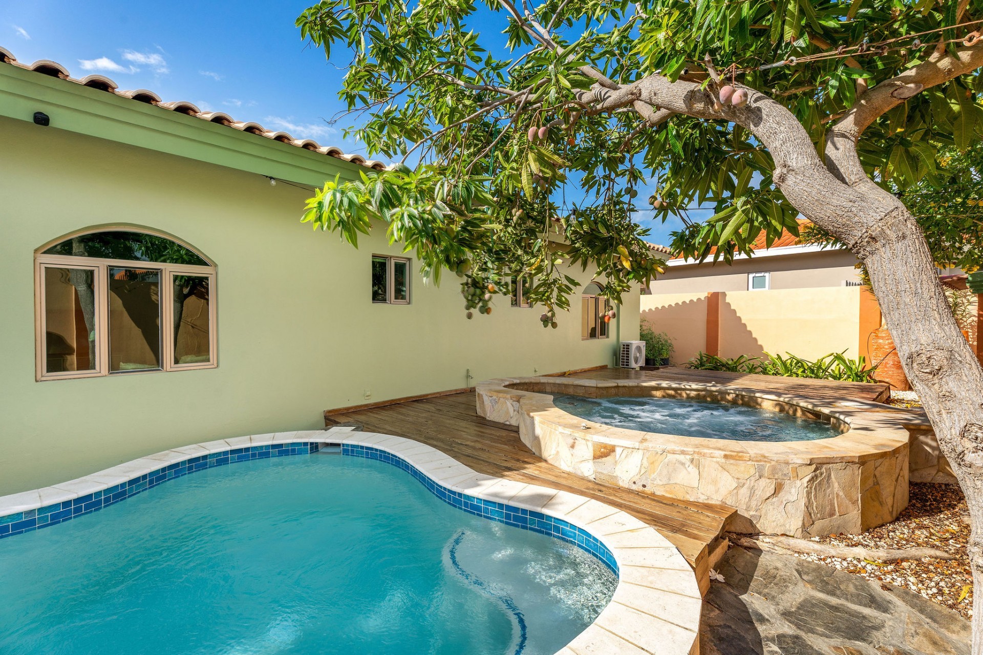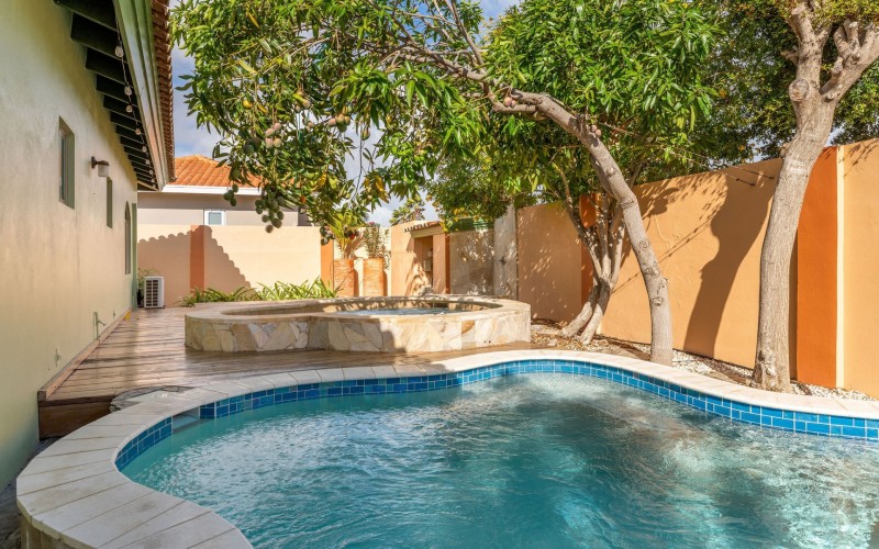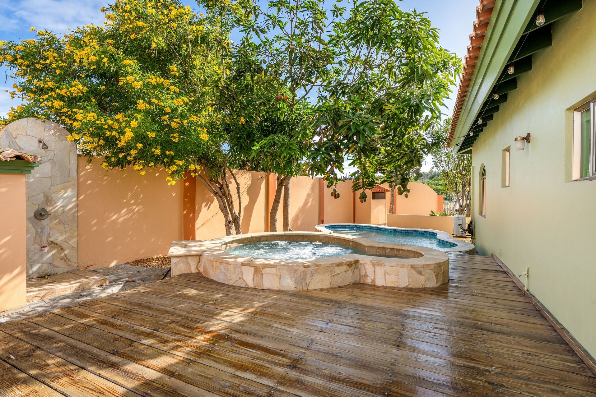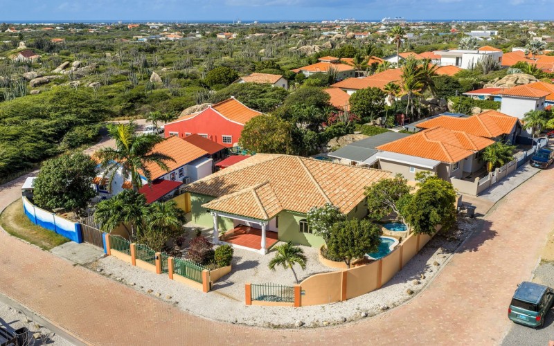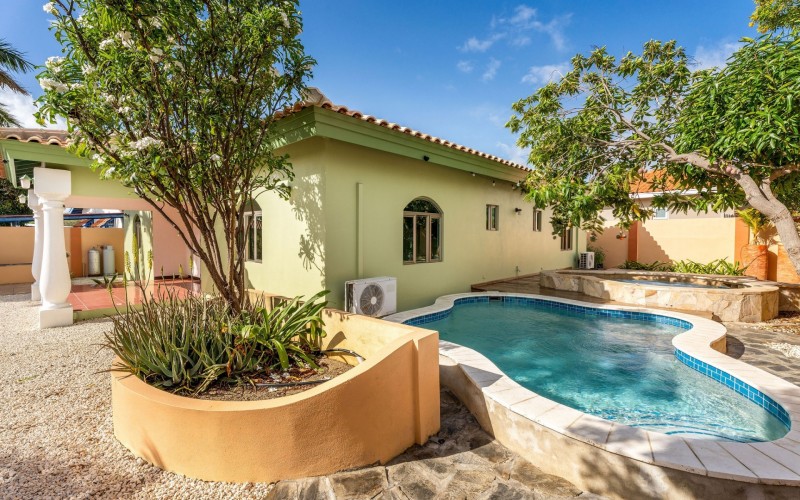 Spacious Family Home - Relaxed Living in Casibari Stones & Gardens Welcome to this beautiful family residence located in the peaceful and well-established Casibari Stones & Gardens community, just moments away from the iconic Casibari Rock Formations. This charming neighborhood is known for its tranquility, natural surroundings, and central location, making it an ideal place for comfortable (family) living on Aruba. Set on 478 m² of property land, this spacious home is thoughtfully designed with a practical and inviting layout. The residence features 4 bedrooms and 3 bathrooms, two of which offer en-suite bathrooms, offering both privacy and functionality for families or guests. At the heart of the home is a bright open-concept living, dining, and kitchen area, creating a natural flow that is perfect for everyday family life as well as entertaining. The generous proportions throughout the house contribute to a comfortable and airy atmosphere. Build on the wind, with several doors and windows to open, the house always has a fresh breeze going through it! Surrounding the home are multiple outdoor lounge areas, allowing you to enjoy the peaceful ambiance of Casibari Stones & Gardens at any time of day. The beautifully landscaped garden features mature trees, lush plants, palm trees and even a mango tree, creating a private and serene outdoor setting. A true highlight of this property is the outdoor relaxation area, which includes both a jacuzzi-style pool and a separate swimming pool, making it the perfect place to unwind, cool off, and enjoy Aruba’s year-round sunshine. The home also includes a dedicated laundry area and is fully fenced, offering privacy, security, and peace of mind. The property is well maintained, move-in ready, and prepared to welcome its new owners. Furniture can be taken over as an option, providing additional convenience for buyers seeking a smooth transition. Property Highlights Located in the quiet and desirable Casibari Stones & Gardens Residence Close to the Casibari Rock Formations Ideal family home 4 bedrooms | 3 bathrooms Two bedrooms with en-suite bathrooms Open-concept living, dining & kitchen area On property parking possibilty Multiple outdoor lounge spaces Beautifully landscaped garden with mature trees & palm trees Jacuzzi-style pool plus a separate swimming pool Fully fenced property Furniture takeover optional Move-in ready condition This residence in Casibari Stones & Gardens offers the perfect balance between comfort, space, and tranquility, making it an excellent choice for families looking to settle into a relaxed and well-connected community. Are you interested, or want to know more about this property? Contact Ruben Metz for a viewing! (+297) 568 6490