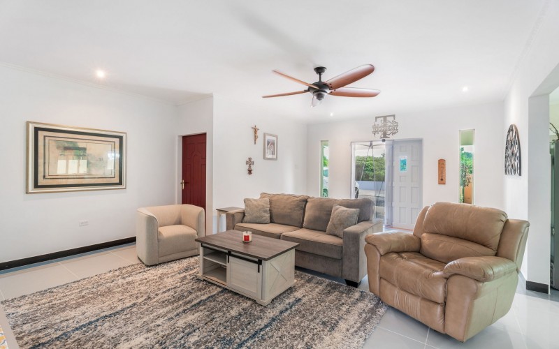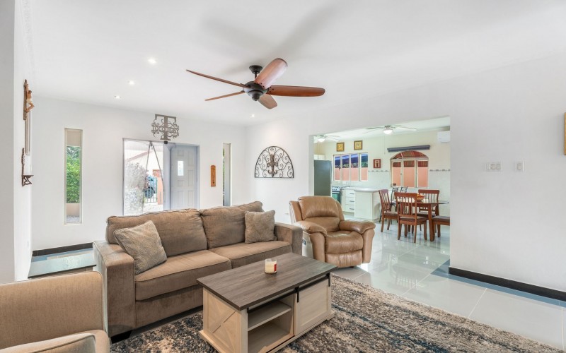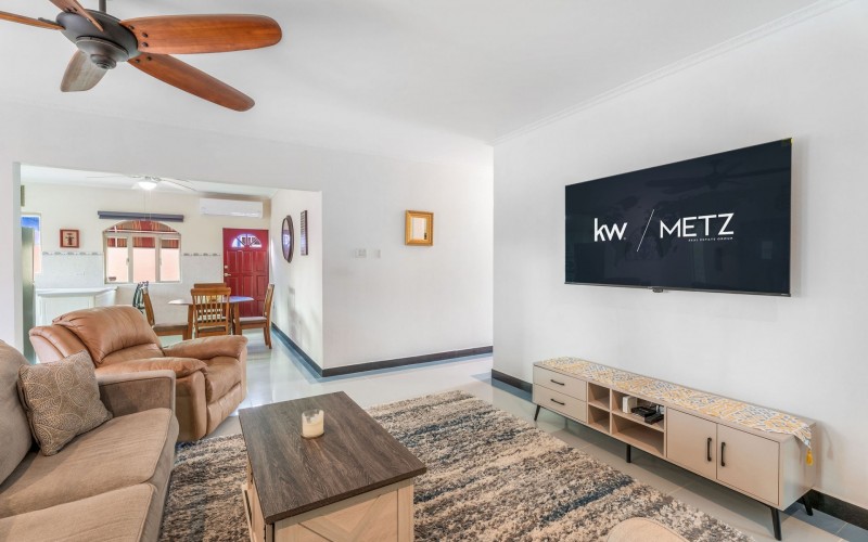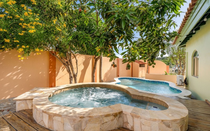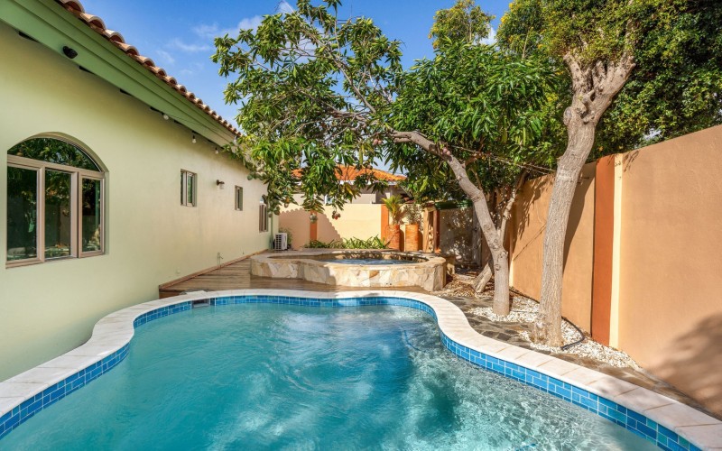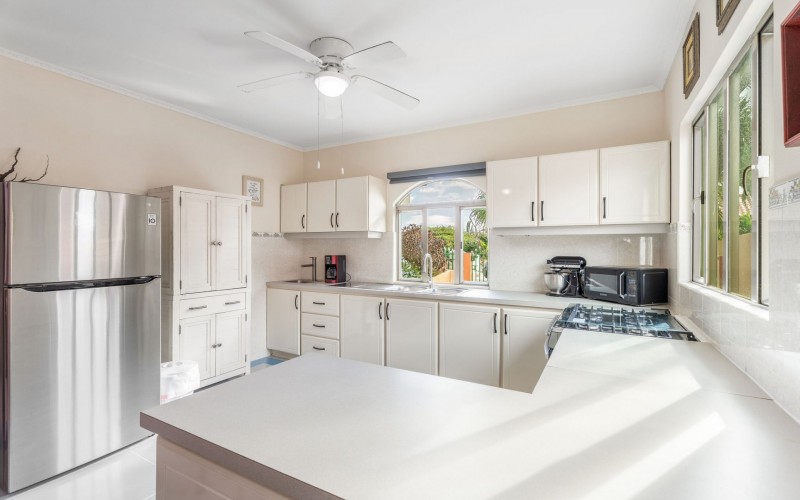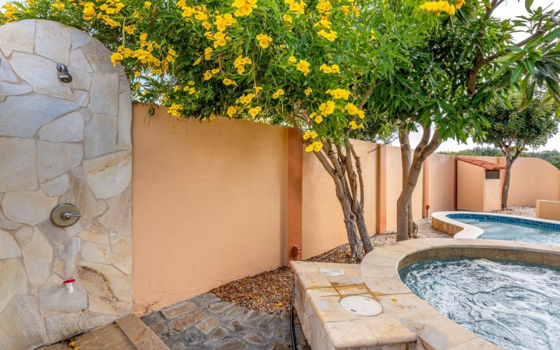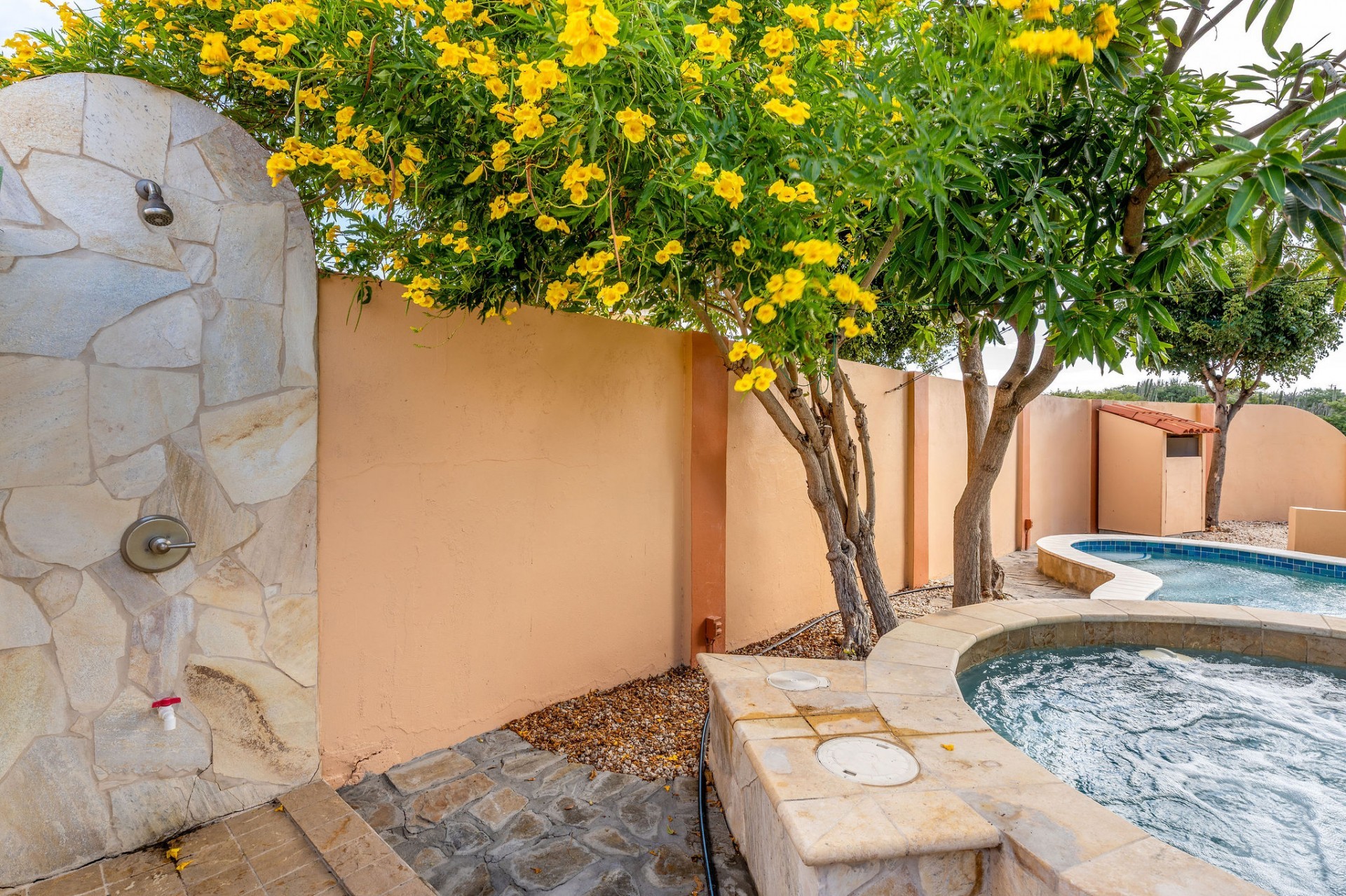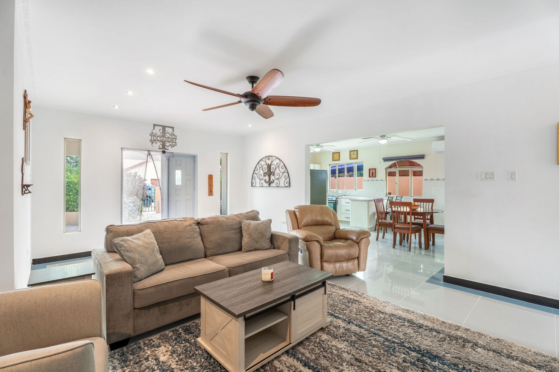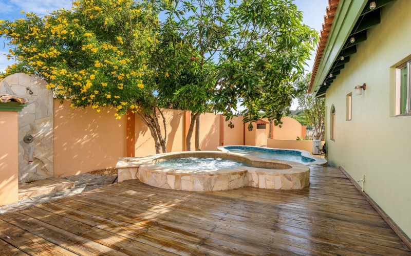 Spacious Family Home - Relaxed Living in Casibari Stones & Gardens Welcome to this beautiful family residence located in the peaceful and well-established Casibari Stones & Gardens community, just moments away from the iconic Casibari Rock Formations. This charming neighborhood is known for its tranquility, natural surroundings, and central location, making it an ideal place for comfortable (family) living on Aruba. Set on 478 m² of property land, this spacious home is thoughtfully designed with a practical and inviting layout. The residence features 4 bedrooms and 3 bathrooms, two of which offer en-suite bathrooms, offering both privacy and functionality for families or guests. At the heart of the home is a bright open-concept living, dining, and kitchen area, creating a natural flow that is perfect for everyday family life as well as entertaining. The generous proportions throughout the house contribute to a comfortable and airy atmosphere. Build on the wind, with several doors and windows to open, the house always has a fresh breeze going through it! Surrounding the home are multiple outdoor lounge areas, allowing you to enjoy the peaceful ambiance of Casibari Stones & Gardens at any time of day. The beautifully landscaped garden features mature trees, lush plants, palm trees and even a mango tree, creating a private and serene outdoor setting. A true highlight of this property is the outdoor relaxation area, which includes both a jacuzzi-style pool and a separate swimming pool, making it the perfect place to unwind, cool off, and enjoy Aruba’s year-round sunshine. The home also includes a dedicated laundry area and is fully fenced, offering privacy, security, and peace of mind. The property is well maintained, move-in ready, and prepared to welcome its new owners. Furniture can be taken over as an option, providing additional convenience for buyers seeking a smooth transition. Property Highlights Located in the quiet and desirable Casibari Stones & Gardens Residence Close to the Casibari Rock Formations Ideal family home 4 bedrooms | 3 bathrooms Two bedrooms with en-suite bathrooms Open-concept living, dining & kitchen area On property parking possibilty Multiple outdoor lounge spaces Beautifully landscaped garden with mature trees & palm trees Jacuzzi-style pool plus a separate swimming pool Fully fenced property Furniture takeover optional Move-in ready condition This residence in Casibari Stones & Gardens offers the perfect balance between comfort, space, and tranquility, making it an excellent choice for families looking to settle into a relaxed and well-connected community. Are you interested, or want to know more about this property? Contact Ruben Metz for a viewing! (+297) 568 6490