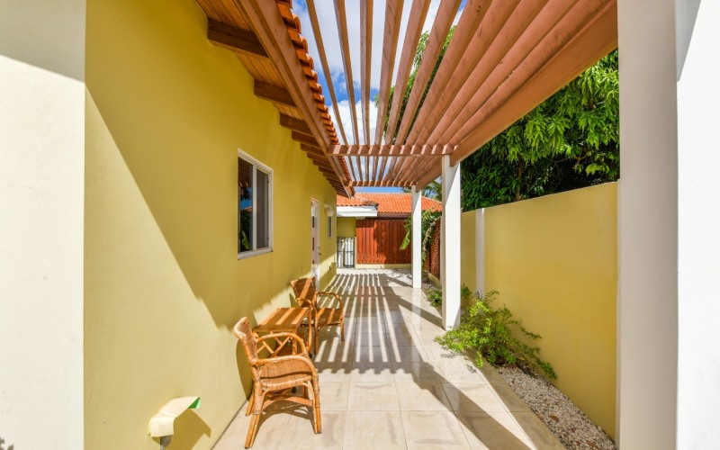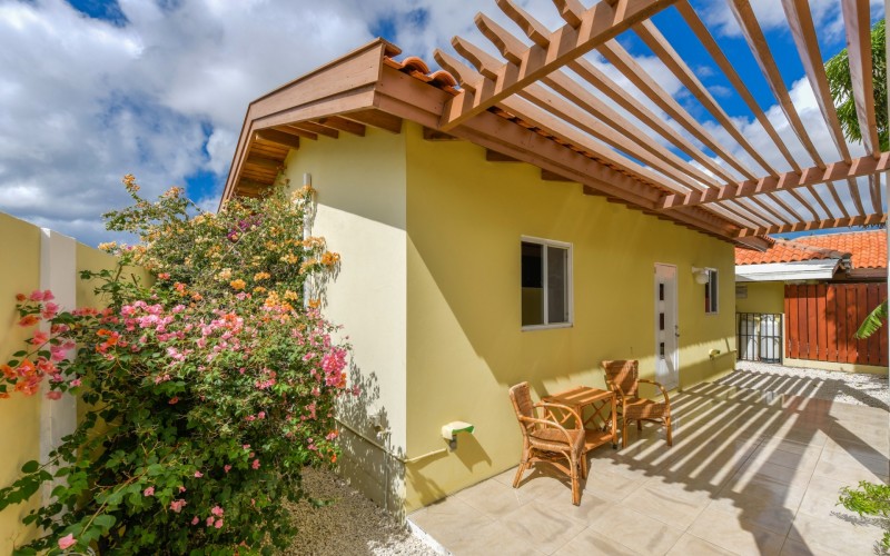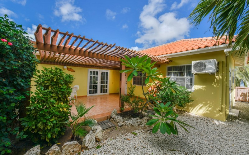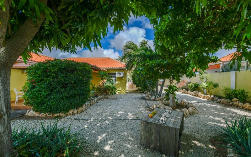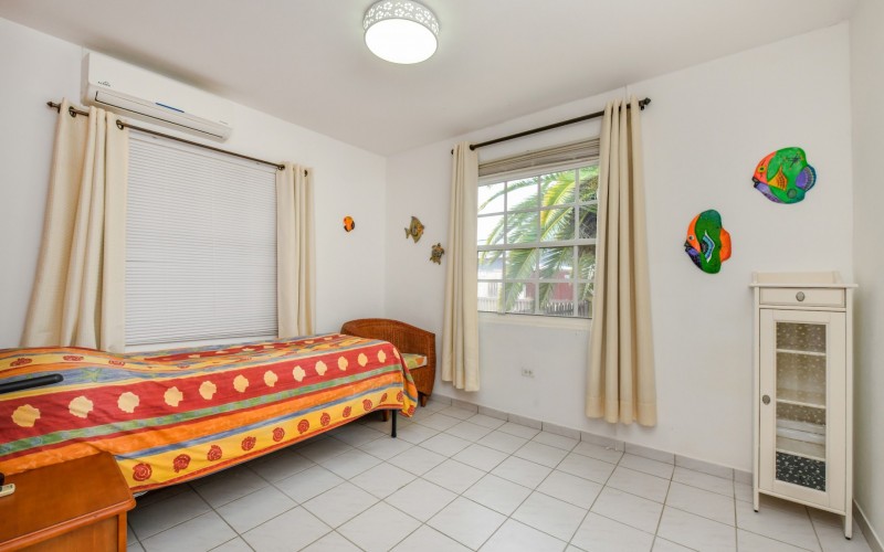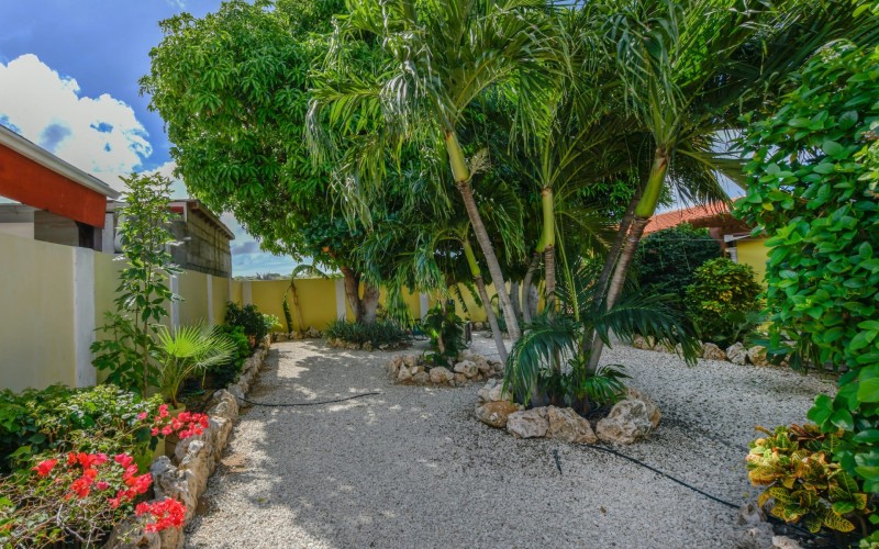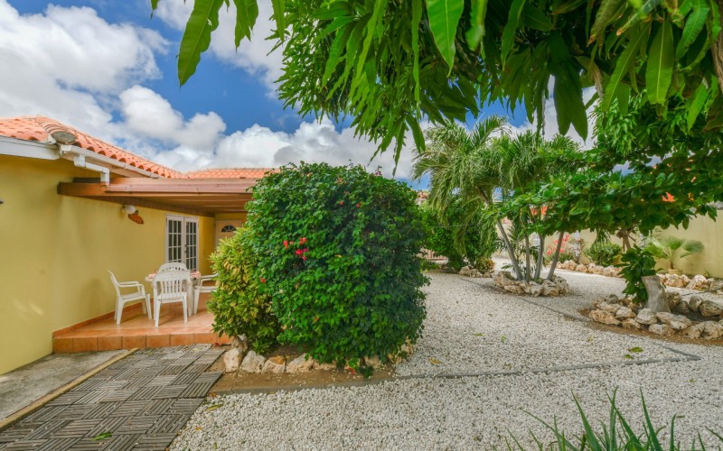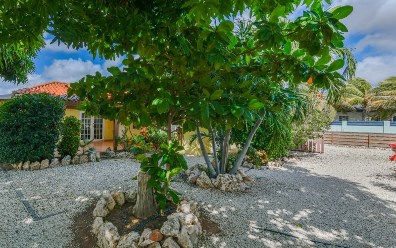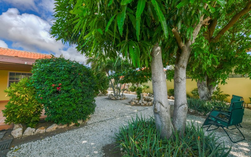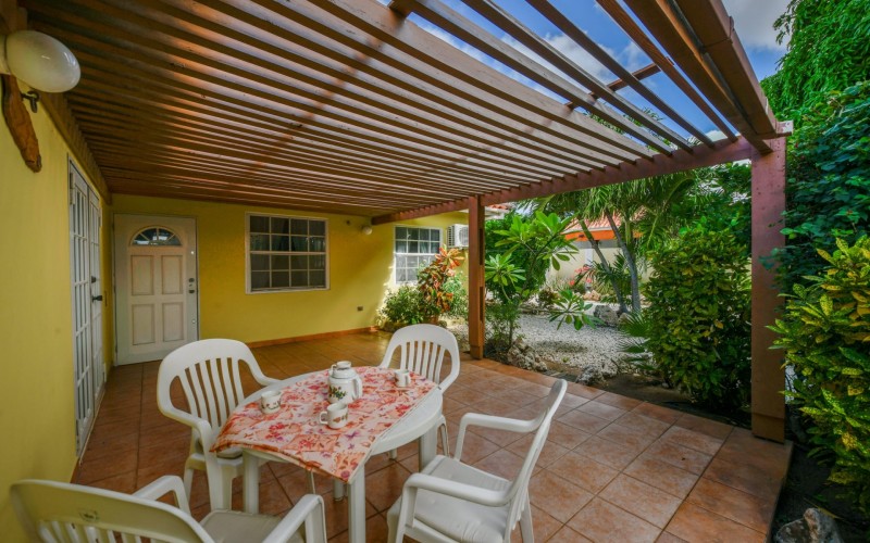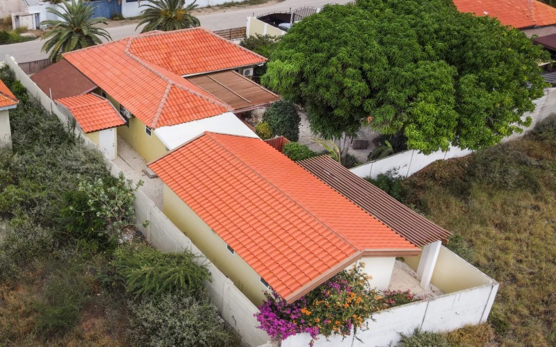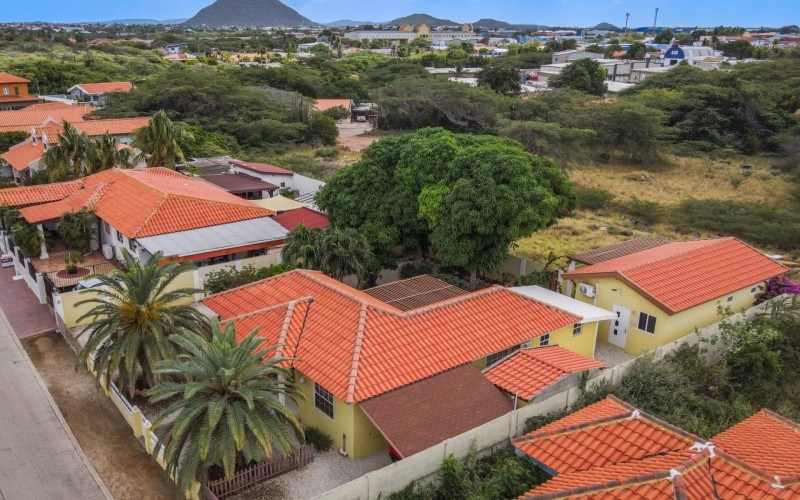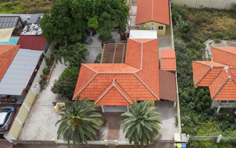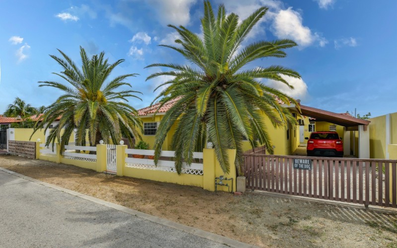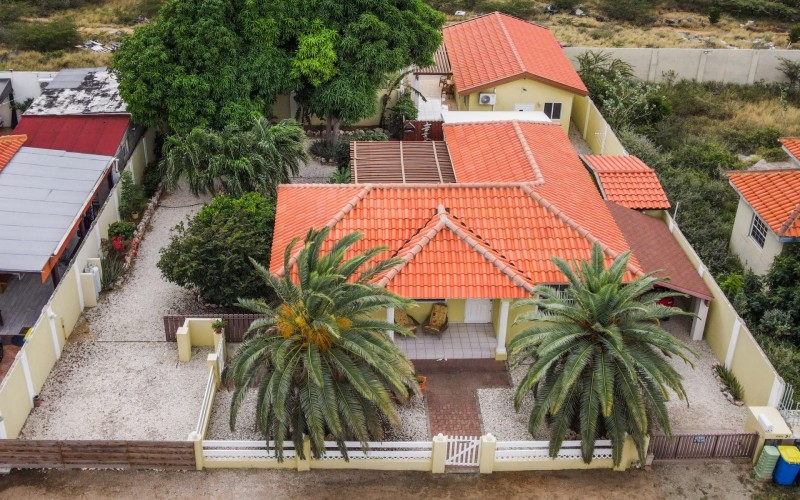 Beautiful 2-Bedroom Home with 1-Bedroom Apartment in a Quiet Residential Area Located in the peaceful residential area of San Barbola, centrally located and only about 5 minutes from Surfside Beach, this charming property offers two residences on one private property for one price - allowing you to live in one and rent out the other. Both residences are fully independent and situated on 602 m² of property land, providing privacy, space, and flexibility. The main house (87 m²) offers a comfortable open living area, a functional kitchen, and two bedrooms with two bathrooms, creating a welcoming environment for everyday living. The master bedroom features patio doors that open to the porch, overlooking the green tropical garden where hummingbirds and Aruba’s famous Prikichi parrots can often be seen. The separate apartment (49 m²) includes its own living area, kitchen, one bedroom, and two full bathrooms. The living room also features a comfortable sleeping sofa, making it suitable for accommodating additional guests. This space is ideal as guest accommodation, a home office, or a rental. Each residence has its own private entrance, fencing, and dedicated parking space, ensuring excellent privacy for residents. The apartment also includes a covered carport. Both the main home and apartment have separate utilities for water, electricity, gas, and cable, allowing them to function completely independently. The property features a beautiful tropical garden filled with colorful plants, fruit trees, and two large mango trees that provide natural shade and a relaxing atmosphere. Multiple seating areas throughout the garden create the perfect setting for enjoying Aruba’s outdoor lifestyle. An automatic drip irrigation system keeps the garden healthy and vibrant year-round with minimal maintenance, even when the owners are off island. The spacious yard also offers ample room to add a swimming pool, allowing the future owner to further enhance this outdoor oasis. Key Features 602 m² property land 136 m² built-up size (87 m² main house, 49 m² apartment) Total of 3 bedrooms and 4 bathrooms Fully air-conditioned Separate one-bedroom apartment with two bathrooms Two laundry rooms with their own hot water boilers Separate utilities and meters for water and electricity and separate gas installations Apartment with private carport and separate entrance Fully fenced property with alarm system Beautiful tropical garden with mango and fruit trees Automatic drip irrigation system Whether you are looking for a comfortable family home with guest accommodation or a smart investment opportunity to live in one unit and rent the other, this charming property offers the perfect combination of functionality, privacy, and value. Contact us today for more information or to schedule a viewing. Bibi Louwers 📞 +297 569 7343 📧