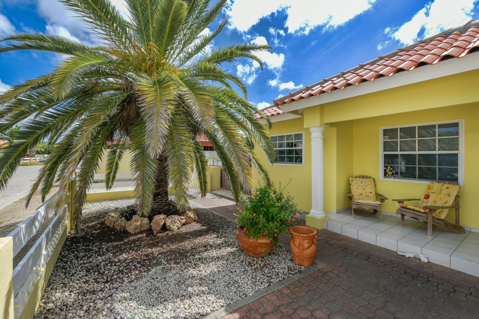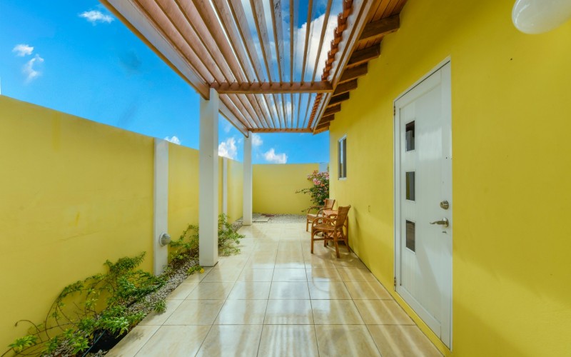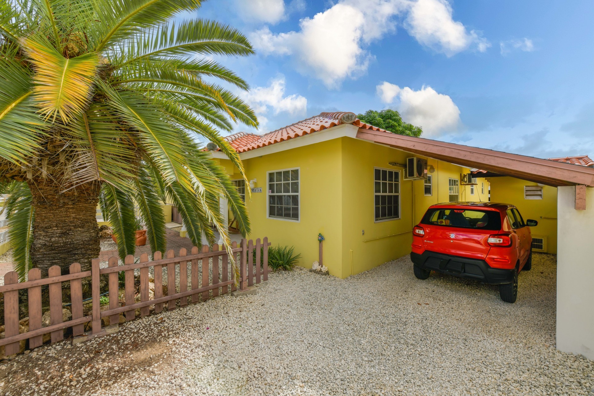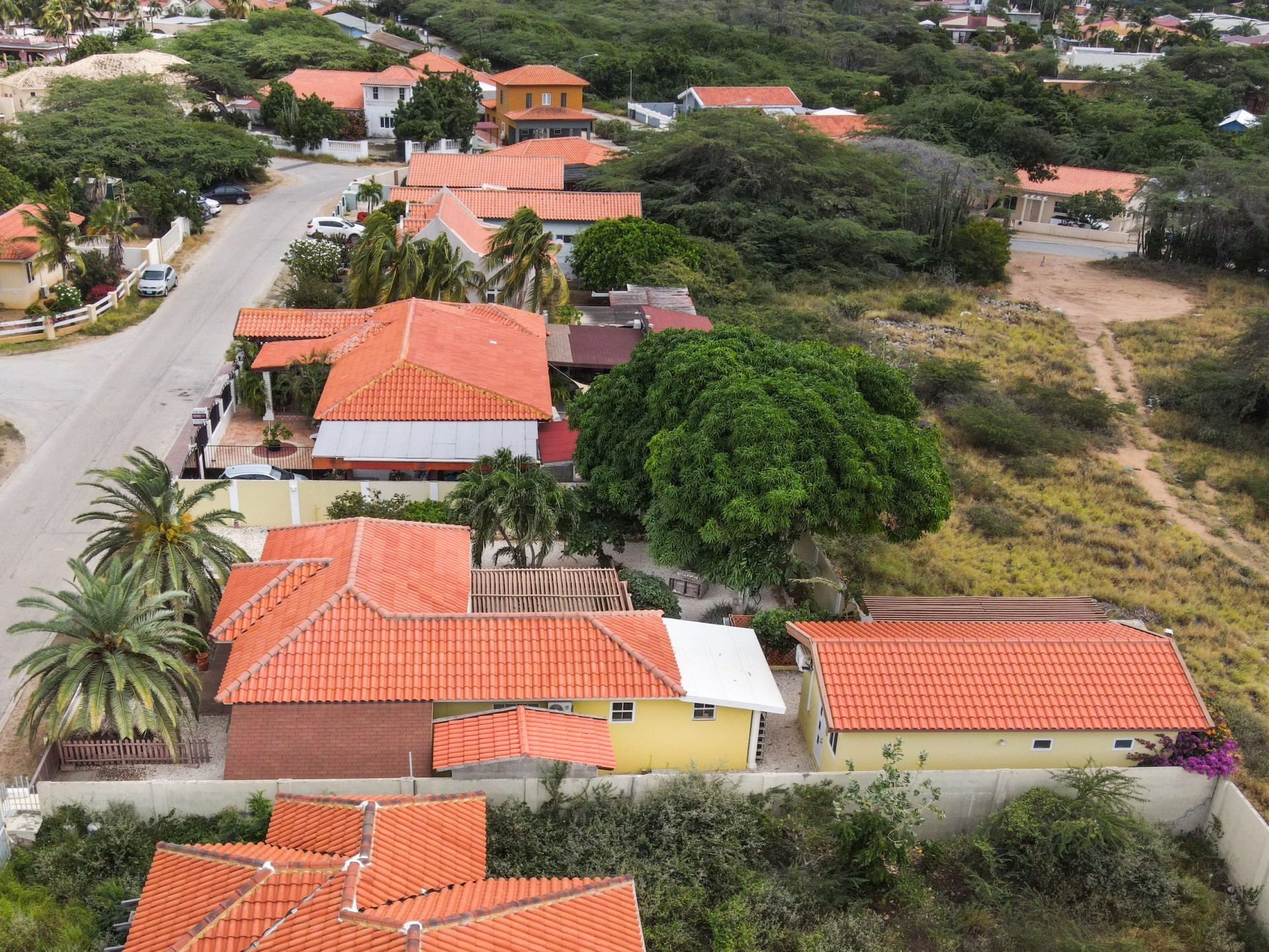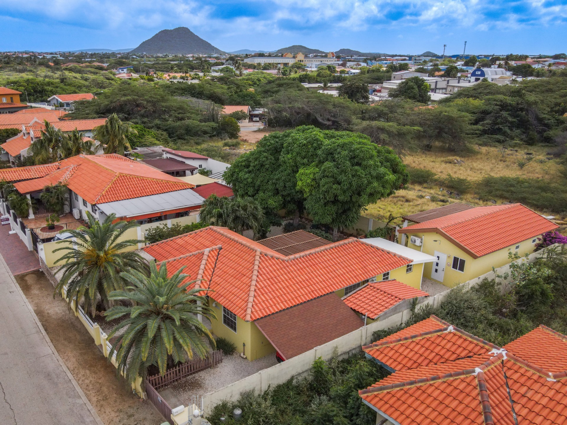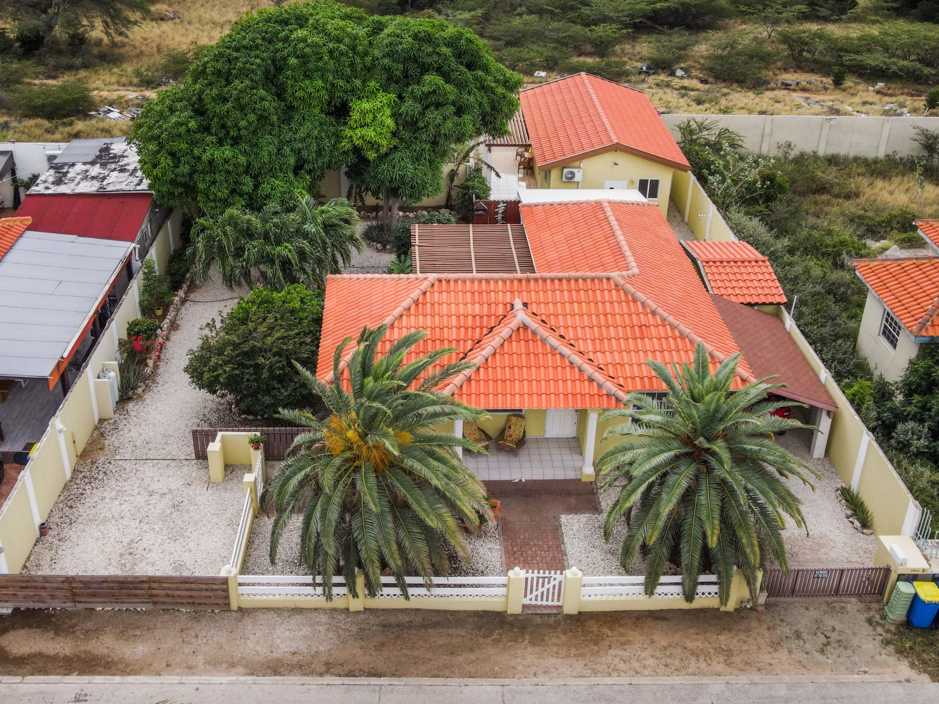 Beautiful 2-Bedroom Home with 1-Bedroom Apartment in a Quiet Residential Area Located in the peaceful residential area of San Barbola, centrally located and only about 5 minutes from Surfside Beach, this charming property offers two residences on one private property for one price - allowing you to live in one and rent out the other. Both residences are fully independent and situated on 602 m² of property land, providing privacy, space, and flexibility. The main house (87 m²) offers a comfortable open living area, a functional kitchen, and two bedrooms with two bathrooms, creating a welcoming environment for everyday living. The master bedroom features patio doors that open to the porch, overlooking the green tropical garden where hummingbirds and Aruba’s famous Prikichi parrots can often be seen. The separate apartment (49 m²) includes its own living area, kitchen, one bedroom, and two full bathrooms. The living room also features a comfortable sleeping sofa, making it suitable for accommodating additional guests. This space is ideal as guest accommodation, a home office, or a rental. Each residence has its own private entrance, fencing, and dedicated parking space, ensuring excellent privacy for residents. The apartment also includes a covered carport. Both the main home and apartment have separate utilities for water, electricity, gas, and cable, allowing them to function completely independently. The property features a beautiful tropical garden filled with colorful plants, fruit trees, and two large mango trees that provide natural shade and a relaxing atmosphere. Multiple seating areas throughout the garden create the perfect setting for enjoying Aruba’s outdoor lifestyle. An automatic drip irrigation system keeps the garden healthy and vibrant year-round with minimal maintenance, even when the owners are off island. The spacious yard also offers ample room to add a swimming pool, allowing the future owner to further enhance this outdoor oasis. Key Features 602 m² property land 136 m² built-up size (87 m² main house, 49 m² apartment) Total of 3 bedrooms and 4 bathrooms Fully air-conditioned Separate one-bedroom apartment with two bathrooms Two laundry rooms with their own hot water boilers Separate utilities and meters for water and electricity and separate gas installations Apartment with private carport and separate entrance Fully fenced property with alarm system Beautiful tropical garden with mango and fruit trees Automatic drip irrigation system Whether you are looking for a comfortable family home with guest accommodation or a smart investment opportunity to live in one unit and rent the other, this charming property offers the perfect combination of functionality, privacy, and value. Contact us today for more information or to schedule a viewing. Bibi Louwers 📞 +297 569 7343 📧