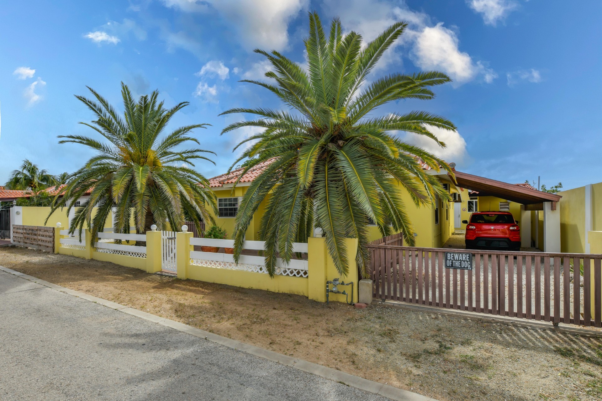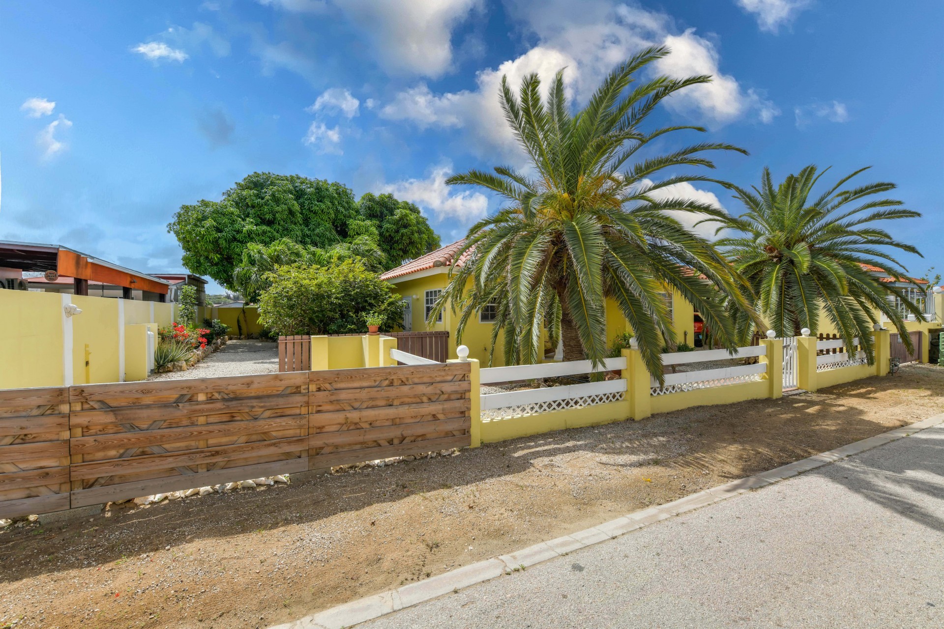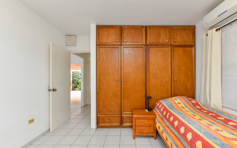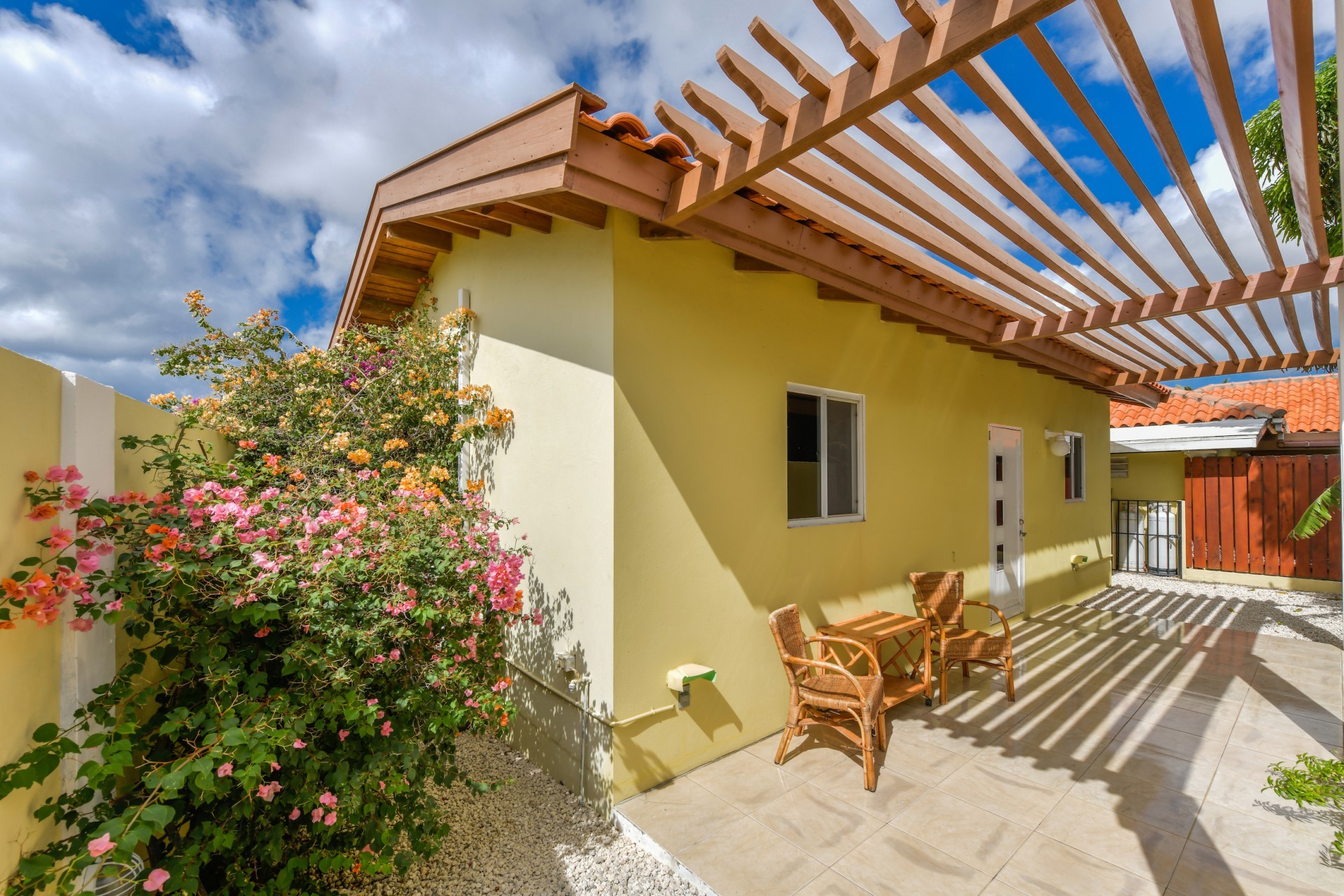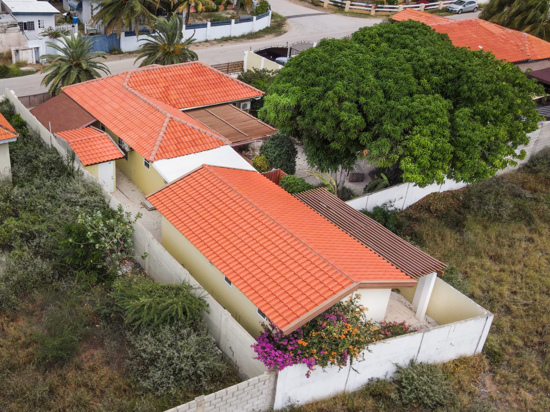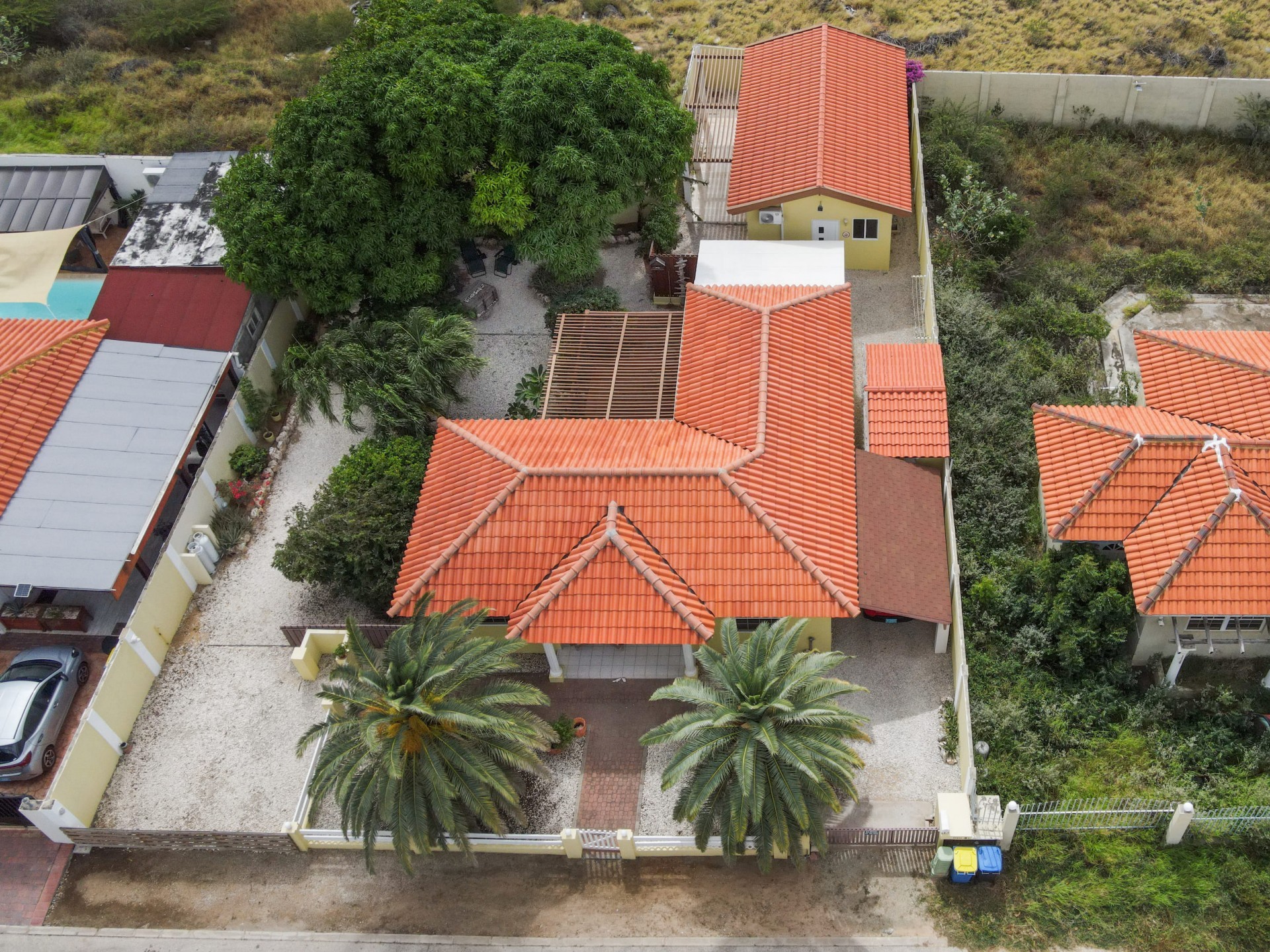 Beautiful 2-Bedroom Home with 1-Bedroom Apartment in a Quiet Residential Area Located in the peaceful residential area of San Barbola, centrally located and only about 5 minutes from Surfside Beach, this charming property offers two residences on one private property for one price - allowing you to live in one and rent out the other. Both residences are fully independent and situated on 602 m² of property land, providing privacy, space, and flexibility. The main house (87 m²) offers a comfortable open living area, a functional kitchen, and two bedrooms with two bathrooms, creating a welcoming environment for everyday living. The master bedroom features patio doors that open to the porch, overlooking the green tropical garden where hummingbirds and Aruba’s famous Prikichi parrots can often be seen. The separate apartment (49 m²) includes its own living area, kitchen, one bedroom, and two full bathrooms. The living room also features a comfortable sleeping sofa, making it suitable for accommodating additional guests. This space is ideal as guest accommodation, a home office, or a rental. Each residence has its own private entrance, fencing, and dedicated parking space, ensuring excellent privacy for residents. The apartment also includes a covered carport. Both the main home and apartment have separate utilities for water, electricity, gas, and cable, allowing them to function completely independently. The property features a beautiful tropical garden filled with colorful plants, fruit trees, and two large mango trees that provide natural shade and a relaxing atmosphere. Multiple seating areas throughout the garden create the perfect setting for enjoying Aruba’s outdoor lifestyle. An automatic drip irrigation system keeps the garden healthy and vibrant year-round with minimal maintenance, even when the owners are off island. The spacious yard also offers ample room to add a swimming pool, allowing the future owner to further enhance this outdoor oasis. Key Features 602 m² property land 136 m² built-up size (87 m² main house, 49 m² apartment) Total of 3 bedrooms and 4 bathrooms Fully air-conditioned Separate one-bedroom apartment with two bathrooms Two laundry rooms with their own hot water boilers Separate utilities and meters for water and electricity and separate gas installations Apartment with private carport and separate entrance Fully fenced property with alarm system Beautiful tropical garden with mango and fruit trees Automatic drip irrigation system Whether you are looking for a comfortable family home with guest accommodation or a smart investment opportunity to live in one unit and rent the other, this charming property offers the perfect combination of functionality, privacy, and value. Contact us today for more information or to schedule a viewing. Bibi Louwers 📞 +297 569 7343 📧