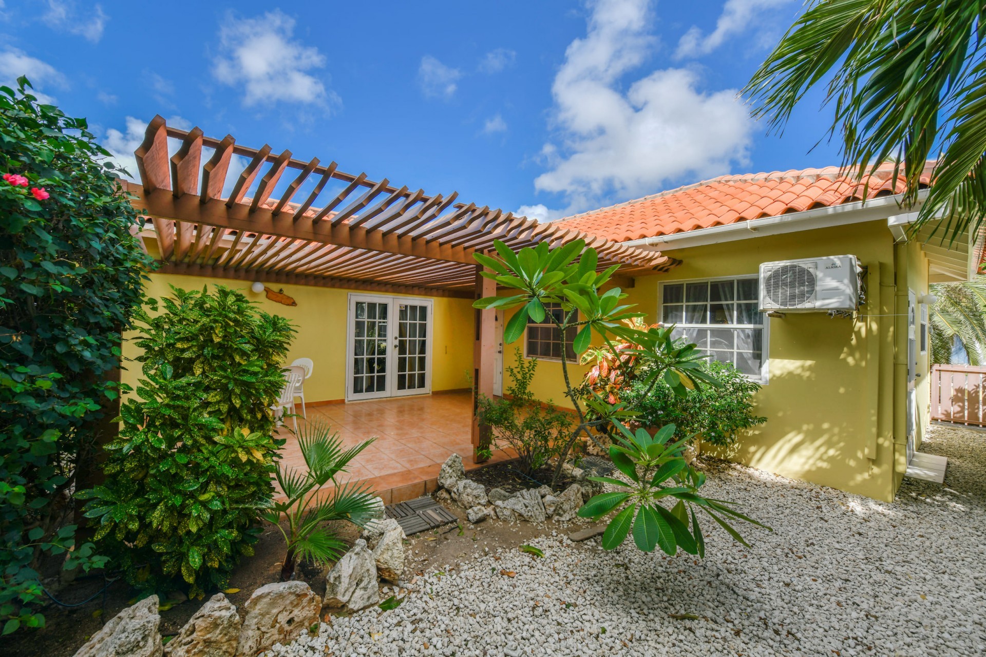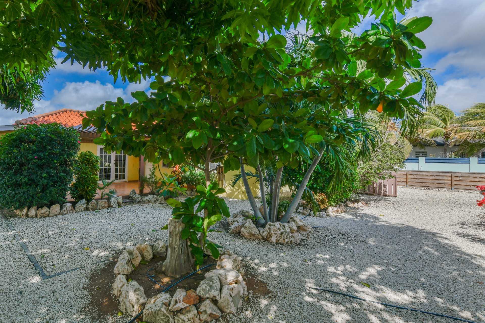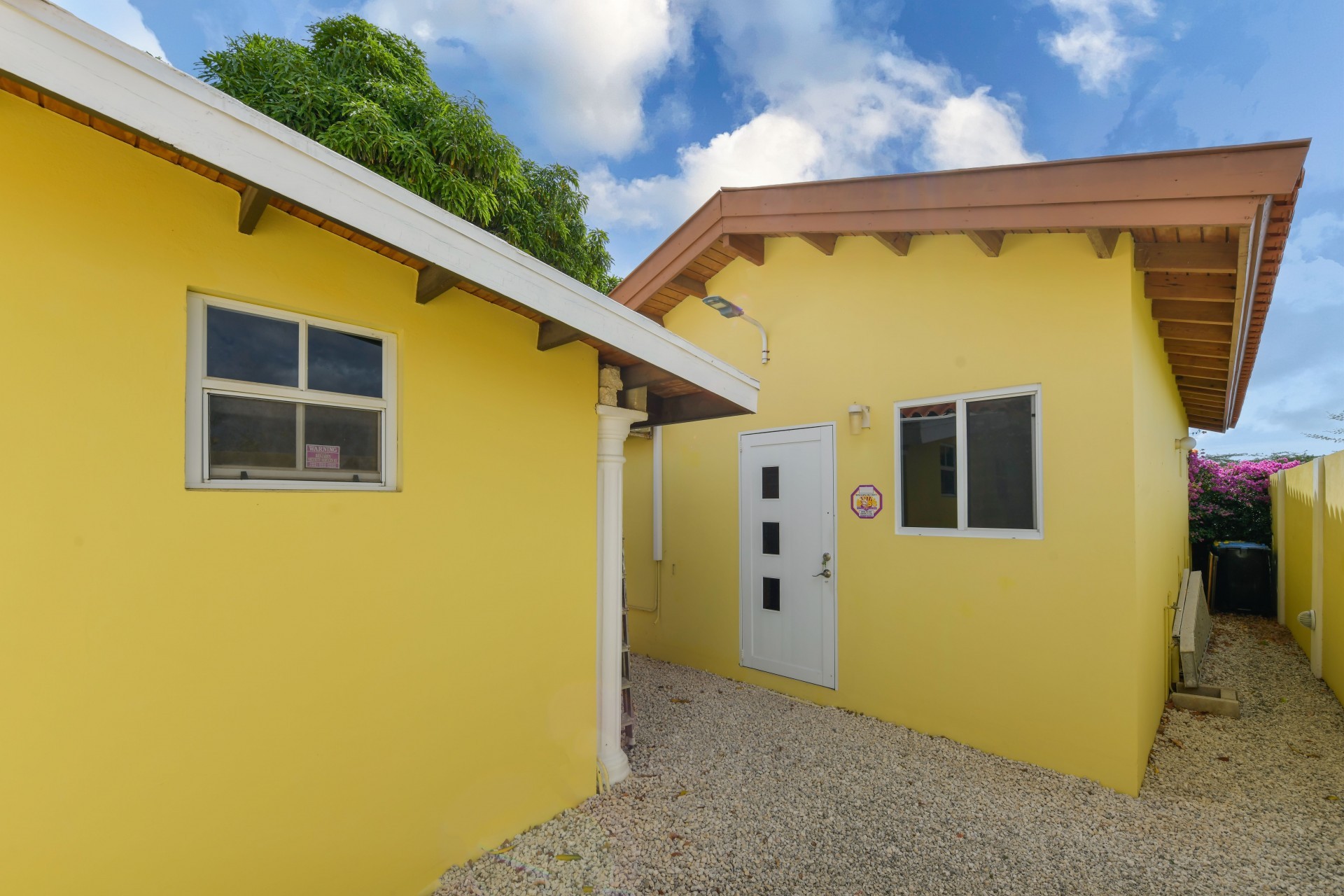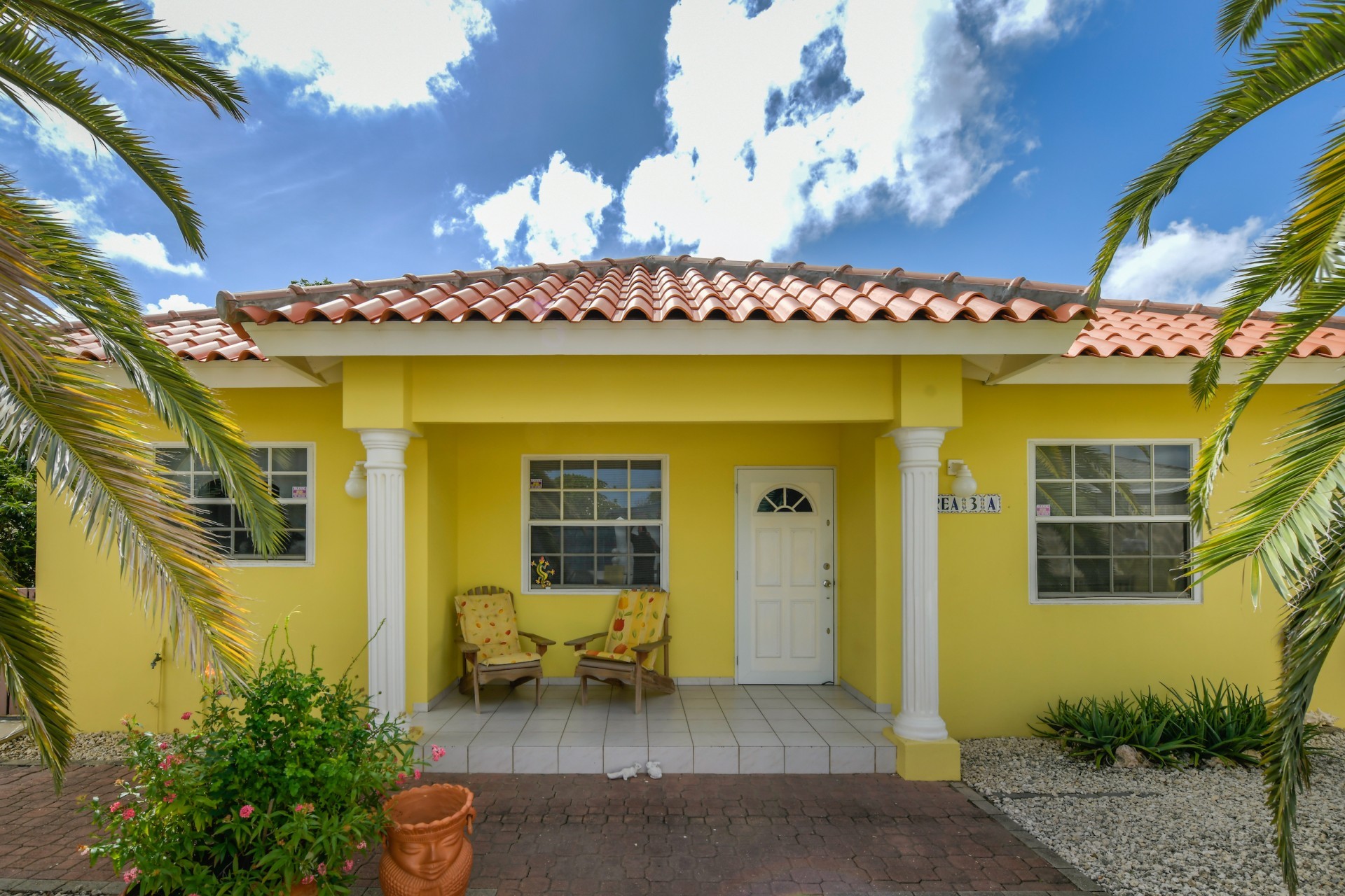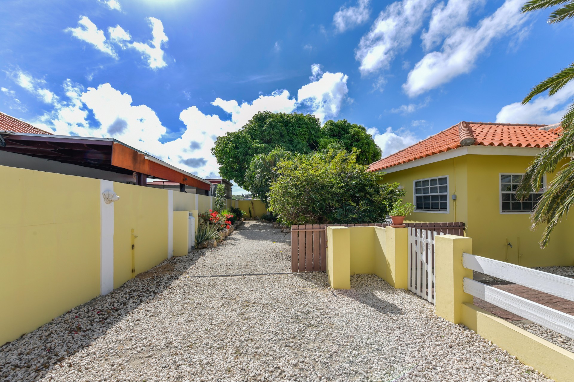 Beautiful 2-Bedroom Home with 1-Bedroom Apartment in a Quiet Residential Area Located in the peaceful residential area of San Barbola, centrally located and only about 5 minutes from Surfside Beach, this charming property offers two residences on one private property for one price - allowing you to live in one and rent out the other. Both residences are fully independent and situated on 602 m² of property land, providing privacy, space, and flexibility. The main house (87 m²) offers a comfortable open living area, a functional kitchen, and two bedrooms with two bathrooms, creating a welcoming environment for everyday living. The master bedroom features patio doors that open to the porch, overlooking the green tropical garden where hummingbirds and Aruba’s famous Prikichi parrots can often be seen. The separate apartment (49 m²) includes its own living area, kitchen, one bedroom, and two full bathrooms. The living room also features a comfortable sleeping sofa, making it suitable for accommodating additional guests. This space is ideal as guest accommodation, a home office, or a rental. Each residence has its own private entrance, fencing, and dedicated parking space, ensuring excellent privacy for residents. The apartment also includes a covered carport. Both the main home and apartment have separate utilities for water, electricity, gas, and cable, allowing them to function completely independently. The property features a beautiful tropical garden filled with colorful plants, fruit trees, and two large mango trees that provide natural shade and a relaxing atmosphere. Multiple seating areas throughout the garden create the perfect setting for enjoying Aruba’s outdoor lifestyle. An automatic drip irrigation system keeps the garden healthy and vibrant year-round with minimal maintenance, even when the owners are off island. The spacious yard also offers ample room to add a swimming pool, allowing the future owner to further enhance this outdoor oasis. Key Features 602 m² property land 136 m² built-up size (87 m² main house, 49 m² apartment) Total of 3 bedrooms and 4 bathrooms Fully air-conditioned Separate one-bedroom apartment with two bathrooms Two laundry rooms with their own hot water boilers Separate utilities and meters for water and electricity and separate gas installations Apartment with private carport and separate entrance Fully fenced property with alarm system Beautiful tropical garden with mango and fruit trees Automatic drip irrigation system Whether you are looking for a comfortable family home with guest accommodation or a smart investment opportunity to live in one unit and rent the other, this charming property offers the perfect combination of functionality, privacy, and value. Contact us today for more information or to schedule a viewing. Bibi Louwers 📞 +297 569 7343 📧
