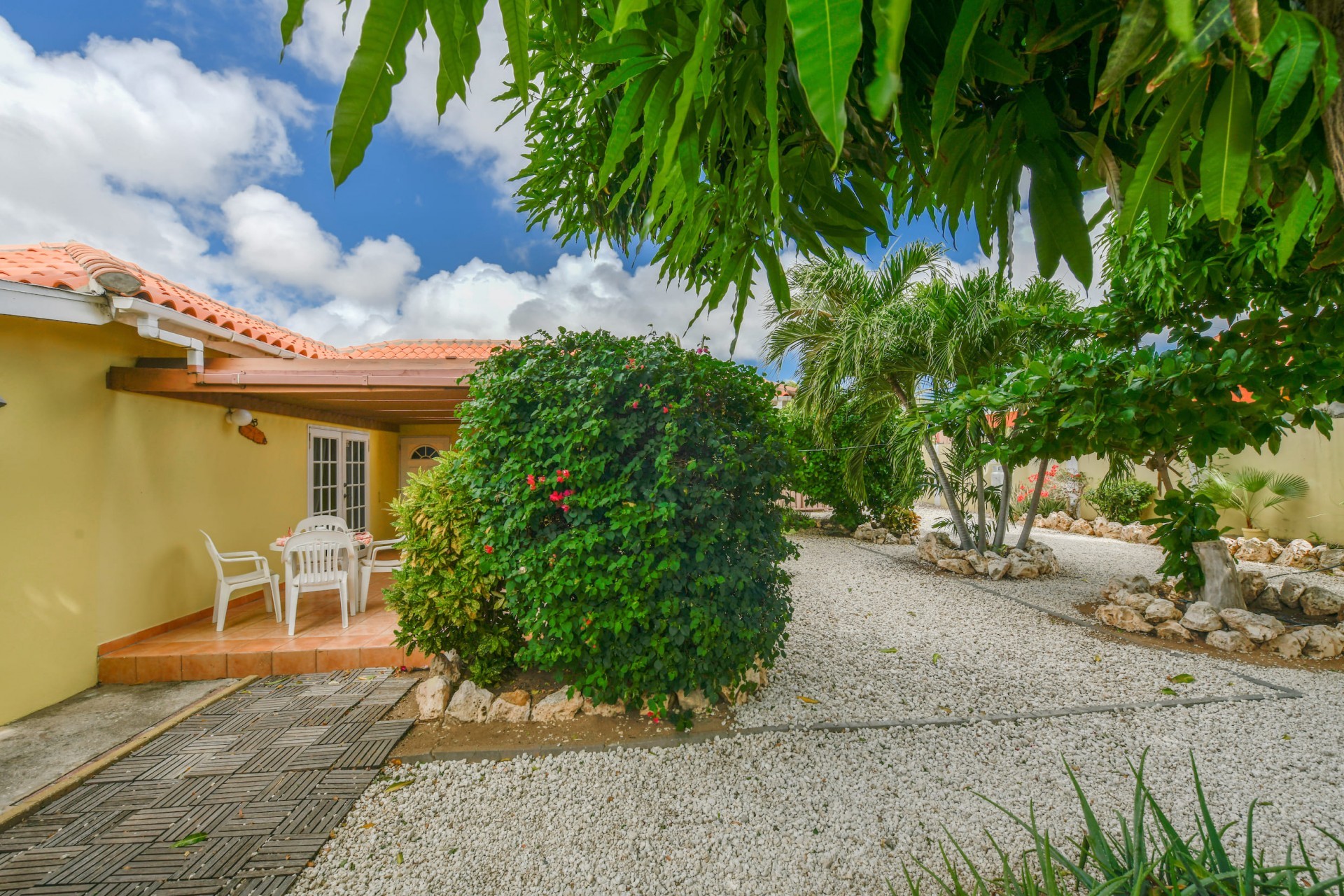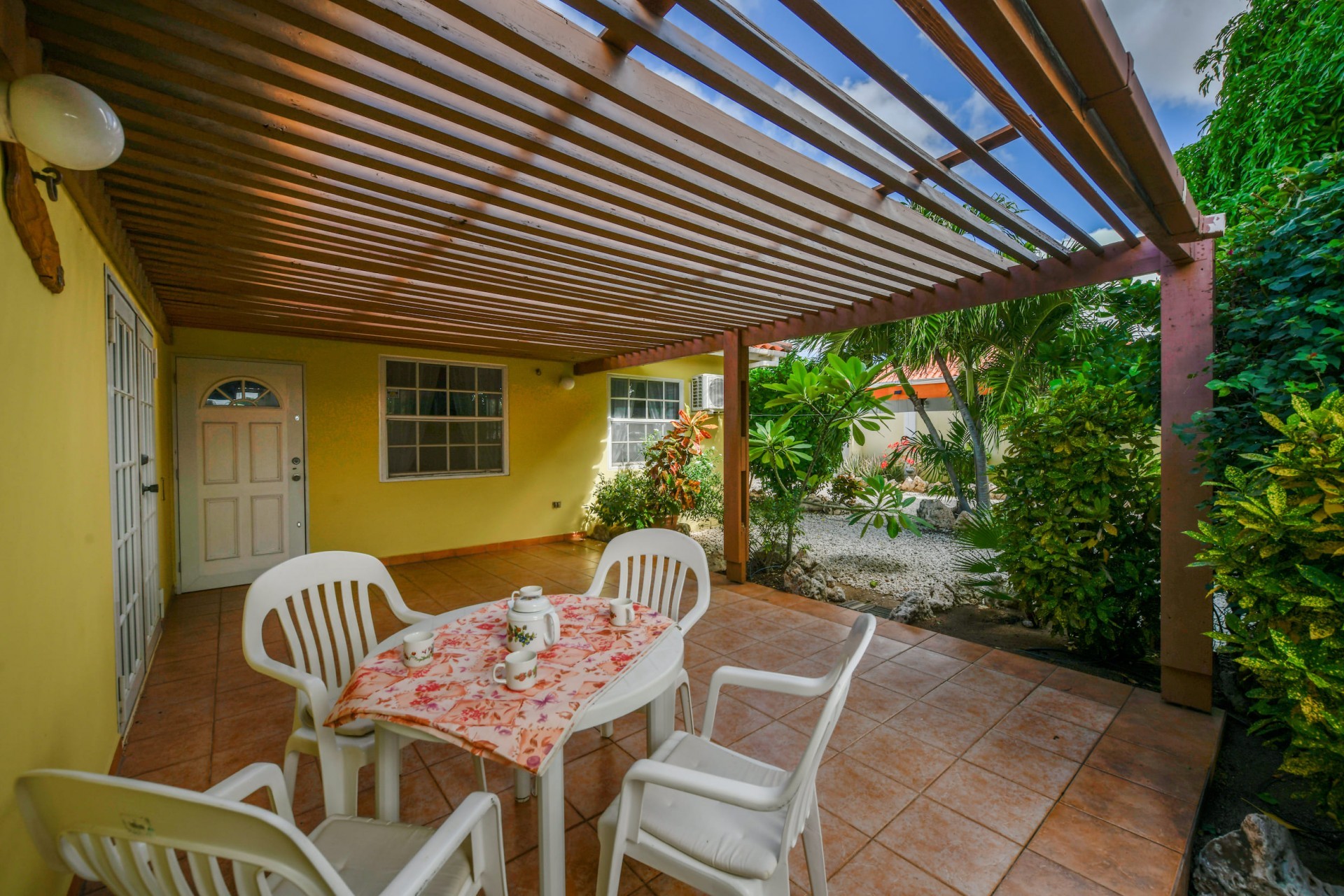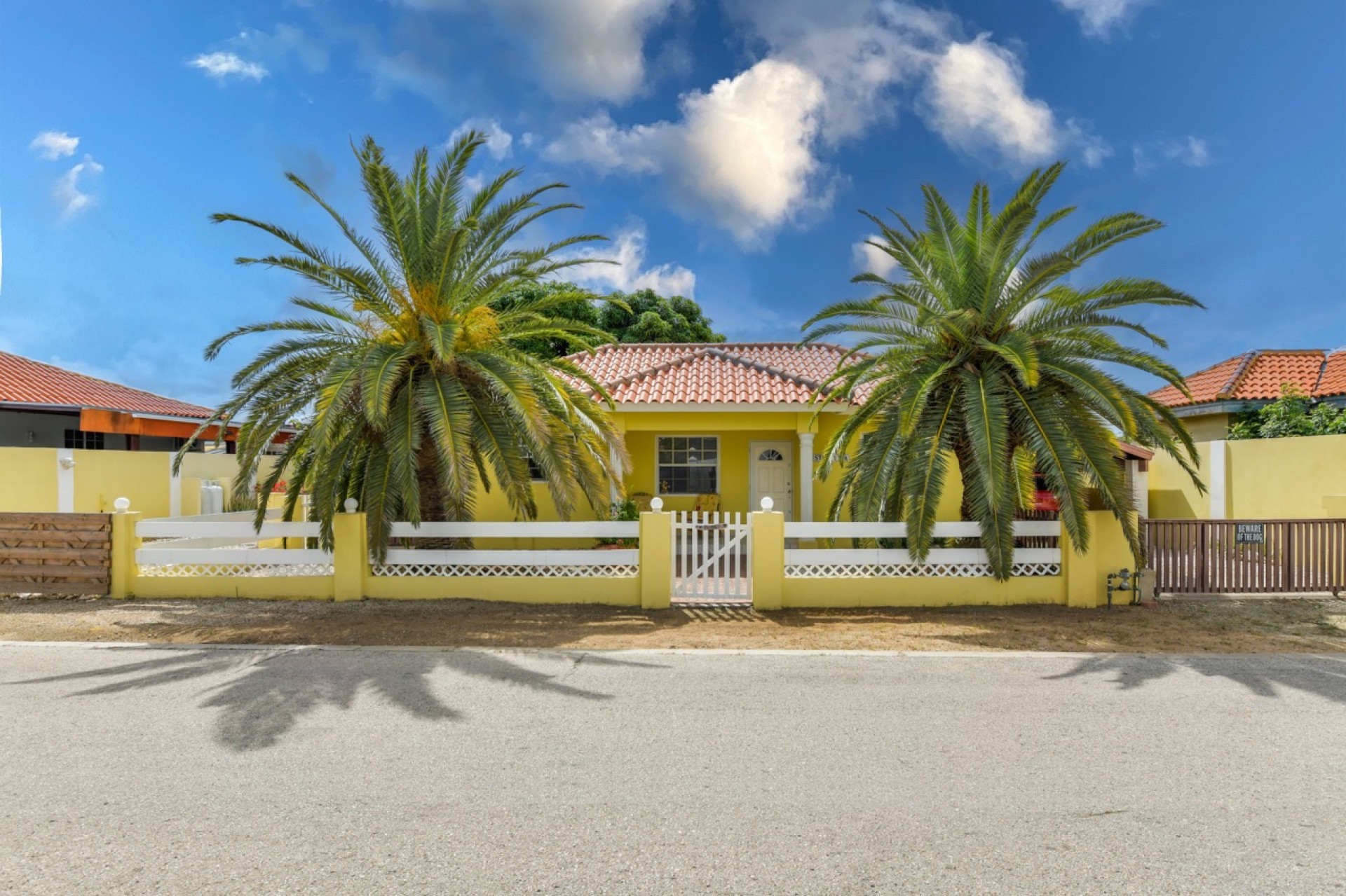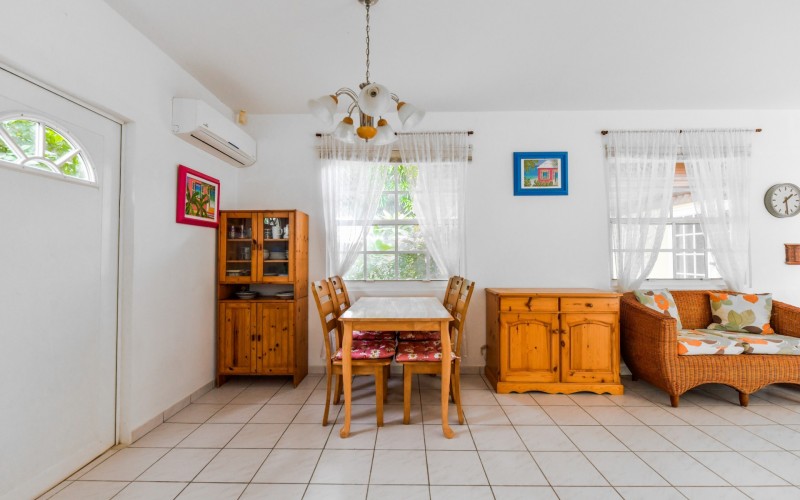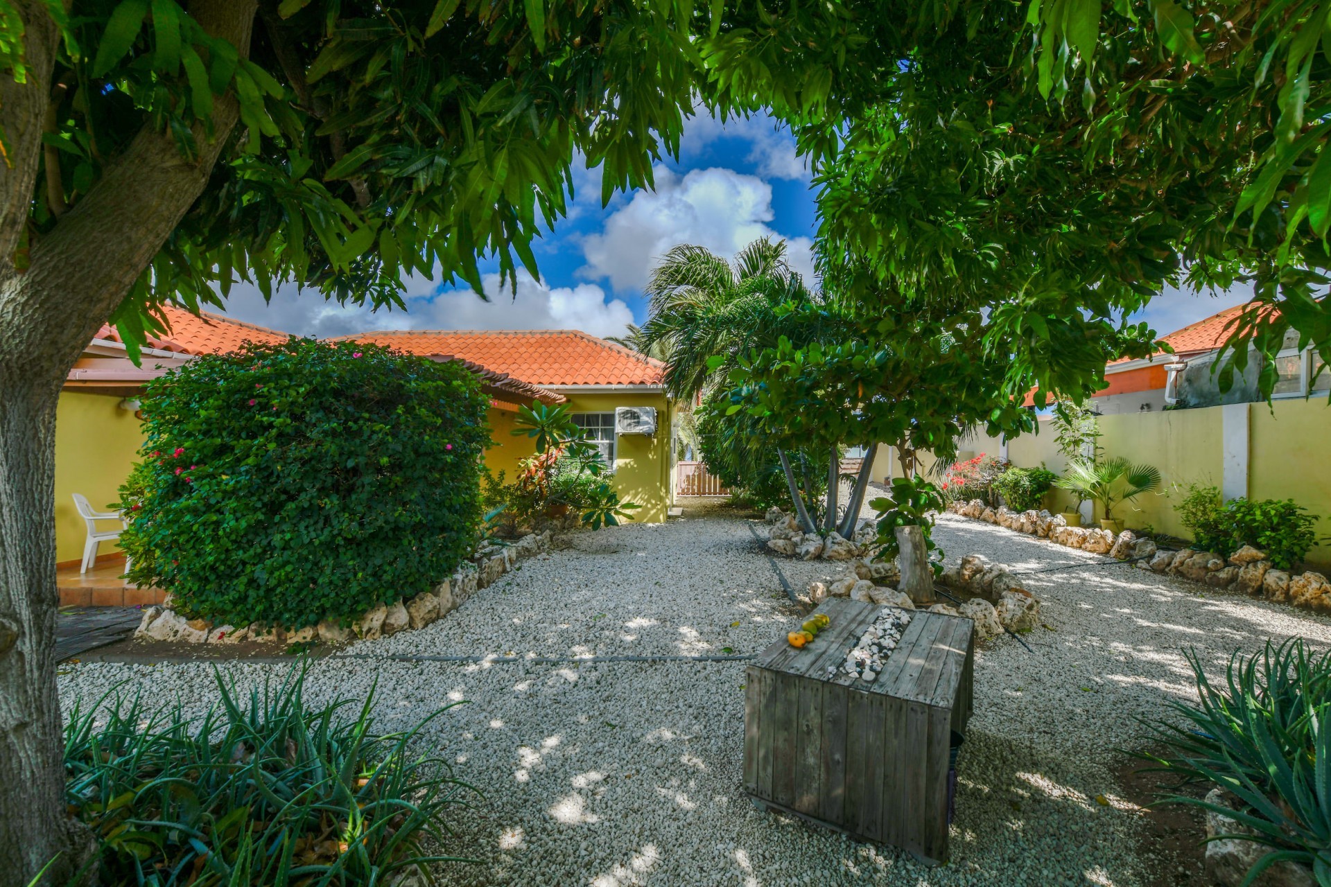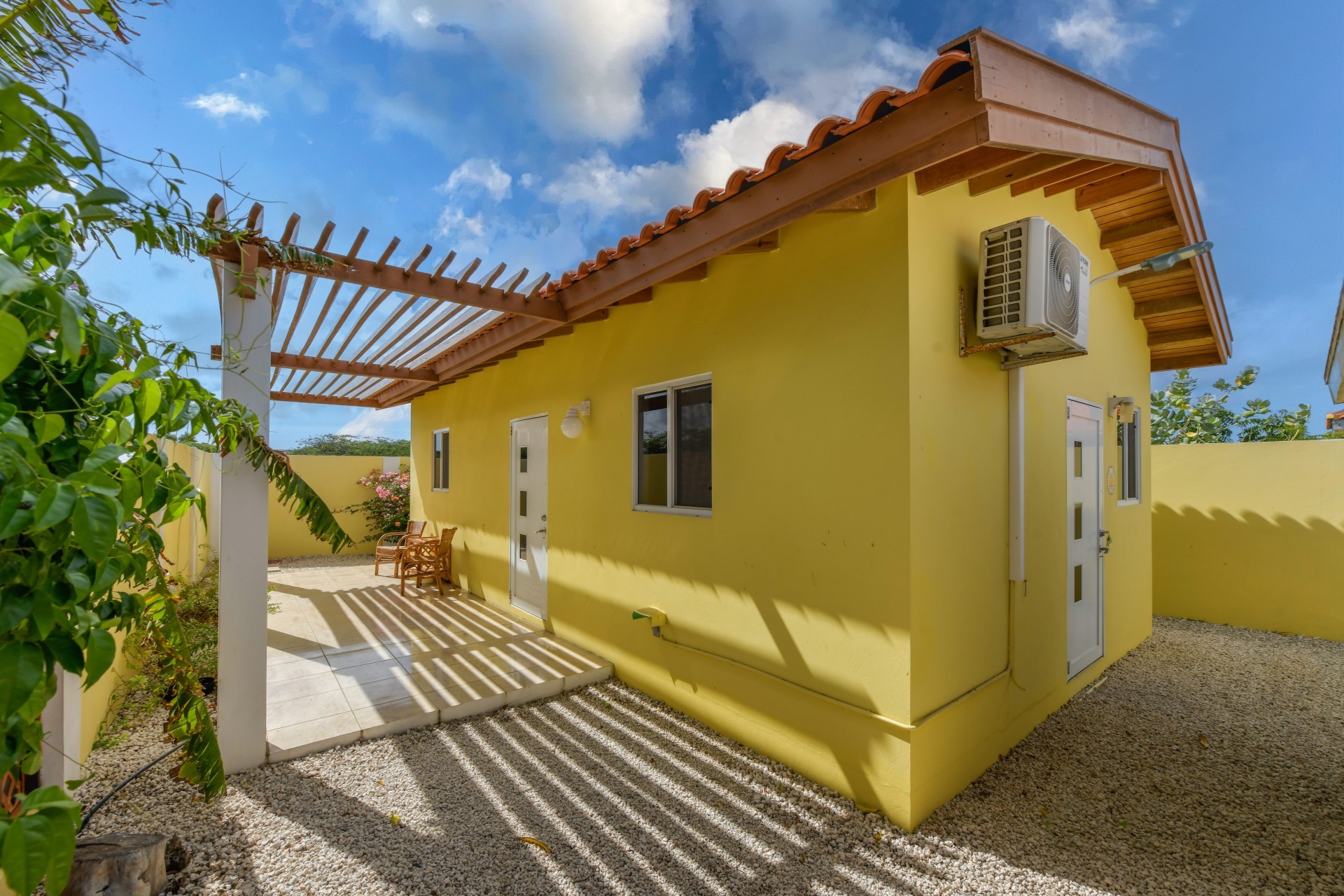 Beautiful 2-Bedroom Home with 1-Bedroom Apartment in a Quiet Residential Area Located in the peaceful residential area of San Barbola, centrally located and only about 5 minutes from Surfside Beach, this charming property offers two residences on one private property for one price - allowing you to live in one and rent out the other. Both residences are fully independent and situated on 602 m² of property land, providing privacy, space, and flexibility. The main house (87 m²) offers a comfortable open living area, a functional kitchen, and two bedrooms with two bathrooms, creating a welcoming environment for everyday living. The master bedroom features patio doors that open to the porch, overlooking the green tropical garden where hummingbirds and Aruba’s famous Prikichi parrots can often be seen. The separate apartment (49 m²) includes its own living area, kitchen, one bedroom, and two full bathrooms. The living room also features a comfortable sleeping sofa, making it suitable for accommodating additional guests. This space is ideal as guest accommodation, a home office, or a rental. Each residence has its own private entrance, fencing, and dedicated parking space, ensuring excellent privacy for residents. The apartment also includes a covered carport. Both the main home and apartment have separate utilities for water, electricity, gas, and cable, allowing them to function completely independently. The property features a beautiful tropical garden filled with colorful plants, fruit trees, and two large mango trees that provide natural shade and a relaxing atmosphere. Multiple seating areas throughout the garden create the perfect setting for enjoying Aruba’s outdoor lifestyle. An automatic drip irrigation system keeps the garden healthy and vibrant year-round with minimal maintenance, even when the owners are off island. The spacious yard also offers ample room to add a swimming pool, allowing the future owner to further enhance this outdoor oasis. Key Features 602 m² property land 136 m² built-up size (87 m² main house, 49 m² apartment) Total of 3 bedrooms and 4 bathrooms Fully air-conditioned Separate one-bedroom apartment with two bathrooms Two laundry rooms with their own hot water boilers Separate utilities and meters for water and electricity and separate gas installations Apartment with private carport and separate entrance Fully fenced property with alarm system Beautiful tropical garden with mango and fruit trees Automatic drip irrigation system Whether you are looking for a comfortable family home with guest accommodation or a smart investment opportunity to live in one unit and rent the other, this charming property offers the perfect combination of functionality, privacy, and value. Contact us today for more information or to schedule a viewing. Bibi Louwers 📞 +297 569 7343 📧