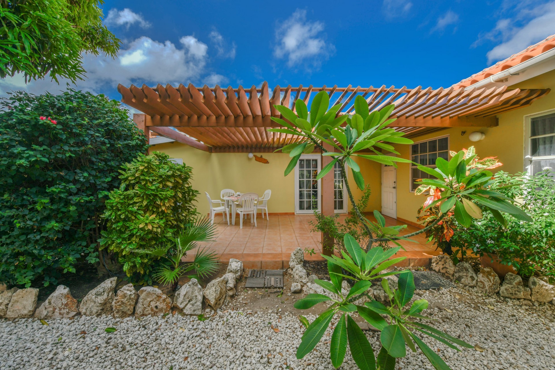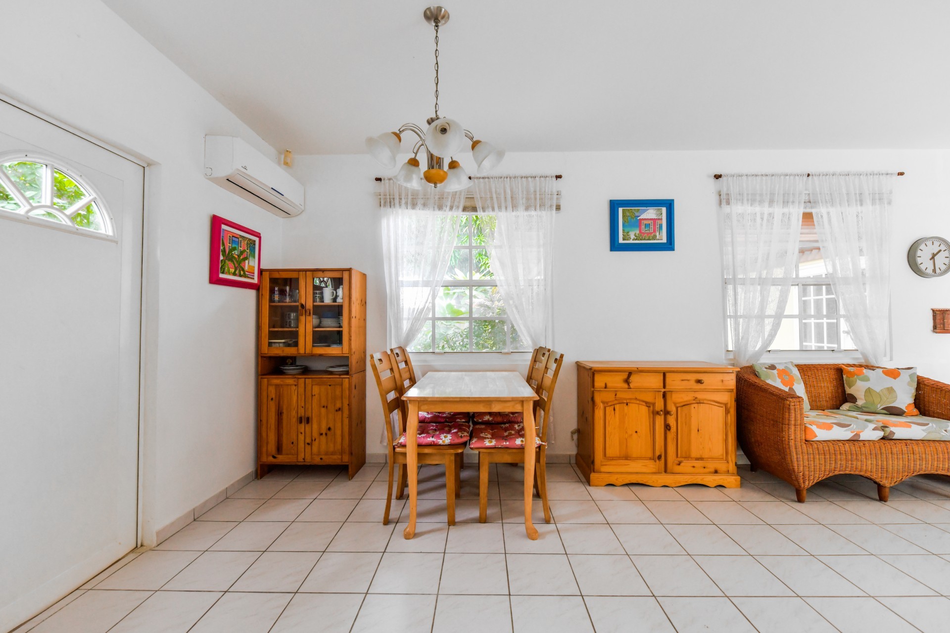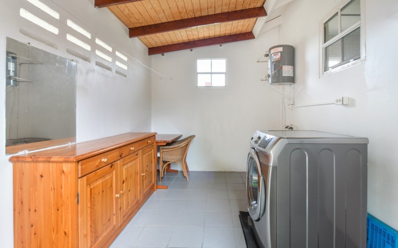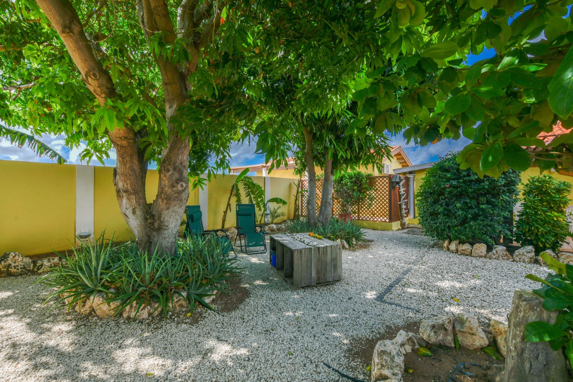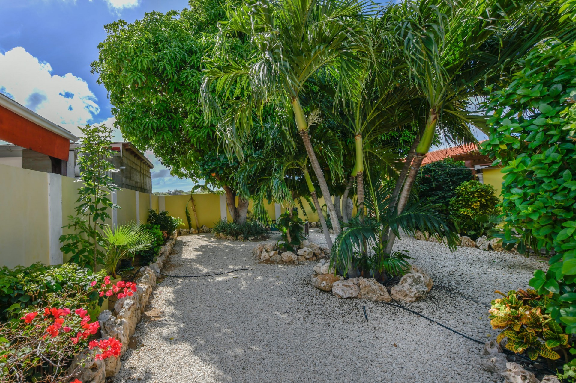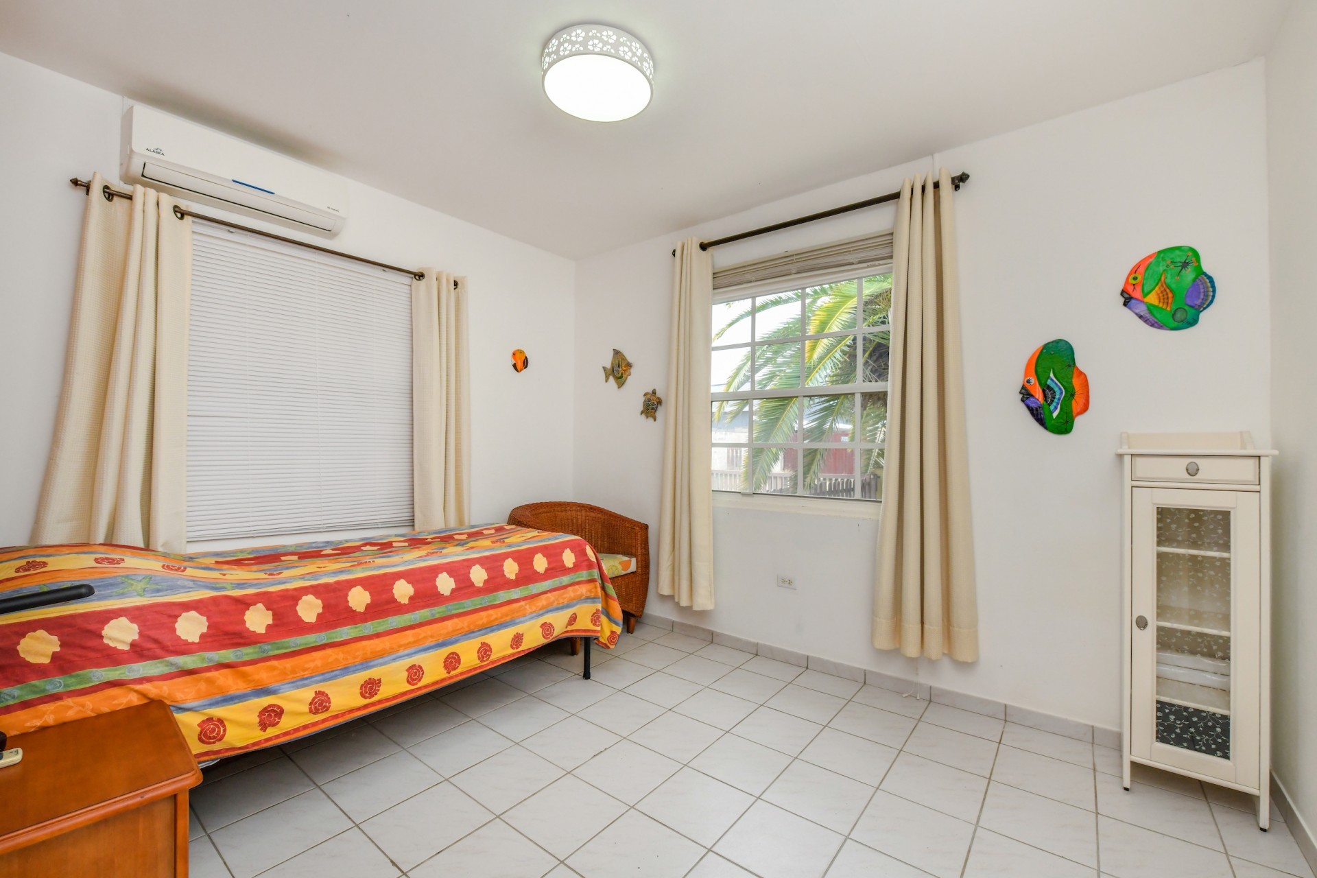 Beautiful 2-Bedroom Home with 1-Bedroom Apartment in a Quiet Residential Area Located in the peaceful residential area of San Barbola, centrally located and only about 5 minutes from Surfside Beach, this charming property offers two residences on one private property for one price - allowing you to live in one and rent out the other. Both residences are fully independent and situated on 602 m² of property land, providing privacy, space, and flexibility. The main house (87 m²) offers a comfortable open living area, a functional kitchen, and two bedrooms with two bathrooms, creating a welcoming environment for everyday living. The master bedroom features patio doors that open to the porch, overlooking the green tropical garden where hummingbirds and Aruba’s famous Prikichi parrots can often be seen. The separate apartment (49 m²) includes its own living area, kitchen, one bedroom, and two full bathrooms. The living room also features a comfortable sleeping sofa, making it suitable for accommodating additional guests. This space is ideal as guest accommodation, a home office, or a rental. Each residence has its own private entrance, fencing, and dedicated parking space, ensuring excellent privacy for residents. The apartment also includes a covered carport. Both the main home and apartment have separate utilities for water, electricity, gas, and cable, allowing them to function completely independently. The property features a beautiful tropical garden filled with colorful plants, fruit trees, and two large mango trees that provide natural shade and a relaxing atmosphere. Multiple seating areas throughout the garden create the perfect setting for enjoying Aruba’s outdoor lifestyle. An automatic drip irrigation system keeps the garden healthy and vibrant year-round with minimal maintenance, even when the owners are off island. The spacious yard also offers ample room to add a swimming pool, allowing the future owner to further enhance this outdoor oasis. Key Features 602 m² property land 136 m² built-up size (87 m² main house, 49 m² apartment) Total of 3 bedrooms and 4 bathrooms Fully air-conditioned Separate one-bedroom apartment with two bathrooms Two laundry rooms with their own hot water boilers Separate utilities and meters for water and electricity and separate gas installations Apartment with private carport and separate entrance Fully fenced property with alarm system Beautiful tropical garden with mango and fruit trees Automatic drip irrigation system Whether you are looking for a comfortable family home with guest accommodation or a smart investment opportunity to live in one unit and rent the other, this charming property offers the perfect combination of functionality, privacy, and value. Contact us today for more information or to schedule a viewing. Bibi Louwers 📞 +297 569 7343 📧
