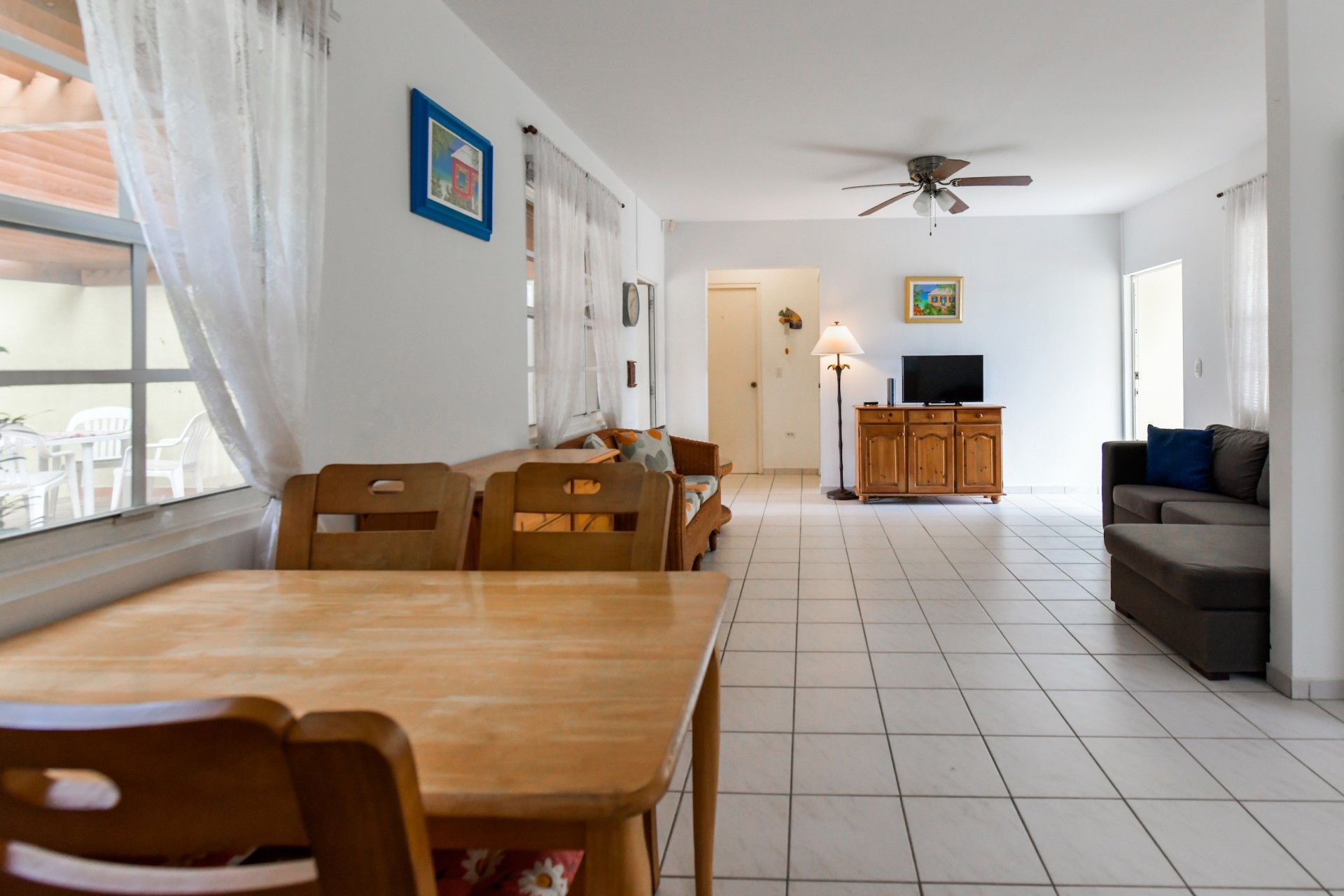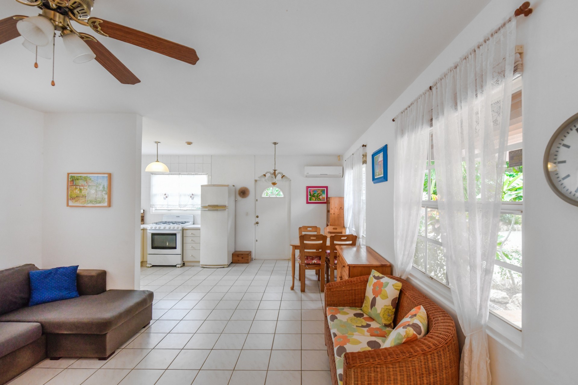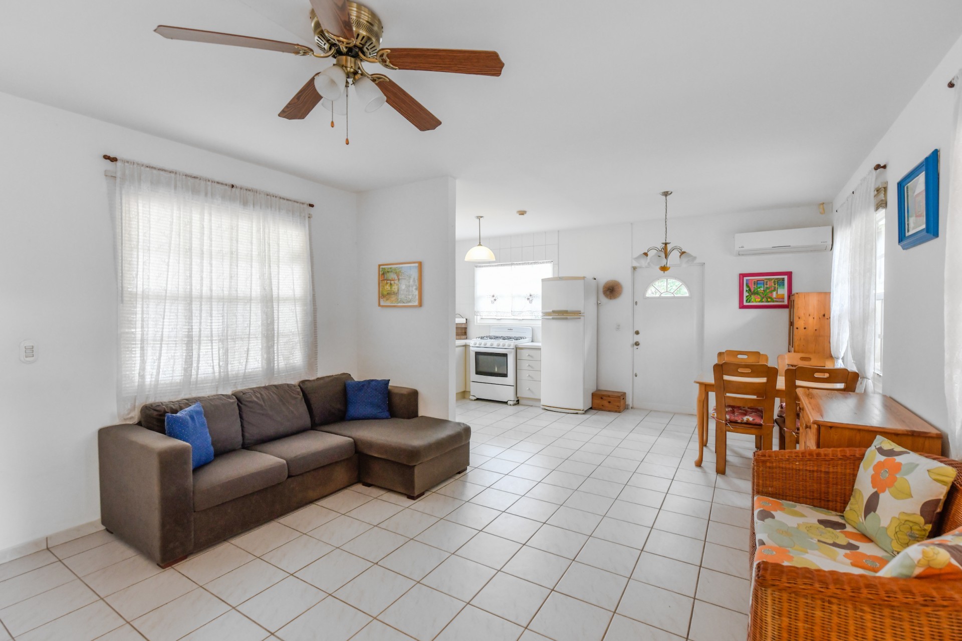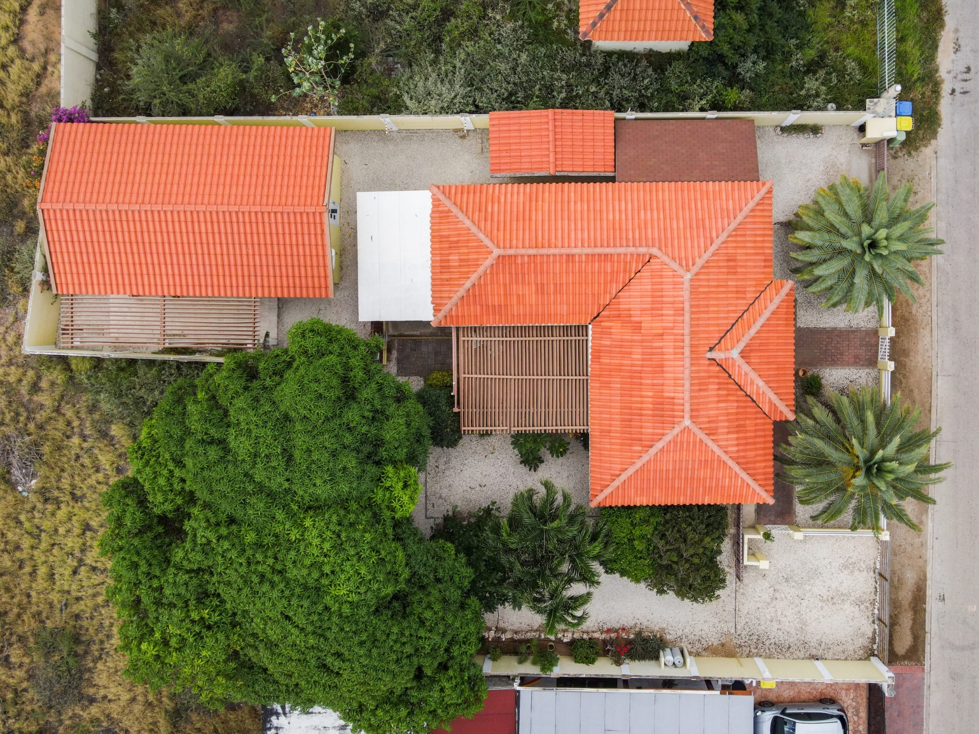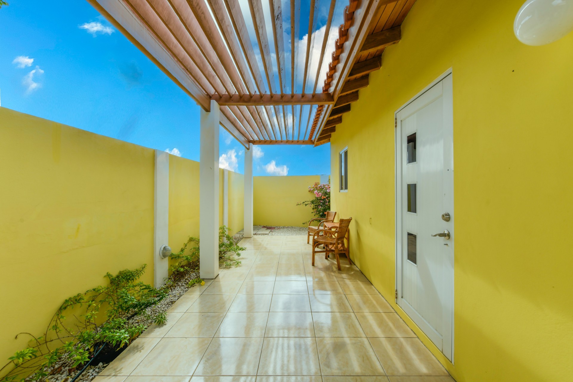 Beautiful 2-Bedroom Home with 1-Bedroom Apartment in a Quiet Residential Area Located in the peaceful residential area of San Barbola, centrally located and only about 5 minutes from Surfside Beach, this charming property offers two residences on one private property for one price - allowing you to live in one and rent out the other. Both residences are fully independent and situated on 602 m² of property land, providing privacy, space, and flexibility. The main house (87 m²) offers a comfortable open living area, a functional kitchen, and two bedrooms with two bathrooms, creating a welcoming environment for everyday living. The master bedroom features patio doors that open to the porch, overlooking the green tropical garden where hummingbirds and Aruba’s famous Prikichi parrots can often be seen. The separate apartment (49 m²) includes its own living area, kitchen, one bedroom, and two full bathrooms. The living room also features a comfortable sleeping sofa, making it suitable for accommodating additional guests. This space is ideal as guest accommodation, a home office, or a rental. Each residence has its own private entrance, fencing, and dedicated parking space, ensuring excellent privacy for residents. The apartment also includes a covered carport. Both the main home and apartment have separate utilities for water, electricity, gas, and cable, allowing them to function completely independently. The property features a beautiful tropical garden filled with colorful plants, fruit trees, and two large mango trees that provide natural shade and a relaxing atmosphere. Multiple seating areas throughout the garden create the perfect setting for enjoying Aruba’s outdoor lifestyle. An automatic drip irrigation system keeps the garden healthy and vibrant year-round with minimal maintenance, even when the owners are off island. The spacious yard also offers ample room to add a swimming pool, allowing the future owner to further enhance this outdoor oasis. Key Features 602 m² property land 136 m² built-up size (87 m² main house, 49 m² apartment) Total of 3 bedrooms and 4 bathrooms Fully air-conditioned Separate one-bedroom apartment with two bathrooms Two laundry rooms with their own hot water boilers Separate utilities and meters for water and electricity and separate gas installations Apartment with private carport and separate entrance Fully fenced property with alarm system Beautiful tropical garden with mango and fruit trees Automatic drip irrigation system Whether you are looking for a comfortable family home with guest accommodation or a smart investment opportunity to live in one unit and rent the other, this charming property offers the perfect combination of functionality, privacy, and value. Contact us today for more information or to schedule a viewing. Bibi Louwers 📞 +297 569 7343 📧