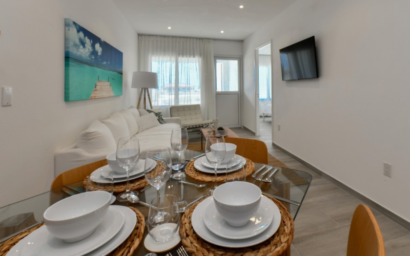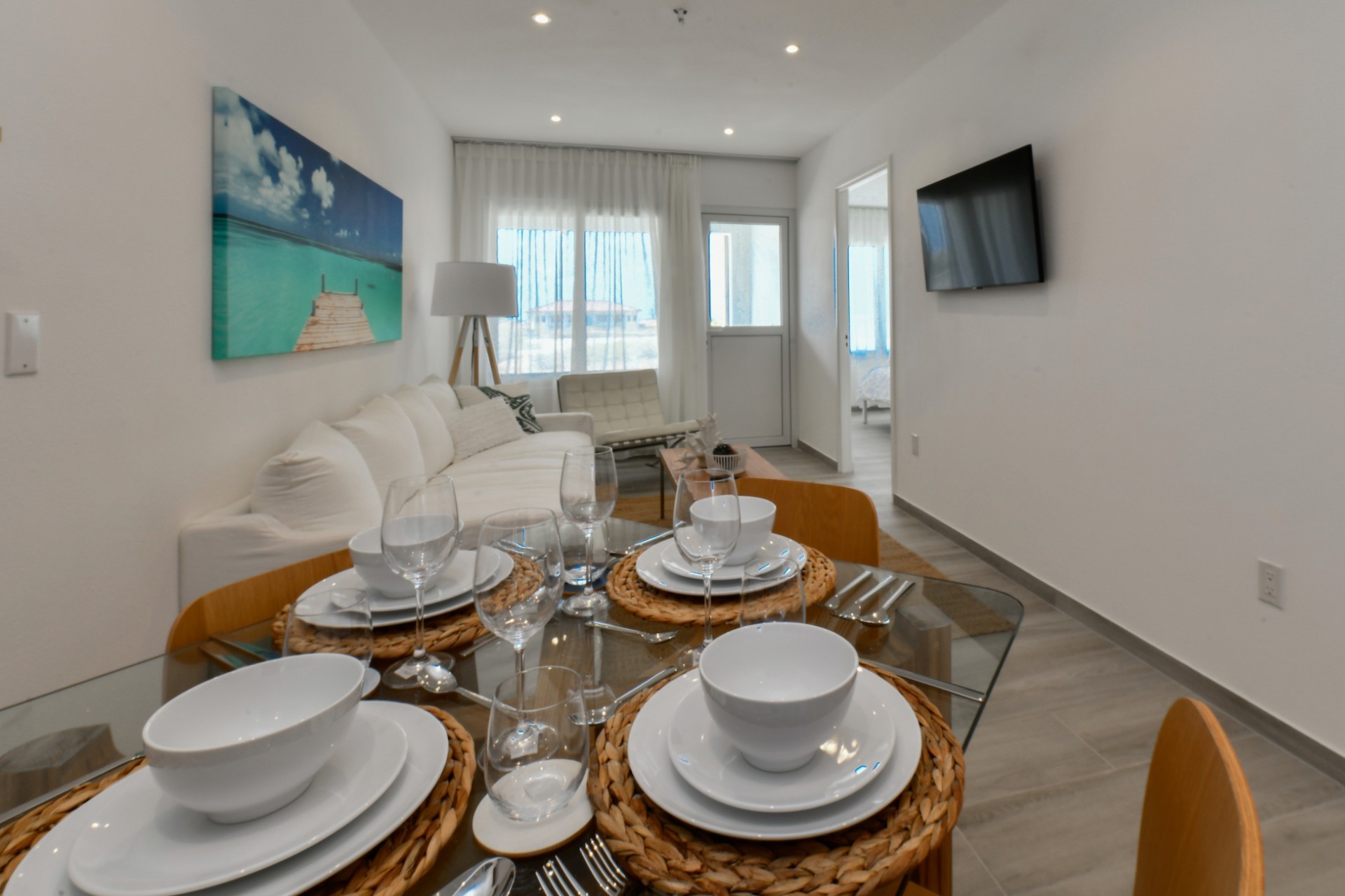 LAST AVAILABLE UNITS - BUILDING 2 - COMMANDEURS DEVELOPMENT Commandeurs is renowned for its affordability, making it a popular choice for budget-conscious buyers. Building 1 has already been fully completed and sold out, attesting to its appeal and value. Building 2 still has a few units available, with Unit 7 on the 4th floor now offered at a price of USD 365,000 for a 72 m2 build-up area. Located on the 4th floor and situated across from the Aruba Aloe factory, this apartment is conveniently positioned near the highway for easy access to the airport or Palm Beach area. Offering an open concept layout, community pool access, and a variety of high-quality furniture packages to choose from, this residence includes modern amenities such as a washer and dryer, own mailbox, elevator, and, upon request, an electric car charger. Whether you're seeking a secure investment or an stress-free second home, Commandeurs is definitely worth considering. For more information, please contact