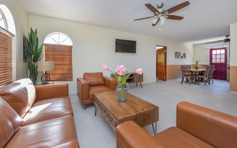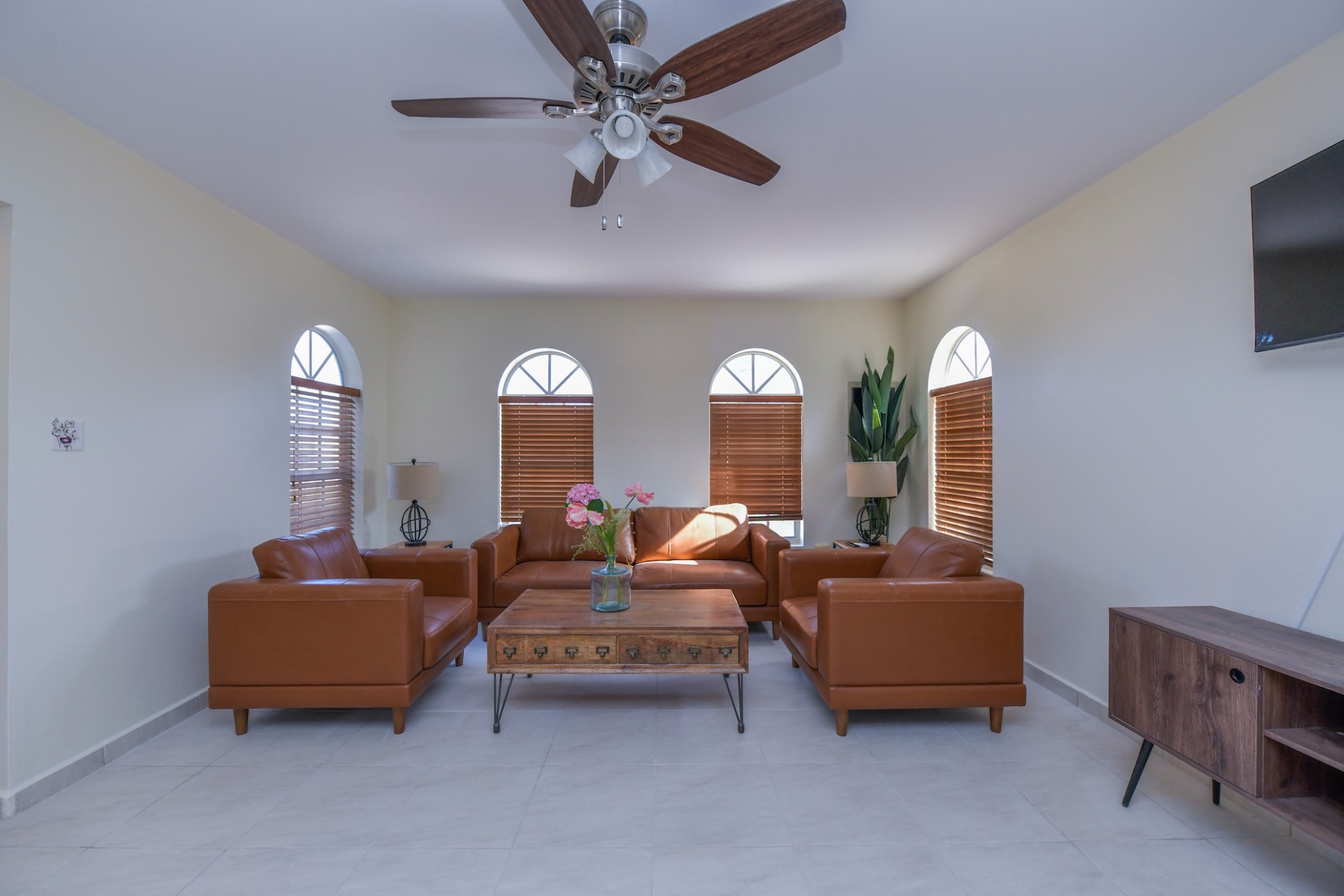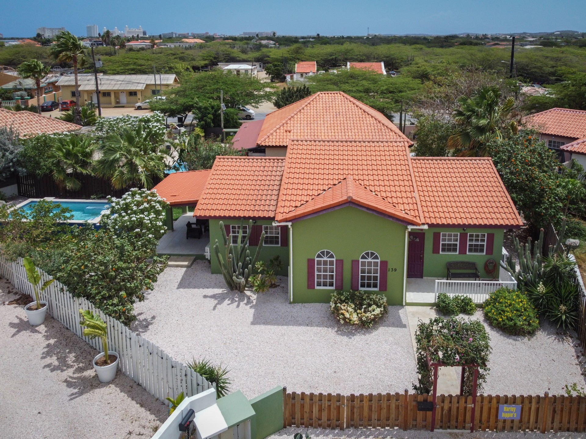 For Sale | Property Owned Land | Charming 3 bedroom Home in Cunucu Abao Welcome to your new home in the peaceful neighborhood of Cunucu Abao! This charming 3-bedroom, 2-bathroom residence is a perfect blend of comfort and convenience, offering everything you need. Upon entering, you'll find an open living and dining area that seamlessly connects to the kitchen, perfect for both everyday meals and entertaining guests. The main bedroom includes a small walk-in closet and an en-suite bathroom with tub. The remaining 2 bedrooms share a second bathroom, offering privacy and convenience for all residents. The home boasts an above ground pool and a spacious covered patio perfect for outdoor dining and relaxation. Enjoy the added benefits of a fully fenced yard, which offers privacy and a secure environment for peace of mind. Property Highlights: Property Owned Land that consists of 475m2 Built up consists of 144m2 Bedrooms: 3 spacious bedrooms ideal for family living Bathrooms: 2 well-appointed bathrooms Open Living Space: The heart of this home features an open layout seamlessly connecting the kitchen ,dining area and living room, perfect for entertaining or cozy evenings Outdoor area: The outdoor yard is fully fenced in, a lush garden, decorated with white gravel stones and a 20m2 covered patio to relax Above ground chlorinated pool, measuring at approximately 3.50m x 6.00m All bedrooms and main living area have air conditioning units Construction features: 1 primary bedroom + spacious ensuite bathroom and walk in closet 2 guest bedrooms 1 guest bathroom Open living space Outside laundry room Small outside storage Wooden doors and windows Septic tank that can also be used for a grey water system Kitchen comes with all appliances Hot water with gas boiler system Fully fenced yard ( wood fence) Unique Features: Classic home design with a beautiful clay tile roof Located in a quiet cul de sac with a brick road Cunucu Abao 139 is right of the main roundabout between Aruba Bank Hato and Elmar, making is very convenient for your daily commute Just a couple minutes away from highlights like, Eagle Beach, schools, supermarkets and gas stations Prime Location: Cunucu Abao 139 is located right between Oranjestad and Noord. It's the perfect balance of tranquility and accessibility. Please see the MAP pin for visuals. This home offers endless possibilities to create your own little paradise in the heart of Aruba. Don't miss the opportunity to make this wonderful property your own. Contact us to arrange a viewing and experience the charm of Cunucu Abao in person. Cado de Lannoy +297 5941420 or [email protected]