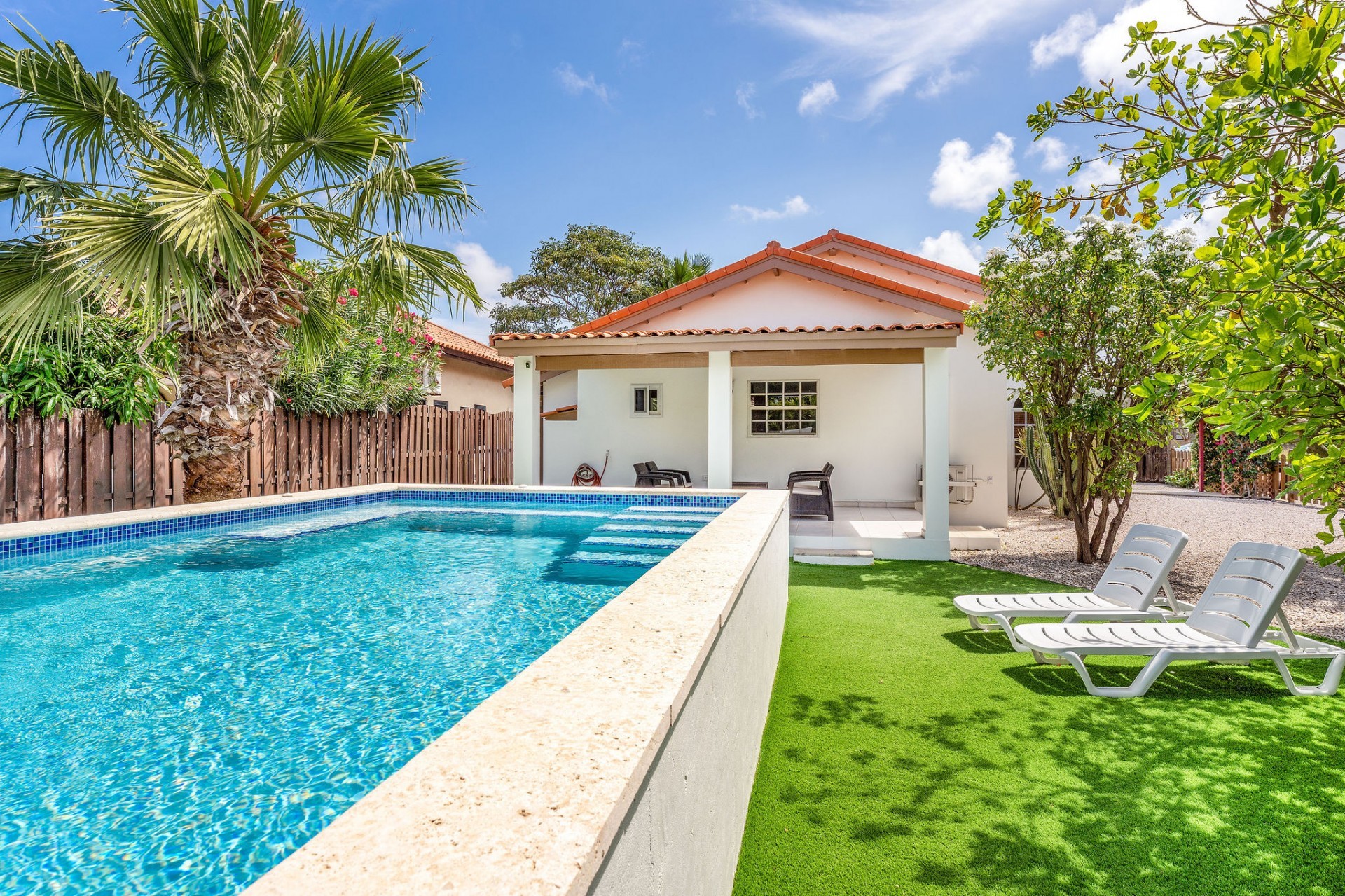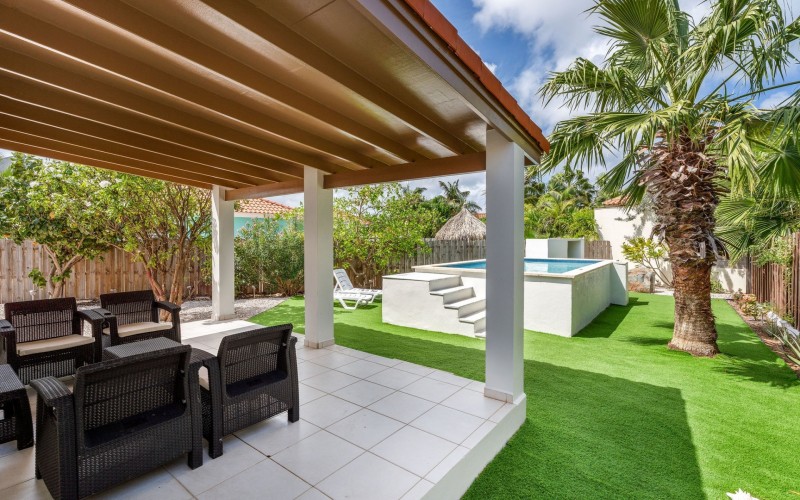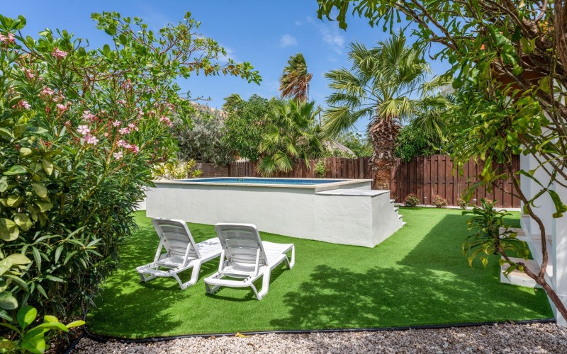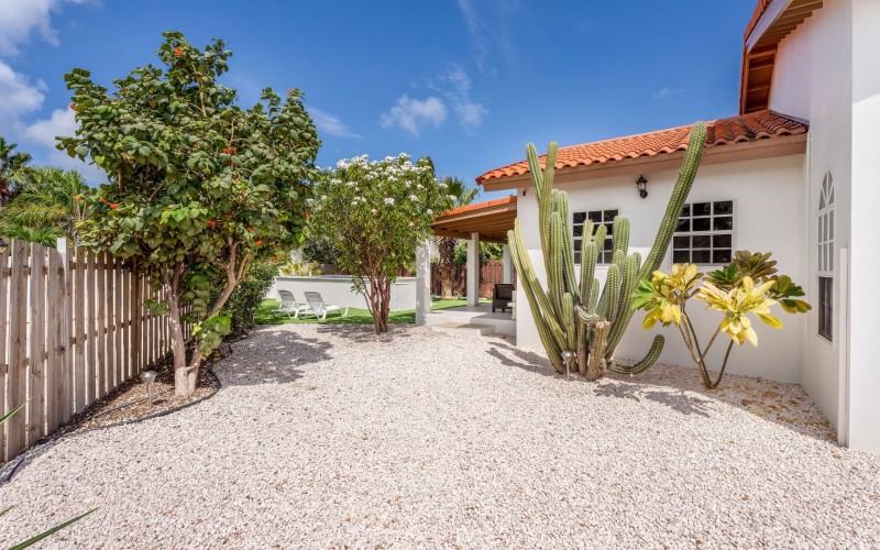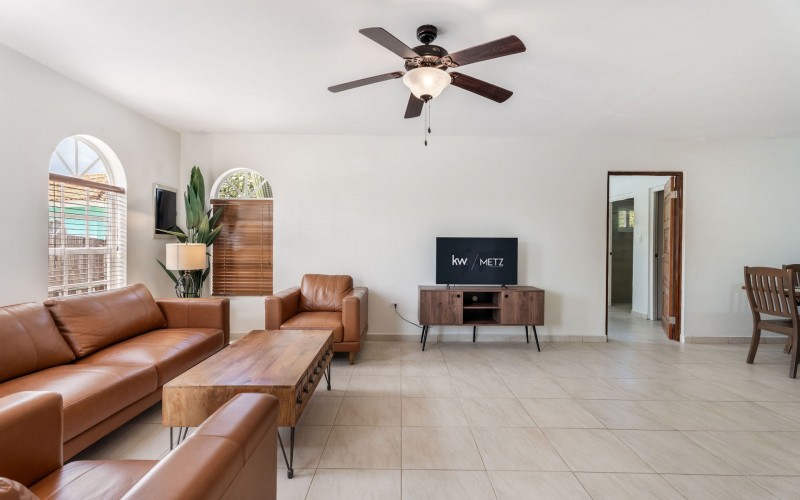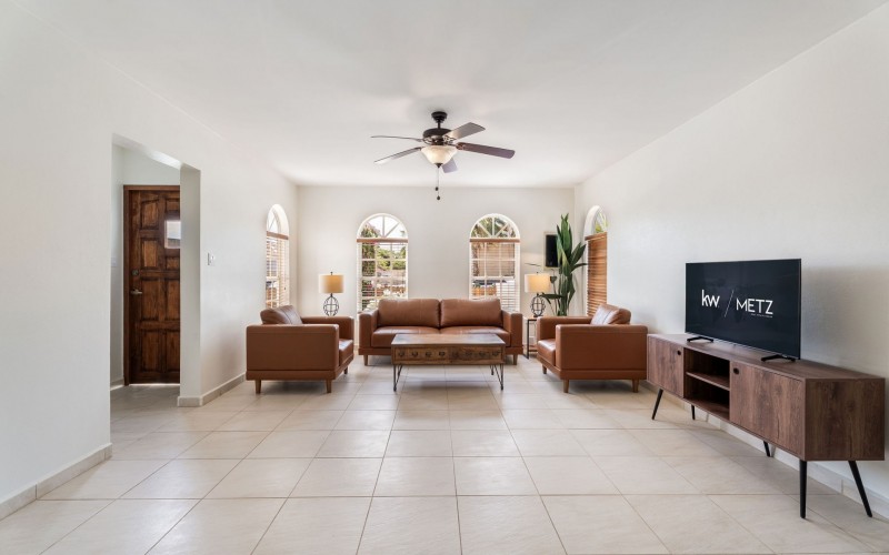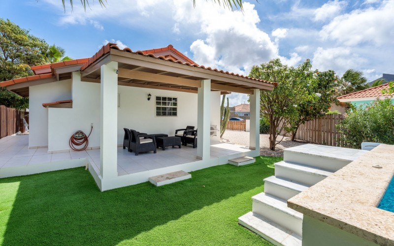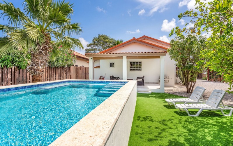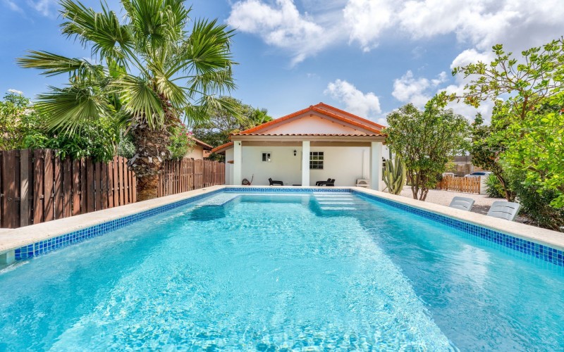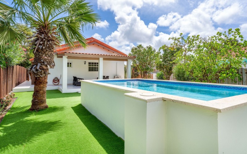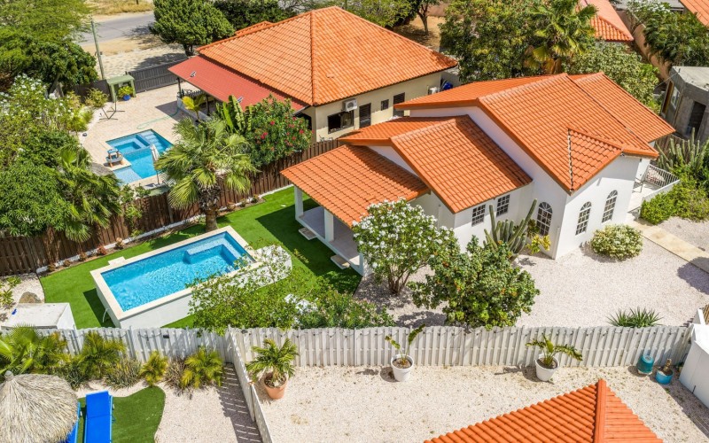 Relaxed Island Living & Move-In Ready Welcome to Cunucu Abao 139, a charming and well-maintained residence ideally located just 5 minutes from the world-famous Eagle Beach and the Superfood Shopping Center. Nestled in a quiet cul-de-sac within a peaceful yet centrally located neighborhood, this property offers the perfect balance between tranquility and convenience. Built on 475 m² of property land, this home is surrounded by a beautifully landscaped garden filled with lush greenery, creating a private and inviting outdoor atmosphere. Inside, the home offers a bright, light, and airy ambiance, enhanced by its open layout and seamless flow between spaces. The open-concept living, dining, and renovated kitchen area forms the heart of the home. The kitchen has been tastefully updated and connects beautifully with the living space, making it ideal for both everyday comfort and entertaining. The residence features 3 bedrooms and 2 fully renovated bathrooms, all maintained in excellent condition. Thanks to the recent updates and overall upkeep, the property is truly turn-key ready, perfect for immediate occupancy or direct placement into a rental program. The outdoor area adds tremendous lifestyle value. The home features a cozy and inviting pool area, ideal for cooling off and relaxing under the Aruba sun. Adjacent to the pool, you will find a covered porch perfectly suited for outdoor dining and lounging, creating a wonderful indoor–outdoor living experience. Whether you are looking for a comfortable family residence or a smart investment opportunity near Aruba’s most famous beach, this home delivers on location, condition, and usability. Property Highlights Prime location in Cunucu Abao Only 5 minutes from Eagle Beach Close to Superfood Shopping Center Quiet cul-de-sac setting 475 m² property land Renovated modern kitchen with open living connection Bright and airy interior atmosphere Cozy private pool area Covered porch ideal for outdoor dining Beautifully landscaped garden with lush greenery Turn-key ready condition Ideal for family living or rental investment Cunucu Abao 139 offers comfort, condition, and an unbeatable location, a move-in-ready opportunity in one of Aruba’s most desirable areas. Are you interested, or want to know more about this property? Contact Ruben Metz for a viewing! (+297) 568 6490