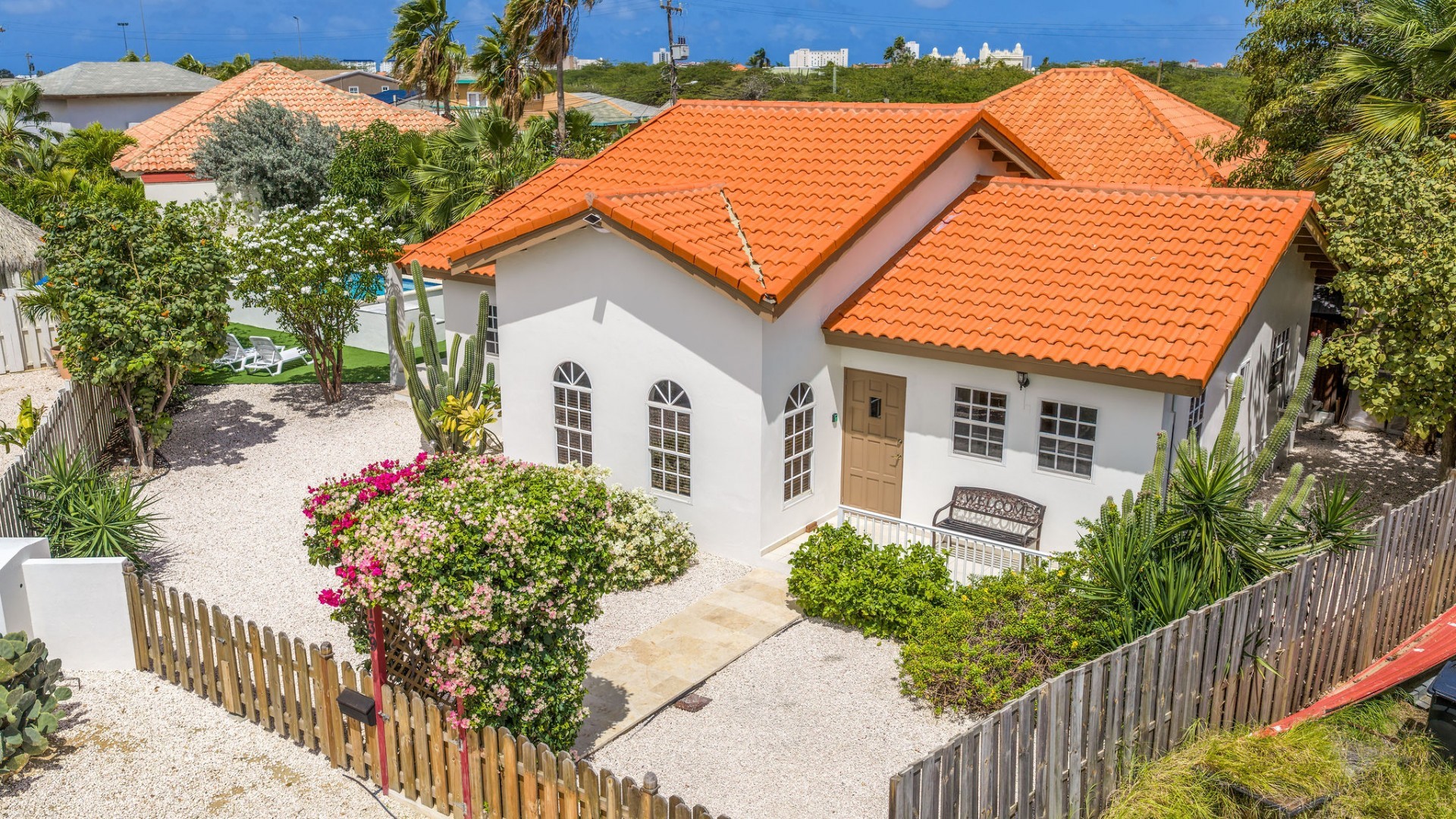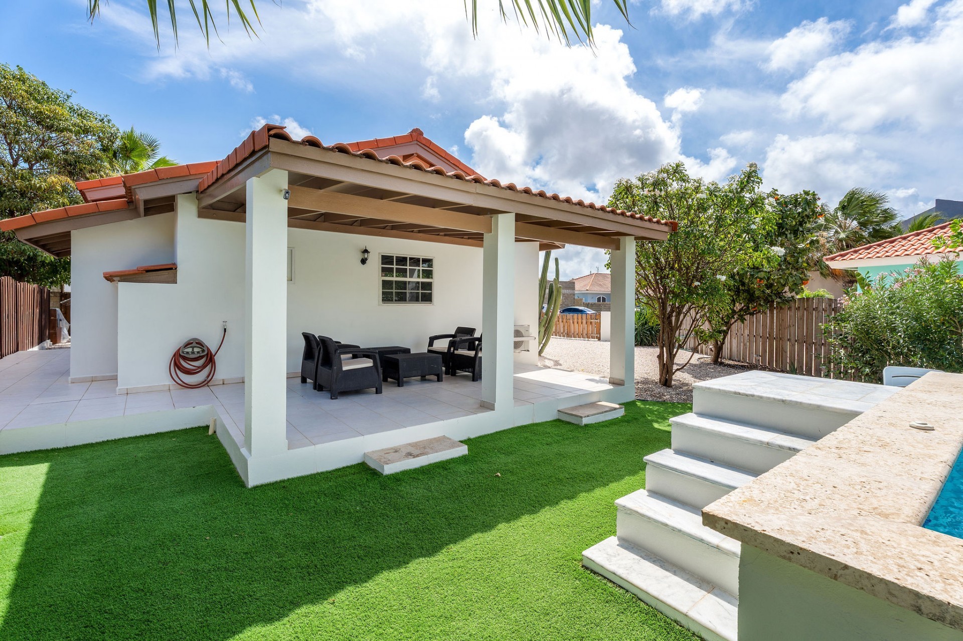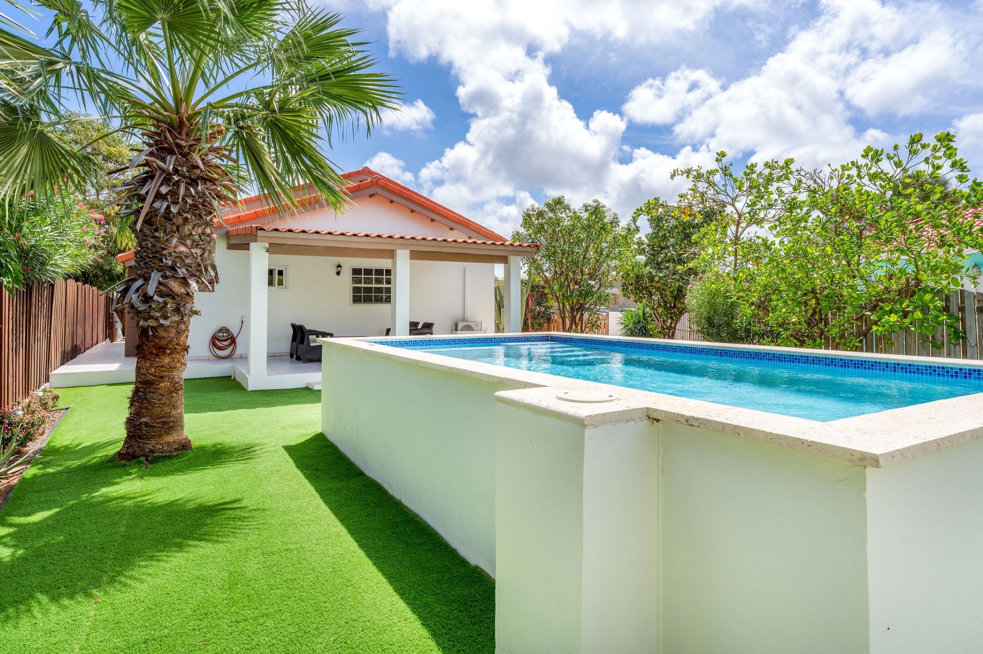Relaxed Island Living & Move-In Ready Welcome to Cunucu Abao 139, a charming and well-maintained residence ideally located just 5 minutes from the world-famous Eagle Beach and the Superfood Shopping Center. Nestled in a quiet cul-de-sac within a peaceful yet centrally located neighborhood, this property offers the perfect balance between tranquility and convenience. Built on 475 m² of property land, this home is surrounded by a beautifully landscaped garden filled with lush greenery, creating a private and inviting outdoor atmosphere. Inside, the home offers a bright, light, and airy ambiance, enhanced by its open layout and seamless flow between spaces. The open-concept living, dining, and renovated kitchen area forms the heart of the home. The kitchen has been tastefully updated and connects beautifully with the living space, making it ideal for both everyday comfort and entertaining. The residence features 3 bedrooms and 2 fully renovated bathrooms, all maintained in excellent condition. Thanks to the recent updates and overall upkeep, the property is truly turn-key ready, perfect for immediate occupancy or direct placement into a rental program. The outdoor area adds tremendous lifestyle value. The home features a cozy and inviting pool area, ideal for cooling off and relaxing under the Aruba sun. Adjacent to the pool, you will find a covered porch perfectly suited for outdoor dining and lounging, creating a wonderful indoor–outdoor living experience. Whether you are looking for a comfortable family residence or a smart investment opportunity near Aruba’s most famous beach, this home delivers on location, condition, and usability. Property Highlights Prime location in Cunucu Abao Only 5 minutes from Eagle Beach Close to Superfood Shopping Center Quiet cul-de-sac setting 475 m² property land Renovated modern kitchen with open living connection Bright and airy interior atmosphere Cozy private pool area Covered porch ideal for outdoor dining Beautifully landscaped garden with lush greenery Turn-key ready condition Ideal for family living or rental investment Cunucu Abao 139 offers comfort, condition, and an unbeatable location, a move-in-ready opportunity in one of Aruba’s most desirable areas. Are you interested, or want to know more about this property? Contact Ruben Metz for a viewing! (+297) 568 6490