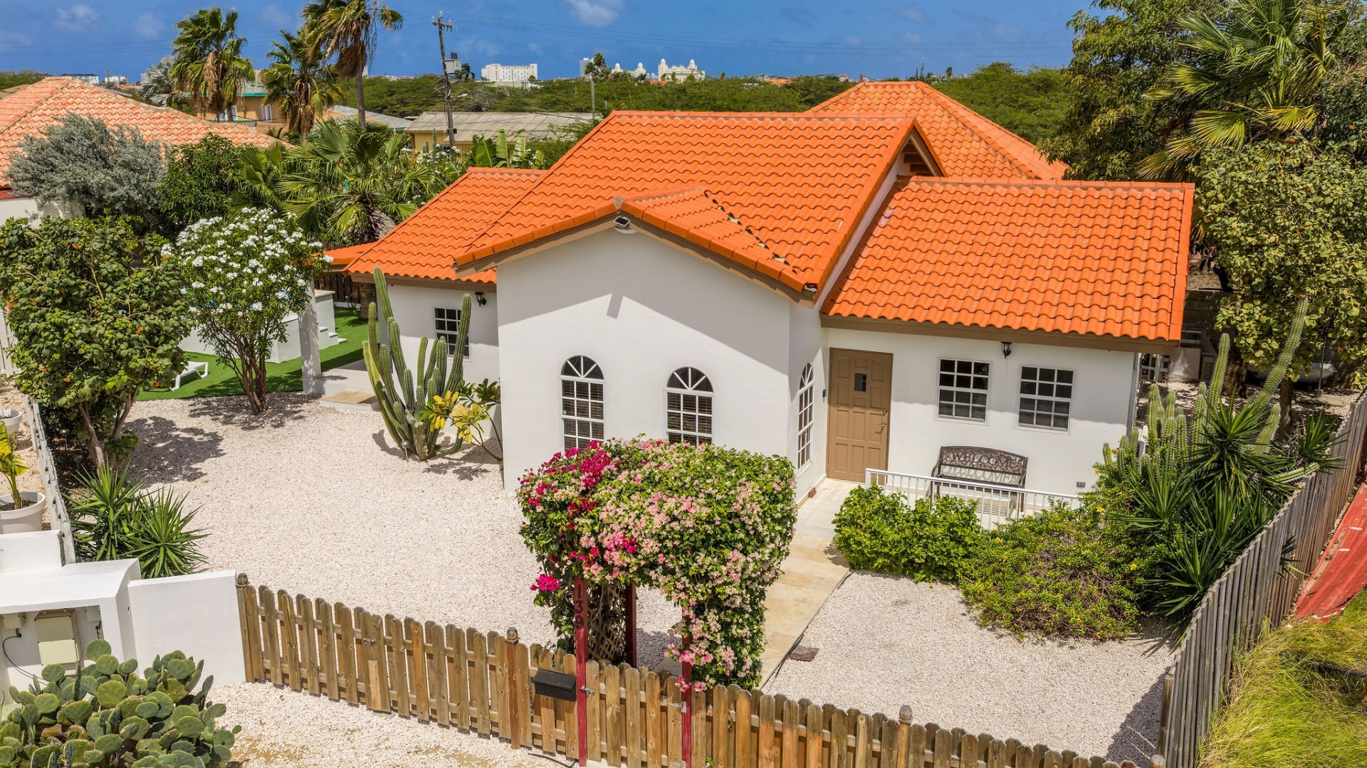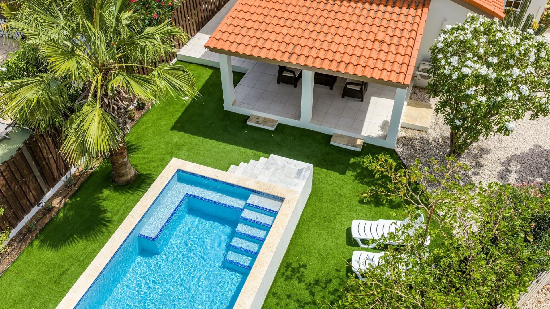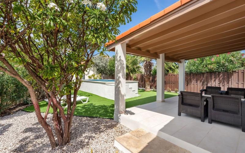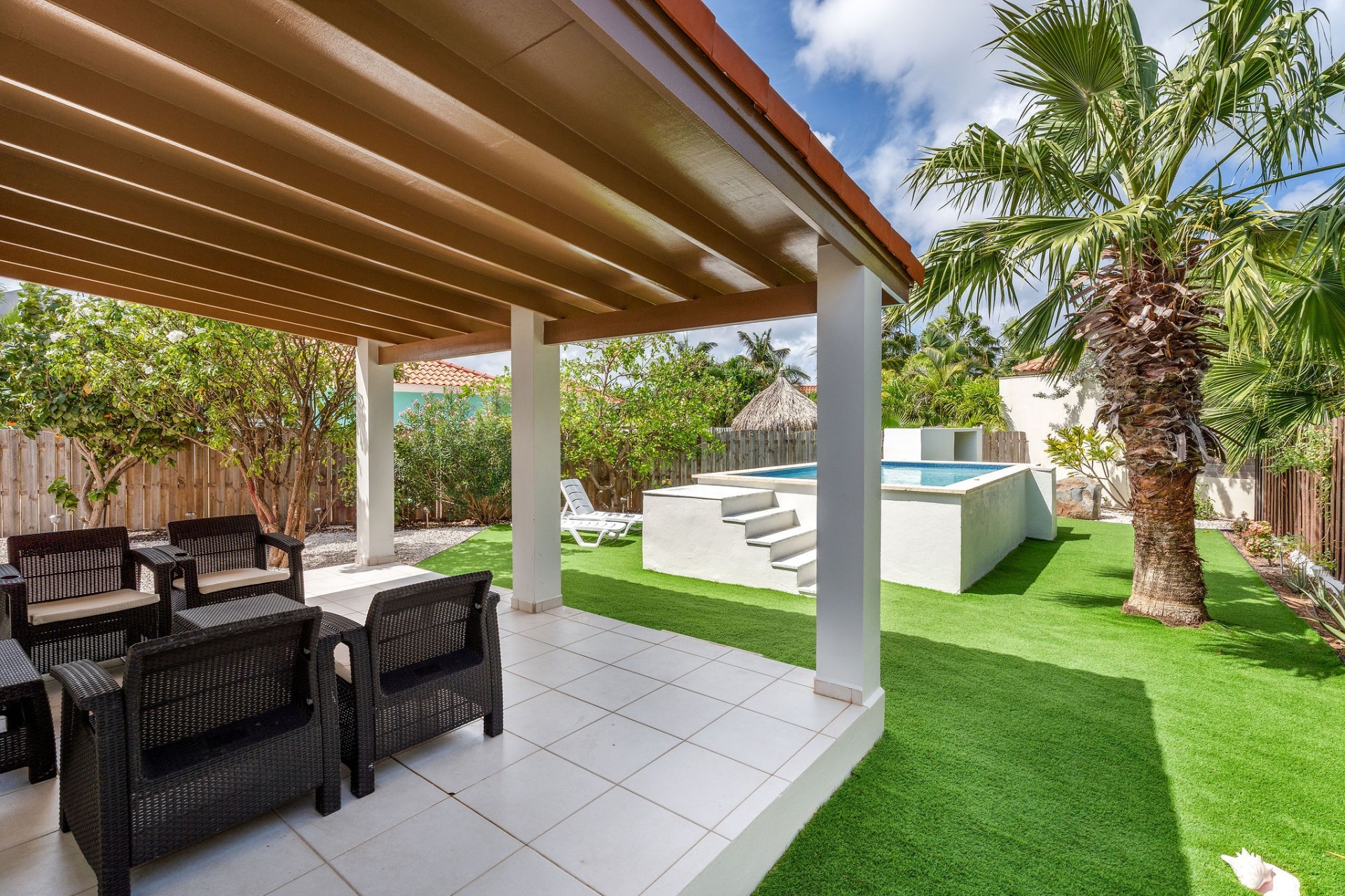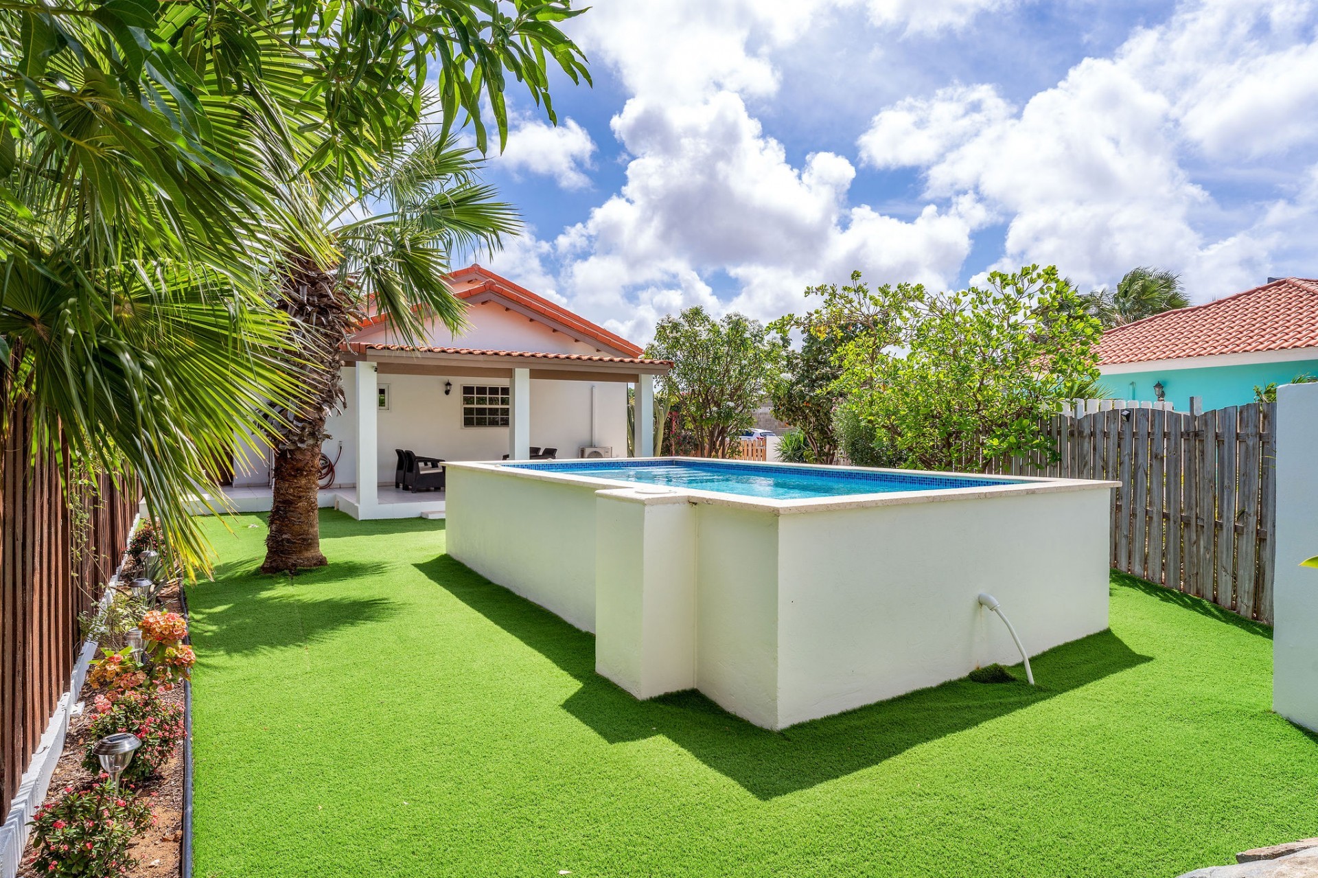Relaxed Island Living & Move-In Ready Welcome to Cunucu Abao 139, a charming and well-maintained residence ideally located just 5 minutes from the world-famous Eagle Beach and the Superfood Shopping Center. Nestled in a quiet cul-de-sac within a peaceful yet centrally located neighborhood, this property offers the perfect balance between tranquility and convenience. Built on 475 m² of property land, this home is surrounded by a beautifully landscaped garden filled with lush greenery, creating a private and inviting outdoor atmosphere. Inside, the home offers a bright, light, and airy ambiance, enhanced by its open layout and seamless flow between spaces. The open-concept living, dining, and renovated kitchen area forms the heart of the home. The kitchen has been tastefully updated and connects beautifully with the living space, making it ideal for both everyday comfort and entertaining. The residence features 3 bedrooms and 2 fully renovated bathrooms, all maintained in excellent condition. Thanks to the recent updates and overall upkeep, the property is truly turn-key ready, perfect for immediate occupancy or direct placement into a rental program. The outdoor area adds tremendous lifestyle value. The home features a cozy and inviting pool area, ideal for cooling off and relaxing under the Aruba sun. Adjacent to the pool, you will find a covered porch perfectly suited for outdoor dining and lounging, creating a wonderful indoor–outdoor living experience. Whether you are looking for a comfortable family residence or a smart investment opportunity near Aruba’s most famous beach, this home delivers on location, condition, and usability. Property Highlights Prime location in Cunucu Abao Only 5 minutes from Eagle Beach Close to Superfood Shopping Center Quiet cul-de-sac setting 475 m² property land Renovated modern kitchen with open living connection Bright and airy interior atmosphere Cozy private pool area Covered porch ideal for outdoor dining Beautifully landscaped garden with lush greenery Turn-key ready condition Ideal for family living or rental investment Cunucu Abao 139 offers comfort, condition, and an unbeatable location, a move-in-ready opportunity in one of Aruba’s most desirable areas. Are you interested, or want to know more about this property? Contact Ruben Metz for a viewing! (+297) 568 6490