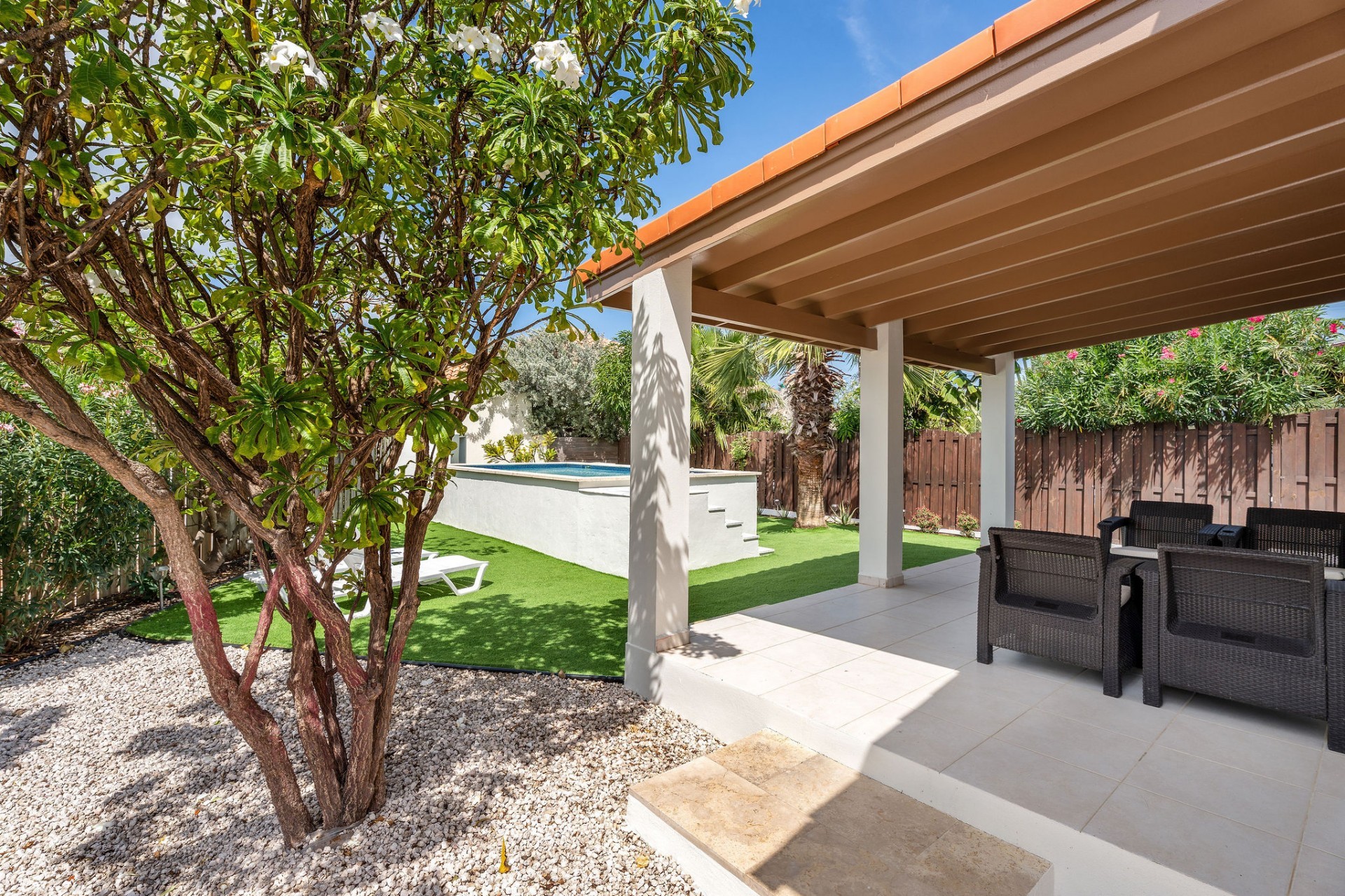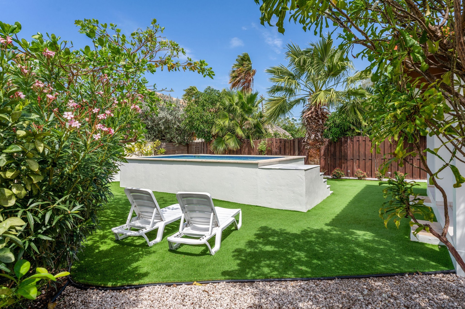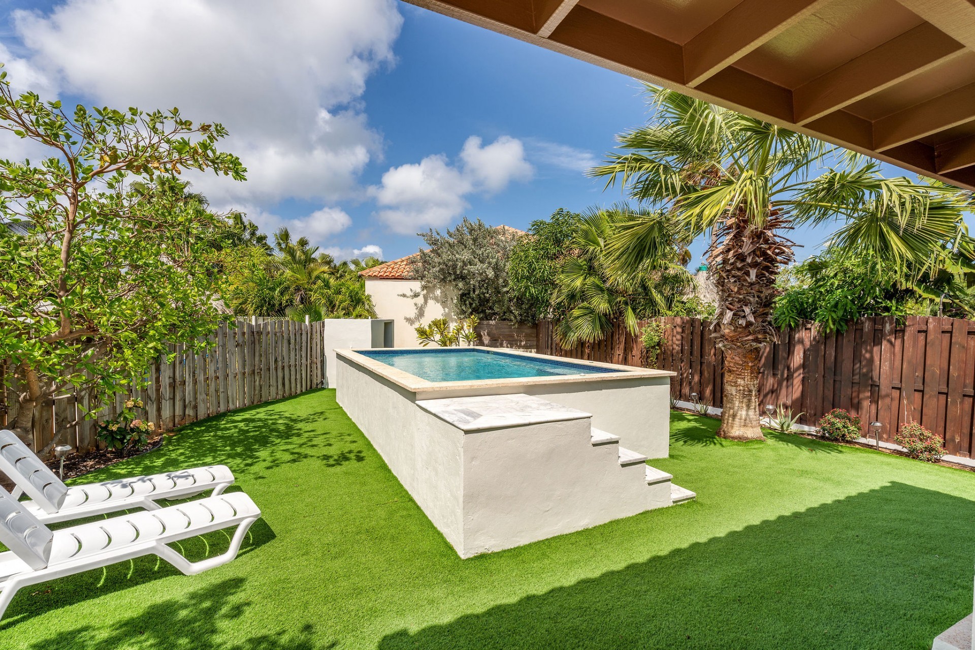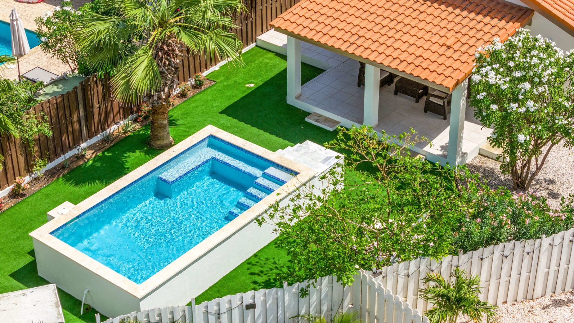 Relaxed Island Living & Move-In Ready Welcome to Cunucu Abao 139, a charming and well-maintained residence ideally located just 5 minutes from the world-famous Eagle Beach and the Superfood Shopping Center. Nestled in a quiet cul-de-sac within a peaceful yet centrally located neighborhood, this property offers the perfect balance between tranquility and convenience. Built on 475 m² of property land, this home is surrounded by a beautifully landscaped garden filled with lush greenery, creating a private and inviting outdoor atmosphere. Inside, the home offers a bright, light, and airy ambiance, enhanced by its open layout and seamless flow between spaces. The open-concept living, dining, and renovated kitchen area forms the heart of the home. The kitchen has been tastefully updated and connects beautifully with the living space, making it ideal for both everyday comfort and entertaining. The residence features 3 bedrooms and 2 fully renovated bathrooms, all maintained in excellent condition. Thanks to the recent updates and overall upkeep, the property is truly turn-key ready, perfect for immediate occupancy or direct placement into a rental program. The outdoor area adds tremendous lifestyle value. The home features a cozy and inviting pool area, ideal for cooling off and relaxing under the Aruba sun. Adjacent to the pool, you will find a covered porch perfectly suited for outdoor dining and lounging, creating a wonderful indoor–outdoor living experience. Whether you are looking for a comfortable family residence or a smart investment opportunity near Aruba’s most famous beach, this home delivers on location, condition, and usability. Property Highlights Prime location in Cunucu Abao Only 5 minutes from Eagle Beach Close to Superfood Shopping Center Quiet cul-de-sac setting 475 m² property land Renovated modern kitchen with open living connection Bright and airy interior atmosphere Cozy private pool area Covered porch ideal for outdoor dining Beautifully landscaped garden with lush greenery Turn-key ready condition Ideal for family living or rental investment Cunucu Abao 139 offers comfort, condition, and an unbeatable location, a move-in-ready opportunity in one of Aruba’s most desirable areas. Are you interested, or want to know more about this property? Contact Ruben Metz for a viewing! (+297) 568 6490