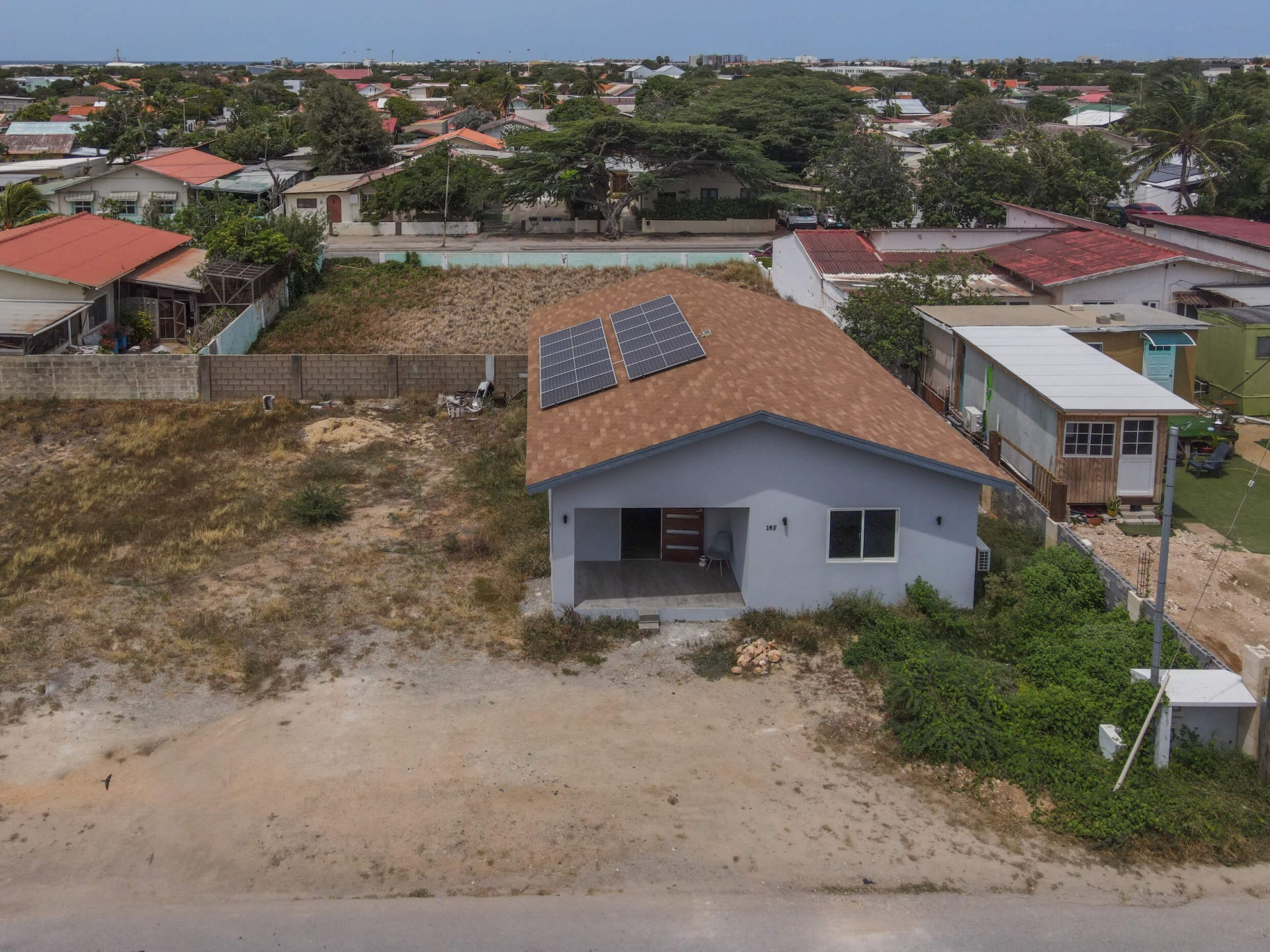 Comfortable Family Home in Companashi, Oranjestad, Aruba Discover this inviting one story home on property land in the friendly Companashi area of Oranjestad. Set on a quiet, paved street just about 4 minutes from downtown, you’re close to mini markets, cafés, restaurants, and sports facilities, everything you need within easy reach. Very central location in Aruba. A welcoming front porch opens to a bright living and dining area and an L-shaped kitchen. On the right side of the house it offers a primary bedroom with en-suite bathroom, two additional bedrooms, and a second bathroom. Outdoors, enjoy a breezy covered patio plus a handy laundry/storage room. The home comes also with approved solar panels. Key Features: 3 bedrooms & 2 bathrooms Property (property land) 483m² Build-up size 127m² (incl. porch & patio) Front porch and covered patio & laundry/storage in the back Quiet residential street near shops, dining & sports Approved solar panels Ready to make this your dream home? Contact us today to schedule a viewing! Bibi Louwers +2975697343 [email protected]