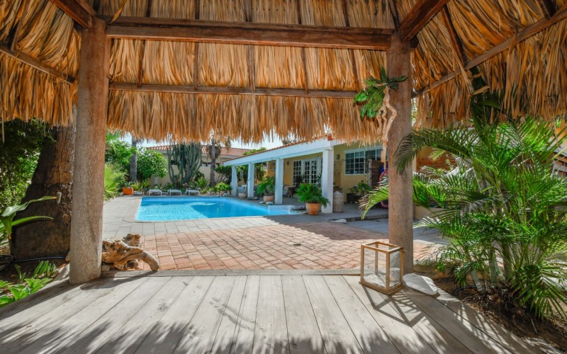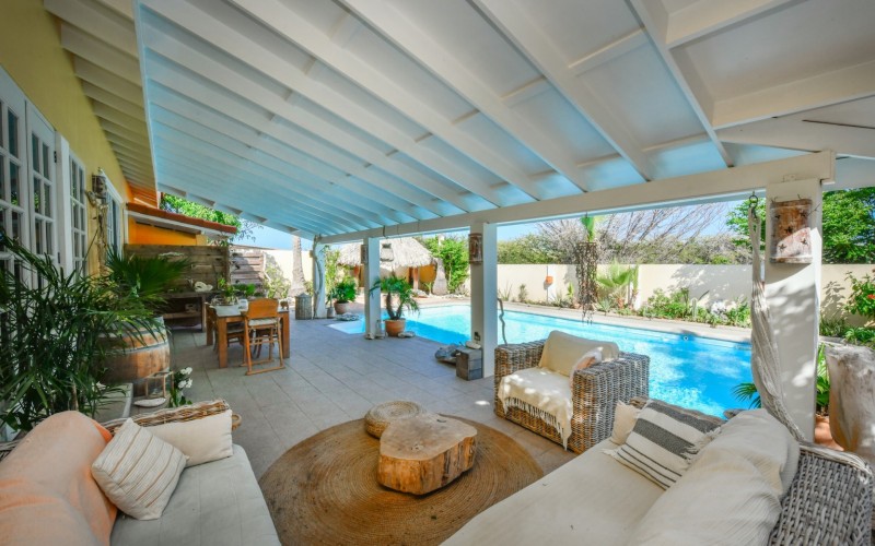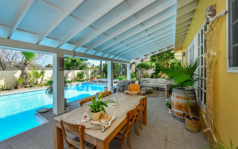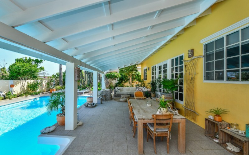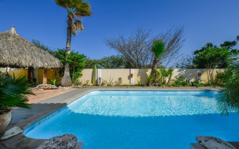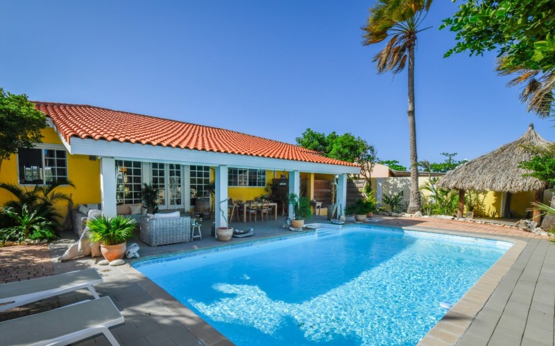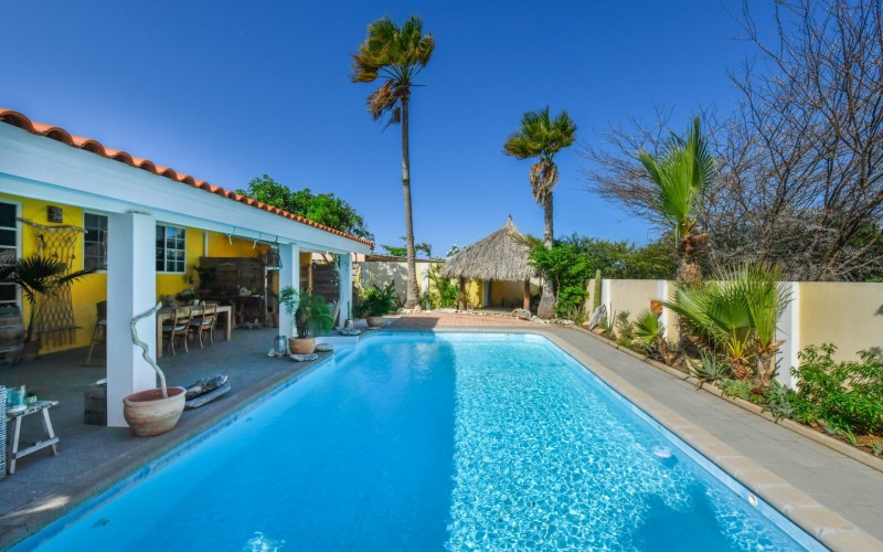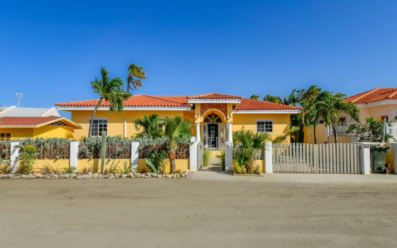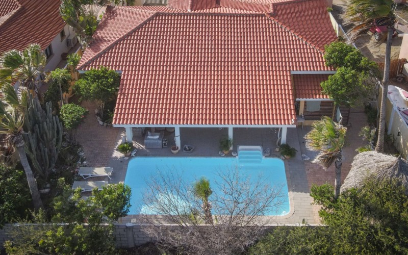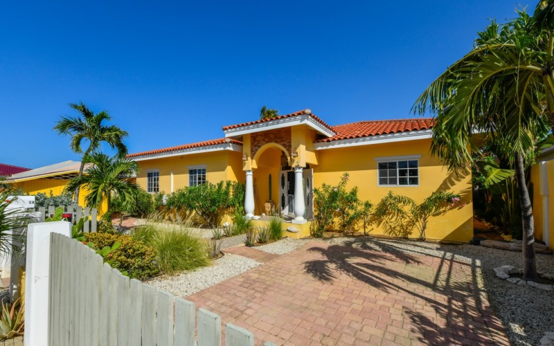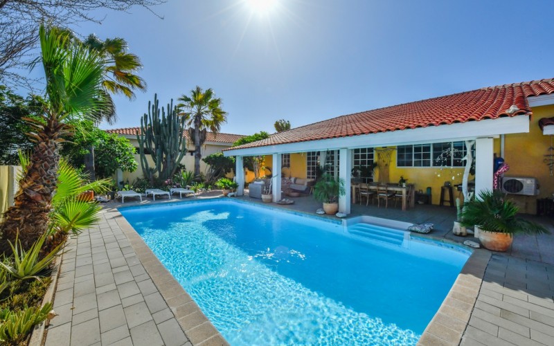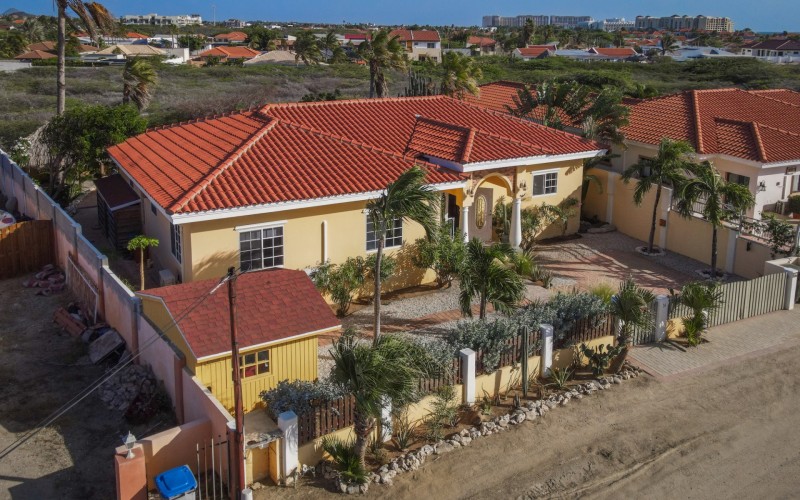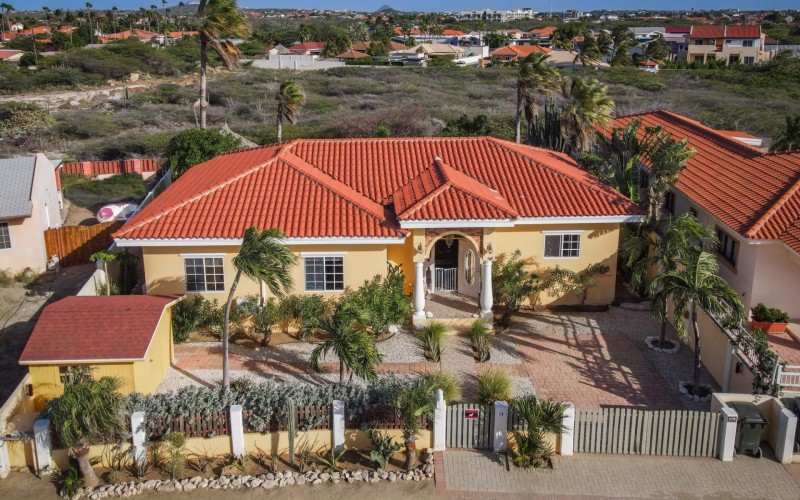 Introducing a modern gem in the prestigious Esmeralda, one of the most desirable neighborhoods on Aruba. This exquisite 3-bedroom, 2-bathroom home offers the perfect blend of luxury and comfort, ideal for those seeking a high-end living experience. Step inside to discover a sleek, modern interior, fully ready to welcome you. The open-plan layout effortlessly connects the living room, dining area, and kitchen, creating a spacious environment perfect for both entertaining and relaxation. The kitchen is a modern masterpiece, equipped with top-of-the-line appliances and ample counter space, making it a dream for any home chef. The master bedroom is a true retreat, featuring a walk-in closet and appointed en-suite bathroom. Two additional bedrooms provide ample space for family or guests, each designed with comfort in mind. The beauty of this home extends beyond its walls. Inside, you'll find an inviting open patio that serves as a serene retreat, seamlessly connected to the outside through large glass doors. These doors lead to a beautiful terrace, perfectly blending indoor and outdoor living. The expansive terrace is ideal for hosting, complete with a palapa for shaded relaxation, a large swimming pool for cooling off, and a delightful garden with automatic plant irrigation to enjoy Aruba’s year-round sunshine. Additionally, there is a shed for extra storage and convenience. Whether you're inside or out, this home offers the perfect setting for relaxation and entertainment. Situated on long lease land of 646 m², this property offers space, privacy, and an excellent investment opportunity. Currently tenanted with a lease until August 1, 2026, this unfurnished property offers immediate rental income. Whether you’re looking for a lucrative investment or a future dream home, this property in Esmeralda 14 has it all. Property highlights: 3 bedrooms | 2 bathrooms Modern interior Walk-in closet in the master bedroom Large terrace and patio with glass doors Spacious pool and palapa Outside laundry area Prime location in Esmeralda Tenant contract until August 2026 For more information, please contact Edwin Hekman: +297 592 2506 or