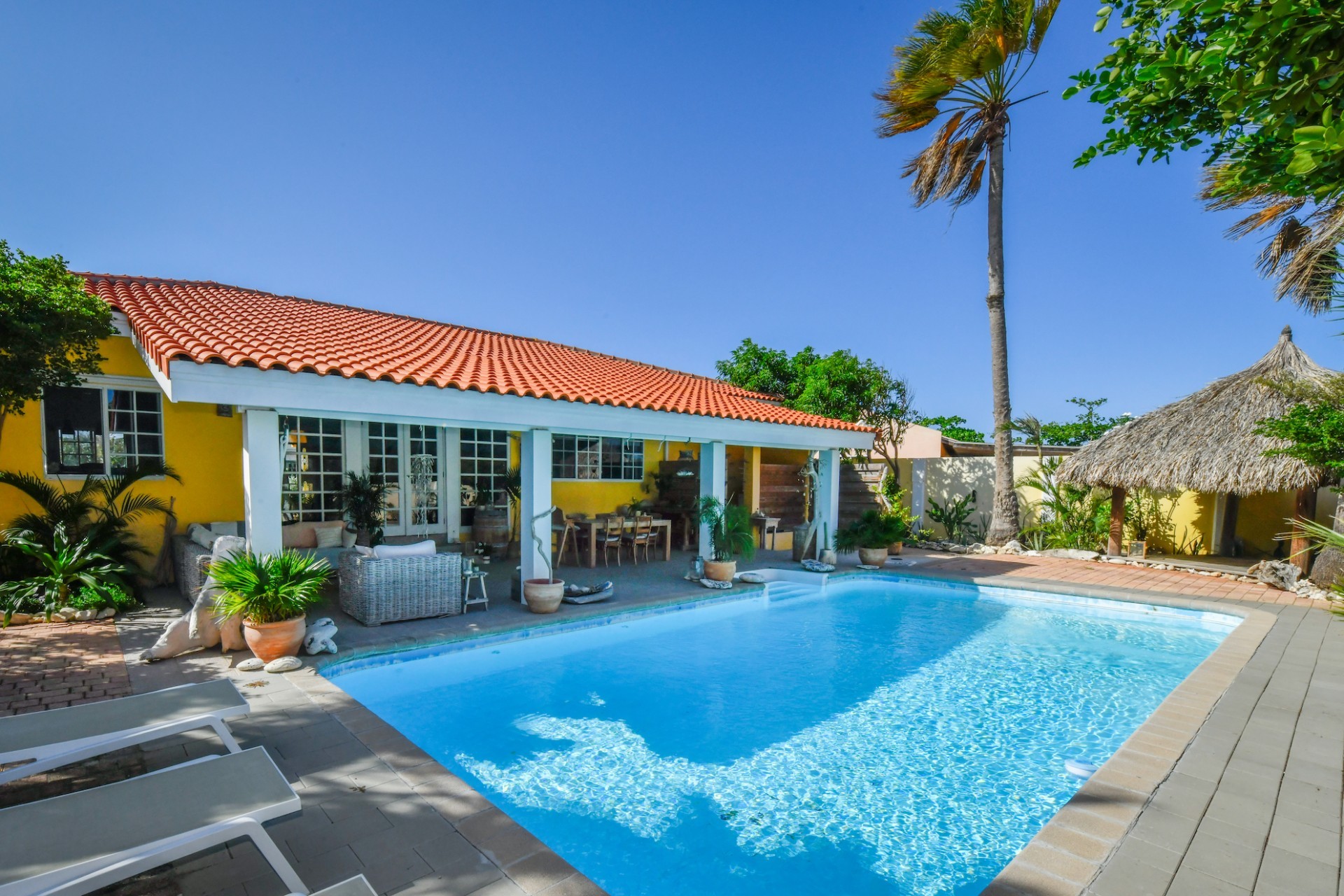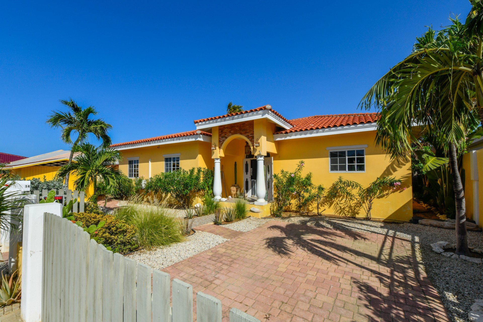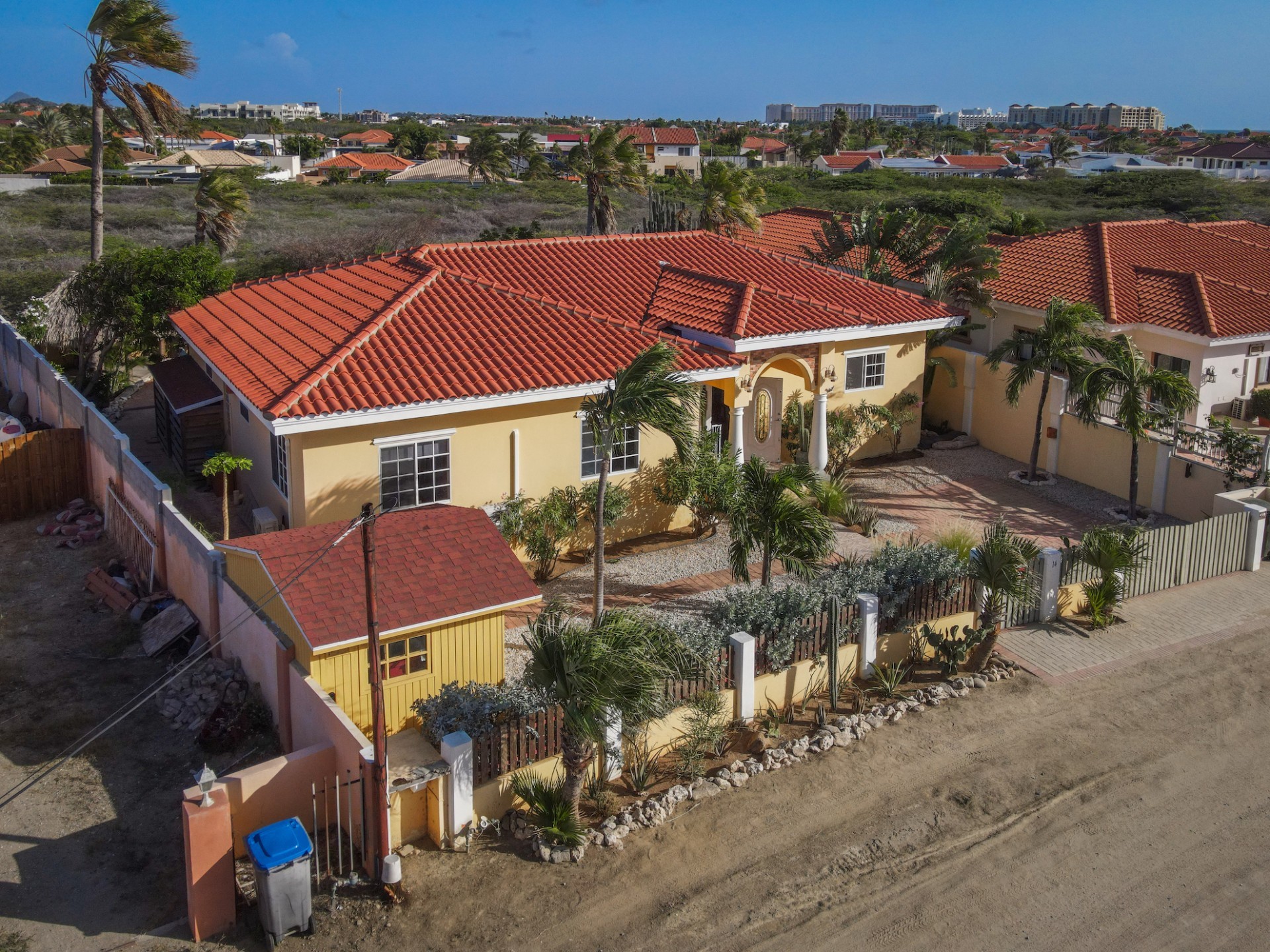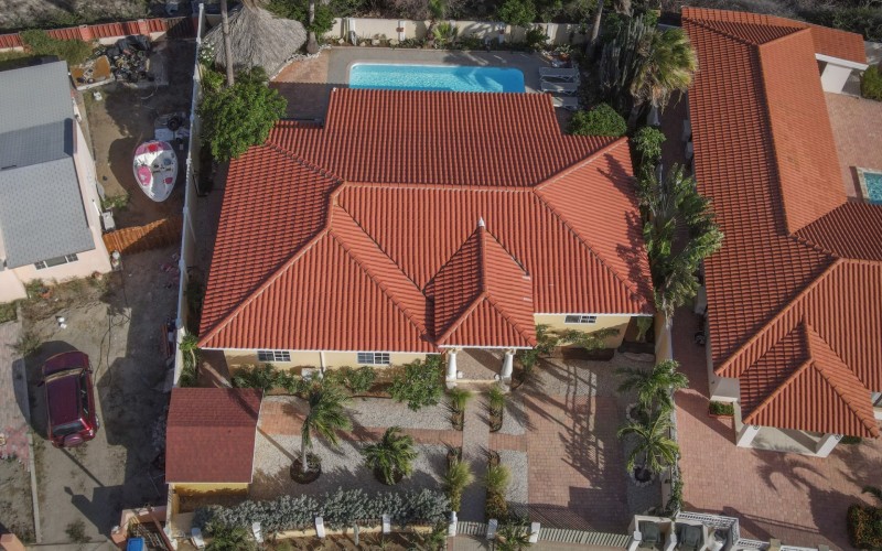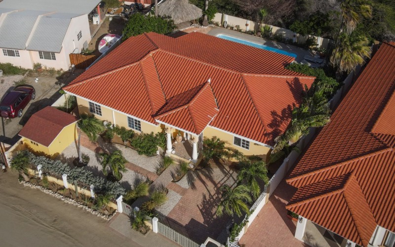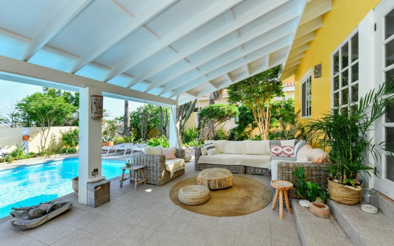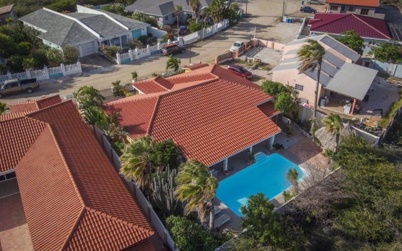 Introducing a modern gem in the prestigious Esmeralda, one of the most desirable neighborhoods on Aruba. This exquisite 3-bedroom, 2-bathroom home offers the perfect blend of luxury and comfort, ideal for those seeking a high-end living experience. Step inside to discover a sleek, modern interior, fully ready to welcome you. The open-plan layout effortlessly connects the living room, dining area, and kitchen, creating a spacious environment perfect for both entertaining and relaxation. The kitchen is a modern masterpiece, equipped with top-of-the-line appliances and ample counter space, making it a dream for any home chef. The master bedroom is a true retreat, featuring a walk-in closet and appointed en-suite bathroom. Two additional bedrooms provide ample space for family or guests, each designed with comfort in mind. The beauty of this home extends beyond its walls. Inside, you'll find an inviting open patio that serves as a serene retreat, seamlessly connected to the outside through large glass doors. These doors lead to a beautiful terrace, perfectly blending indoor and outdoor living. The expansive terrace is ideal for hosting, complete with a palapa for shaded relaxation, a large swimming pool for cooling off, and a delightful garden with automatic plant irrigation to enjoy Aruba’s year-round sunshine. Additionally, there is a shed for extra storage and convenience. Whether you're inside or out, this home offers the perfect setting for relaxation and entertainment. Situated on long lease land of 646 m², this property offers space, privacy, and an excellent investment opportunity. Currently tenanted with a lease until August 1, 2026, this unfurnished property offers immediate rental income. Whether you’re looking for a lucrative investment or a future dream home, this property in Esmeralda 14 has it all. Property highlights: 3 bedrooms | 2 bathrooms Modern interior Walk-in closet in the master bedroom Large terrace and patio with glass doors Spacious pool and palapa Outside laundry area Prime location in Esmeralda Tenant contract until August 2026 For more information, please contact Edwin Hekman: +297 592 2506 or