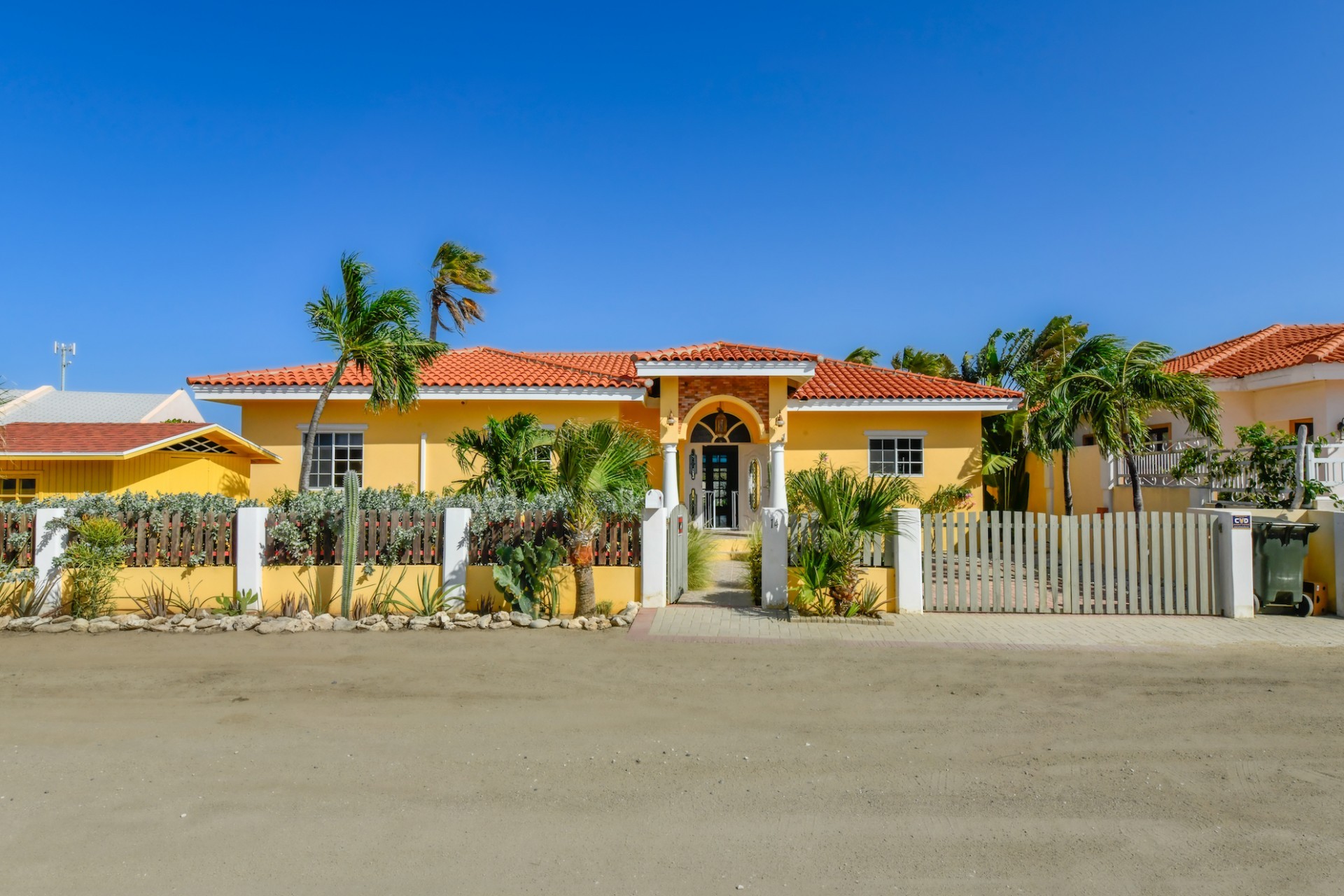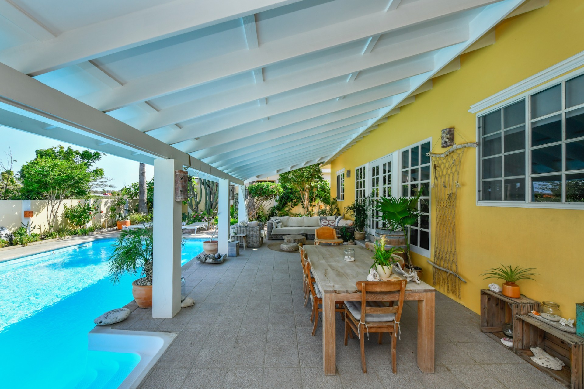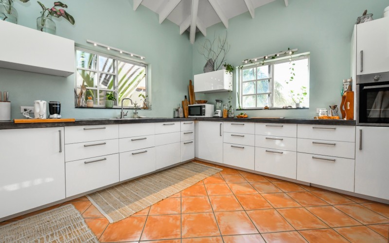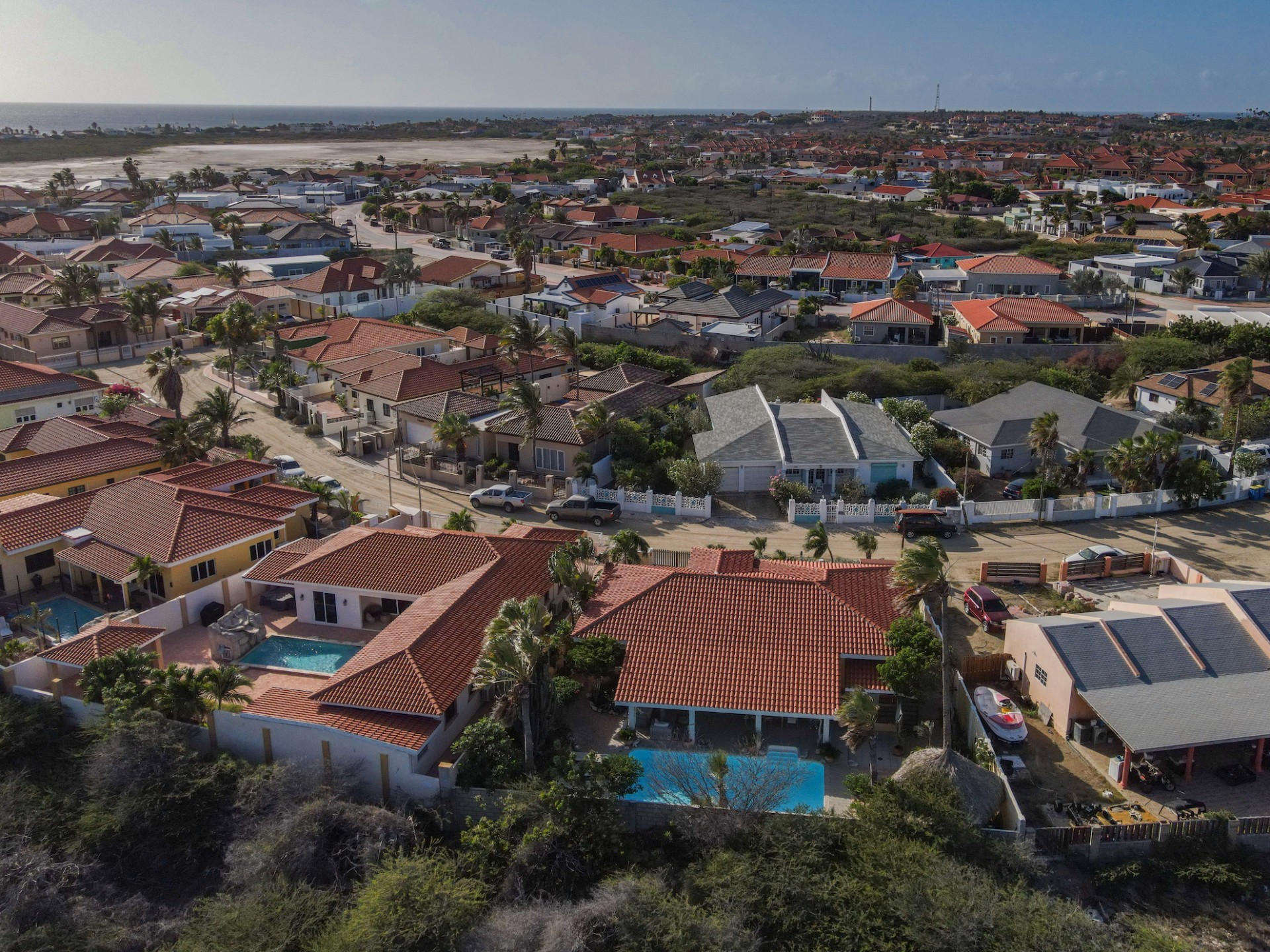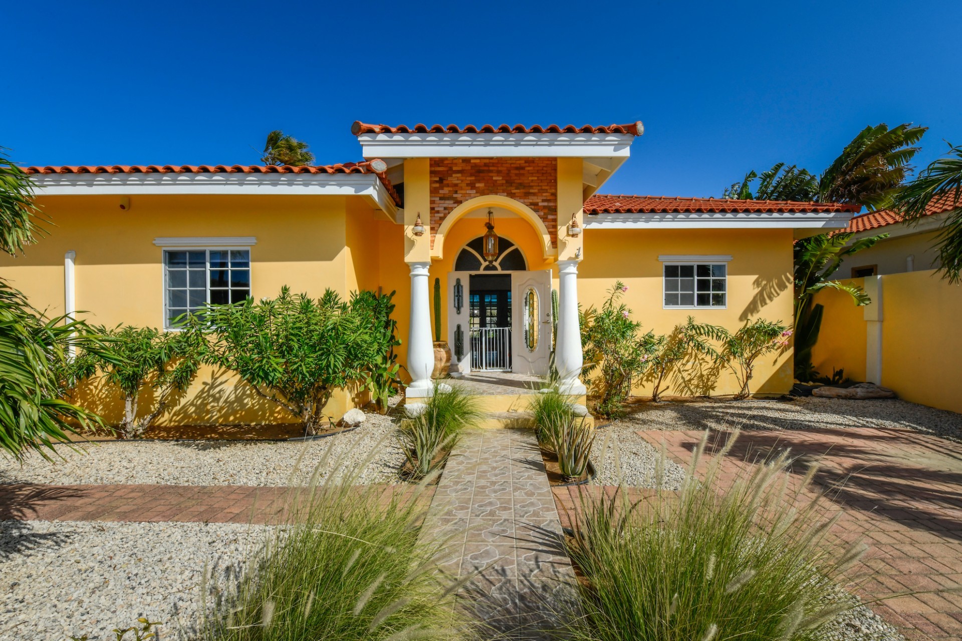 Introducing a modern gem in the prestigious Esmeralda, one of the most desirable neighborhoods on Aruba. This exquisite 3-bedroom, 2-bathroom home offers the perfect blend of luxury and comfort, ideal for those seeking a high-end living experience. Step inside to discover a sleek, modern interior, fully ready to welcome you. The open-plan layout effortlessly connects the living room, dining area, and kitchen, creating a spacious environment perfect for both entertaining and relaxation. The kitchen is a modern masterpiece, equipped with top-of-the-line appliances and ample counter space, making it a dream for any home chef. The master bedroom is a true retreat, featuring a walk-in closet and appointed en-suite bathroom. Two additional bedrooms provide ample space for family or guests, each designed with comfort in mind. The beauty of this home extends beyond its walls. Inside, you'll find an inviting open patio that serves as a serene retreat, seamlessly connected to the outside through large glass doors. These doors lead to a beautiful terrace, perfectly blending indoor and outdoor living. The expansive terrace is ideal for hosting, complete with a palapa for shaded relaxation, a large swimming pool for cooling off, and a delightful garden with automatic plant irrigation to enjoy Aruba’s year-round sunshine. Additionally, there is a shed for extra storage and convenience. Whether you're inside or out, this home offers the perfect setting for relaxation and entertainment. Situated on long lease land of 646 m², this property offers space, privacy, and an excellent investment opportunity. Currently tenanted with a lease until August 1, 2026, this unfurnished property offers immediate rental income. Whether you’re looking for a lucrative investment or a future dream home, this property in Esmeralda 14 has it all. Property highlights: 3 bedrooms | 2 bathrooms Modern interior Walk-in closet in the master bedroom Large terrace and patio with glass doors Spacious pool and palapa Outside laundry area Prime location in Esmeralda Tenant contract until August 2026 For more information, please contact Edwin Hekman: +297 592 2506 or