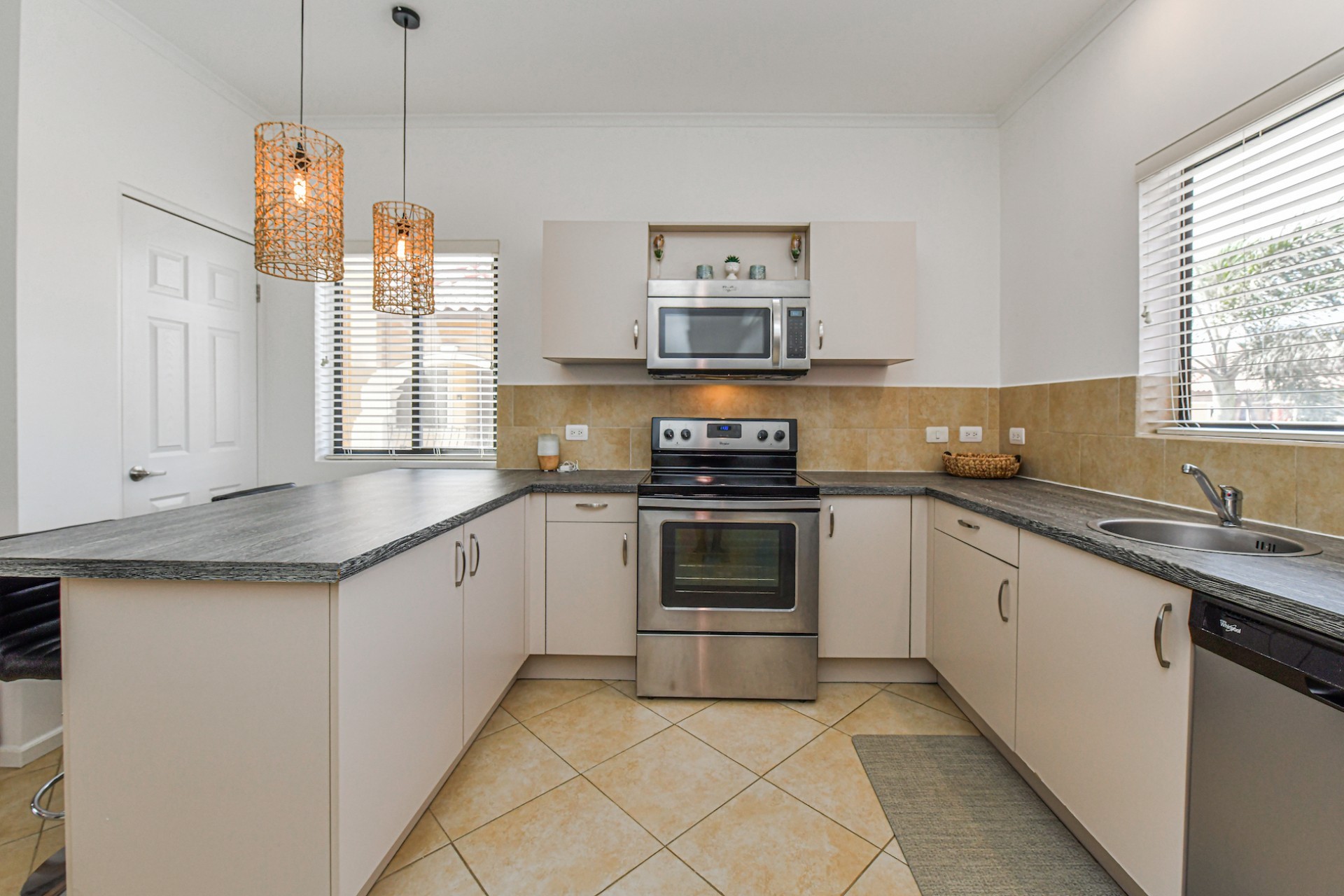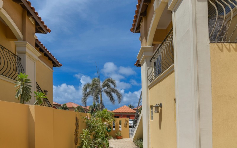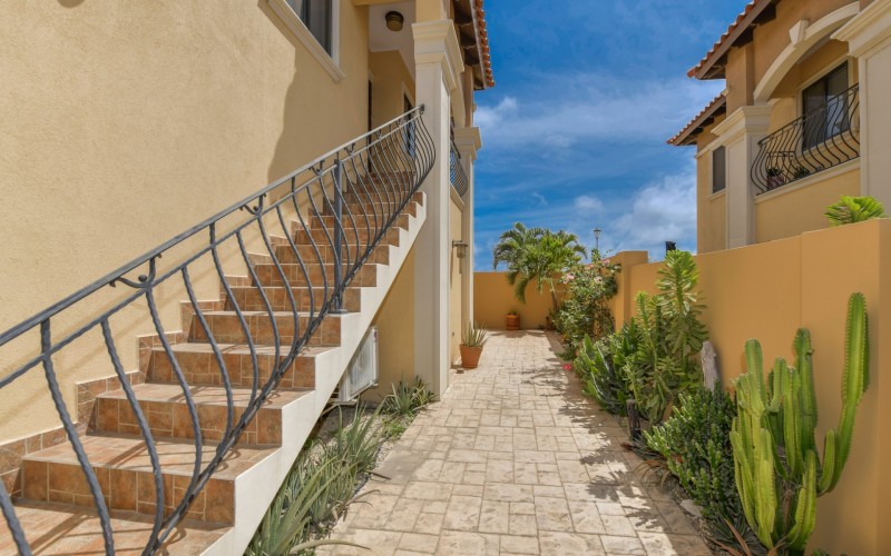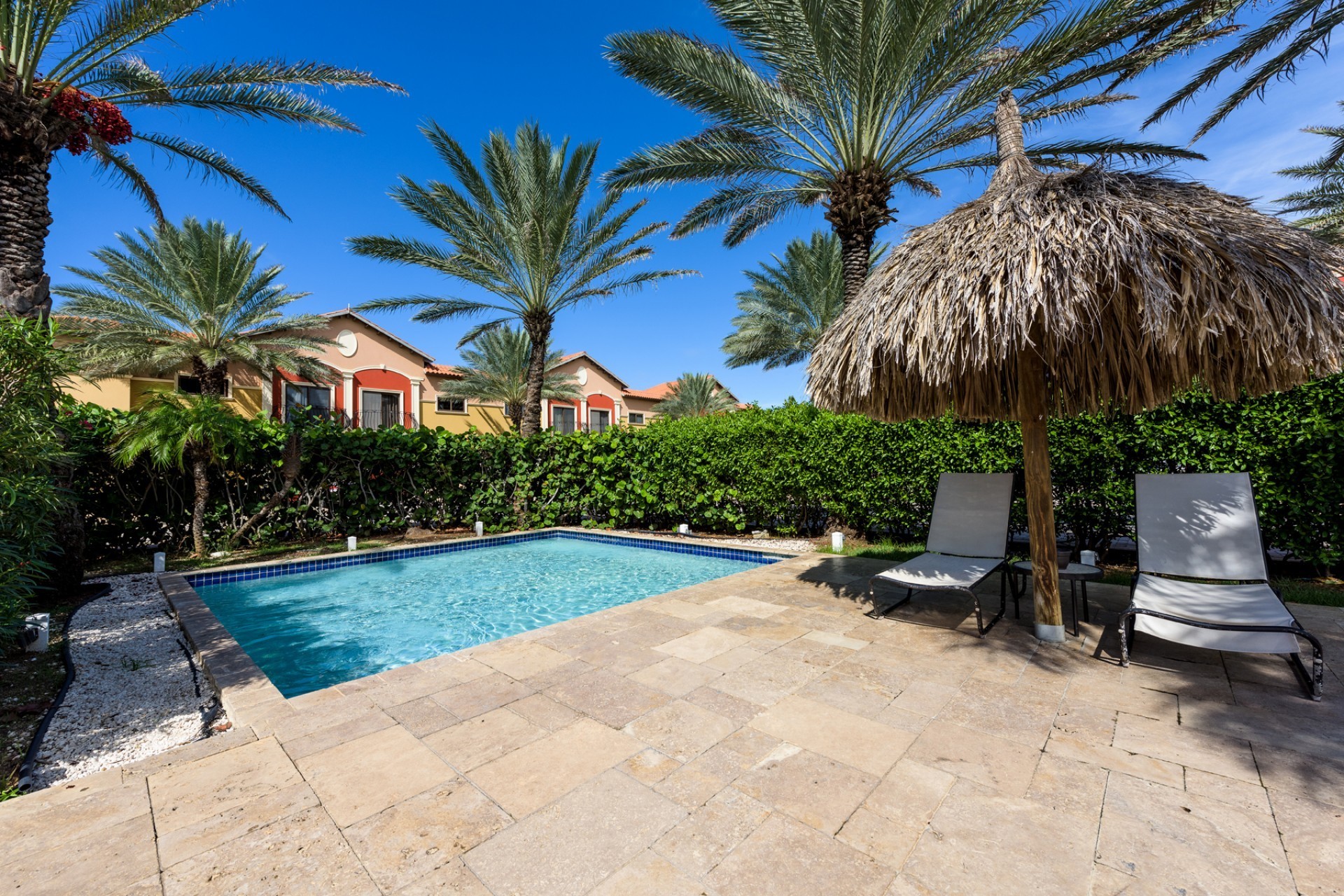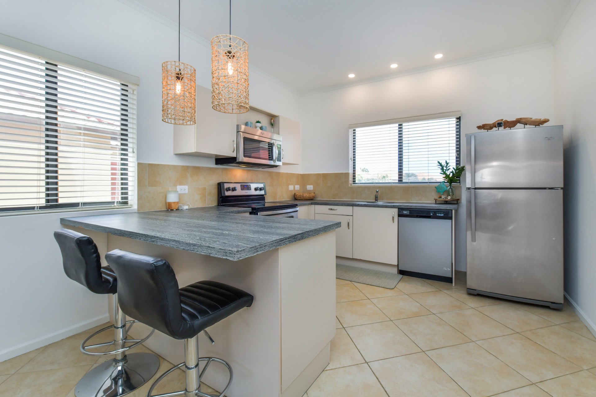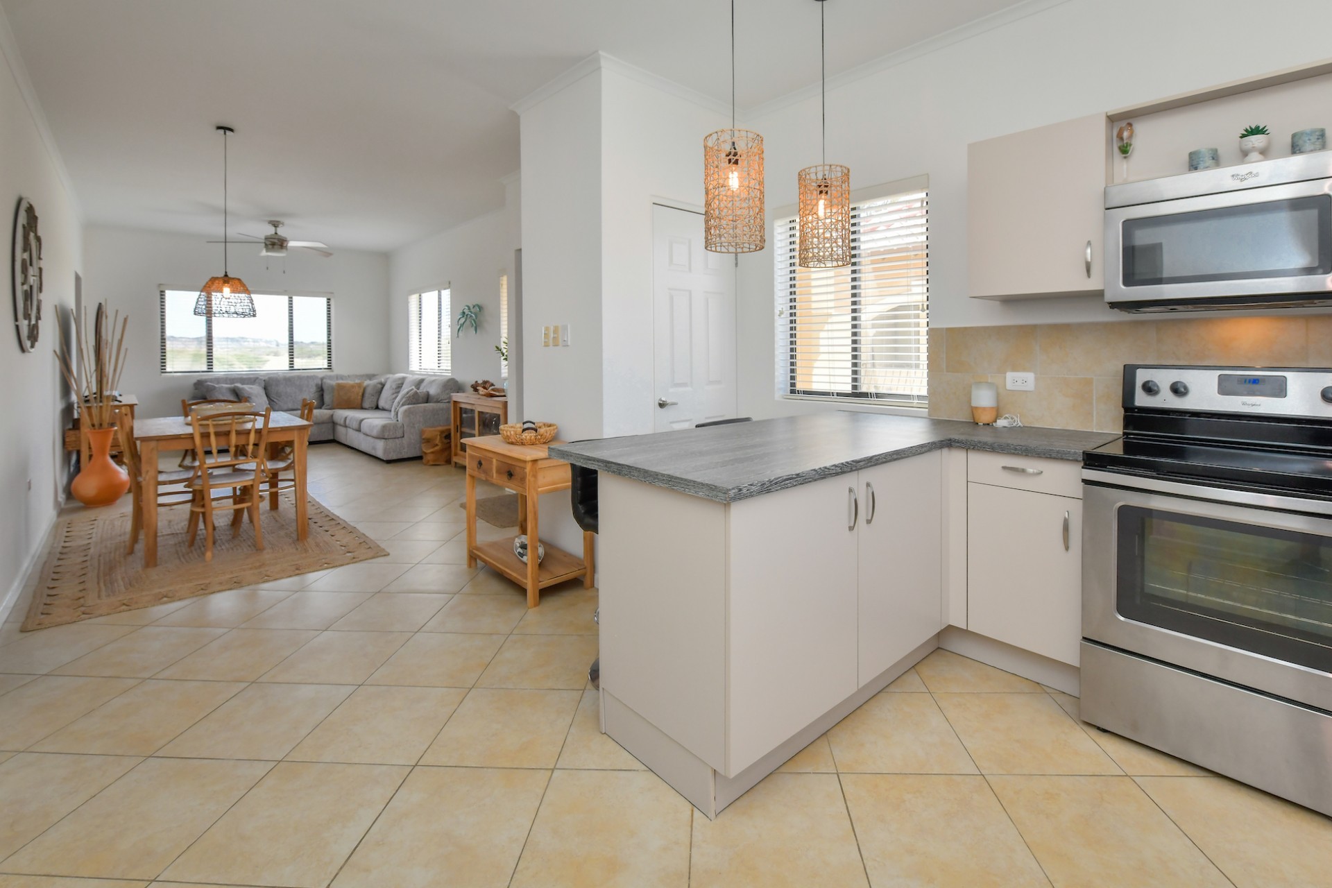 NEW ON THE MARKET. Contemporary fully-furnished full renovated 2bedroom/2bath condo located in the most exclusive gated community in Aruba; Gold Coast Villas. Located within walking distance to the Arashi beach and a short ride to the High-Rise Hotel area, other renowned beaches, entertainment, shopping, and f&b establishments. This 2nd-floor condo features an open floor concept; a fully equipped kitchen, dining, and living area. The main bedroom has its own private bathroom and closet. Additionally, it features a spacious private side yard to entertain your guests and/or family members. The state-of-the-art Club House features an f&b establishment, a fully equipped gym, 2 tennis courts, and 3 community pools scattered around the community for your convenience! Features: 2 beds, 2 baths, Fully furnished & equipped kitchen, Fully air-conditioned (inverter split units), Fenced private side-yard, Laundry area, Designated parking space, On-demand hot water, Clubhouse with gym, 3 community pools, and tennis courts. For a quick response please call or WhatsApp Joshua LaClé at +297 7337070