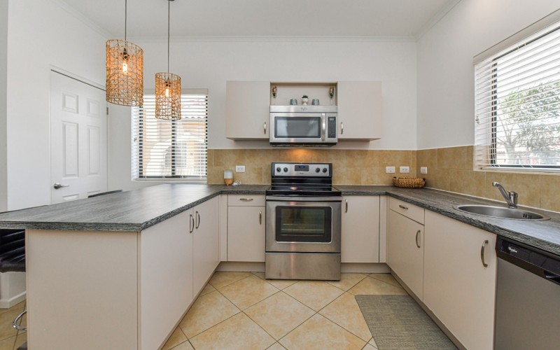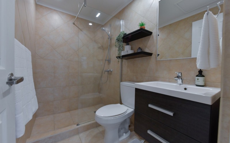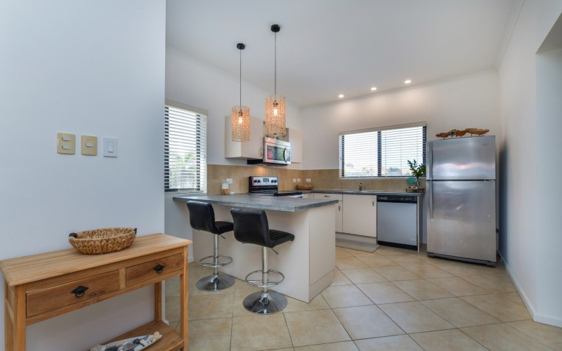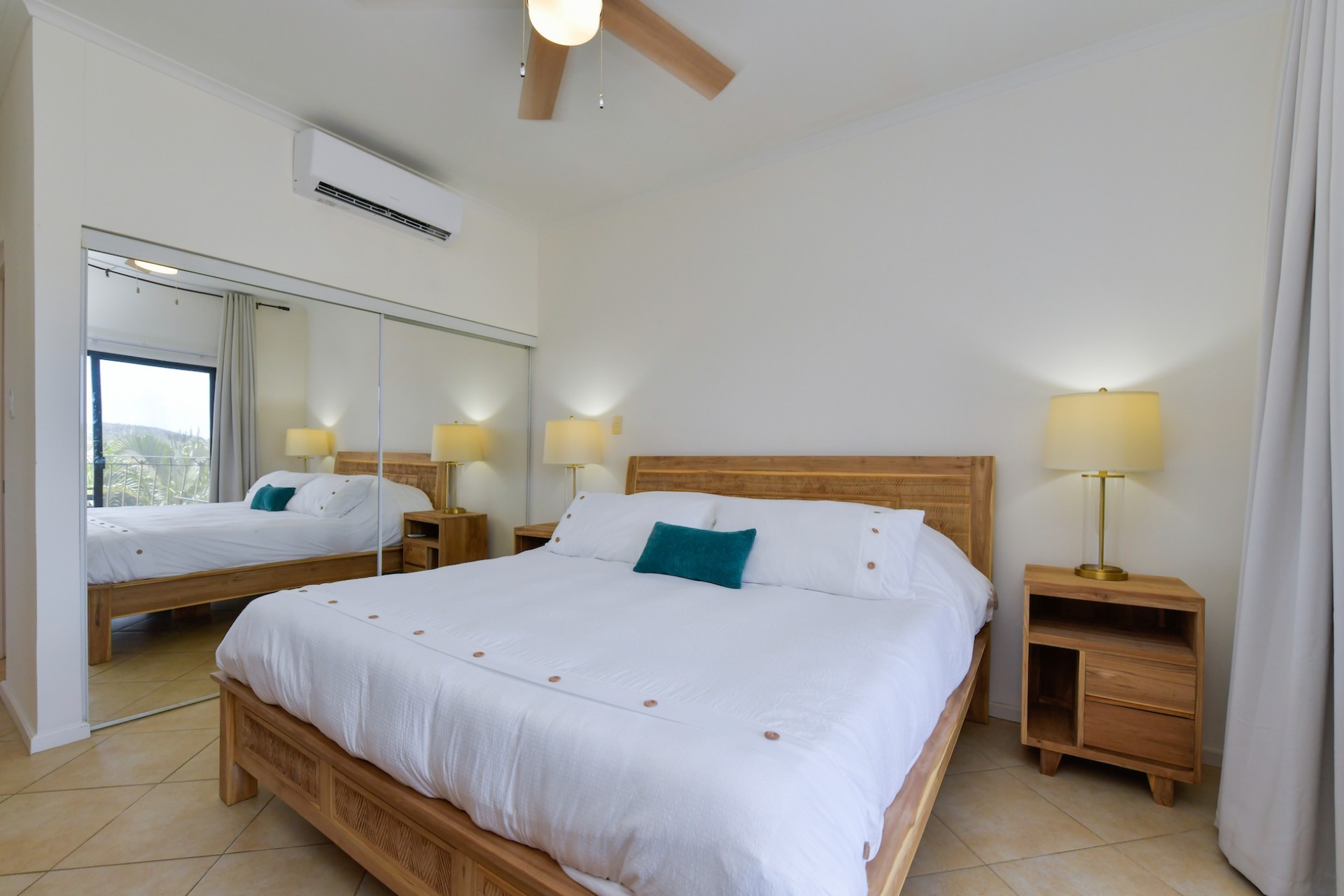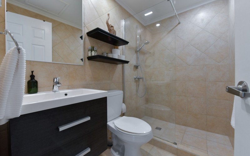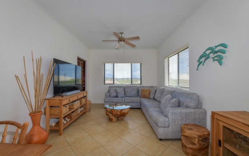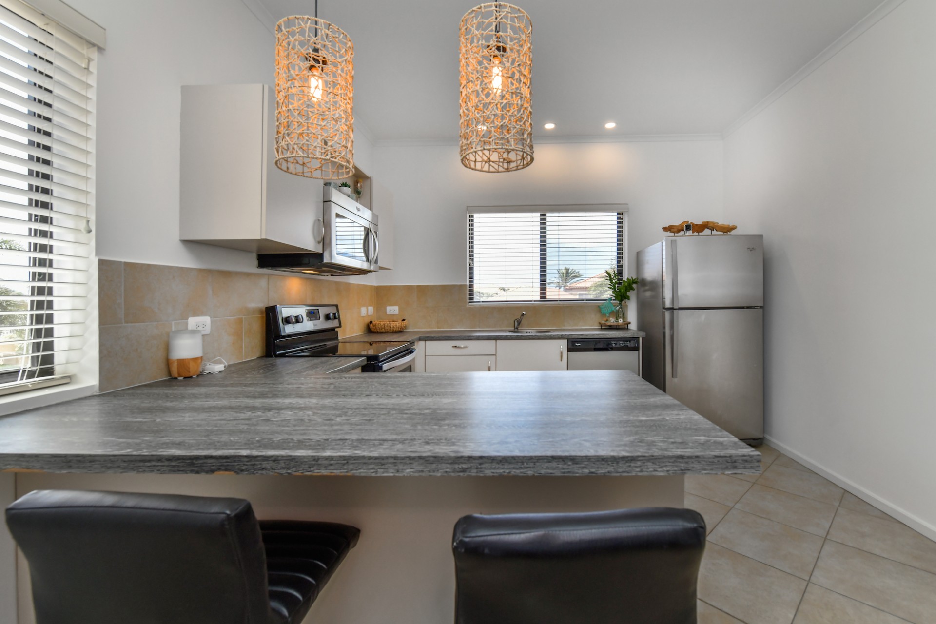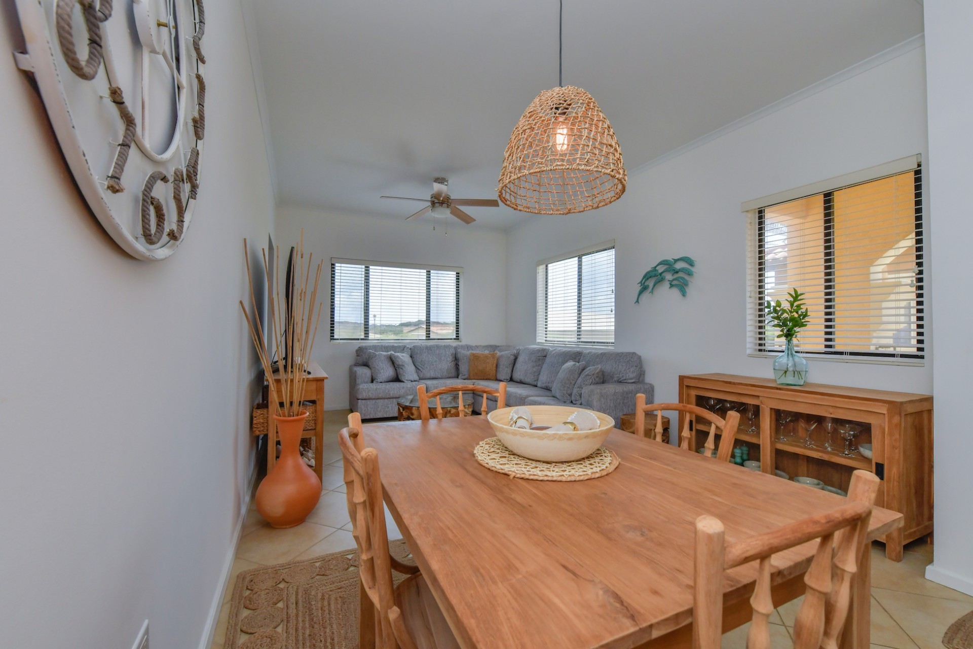 NEW ON THE MARKET. Contemporary fully-furnished full renovated 2bedroom/2bath condo located in the most exclusive gated community in Aruba; Gold Coast Villas. Located within walking distance to the Arashi beach and a short ride to the High-Rise Hotel area, other renowned beaches, entertainment, shopping, and f&b establishments. This 2nd-floor condo features an open floor concept; a fully equipped kitchen, dining, and living area. The main bedroom has its own private bathroom and closet. Additionally, it features a spacious private side yard to entertain your guests and/or family members. The state-of-the-art Club House features an f&b establishment, a fully equipped gym, 2 tennis courts, and 3 community pools scattered around the community for your convenience! Features: 2 beds, 2 baths, Fully furnished & equipped kitchen, Fully air-conditioned (inverter split units), Fenced private side-yard, Laundry area, Designated parking space, On-demand hot water, Clubhouse with gym, 3 community pools, and tennis courts. For a quick response please call or WhatsApp Joshua LaClé at +297 7337070