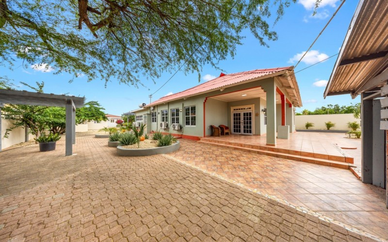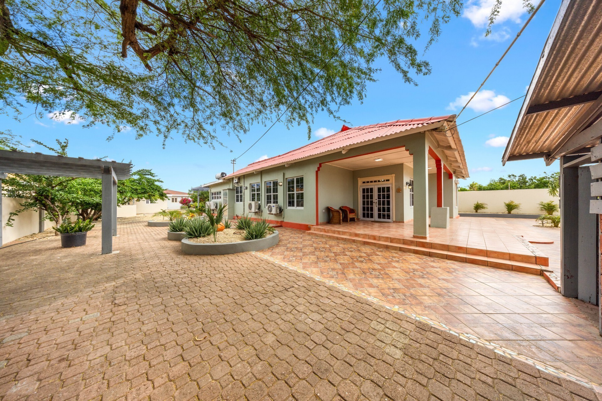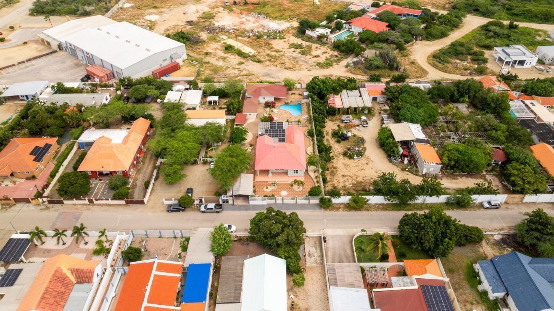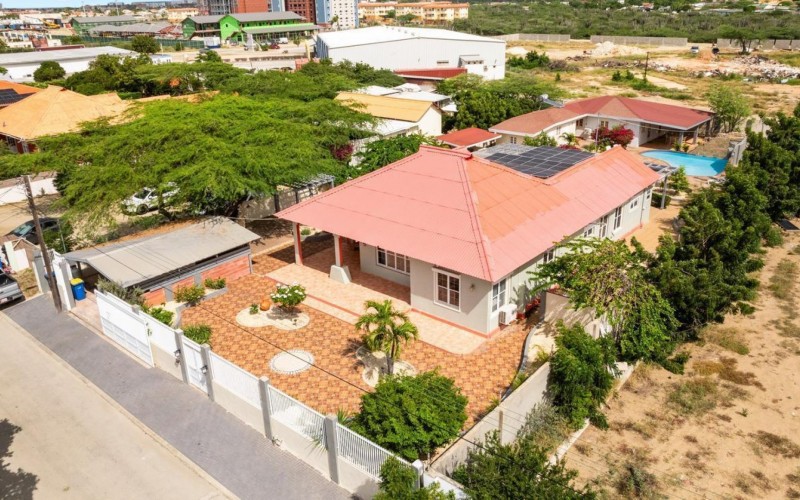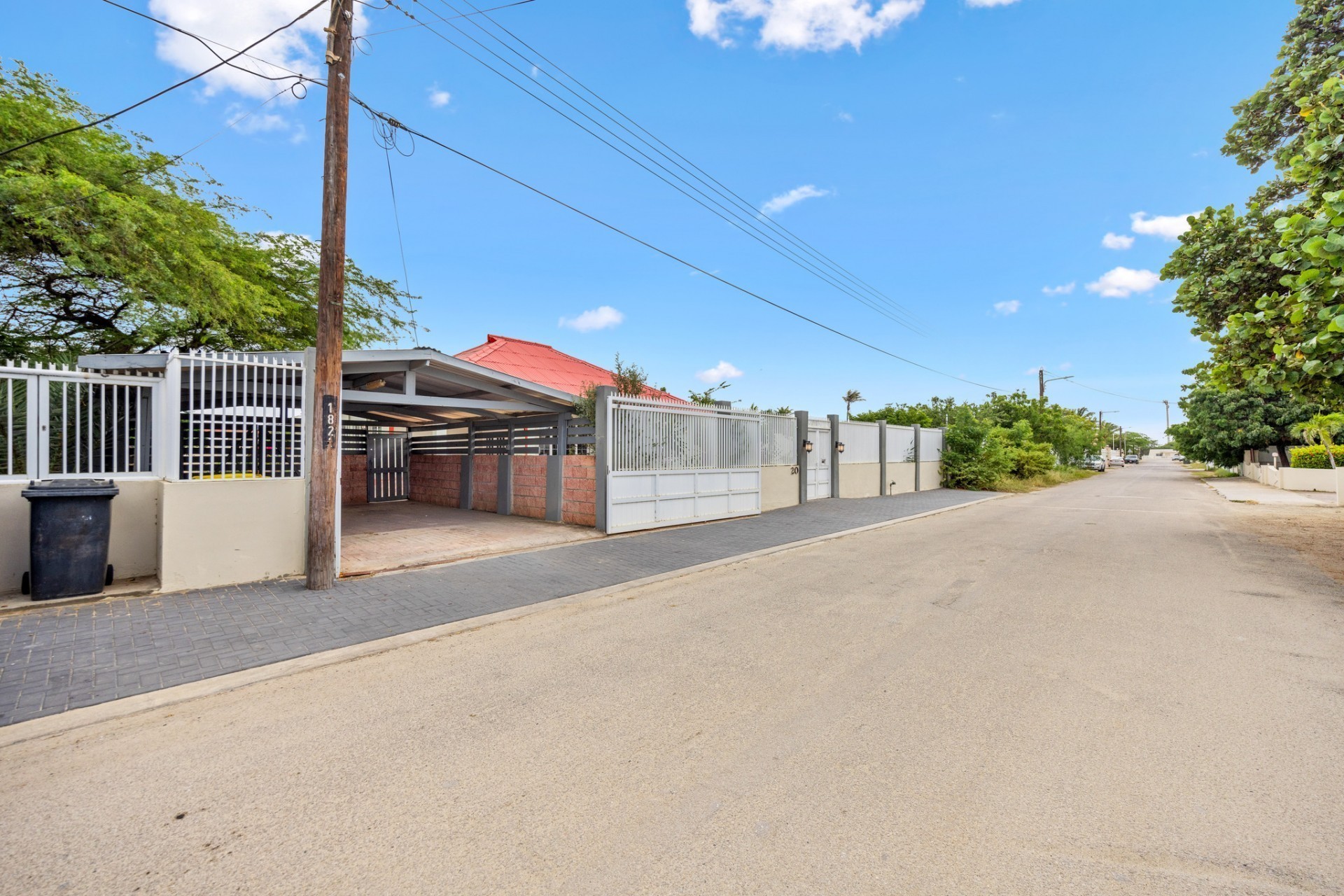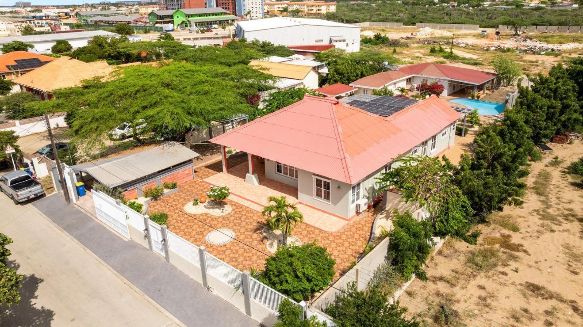 Hidden Oasis in the Heart of Aruba – Expansive Estate with Limitless Potential Welcome to Ierlandstraat 20, a hidden gem perfectly located between Oranjestad and Noord. From the outside, behind the private wall lies a lush and expansive estate sitting on 1,588 m² of full ownership land. Walking distance to the ocean, a major supermarket, and just minutes from Eagle Beach, Palm Beach, and the vibrant downtown area. Despite its central location, this gated property feels like a private retreat. A gated entrance leads to a two-car carport and a lush yard that wraps around the entire home. Inside, you'll find approx. 529 m² of built-up area, spread across a spacious main house and multiple detached units. The main house opens into an expansive entry hall with high ceilings and endless potential. French doors lead to a bright, open living area and a renovated kitchen with bar and ample counter space. From the hall, you’ll find the primary suite with walk-in closet and en suite, plus a second bedroom. The third bedroom—also with walk-in closet and en suite—is privately located off the living area. Step outside to a tropical escape featuring a covered patio, an elevated pool terrace with calming waterfall, and lush greenery throughout. There's an outdoor bathroom, a dedicated BBQ area, and space in the back for further development. At the back of the property, a flexible detached building offers a 1-bedroom apartment with kitchen and bath, plus an adjoining 2-bedroom unit with shared bath. Both have private entrances and can function as one large or two separate rentals. An unfinished unit offers the option to add a 7th bedroom and 6th bathroom. Currently a high-performing Airbnb, this hidden oasis offers unmatched location, privacy, and income potential—perfect as a spacious family home or smart investment. Contact us today to schedule your private (online) showing. 📞 +297-742-0129 📨
