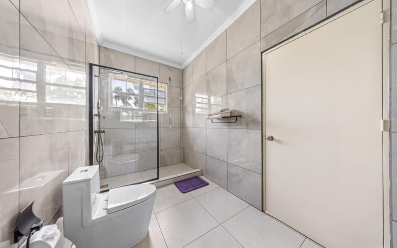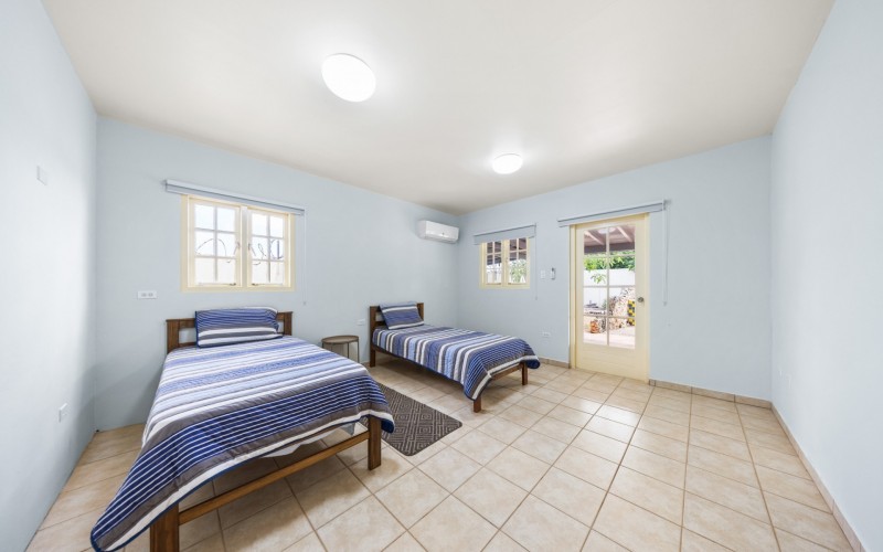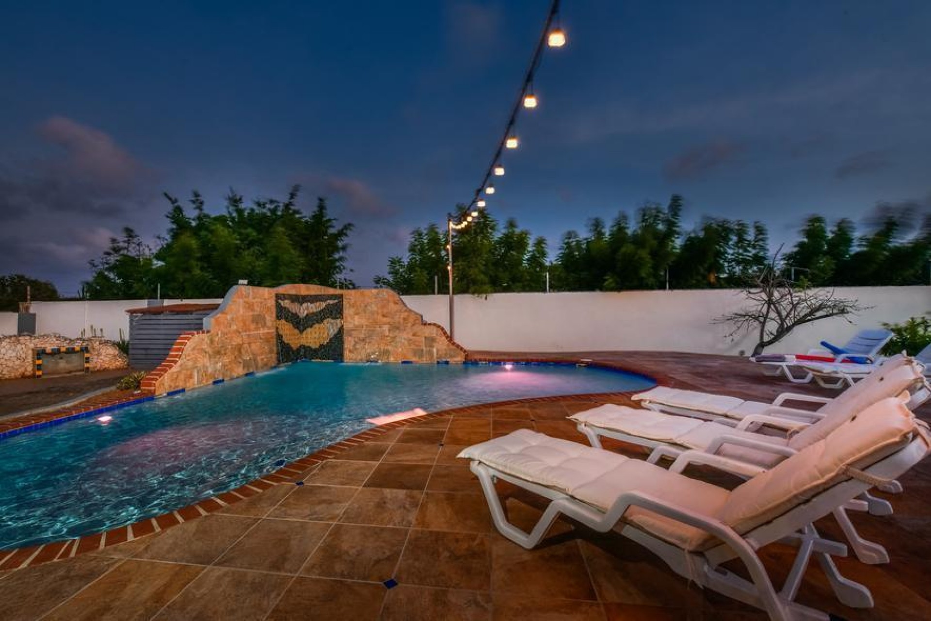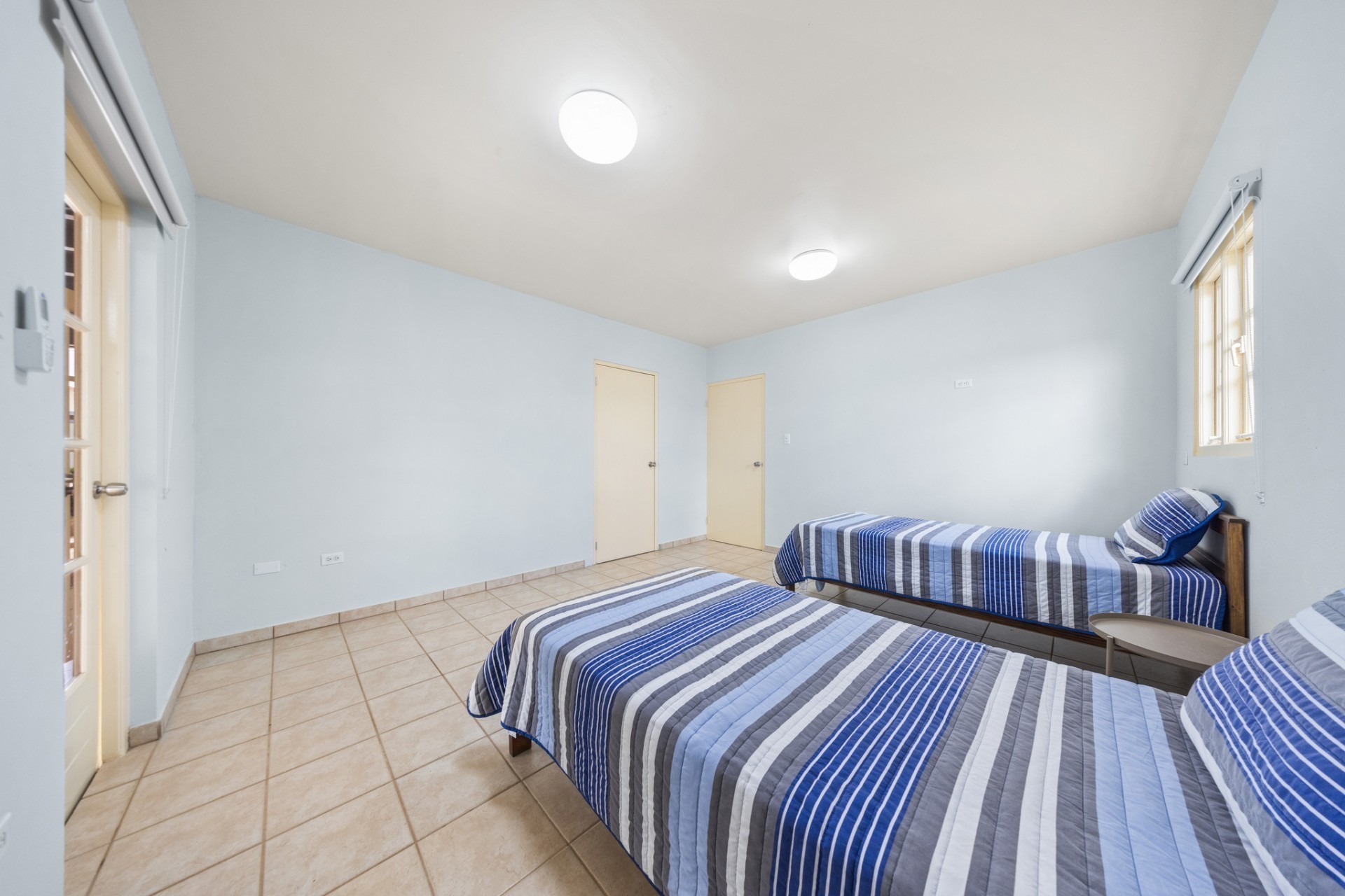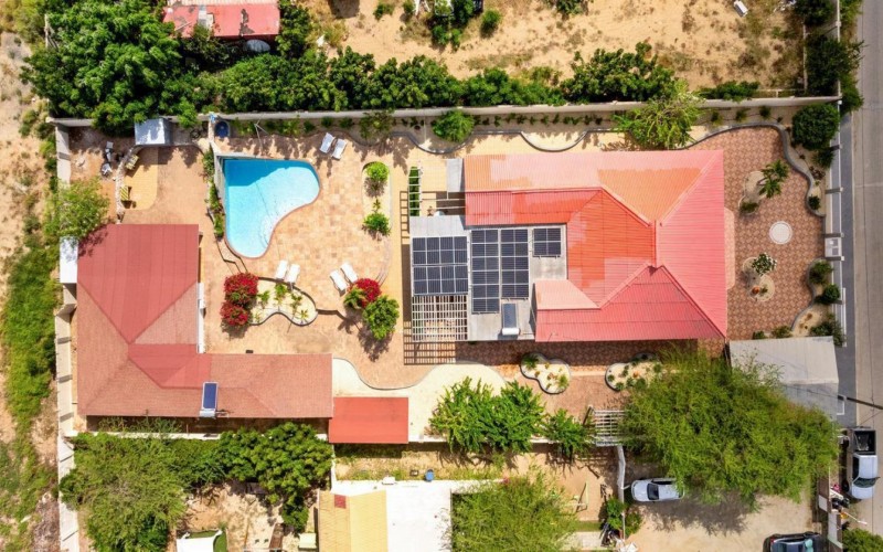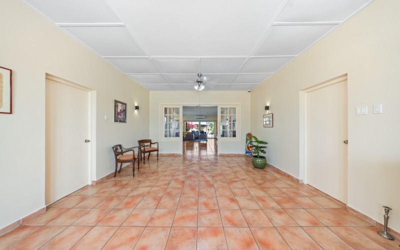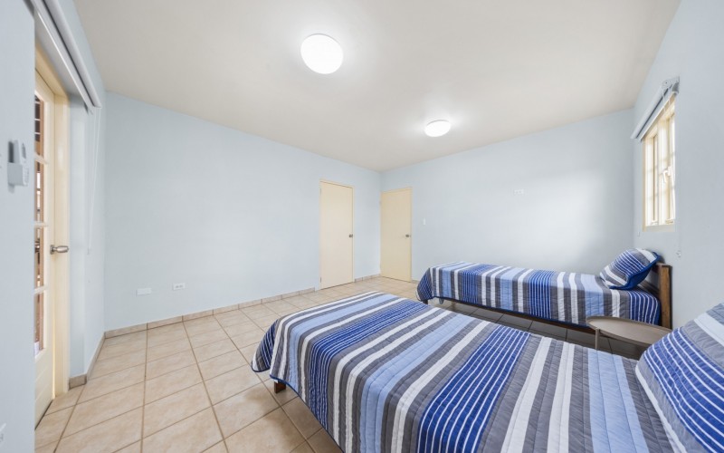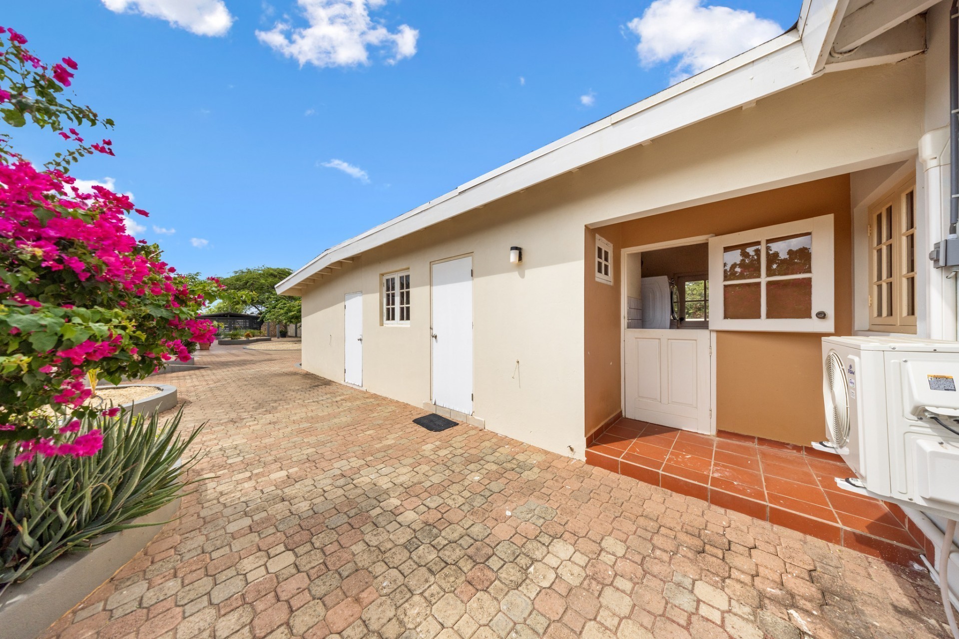 Hidden Oasis in the Heart of Aruba – Expansive Estate with Limitless Potential Welcome to Ierlandstraat 20, a hidden gem perfectly located between Oranjestad and Noord. From the outside, behind the private wall lies a lush and expansive estate sitting on 1,588 m² of full ownership land. Walking distance to the ocean, a major supermarket, and just minutes from Eagle Beach, Palm Beach, and the vibrant downtown area. Despite its central location, this gated property feels like a private retreat. A gated entrance leads to a two-car carport and a lush yard that wraps around the entire home. Inside, you'll find approx. 529 m² of built-up area, spread across a spacious main house and multiple detached units. The main house opens into an expansive entry hall with high ceilings and endless potential. French doors lead to a bright, open living area and a renovated kitchen with bar and ample counter space. From the hall, you’ll find the primary suite with walk-in closet and en suite, plus a second bedroom. The third bedroom—also with walk-in closet and en suite—is privately located off the living area. Step outside to a tropical escape featuring a covered patio, an elevated pool terrace with calming waterfall, and lush greenery throughout. There's an outdoor bathroom, a dedicated BBQ area, and space in the back for further development. At the back of the property, a flexible detached building offers a 1-bedroom apartment with kitchen and bath, plus an adjoining 2-bedroom unit with shared bath. Both have private entrances and can function as one large or two separate rentals. An unfinished unit offers the option to add a 7th bedroom and 6th bathroom. Currently a high-performing Airbnb, this hidden oasis offers unmatched location, privacy, and income potential—perfect as a spacious family home or smart investment. Contact us today to schedule your private (online) showing. 📞 +297-742-0129 📨