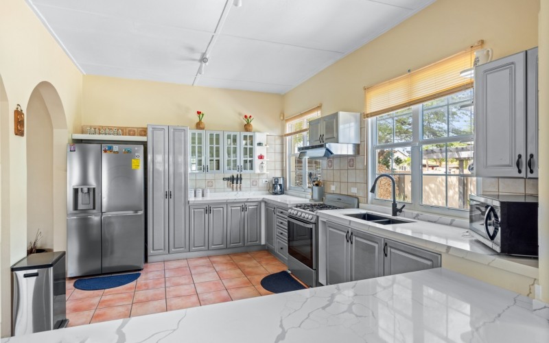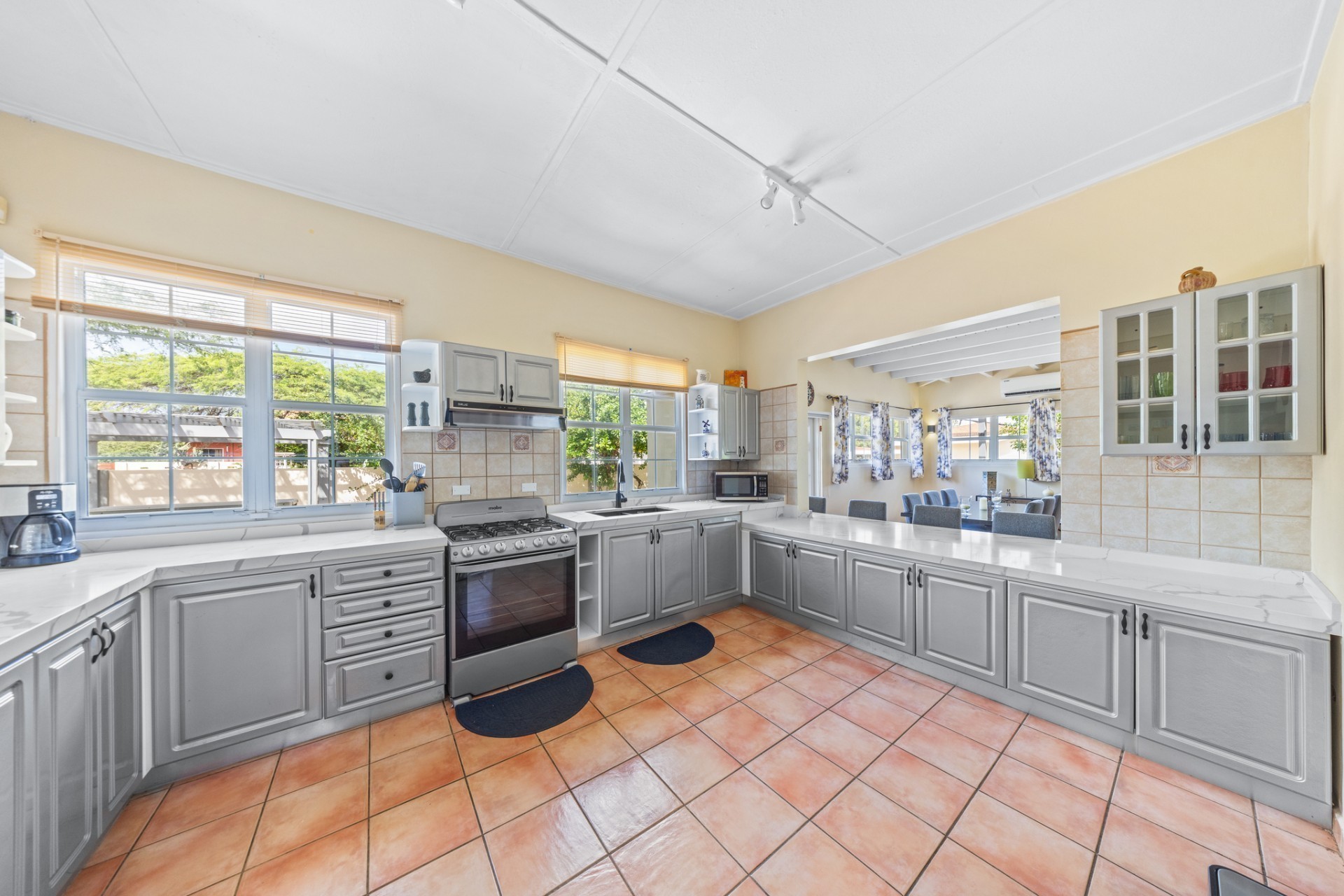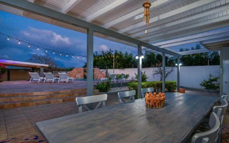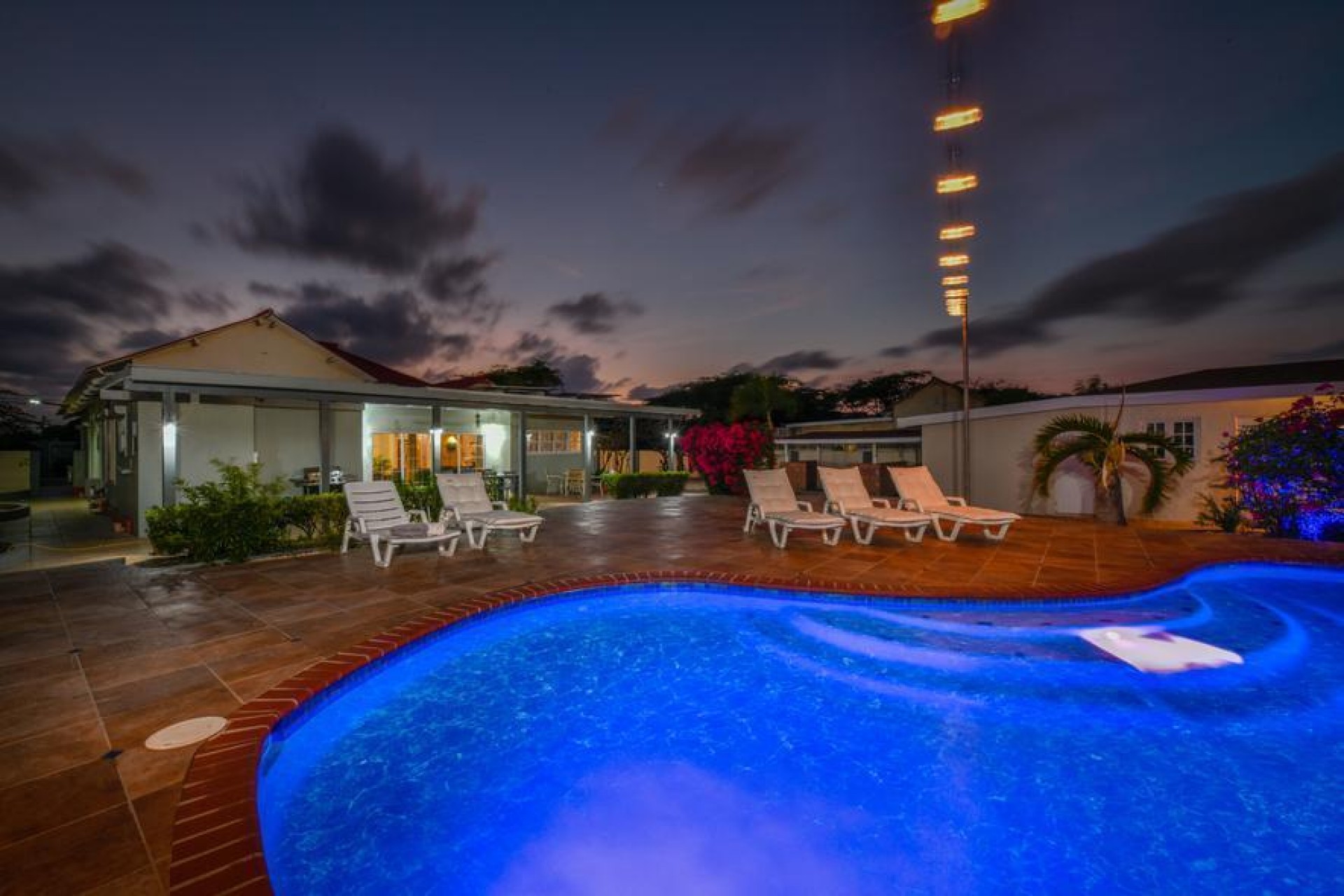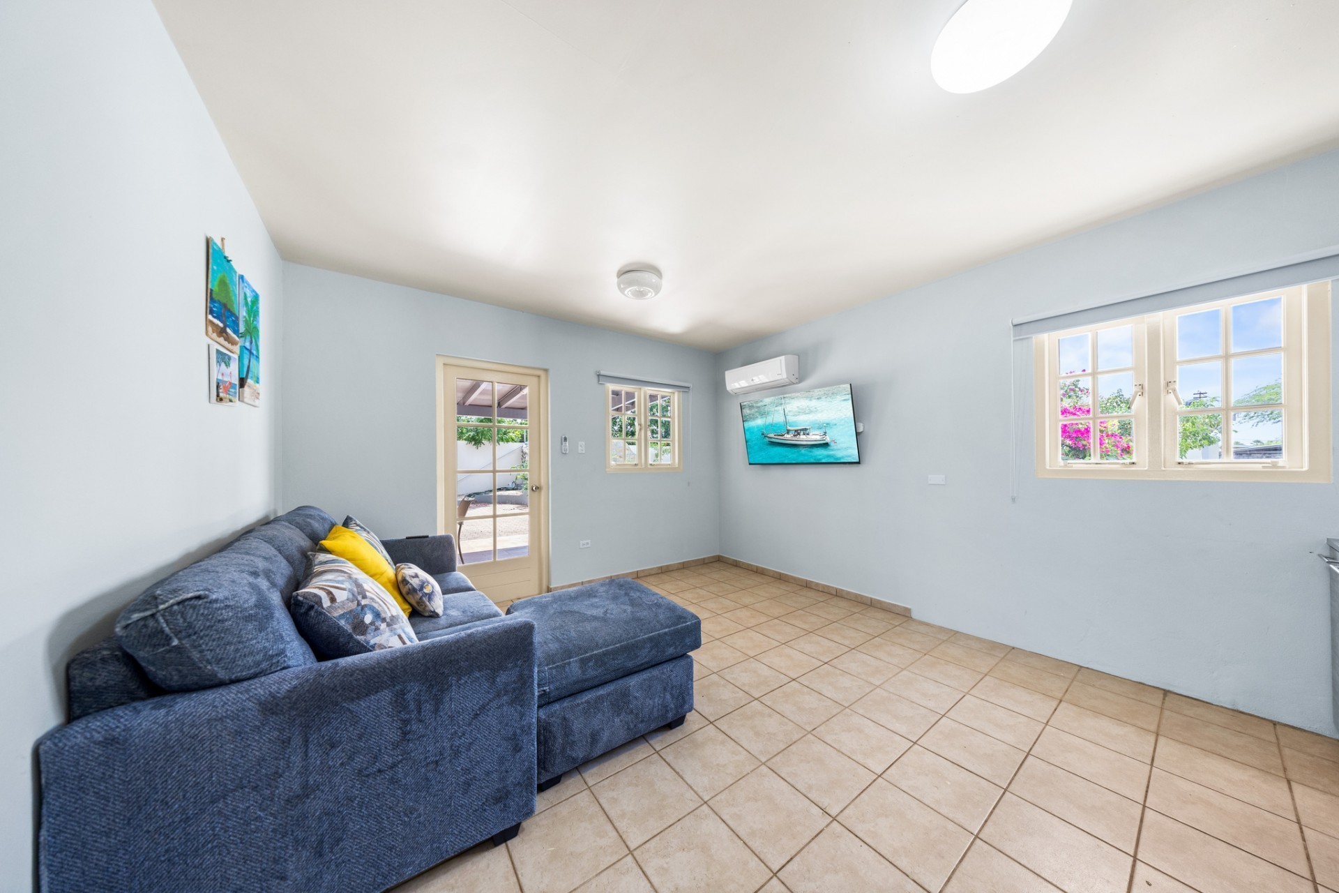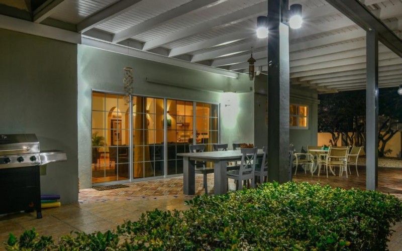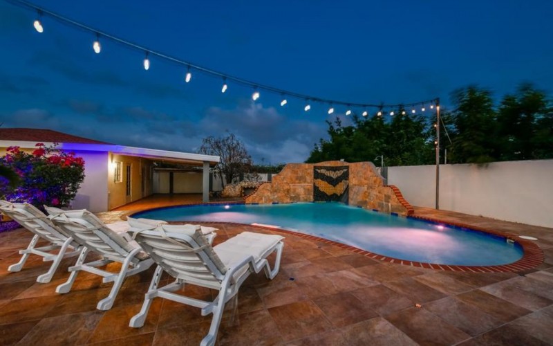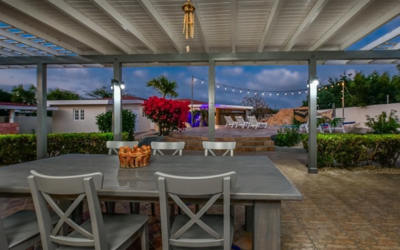 Hidden Oasis in the Heart of Aruba – Expansive Estate with Limitless Potential Welcome to Ierlandstraat 20, a hidden gem perfectly located between Oranjestad and Noord. From the outside, behind the private wall lies a lush and expansive estate sitting on 1,588 m² of full ownership land. Walking distance to the ocean, a major supermarket, and just minutes from Eagle Beach, Palm Beach, and the vibrant downtown area. Despite its central location, this gated property feels like a private retreat. A gated entrance leads to a two-car carport and a lush yard that wraps around the entire home. Inside, you'll find approx. 529 m² of built-up area, spread across a spacious main house and multiple detached units. The main house opens into an expansive entry hall with high ceilings and endless potential. French doors lead to a bright, open living area and a renovated kitchen with bar and ample counter space. From the hall, you’ll find the primary suite with walk-in closet and en suite, plus a second bedroom. The third bedroom—also with walk-in closet and en suite—is privately located off the living area. Step outside to a tropical escape featuring a covered patio, an elevated pool terrace with calming waterfall, and lush greenery throughout. There's an outdoor bathroom, a dedicated BBQ area, and space in the back for further development. At the back of the property, a flexible detached building offers a 1-bedroom apartment with kitchen and bath, plus an adjoining 2-bedroom unit with shared bath. Both have private entrances and can function as one large or two separate rentals. An unfinished unit offers the option to add a 7th bedroom and 6th bathroom. Currently a high-performing Airbnb, this hidden oasis offers unmatched location, privacy, and income potential—perfect as a spacious family home or smart investment. Contact us today to schedule your private (online) showing. 📞 +297-742-0129 📨