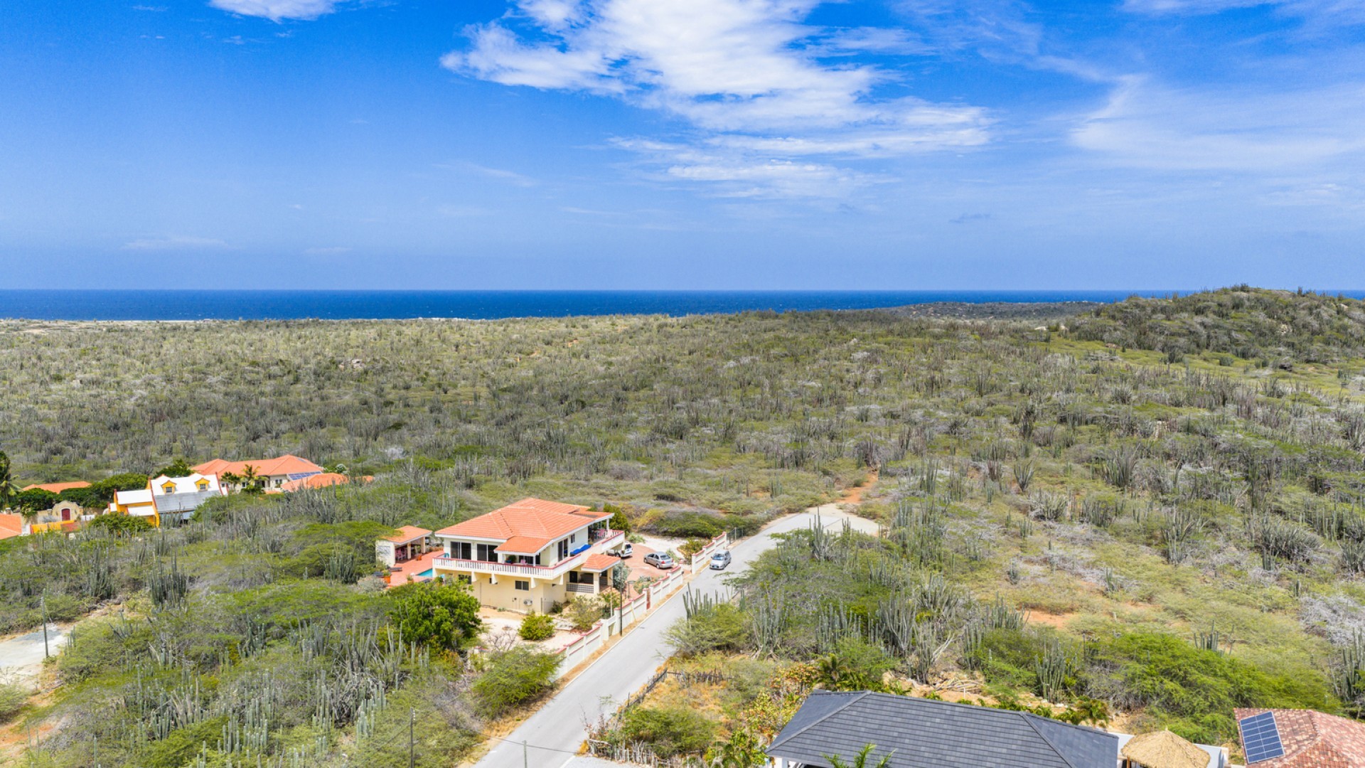 Modern Elegance in the hills of Kamay – Renovated 5-Bedroom Home with Ocean Views & Guest Apartment Set high in the serene hills of Kamay, this renovated property combines absolute tranquility with unmatched convenience. Tucked away in peace and privacy, yet just minutes from Aruba’s beaches, the vibrant Palm Beach strip with restaurants, bars and casinos, as well as supermarkets and more, this home offers the best of both worlds. With its refined finishes, seamless indoor-outdoor flow, and sweeping ocean views, this hillside retreat is a true hidden gem. At the heart of the residence lies its true centerpiece: a sleek, European-inspired kitchen. With a grand island, clean modern lines, and windows all around flooding the space with natural light, this open-concept kitchen seamlessly flows into the living area. A cozy reading nook adds charm and character, while French doors extend your living space outdoors—capturing the essence of Caribbean indoor-outdoor living. Step outside to a private pool deck, a covered dining terrace, and multiple seating areas designed for both relaxation and entertaining. From here, take in the sweeping views of Aruba’s scenic north coast—breathtaking vistas only the hills of Kamay can offer. The main residence offers four stylish bedrooms and two beautifully finished bathrooms designed for comfort and style. Complementing the home is a private apartment, renovated in the same sleek European style, complete with its own private entrance and kitchenette—perfect for hosting guests, extended family, or creating steady rental income. Sitting on a generous 1,209 m² lot, this property is move-in ready, yet brimming with potential. With ample space for additional landscaping, outdoor features, or future expansion, the opportunity to create your ultimate dream retreat is wide open. Whether you’re seeking a stylish family home, a serene vacation getaway, or a turnkey investment with room to grow—this hillside haven checks every box. Schedule your private (or virtual) showing today. 📞 +297 742 0129 📨