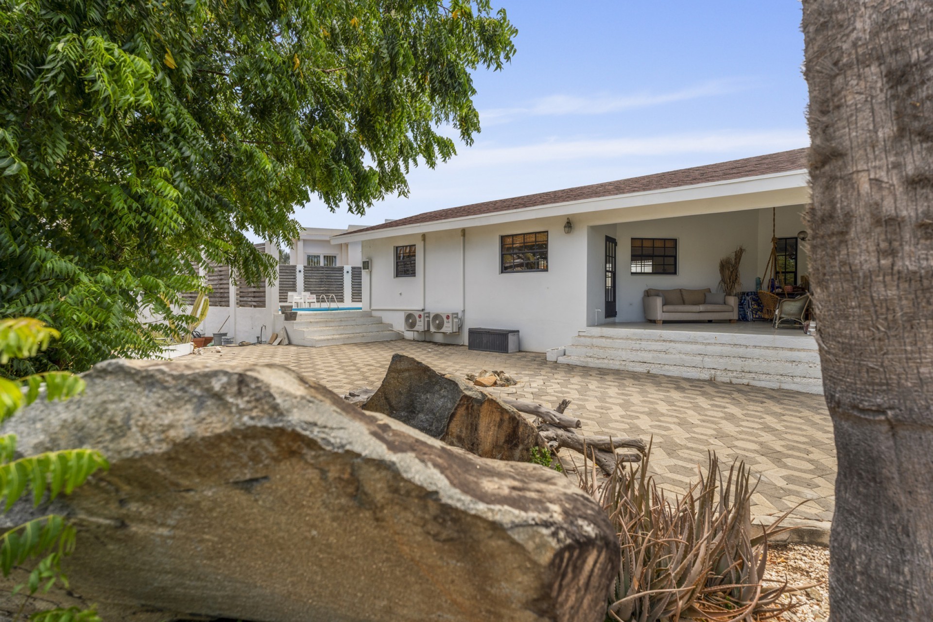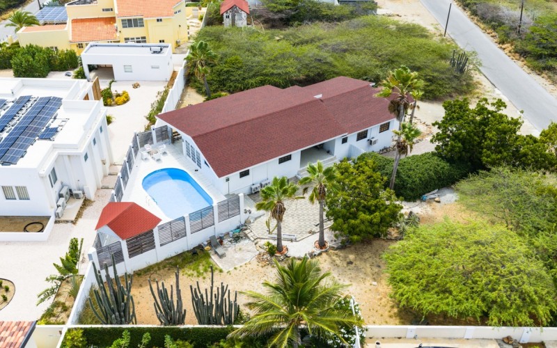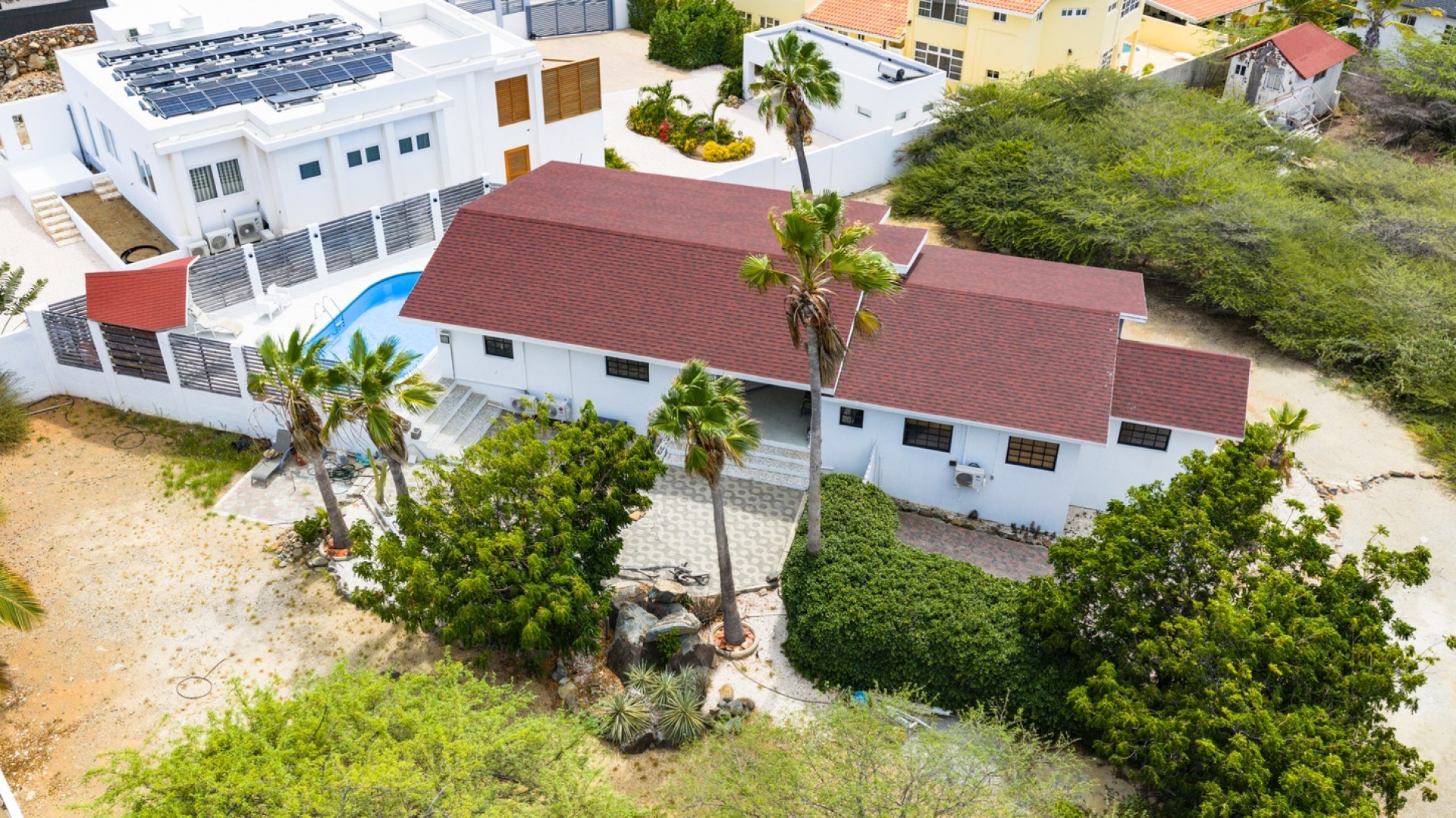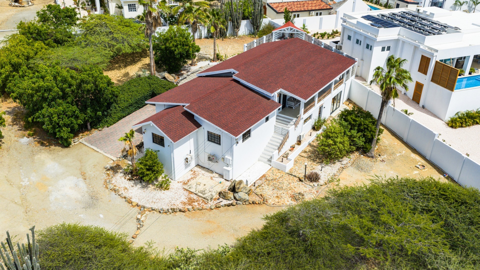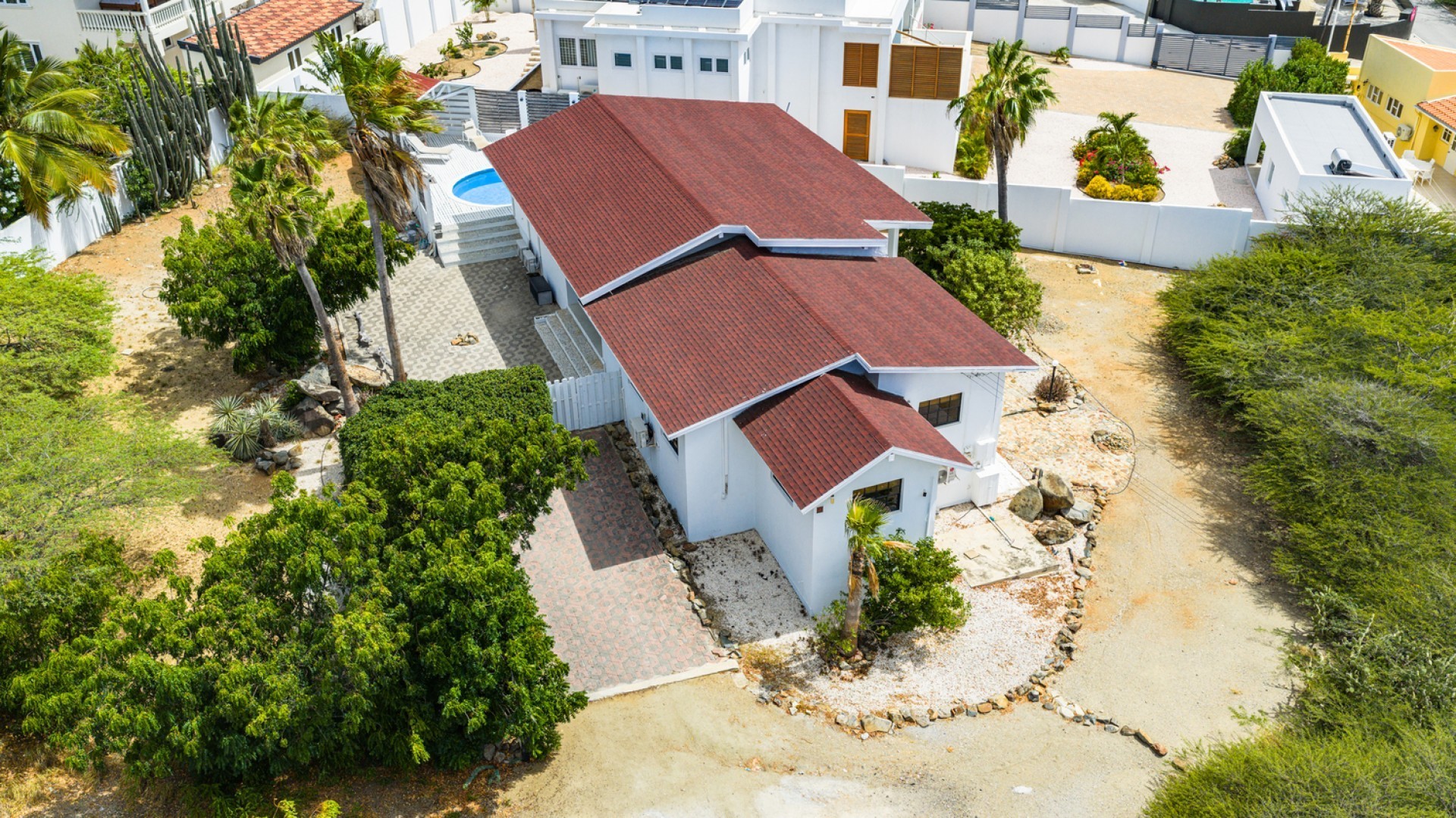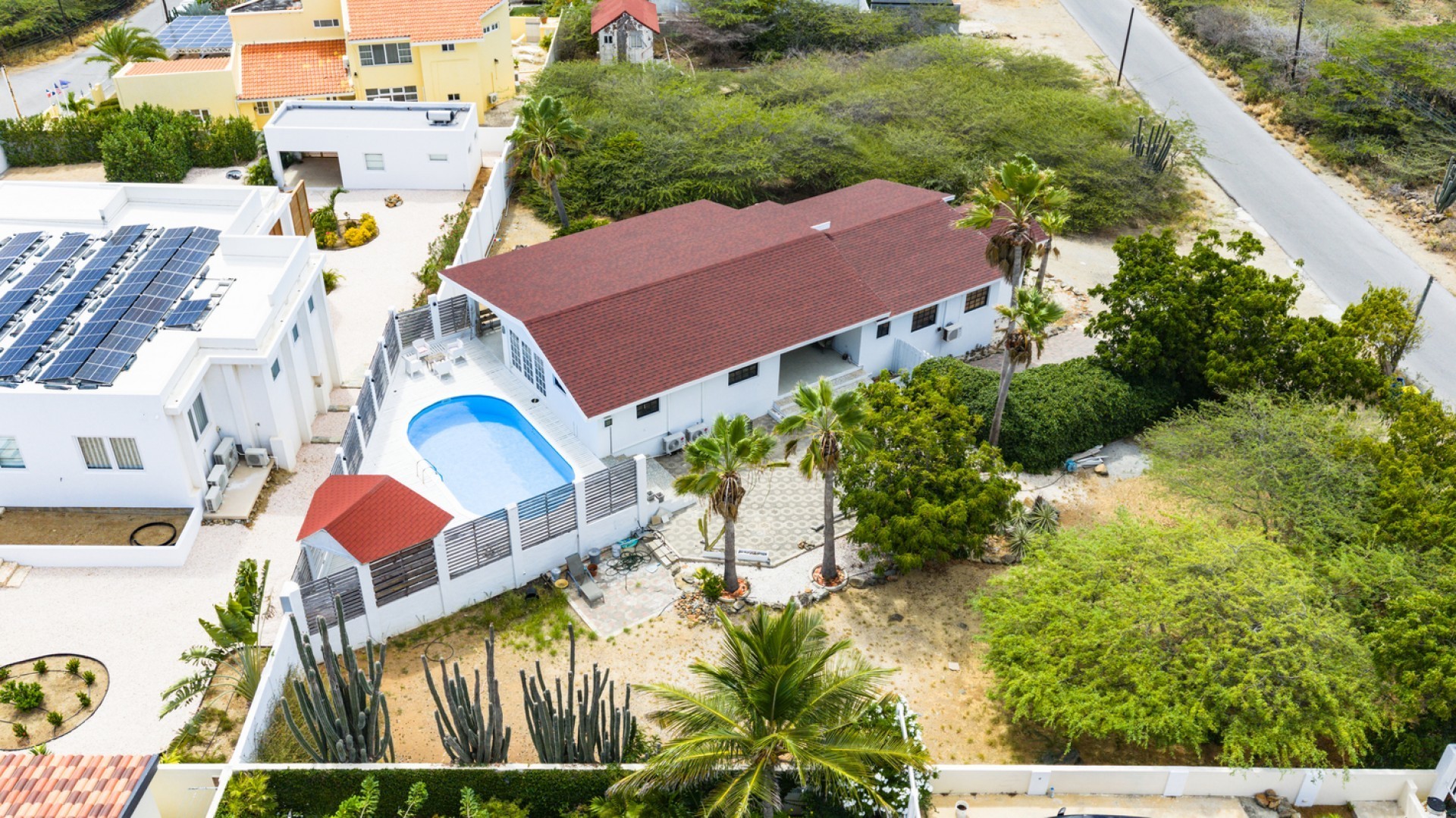 Modern Elegance in the hills of Kamay – Renovated 5-Bedroom Home with Ocean Views & Guest Apartment Set high in the serene hills of Kamay, this renovated property combines absolute tranquility with unmatched convenience. Tucked away in peace and privacy, yet just minutes from Aruba’s beaches, the vibrant Palm Beach strip with restaurants, bars and casinos, as well as supermarkets and more, this home offers the best of both worlds. With its refined finishes, seamless indoor-outdoor flow, and sweeping ocean views, this hillside retreat is a true hidden gem. At the heart of the residence lies its true centerpiece: a sleek, European-inspired kitchen. With a grand island, clean modern lines, and windows all around flooding the space with natural light, this open-concept kitchen seamlessly flows into the living area. A cozy reading nook adds charm and character, while French doors extend your living space outdoors—capturing the essence of Caribbean indoor-outdoor living. Step outside to a private pool deck, a covered dining terrace, and multiple seating areas designed for both relaxation and entertaining. From here, take in the sweeping views of Aruba’s scenic north coast—breathtaking vistas only the hills of Kamay can offer. The main residence offers four stylish bedrooms and two beautifully finished bathrooms designed for comfort and style. Complementing the home is a private apartment, renovated in the same sleek European style, complete with its own private entrance and kitchenette—perfect for hosting guests, extended family, or creating steady rental income. Sitting on a generous 1,209 m² lot, this property is move-in ready, yet brimming with potential. With ample space for additional landscaping, outdoor features, or future expansion, the opportunity to create your ultimate dream retreat is wide open. Whether you’re seeking a stylish family home, a serene vacation getaway, or a turnkey investment with room to grow—this hillside haven checks every box. Schedule your private (or virtual) showing today. 📞 +297 742 0129 📨