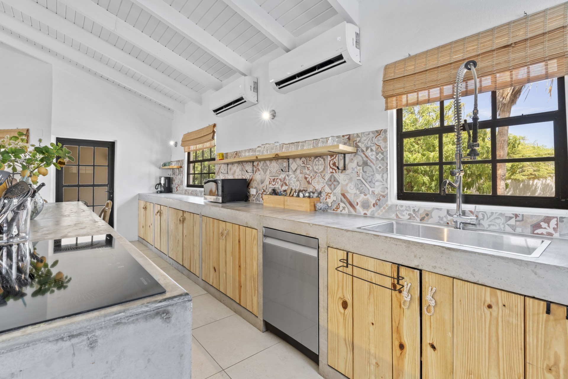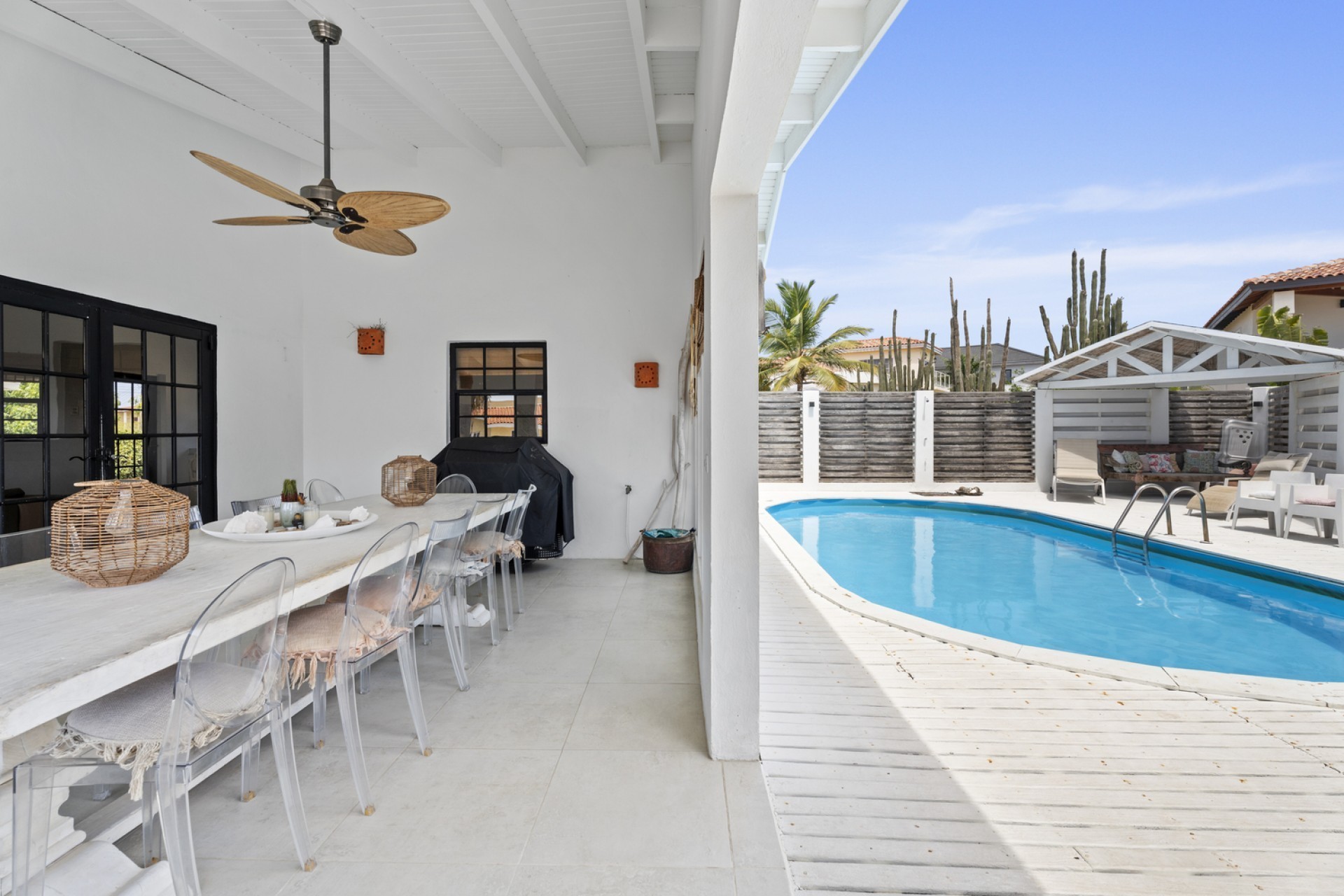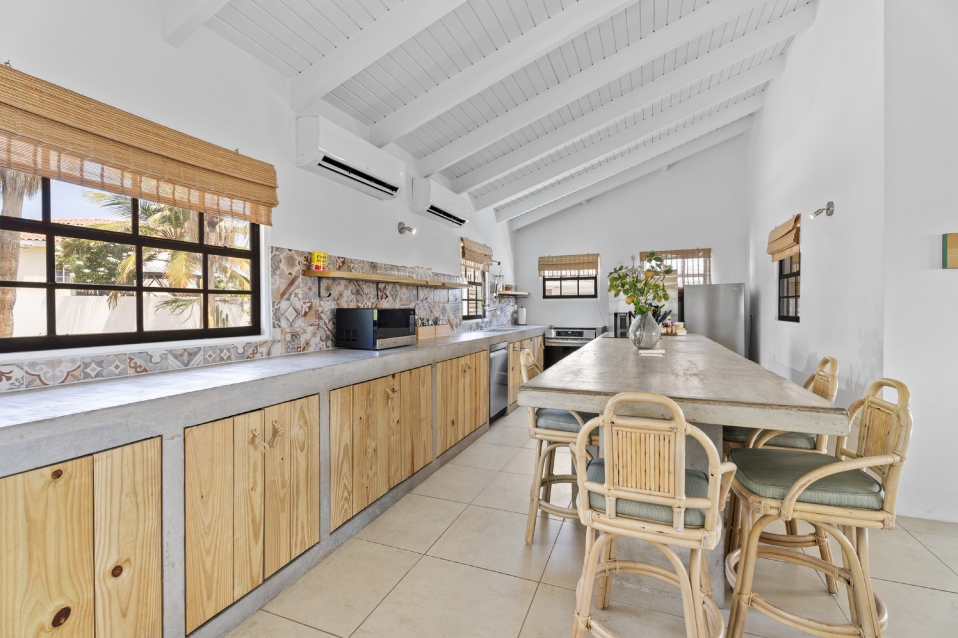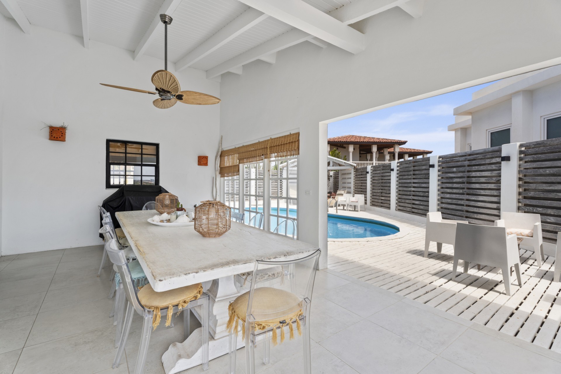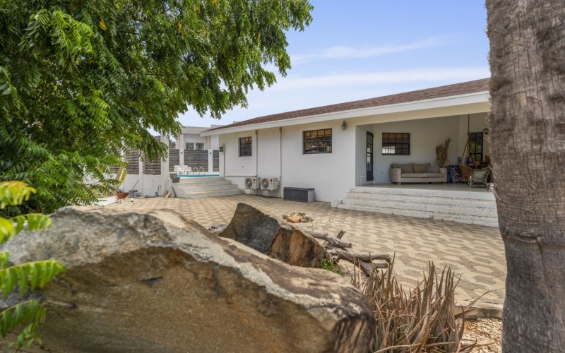 Modern Elegance in the hills of Kamay – Renovated 5-Bedroom Home with Ocean Views & Guest Apartment Set high in the serene hills of Kamay, this renovated property combines absolute tranquility with unmatched convenience. Tucked away in peace and privacy, yet just minutes from Aruba’s beaches, the vibrant Palm Beach strip with restaurants, bars and casinos, as well as supermarkets and more, this home offers the best of both worlds. With its refined finishes, seamless indoor-outdoor flow, and sweeping ocean views, this hillside retreat is a true hidden gem. At the heart of the residence lies its true centerpiece: a sleek, European-inspired kitchen. With a grand island, clean modern lines, and windows all around flooding the space with natural light, this open-concept kitchen seamlessly flows into the living area. A cozy reading nook adds charm and character, while French doors extend your living space outdoors—capturing the essence of Caribbean indoor-outdoor living. Step outside to a private pool deck, a covered dining terrace, and multiple seating areas designed for both relaxation and entertaining. From here, take in the sweeping views of Aruba’s scenic north coast—breathtaking vistas only the hills of Kamay can offer. The main residence offers four stylish bedrooms and two beautifully finished bathrooms designed for comfort and style. Complementing the home is a private apartment, renovated in the same sleek European style, complete with its own private entrance and kitchenette—perfect for hosting guests, extended family, or creating steady rental income. Sitting on a generous 1,209 m² lot, this property is move-in ready, yet brimming with potential. With ample space for additional landscaping, outdoor features, or future expansion, the opportunity to create your ultimate dream retreat is wide open. Whether you’re seeking a stylish family home, a serene vacation getaway, or a turnkey investment with room to grow—this hillside haven checks every box. Schedule your private (or virtual) showing today. 📞 +297 742 0129 📨