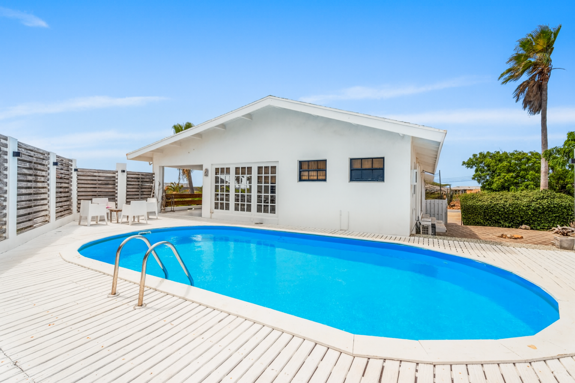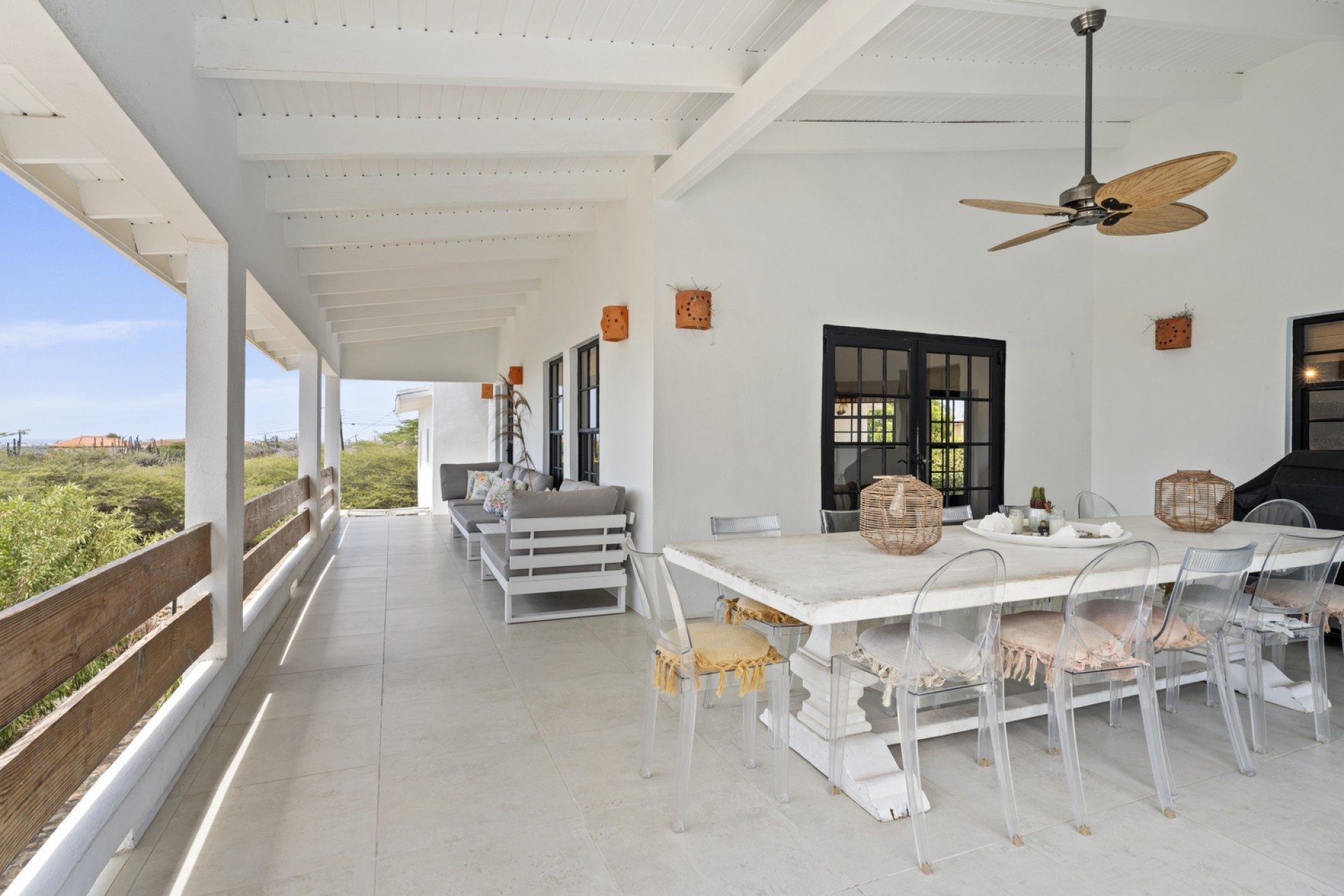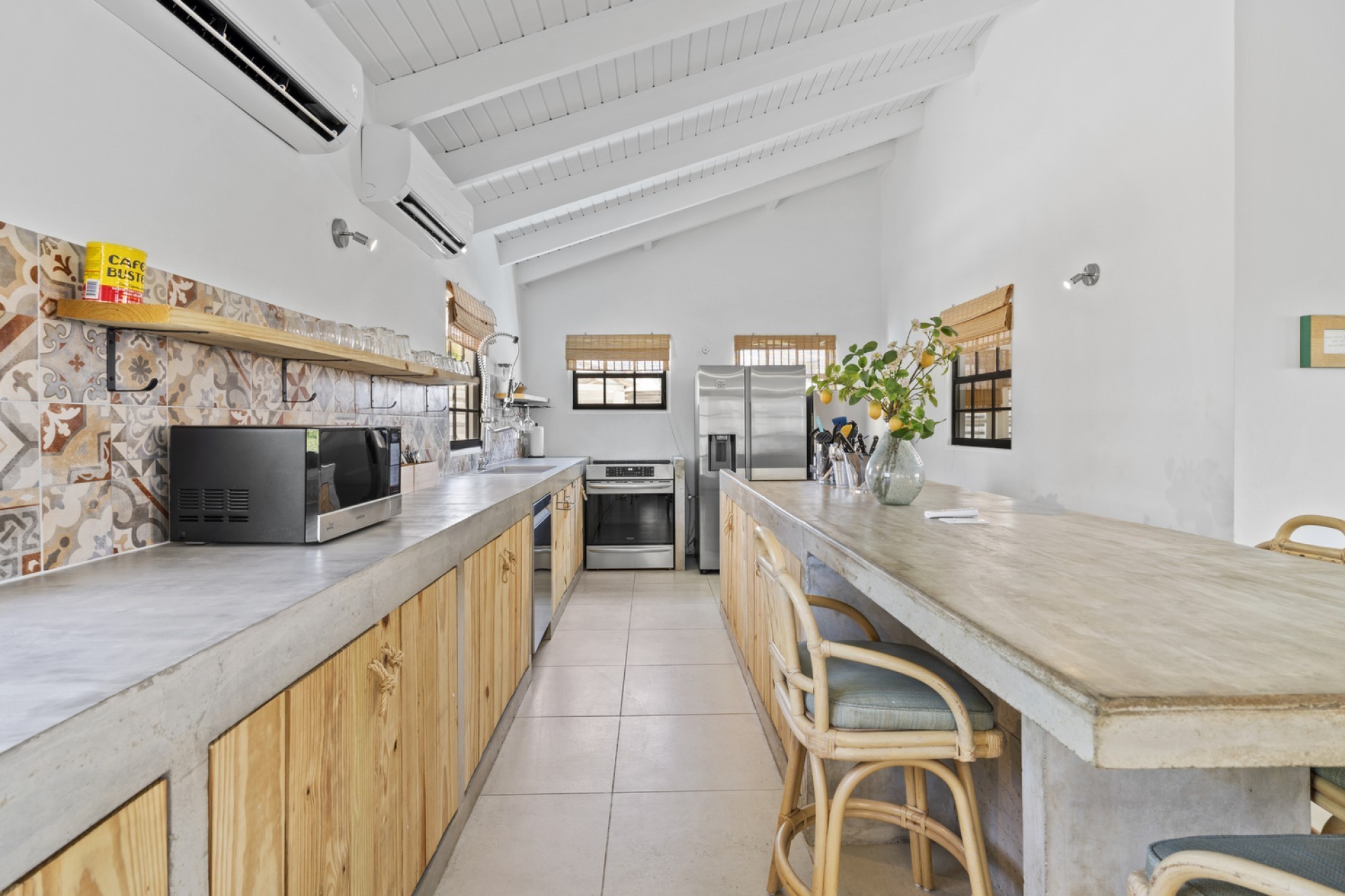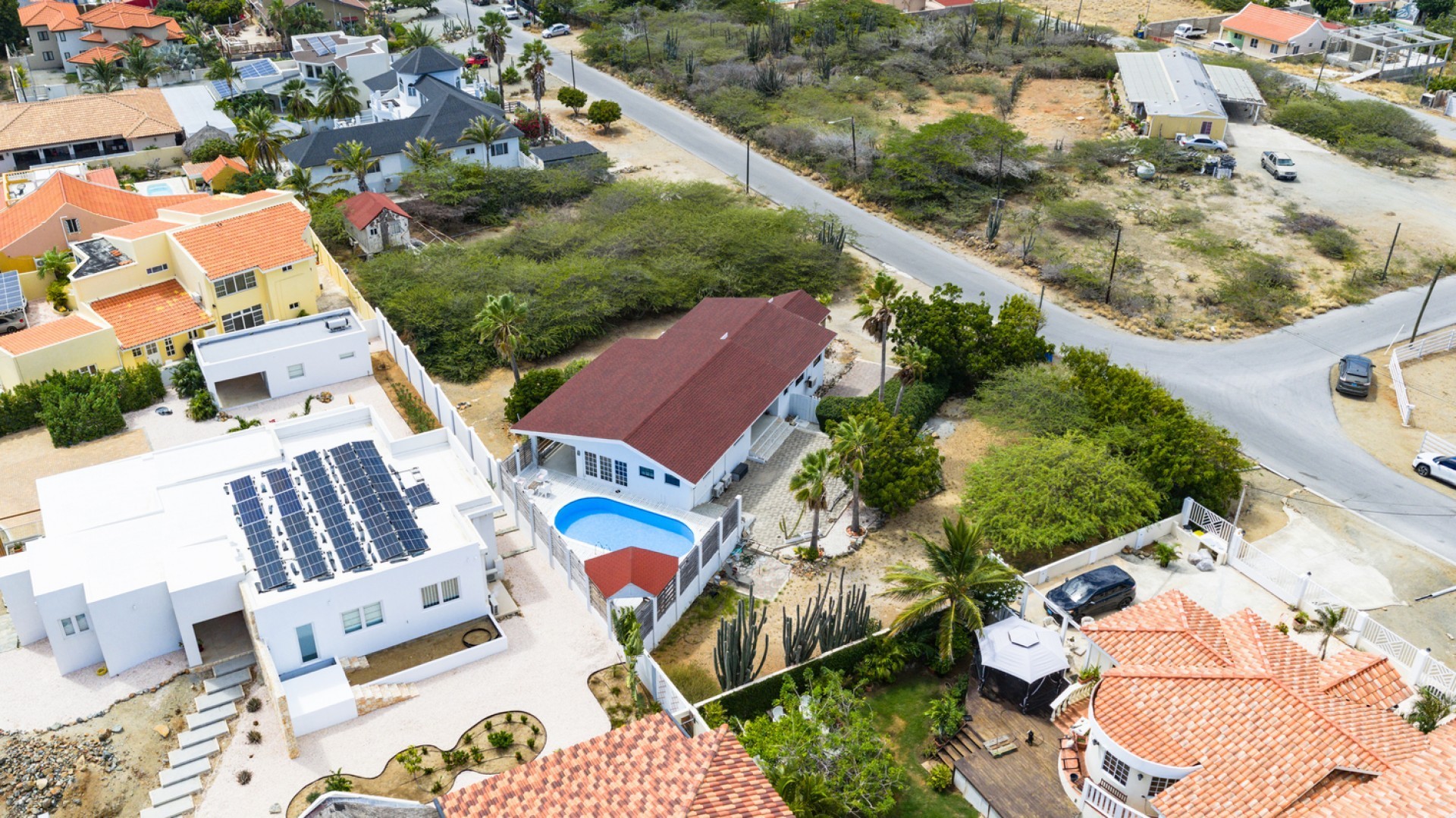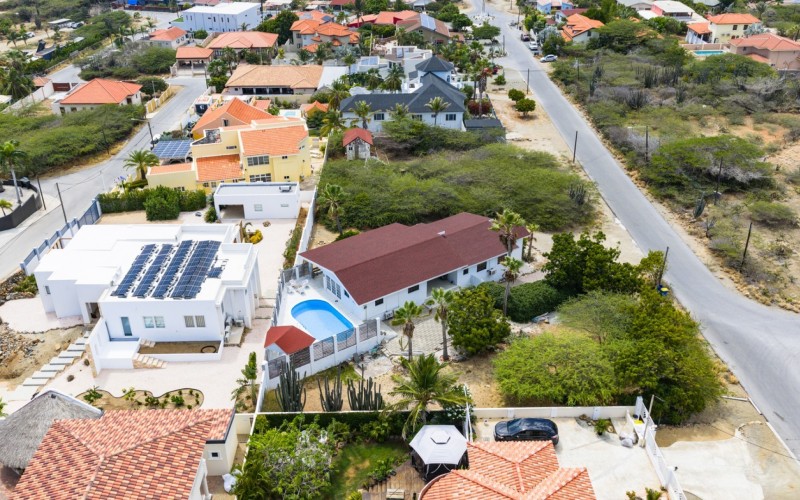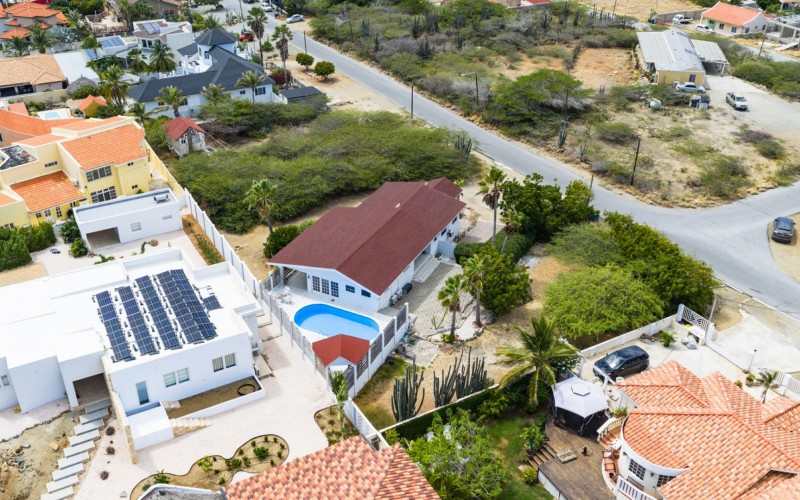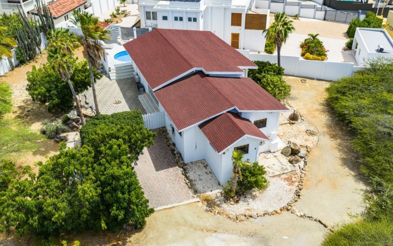 Modern Elegance in the hills of Kamay – Renovated 5-Bedroom Home with Ocean Views & Guest Apartment Set high in the serene hills of Kamay, this renovated property combines absolute tranquility with unmatched convenience. Tucked away in peace and privacy, yet just minutes from Aruba’s beaches, the vibrant Palm Beach strip with restaurants, bars and casinos, as well as supermarkets and more, this home offers the best of both worlds. With its refined finishes, seamless indoor-outdoor flow, and sweeping ocean views, this hillside retreat is a true hidden gem. At the heart of the residence lies its true centerpiece: a sleek, European-inspired kitchen. With a grand island, clean modern lines, and windows all around flooding the space with natural light, this open-concept kitchen seamlessly flows into the living area. A cozy reading nook adds charm and character, while French doors extend your living space outdoors—capturing the essence of Caribbean indoor-outdoor living. Step outside to a private pool deck, a covered dining terrace, and multiple seating areas designed for both relaxation and entertaining. From here, take in the sweeping views of Aruba’s scenic north coast—breathtaking vistas only the hills of Kamay can offer. The main residence offers four stylish bedrooms and two beautifully finished bathrooms designed for comfort and style. Complementing the home is a private apartment, renovated in the same sleek European style, complete with its own private entrance and kitchenette—perfect for hosting guests, extended family, or creating steady rental income. Sitting on a generous 1,209 m² lot, this property is move-in ready, yet brimming with potential. With ample space for additional landscaping, outdoor features, or future expansion, the opportunity to create your ultimate dream retreat is wide open. Whether you’re seeking a stylish family home, a serene vacation getaway, or a turnkey investment with room to grow—this hillside haven checks every box. Schedule your private (or virtual) showing today. 📞 +297 742 0129 📨