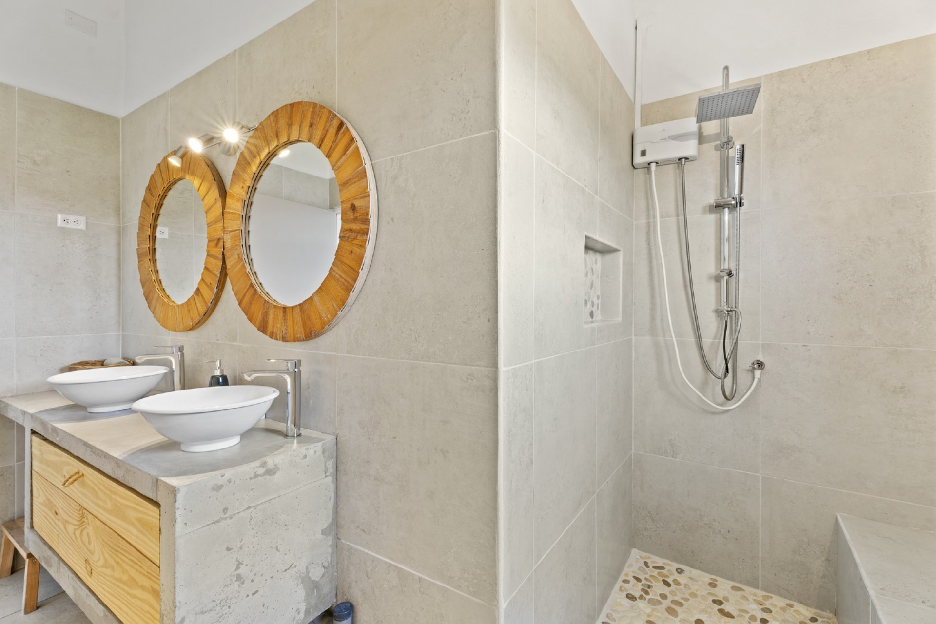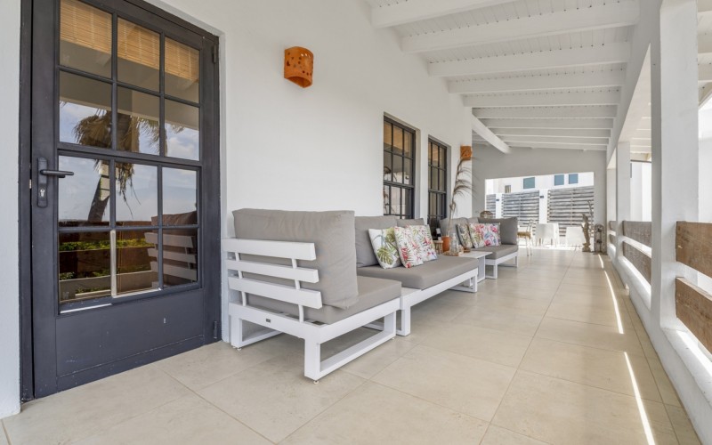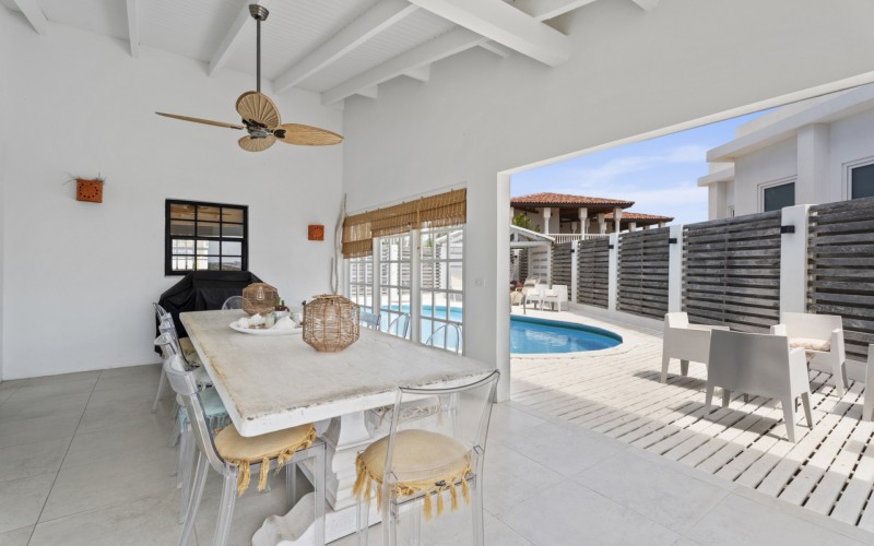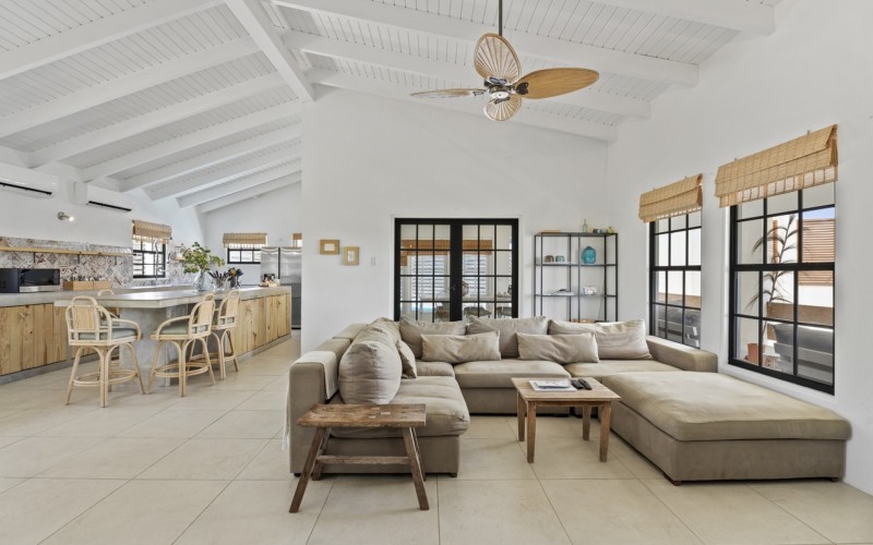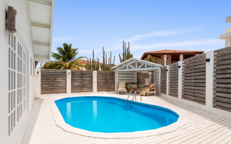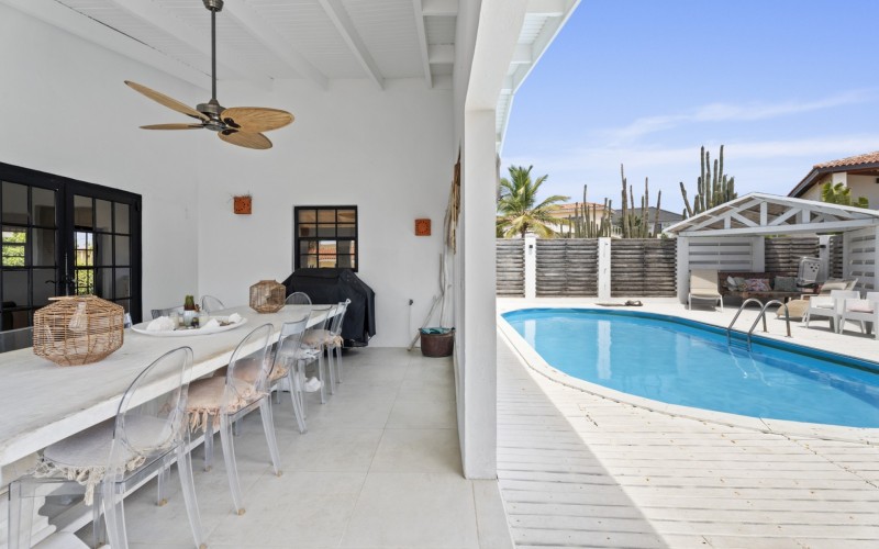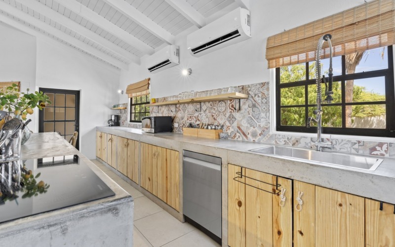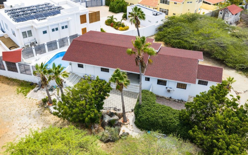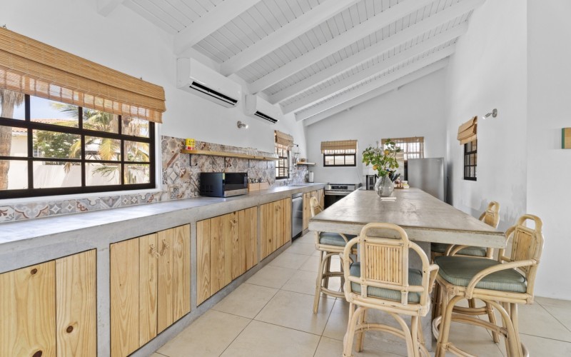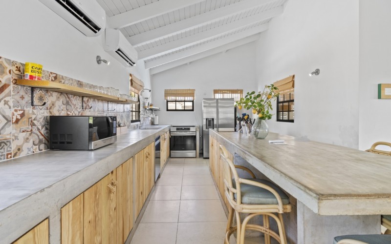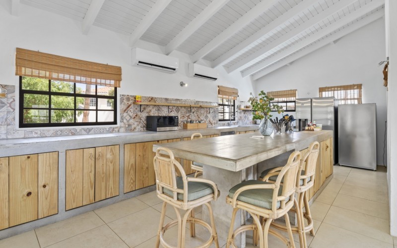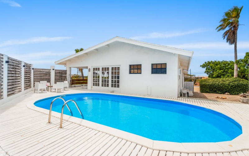 Modern Elegance in the hills of Kamay – Renovated 5-Bedroom Home with Ocean Views & Guest Apartment Set high in the serene hills of Kamay, this renovated property combines absolute tranquility with unmatched convenience. Tucked away in peace and privacy, yet just minutes from Aruba’s beaches, the vibrant Palm Beach strip with restaurants, bars and casinos, as well as supermarkets and more, this home offers the best of both worlds. With its refined finishes, seamless indoor-outdoor flow, and sweeping ocean views, this hillside retreat is a true hidden gem. At the heart of the residence lies its true centerpiece: a sleek, European-inspired kitchen. With a grand island, clean modern lines, and windows all around flooding the space with natural light, this open-concept kitchen seamlessly flows into the living area. A cozy reading nook adds charm and character, while French doors extend your living space outdoors—capturing the essence of Caribbean indoor-outdoor living. Step outside to a private pool deck, a covered dining terrace, and multiple seating areas designed for both relaxation and entertaining. From here, take in the sweeping views of Aruba’s scenic north coast—breathtaking vistas only the hills of Kamay can offer. The main residence offers four stylish bedrooms and two beautifully finished bathrooms designed for comfort and style. Complementing the home is a private apartment, renovated in the same sleek European style, complete with its own private entrance and kitchenette—perfect for hosting guests, extended family, or creating steady rental income. Sitting on a generous 1,209 m² lot, this property is move-in ready, yet brimming with potential. With ample space for additional landscaping, outdoor features, or future expansion, the opportunity to create your ultimate dream retreat is wide open. Whether you’re seeking a stylish family home, a serene vacation getaway, or a turnkey investment with room to grow—this hillside haven checks every box. Schedule your private (or virtual) showing today. 📞 +297 742 0129 📨