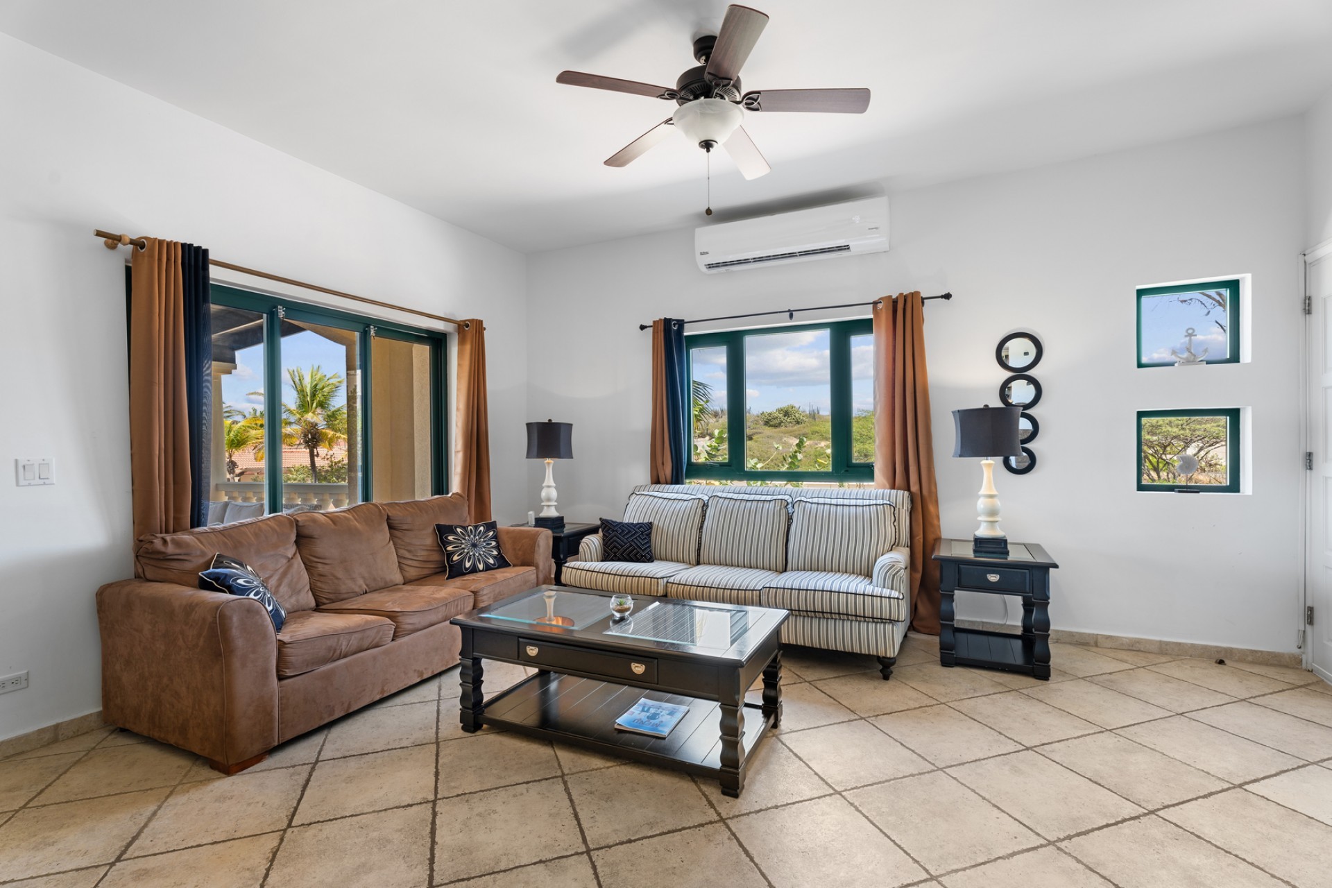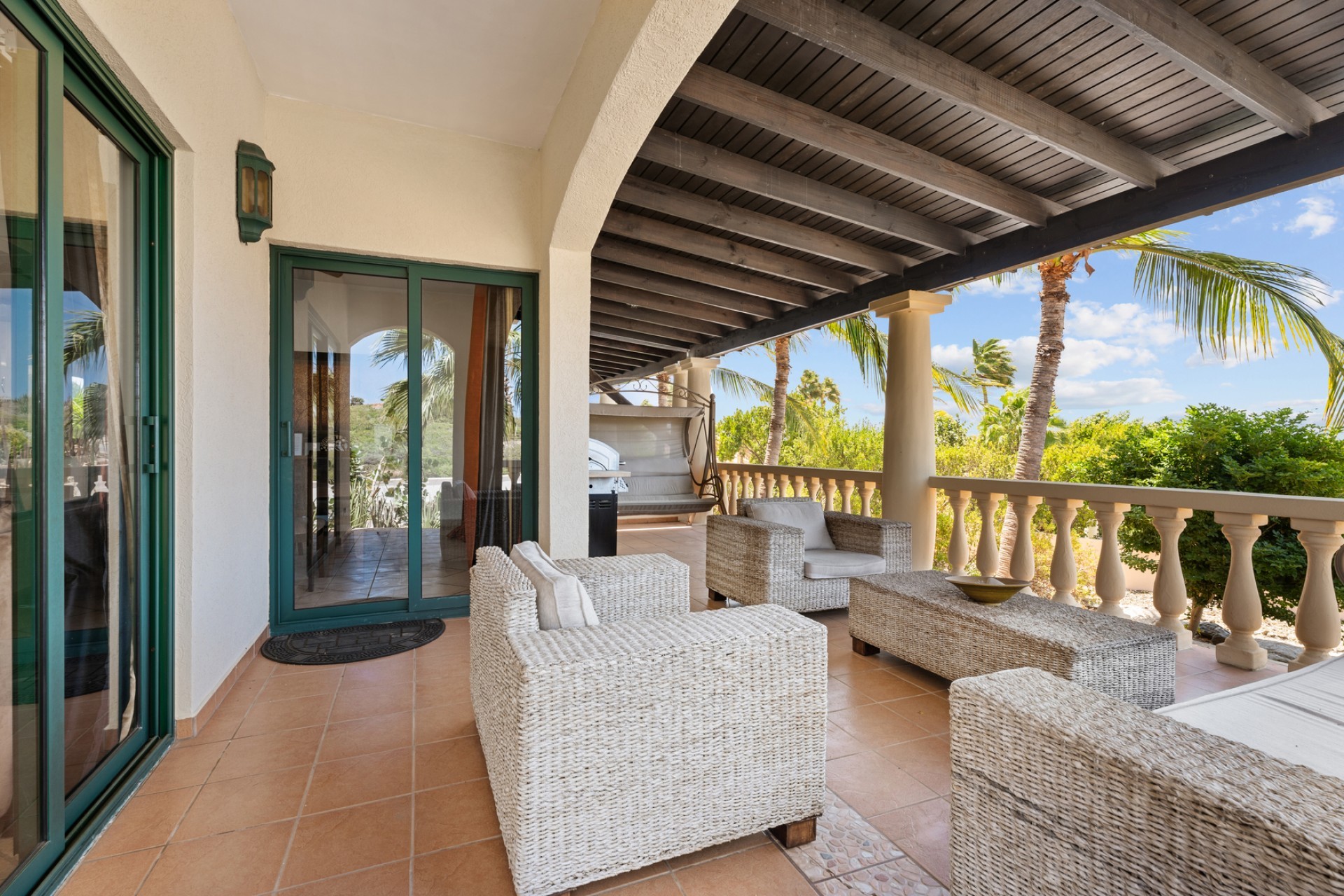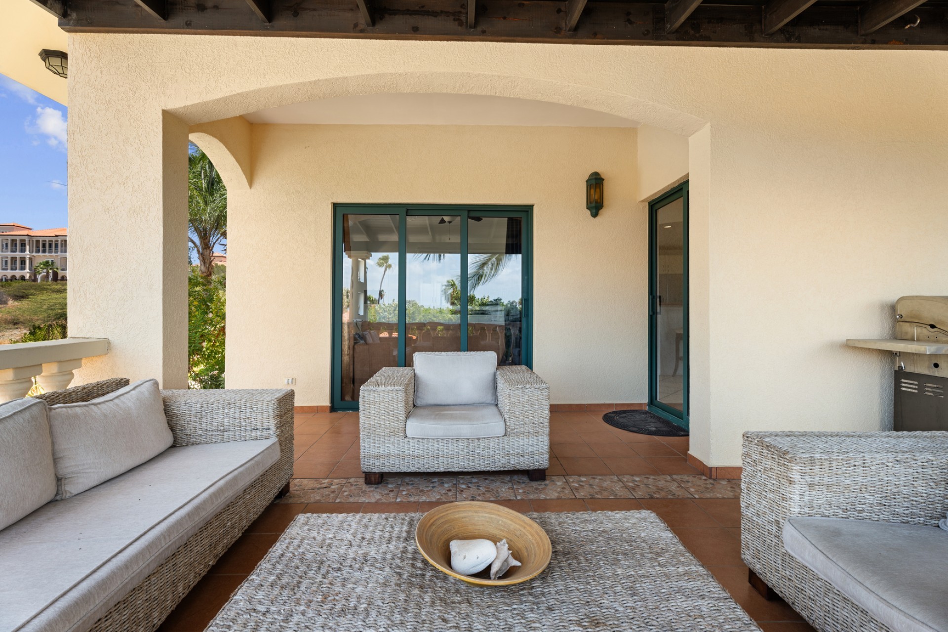 Spacious 2-Bedroom Condo in Tierra Del Sol - Aruba’s Premier Luxury Golf Resort Discover the perfect blend of comfort and luxury in this beautifully designed 2-bedroom, 2-bathroom condo in the prestigious Tierra Del Sol community. This spacious, single-floor home offers open-concept living, ideal for those seeking a peaceful retreat in Aruba’s premier golf and lifestyle resort. The bright living area seamlessly flows into the dining space and a fully equipped kitchen with high-end appliances, ample storage, and a breakfast bar—perfect for entertaining. Step outside to a private terrace with a lounge area and grill, where you can soak up the Aruban sun in total tranquility. The master suite features an ensuite bathroom, a generous walk-in closet (which can be locked as an owner’s closet), and an additional cozy room with a pull-out couch and outdoor access. The spacious second bedroom includes built-in closet space and sliding doors leading outside. A well-appointed guest bathroom completes the home. As a resident of Tierra Del Sol, enjoy access to world-class amenities, including a championship golf course, resort-style pool, fitness center, fine dining, and 24/7 security. Whether you're looking for a stylish island home or a high-end investment property, this condo offers an unbeatable combination of space, comfort, and prime location. Contact us today to schedule your private or virtual viewing! 📞 +297-742-0129 📨