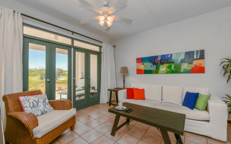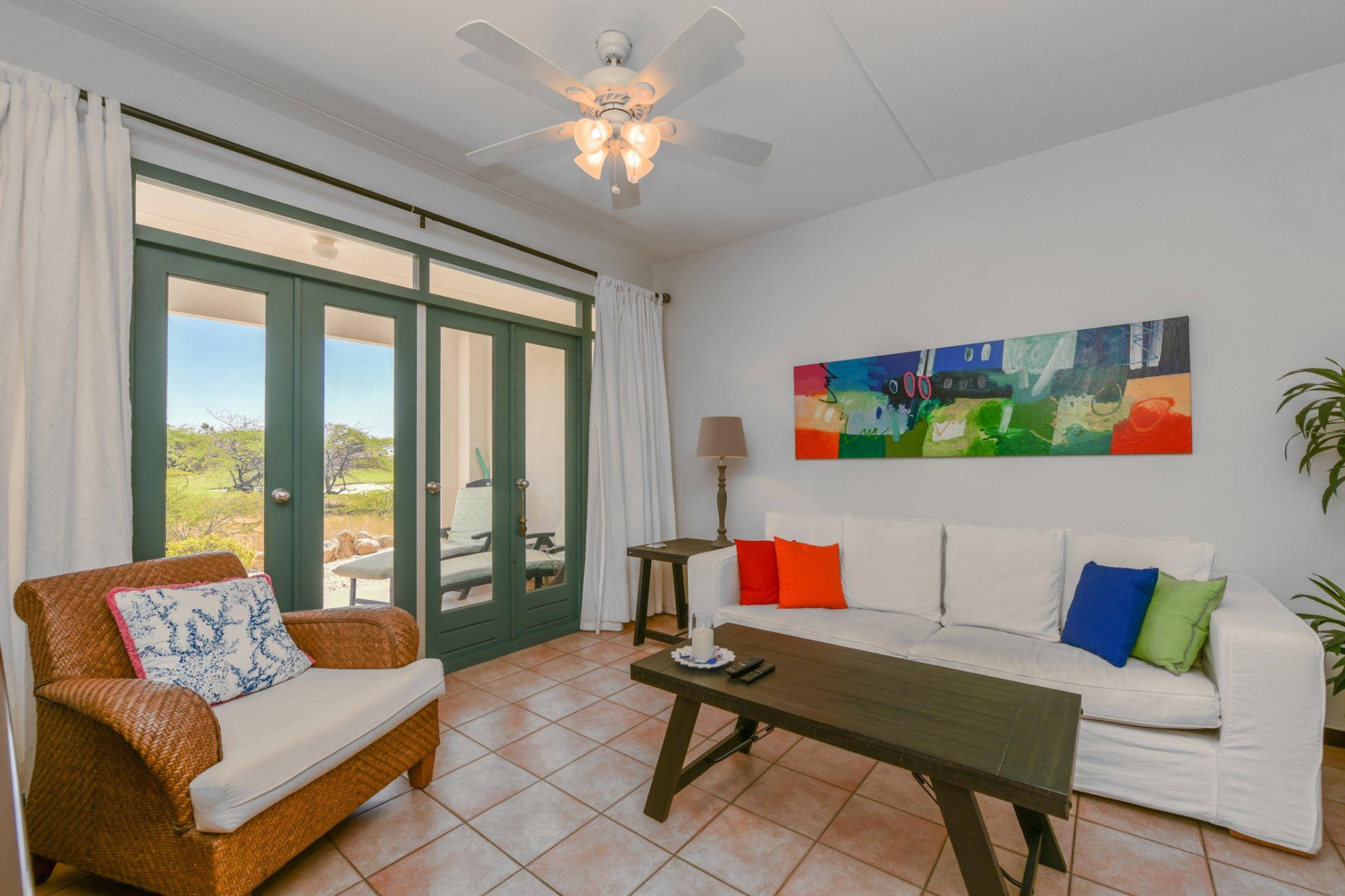 Beautiful 2-Bedroom, 2-Bathroom Ground Floor Condo in Tierra del Sol, Aruba Welcome to this bright and specious ground-floor condo located in the prestigious Tierra del Sol community—Aruba’s premier golf resort. Set directly on the golf course, this home offers a perfect blend of comfort, privacy, and resort-style living. The condo features spacious bedrooms filled with natural light, designed for both relaxation and functionality. The recently renovated kitchen is modern and fully equipped, seamlessly connecting to the living and dining area—ideal for entertaining or everyday living. Both bathrooms have been upgraded with stylish new vanities, adding a fresh and elegant touch. Step outside to your private patio, where you can enjoy tranquil golf course views and Aruba’s year-round breeze—perfect for morning coffee or sunset evenings. The property also includes a garage, providing convenience and additional storage. Tierra del Sol is known for its tranquility, exclusivity, and stunning natural surroundings, all just minutes from Palm Beach, dining, and nightlife. The community offers optional membership plans, allowing owners to tailor their experience—whether focused on golf, wellness, or full access to all resort amenities. Key Features • 2 bedrooms | 2 bathrooms • Private patio • Fully furnished – move-in ready • 1-car Garage with storage Access to resort amenities: Championship 18-hole golf course by Robert Trent Jones II Resort-style pool and clubhouse Tennis courts Fully equipped gym/fitness center On-site restaurant and dining options Spa and wellness facilities Gated Community 24 hrs Security Whether you're looking for a full-time residence, vacation home, or investment property, this condo offers the perfect combination of comfort, location, and lifestyle in one of Aruba’s most sought-after communities. For more information or to schedule a viewing, please contact: Agata Innamorato 📧