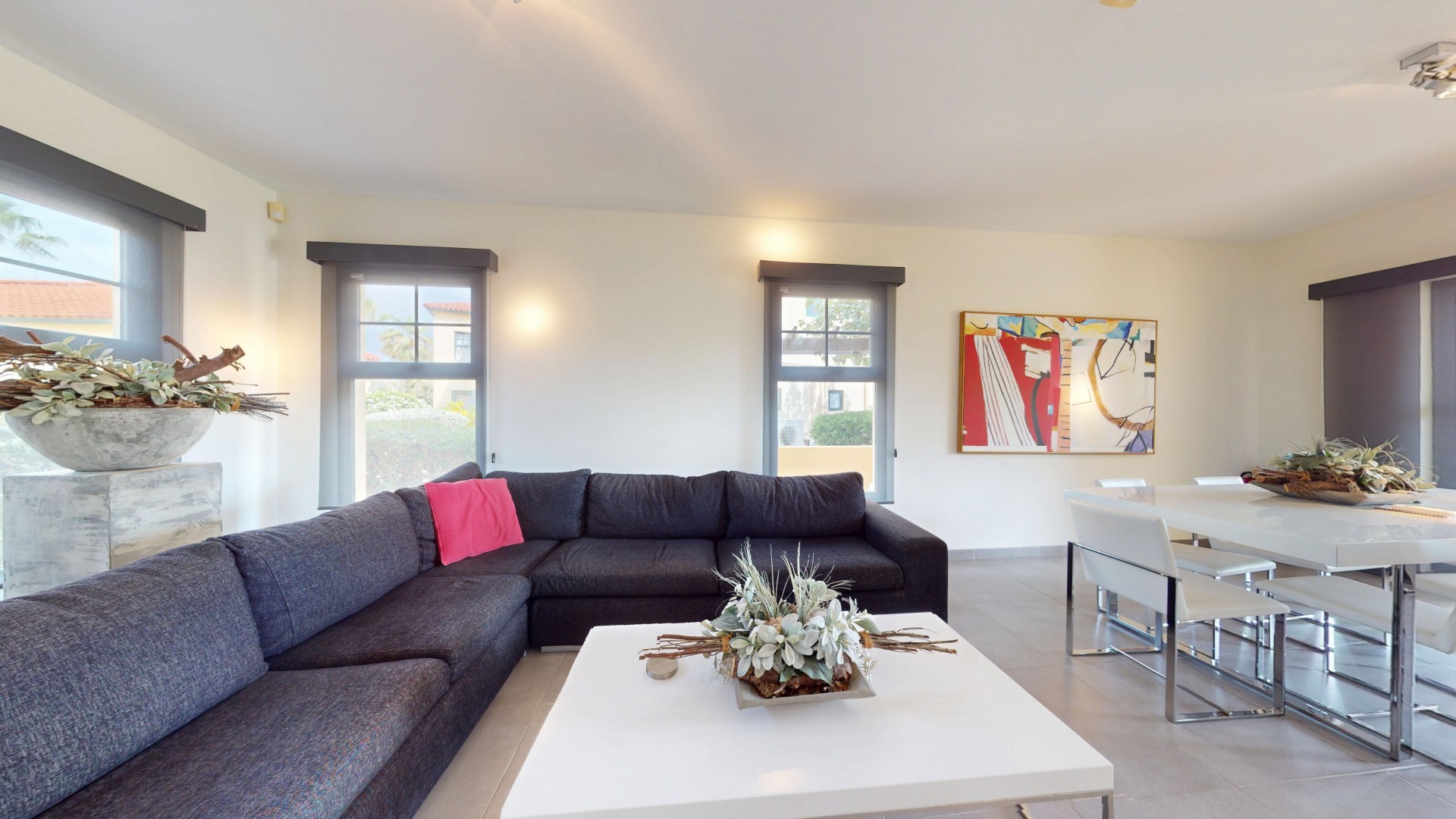 Welcome home to Las Rocas 19-B, an exquisite two-floor condominium in the heart of Tierra del Sol, Aruba’s most prestigious gated golf-resort community. Priced at USD $600,000, this stylish residence offers you a rare blend of comfort, sophistication, and island luxury. Key Features & Highlights Spacious 2 Bedrooms / 2 Bathrooms: Two generous bedrooms, each designed with your privacy and comfort in mind. The bathrooms are modern, well-appointed, and maintain spa-like quality touches. Two Levels of Living: A townhouse‐style layout that separates the living spaces—ideal for entertaining and creating distinct zones. Open Plan & Natural Light: Bright common areas with large windows or sliding doors that open up to terraces or balconies, maximizing views, airflow, and that beautiful Aruban sunshine. High-End Finishes: Expect modern kitchen cabinetry, quality countertops, elegant flooring, and thoughtful design details throughout. Spectacular Residence with amazing spa This condo comes with a garage box HOA fees total $727 (Las Rocas 7 $336 + Master Association $391) Location & Community Tierra del Sol Golf & Resort Located on approximately 600 acres of pristine landscape, Tierra del Sol is Aruba’s premier master-planned gated community. It features an 18-hole championship golf course by Robert Trent Jones II, world-class resort and country-club amenities, spa & wellness facilities, a fitness center, tennis courts, lush landscaping, and gourmet dining. Las Rocas A desirable neighborhood within Tierra del Sol. Known for condominiums that combine luxury, privacy, and premium access to resort amenities. Residences in Las Rocas appeal to those seeking elegant, well-designed living spaces with excellent location and views. (Comparable Las Rocas condos show open plans, good light, balconies, and connection to the golf course.) Convenience & Lifestyle Just minutes away from Palm Beach, Malmok Beach, fine dining, shopping and nightlife, yet tucked away enough to escape the bustle. Your home in Las Rocas gives you access to resort tranquility—with all the essentials close by. Why This Unit Stands Out Privacy & Comfort: Two floors give separation between entertainment / living areas and private bedrooms. Elevated Quality: All the craftsmanship, finishes, and upgrades needed for modern, stylish living—ready to move in. Resort Living Every Day: Used not just as a residence, but as your own retreat. Swim, golf, relax, dine—all without leaving the community. Investment & Prestige: Properties in Tierra del Sol tend to hold and increase their value due to the high level of amenities, gated setting, and demand for premium real estate on Aruba. Property Video: Las Rocas 19-N