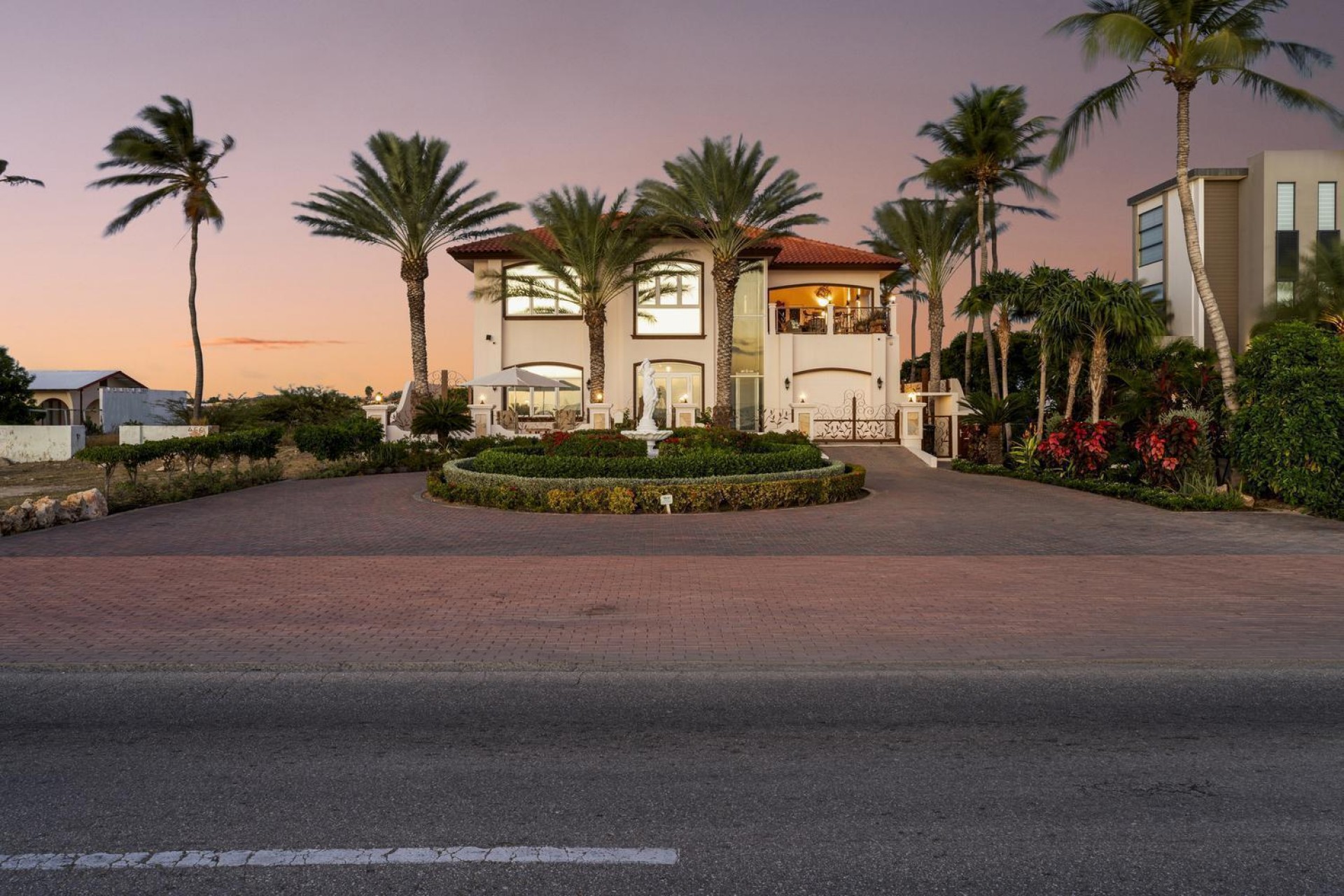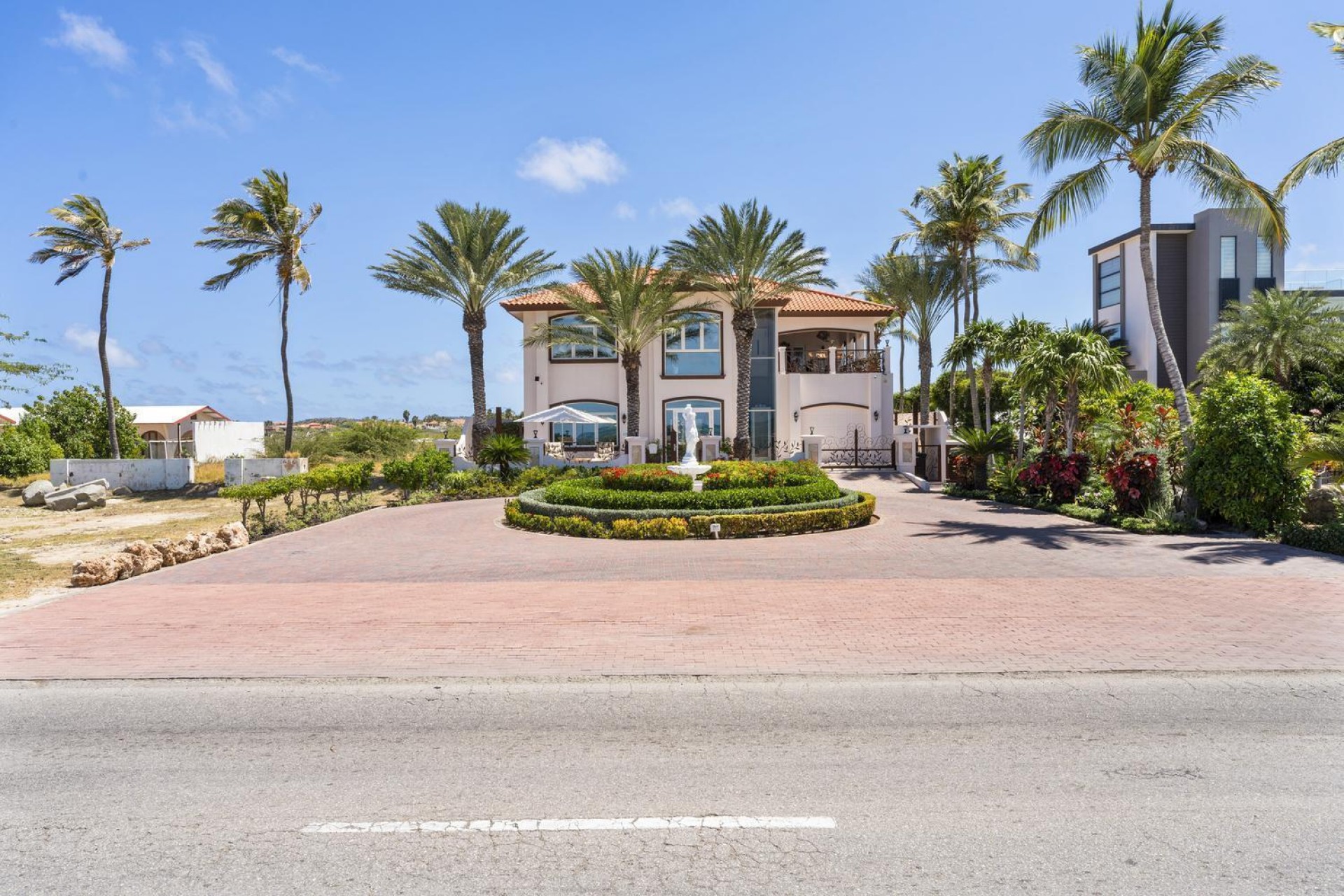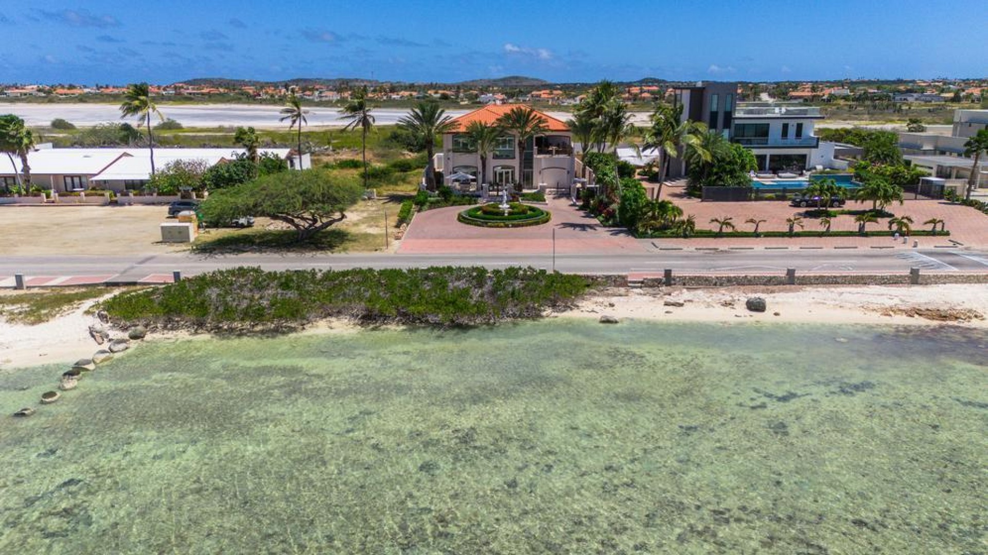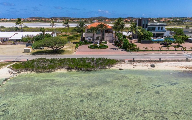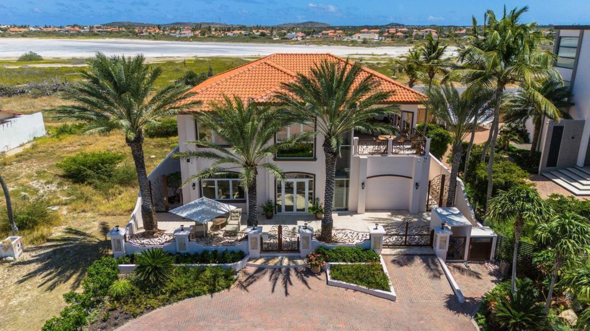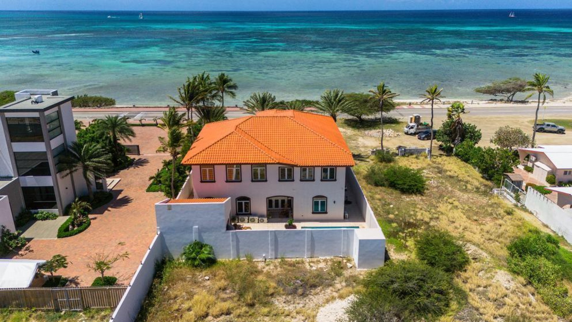 Oceanfront Elegance in Malmok – Aruba’s Most Exclusive Villa A villa of this caliber rarely comes to market. Perfectly positioned directly on the ocean in Malmok, with the Caribbean Sea as your backyard, breathtaking sunsets every evening, and the island’s most pristine beaches within walking distance. This is not just a home – this is pure oceanfront luxury. Fully renovated, fully furnished, and move-in ready, this estate combines timeless design with modern sophistication. From the elegant circular driveway, double front doors open into a spacious living area where the open design seamlessly connects to the backyard, creating an immediate sense of light and flow. A semi-open layout flows seamlessly into the fully equipped chef’s kitchen with a grand island – offering panoramic sea views that make cooking a true experience. The villa offers 5 bedrooms and 4.5 bathrooms across two levels. On the ground floor, two bright and spacious bedrooms each feature their own ensuite bathroom, providing comfort and privacy. A stylish powder room and an attached two-car garage with direct access to a dedicated laundry room complete this level. Upstairs, soaring ceilings define the second living area, with spectacular ocean views from every angle. An enclosed terrace offers a unique 360° panorama of the Caribbean Sea, while a large outdoor terrace expands the living space even further. The upper floor is home to three bedrooms: a spacious suite with its own ensuite bathroom, a versatile guest room, and the spectacular master suite with wraparound ocean views, a spa-like bathroom with jacuzzi, and a walk-in closet. Completing the upper level is a private gym overlooking the salina, while a second laundry room provides added ease and practicality. The property is fully gated and secured, ensuring complete privacy. The backyard offers a heated pool and shaded seating area, designed for outdoor living in comfort. A detached one-bedroom apartment with full kitchen and bath completes the estate, perfect for guests or staff. This is a once-in-a-lifetime opportunity to own one of Aruba’s rare oceanfront estates – where luxury, design, and location meet at the highest level. Contact us today to schedule your private (online) viewing. 📞 +297 742 0129 📨