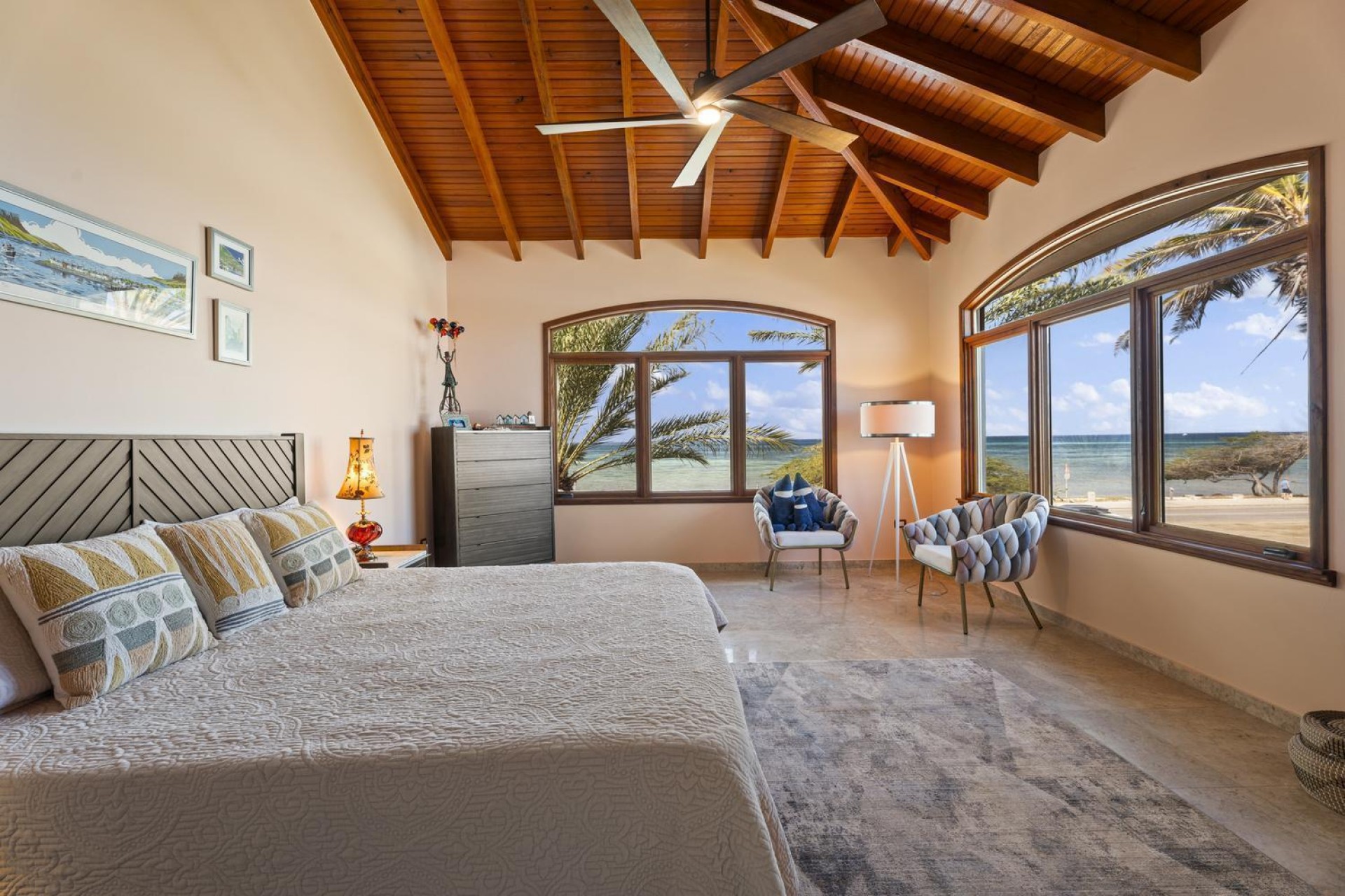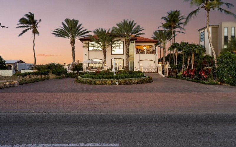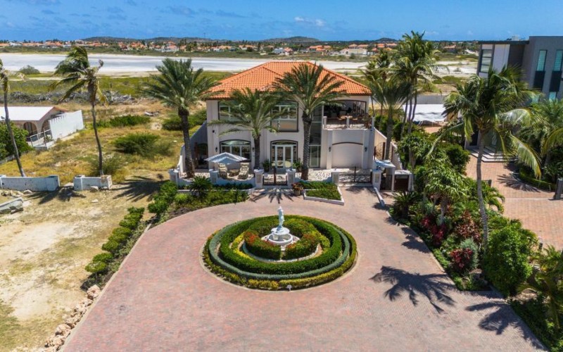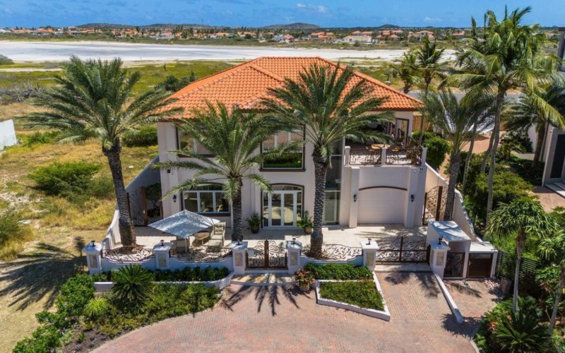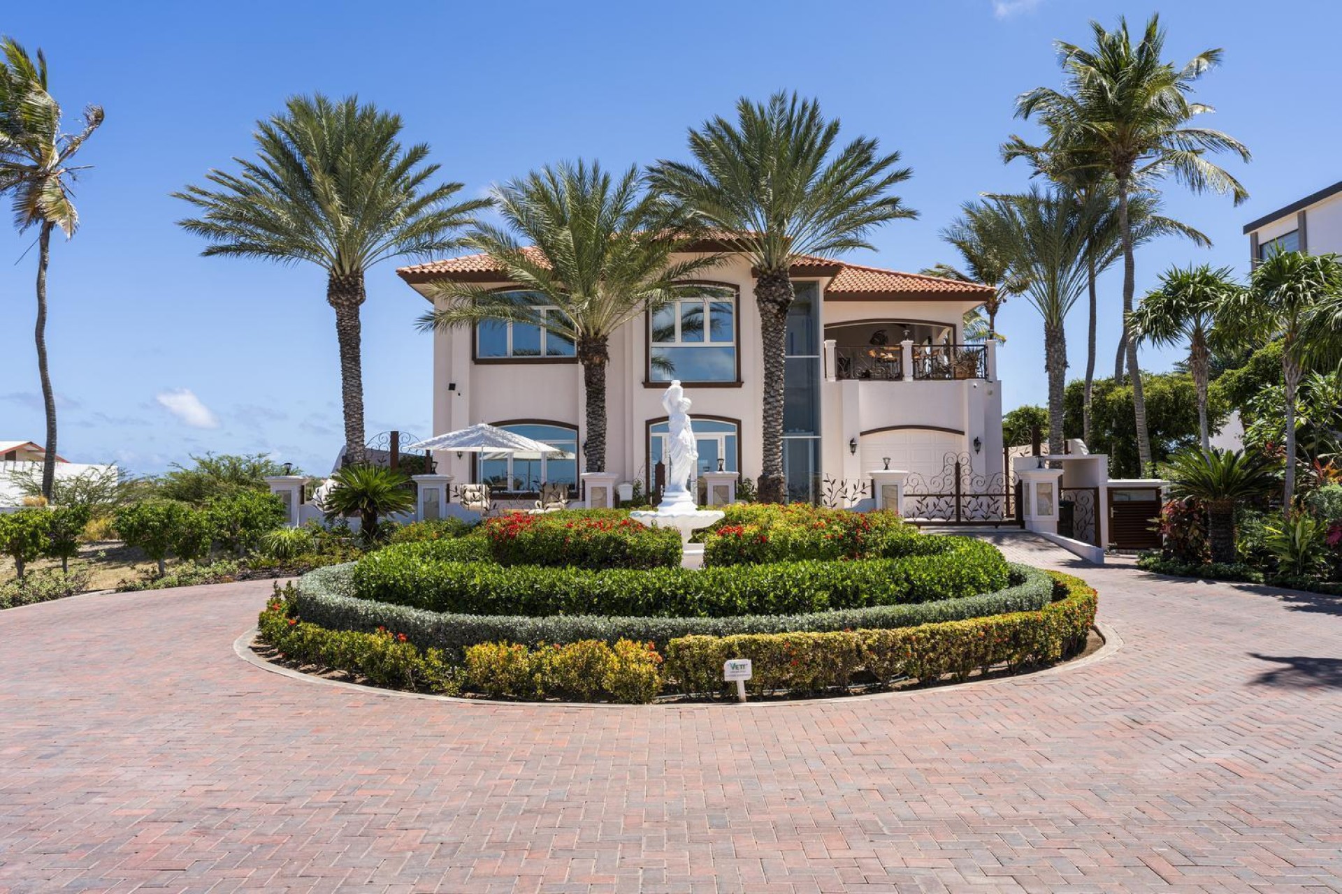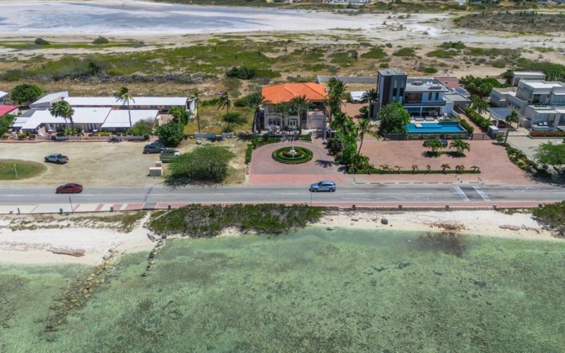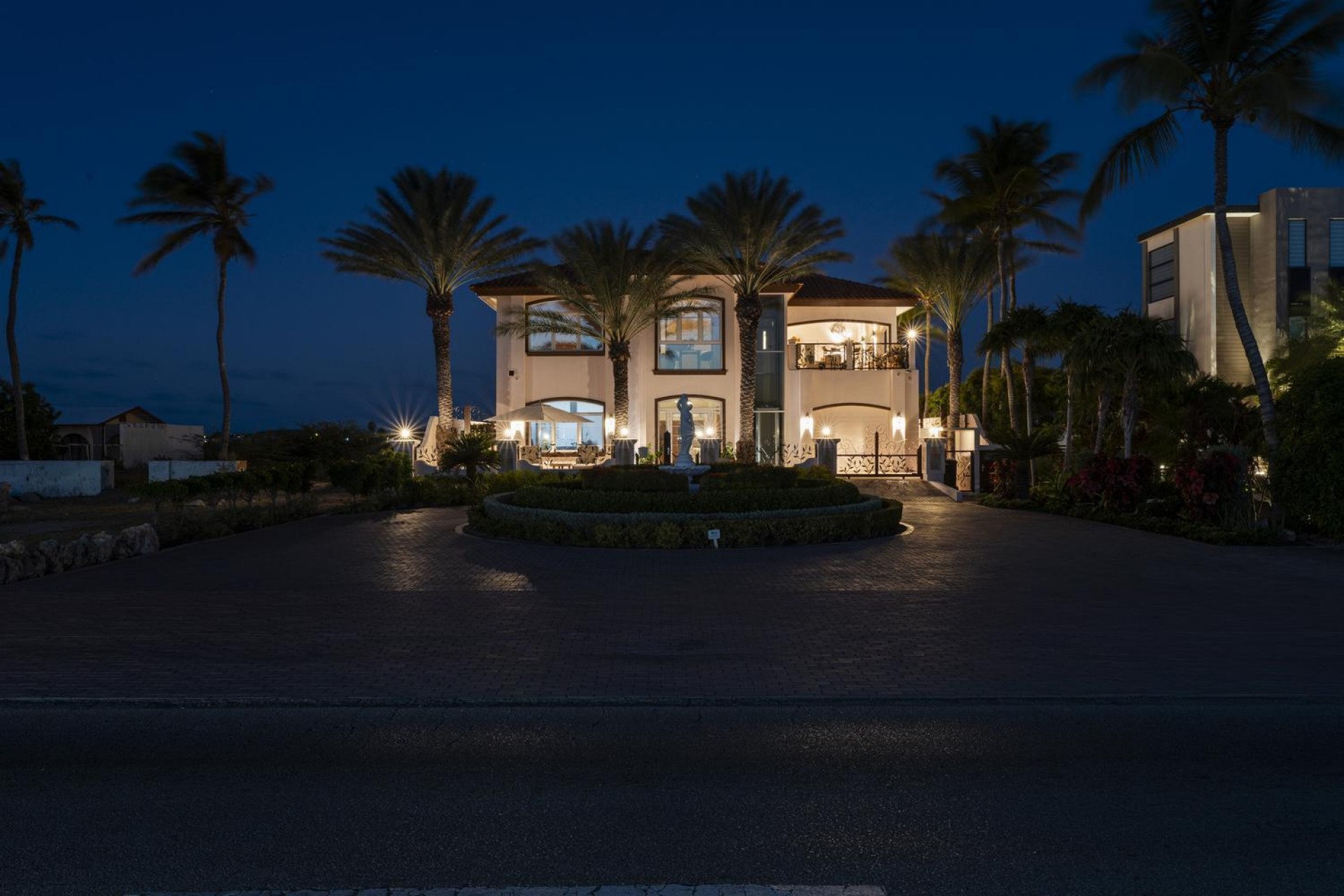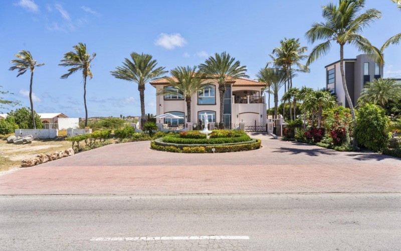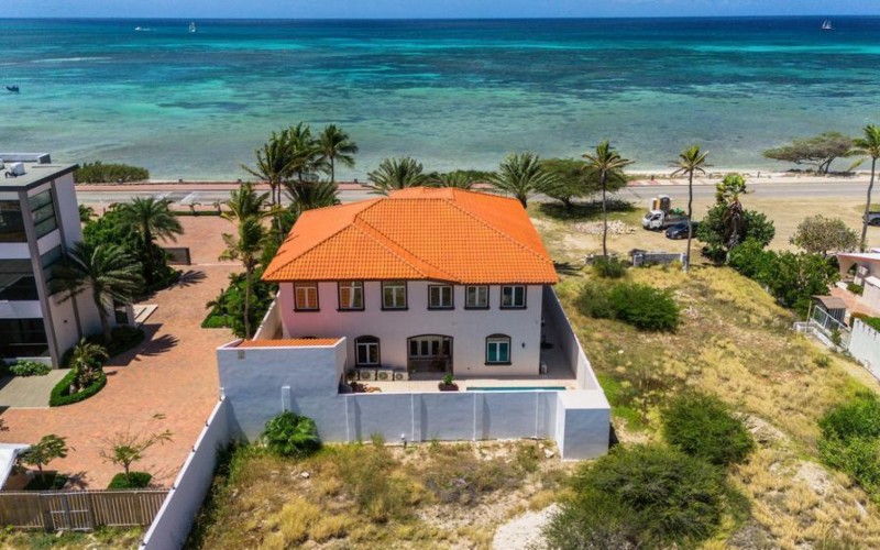 Oceanfront Elegance in Malmok – Aruba’s Most Exclusive Villa A villa of this caliber rarely comes to market. Perfectly positioned directly on the ocean in Malmok, with the Caribbean Sea as your backyard, breathtaking sunsets every evening, and the island’s most pristine beaches within walking distance. This is not just a home – this is pure oceanfront luxury. Fully renovated, fully furnished, and move-in ready, this estate combines timeless design with modern sophistication. From the elegant circular driveway, double front doors open into a spacious living area where the open design seamlessly connects to the backyard, creating an immediate sense of light and flow. A semi-open layout flows seamlessly into the fully equipped chef’s kitchen with a grand island – offering panoramic sea views that make cooking a true experience. The villa offers 5 bedrooms and 4.5 bathrooms across two levels. On the ground floor, two bright and spacious bedrooms each feature their own ensuite bathroom, providing comfort and privacy. A stylish powder room and an attached two-car garage with direct access to a dedicated laundry room complete this level. Upstairs, soaring ceilings define the second living area, with spectacular ocean views from every angle. An enclosed terrace offers a unique 360° panorama of the Caribbean Sea, while a large outdoor terrace expands the living space even further. The upper floor is home to three bedrooms: a spacious suite with its own ensuite bathroom, a versatile guest room, and the spectacular master suite with wraparound ocean views, a spa-like bathroom with jacuzzi, and a walk-in closet. Completing the upper level is a private gym overlooking the salina, while a second laundry room provides added ease and practicality. The property is fully gated and secured, ensuring complete privacy. The backyard offers a heated pool and shaded seating area, designed for outdoor living in comfort. A detached one-bedroom apartment with full kitchen and bath completes the estate, perfect for guests or staff. This is a once-in-a-lifetime opportunity to own one of Aruba’s rare oceanfront estates – where luxury, design, and location meet at the highest level. Contact us today to schedule your private (online) viewing. 📞 +297 742 0129 📨