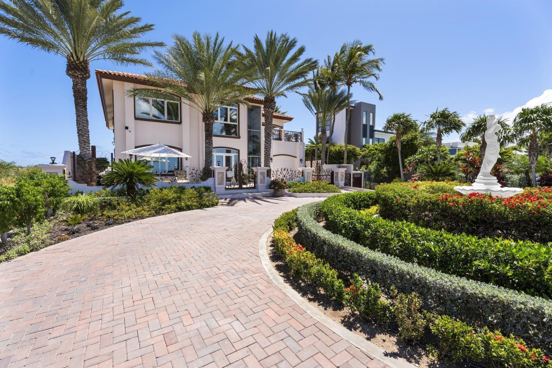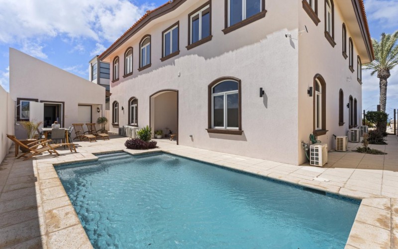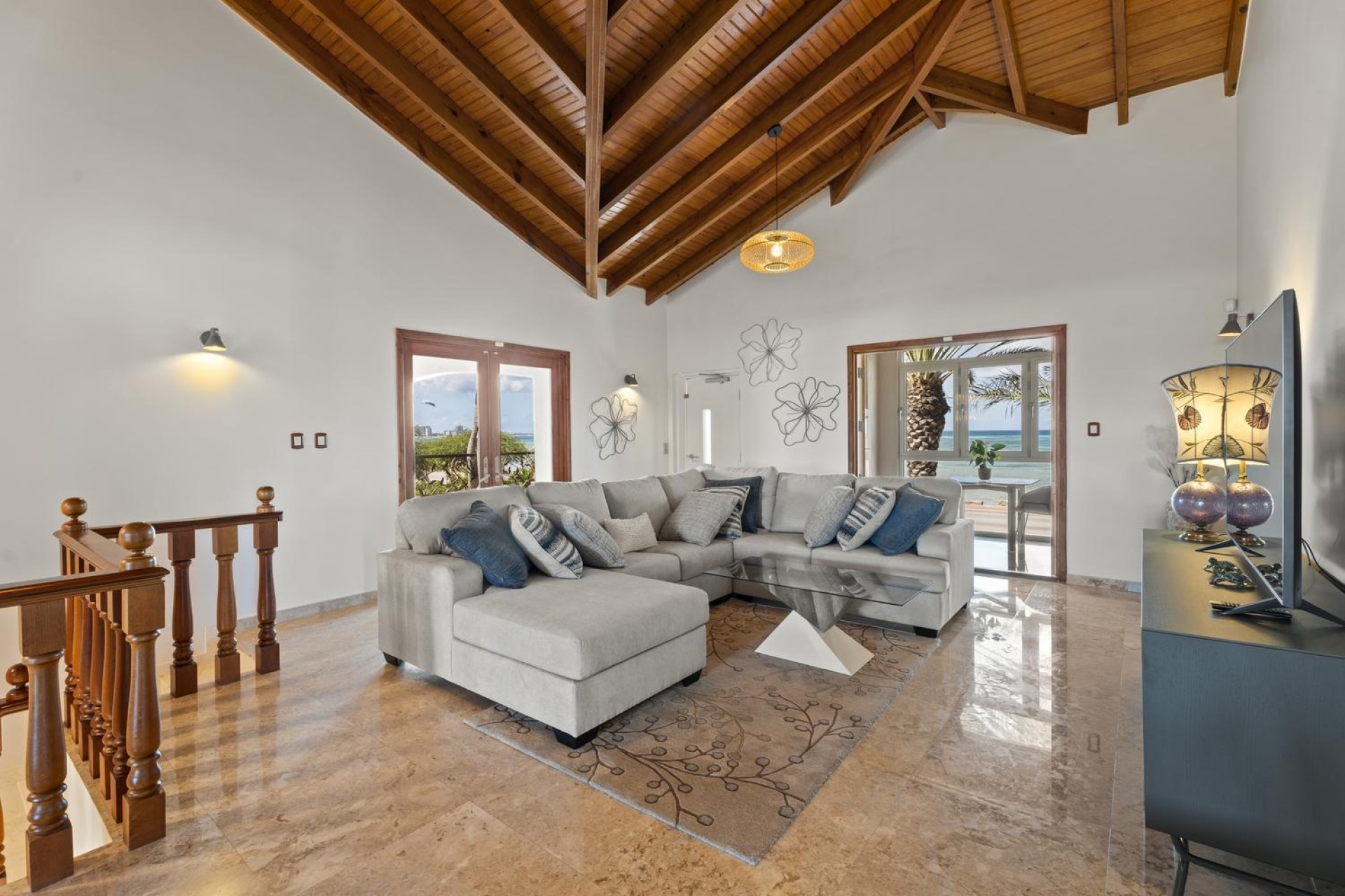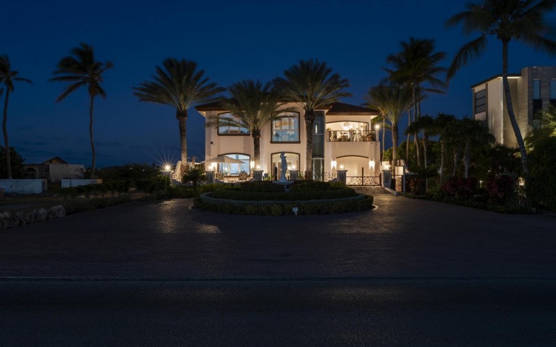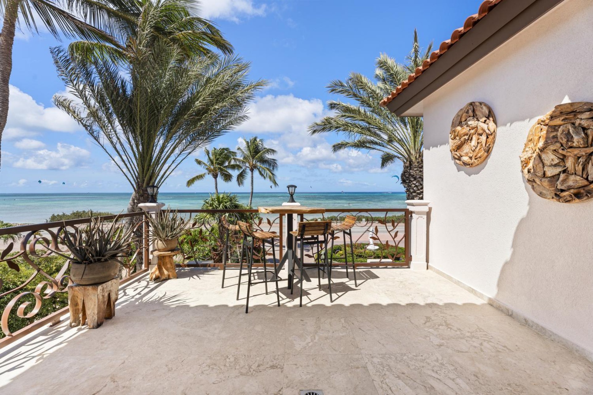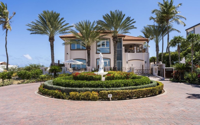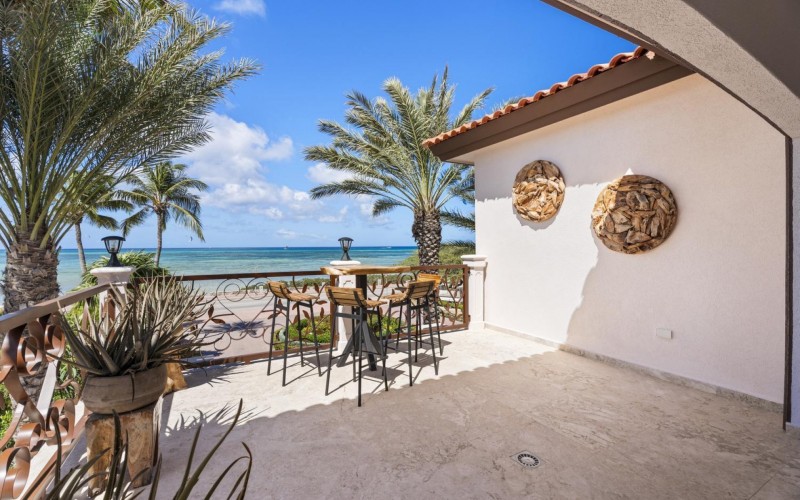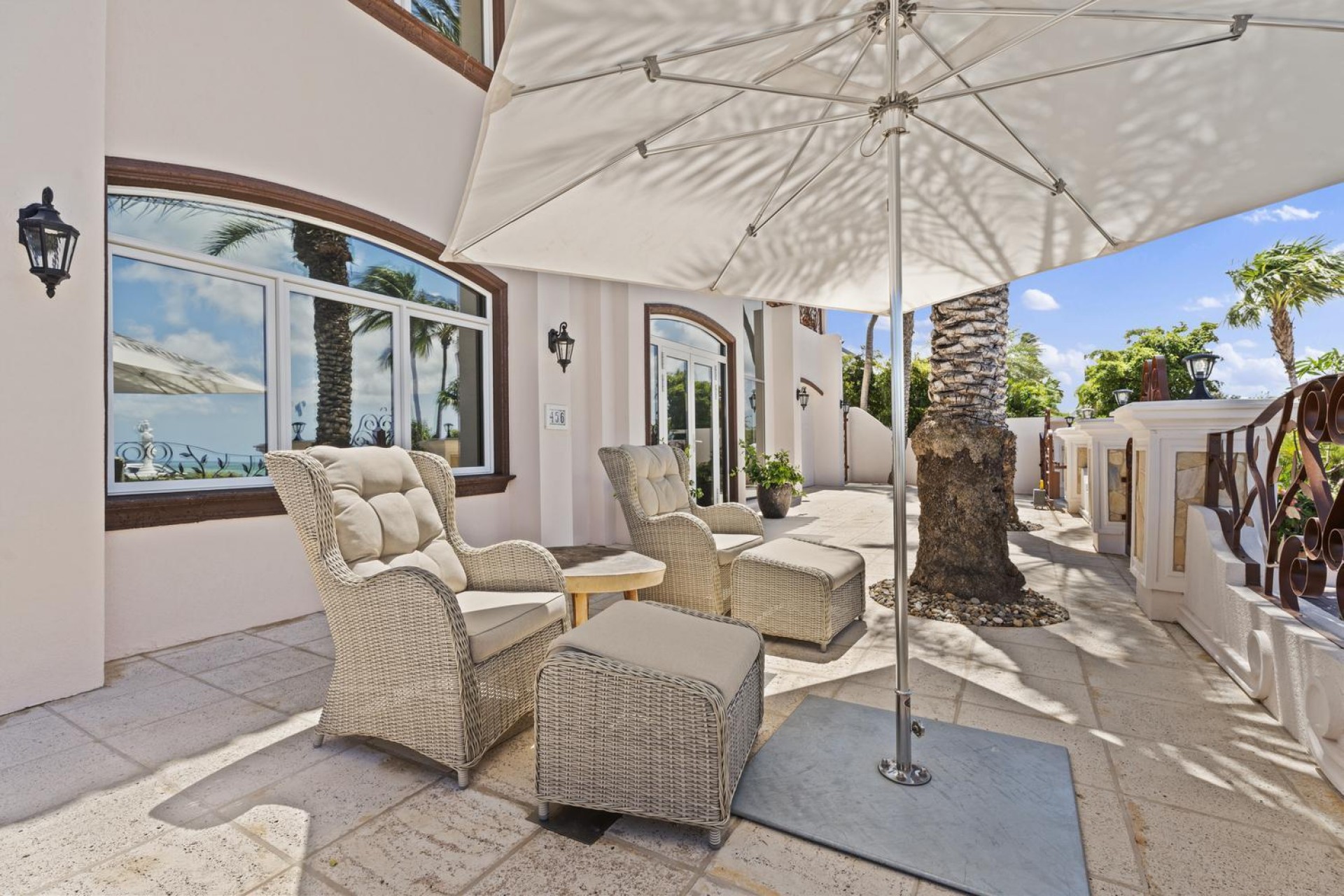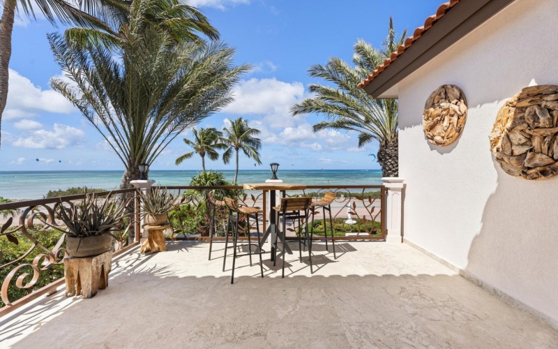 Oceanfront Elegance in Malmok – Aruba’s Most Exclusive Villa A villa of this caliber rarely comes to market. Perfectly positioned directly on the ocean in Malmok, with the Caribbean Sea as your backyard, breathtaking sunsets every evening, and the island’s most pristine beaches within walking distance. This is not just a home – this is pure oceanfront luxury. Fully renovated, fully furnished, and move-in ready, this estate combines timeless design with modern sophistication. From the elegant circular driveway, double front doors open into a spacious living area where the open design seamlessly connects to the backyard, creating an immediate sense of light and flow. A semi-open layout flows seamlessly into the fully equipped chef’s kitchen with a grand island – offering panoramic sea views that make cooking a true experience. The villa offers 5 bedrooms and 4.5 bathrooms across two levels. On the ground floor, two bright and spacious bedrooms each feature their own ensuite bathroom, providing comfort and privacy. A stylish powder room and an attached two-car garage with direct access to a dedicated laundry room complete this level. Upstairs, soaring ceilings define the second living area, with spectacular ocean views from every angle. An enclosed terrace offers a unique 360° panorama of the Caribbean Sea, while a large outdoor terrace expands the living space even further. The upper floor is home to three bedrooms: a spacious suite with its own ensuite bathroom, a versatile guest room, and the spectacular master suite with wraparound ocean views, a spa-like bathroom with jacuzzi, and a walk-in closet. Completing the upper level is a private gym overlooking the salina, while a second laundry room provides added ease and practicality. The property is fully gated and secured, ensuring complete privacy. The backyard offers a heated pool and shaded seating area, designed for outdoor living in comfort. A detached one-bedroom apartment with full kitchen and bath completes the estate, perfect for guests or staff. This is a once-in-a-lifetime opportunity to own one of Aruba’s rare oceanfront estates – where luxury, design, and location meet at the highest level. Contact us today to schedule your private (online) viewing. 📞 +297 742 0129 📨