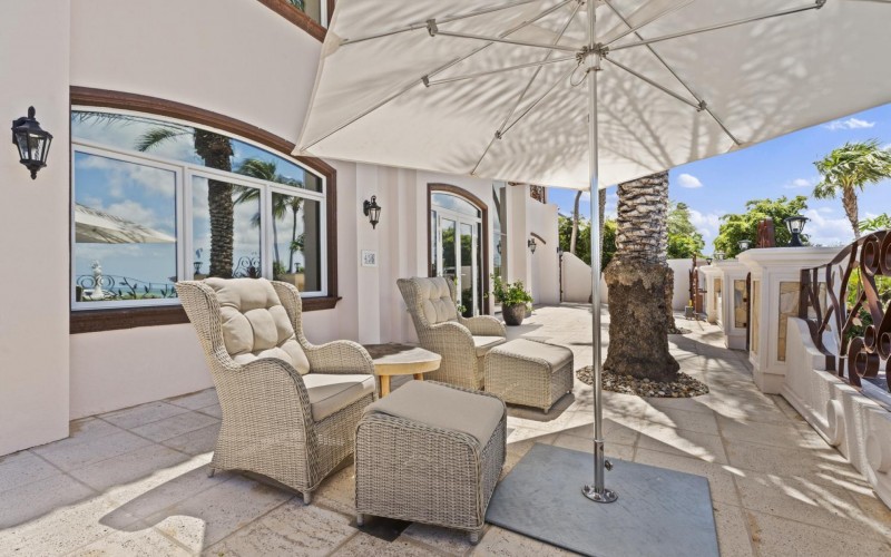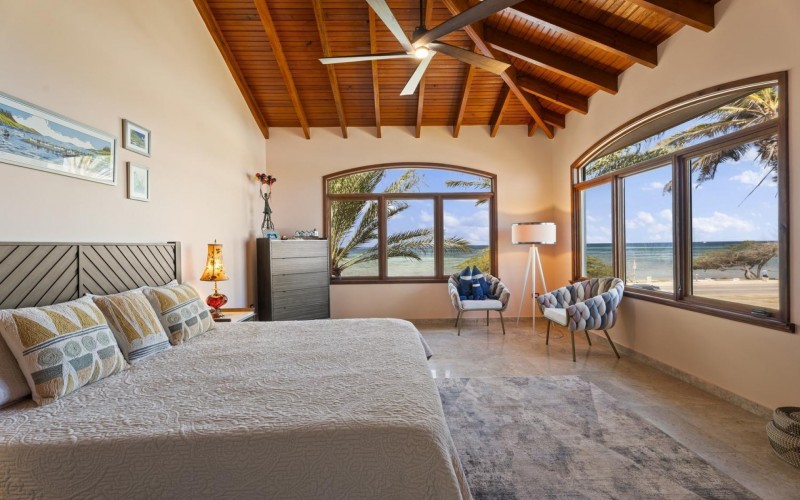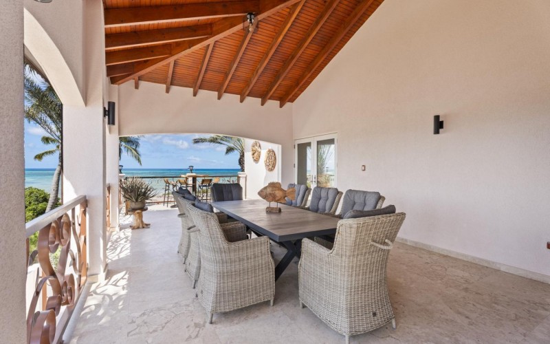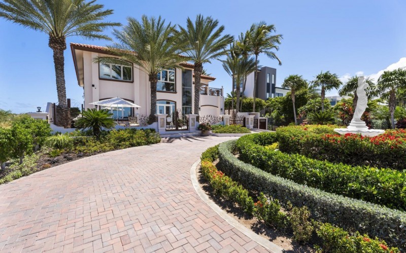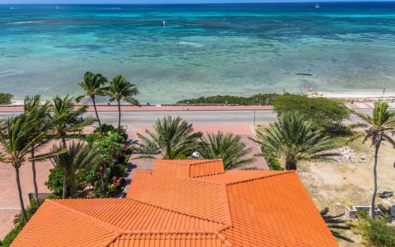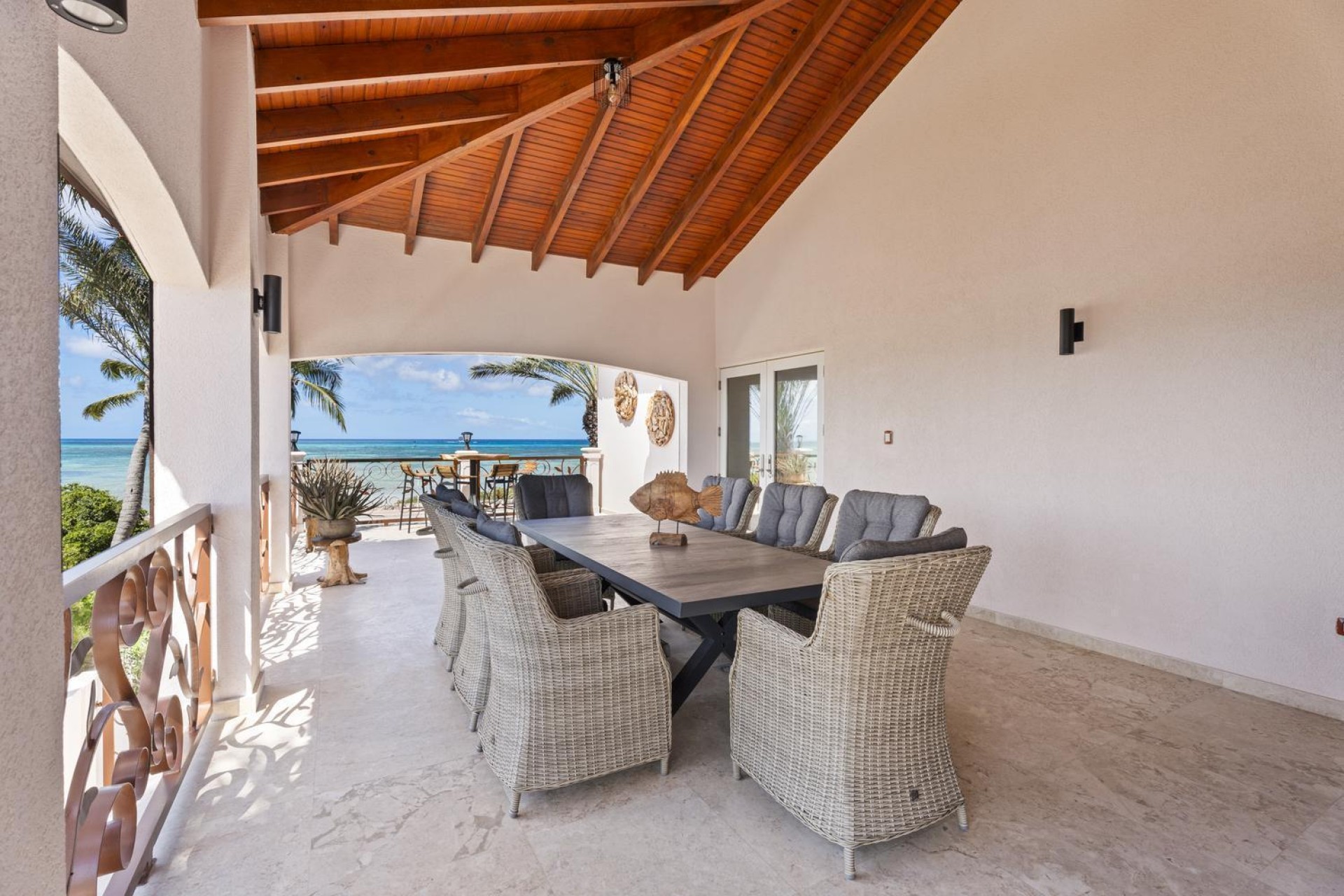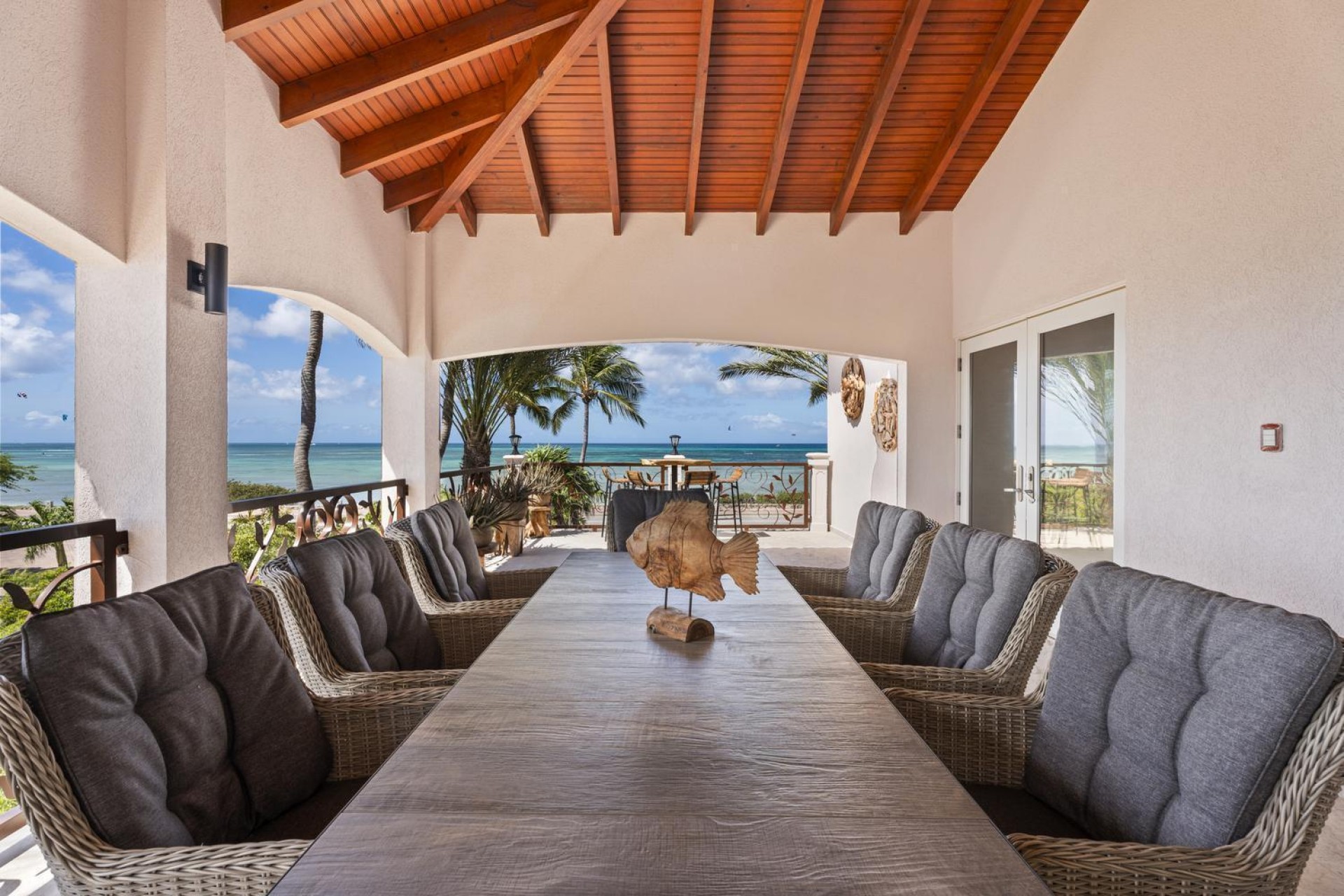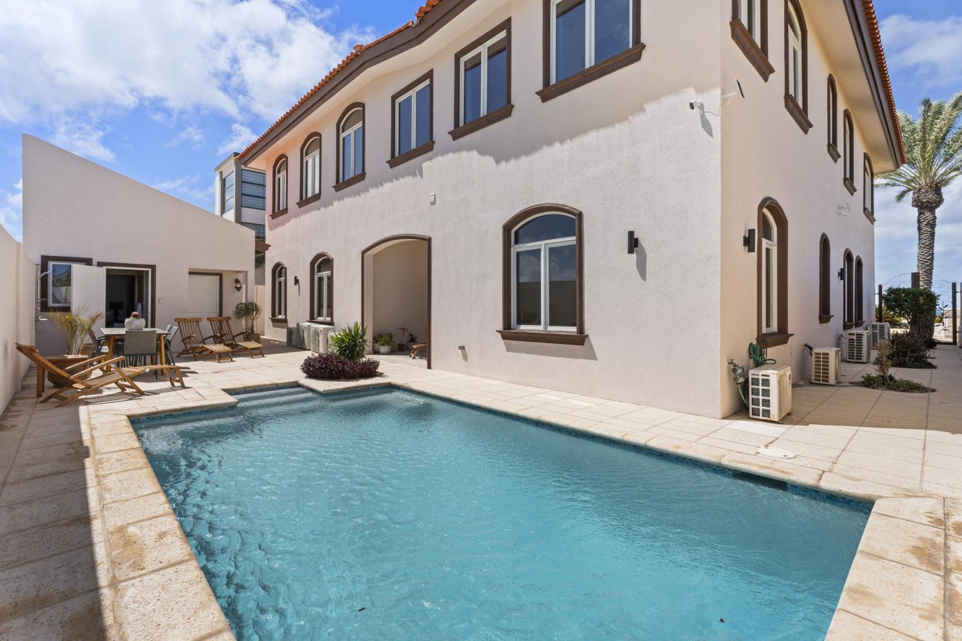 Oceanfront Elegance in Malmok – Aruba’s Most Exclusive Villa A villa of this caliber rarely comes to market. Perfectly positioned directly on the ocean in Malmok, with the Caribbean Sea as your backyard, breathtaking sunsets every evening, and the island’s most pristine beaches within walking distance. This is not just a home – this is pure oceanfront luxury. Fully renovated, fully furnished, and move-in ready, this estate combines timeless design with modern sophistication. From the elegant circular driveway, double front doors open into a spacious living area where the open design seamlessly connects to the backyard, creating an immediate sense of light and flow. A semi-open layout flows seamlessly into the fully equipped chef’s kitchen with a grand island – offering panoramic sea views that make cooking a true experience. The villa offers 5 bedrooms and 4.5 bathrooms across two levels. On the ground floor, two bright and spacious bedrooms each feature their own ensuite bathroom, providing comfort and privacy. A stylish powder room and an attached two-car garage with direct access to a dedicated laundry room complete this level. Upstairs, soaring ceilings define the second living area, with spectacular ocean views from every angle. An enclosed terrace offers a unique 360° panorama of the Caribbean Sea, while a large outdoor terrace expands the living space even further. The upper floor is home to three bedrooms: a spacious suite with its own ensuite bathroom, a versatile guest room, and the spectacular master suite with wraparound ocean views, a spa-like bathroom with jacuzzi, and a walk-in closet. Completing the upper level is a private gym overlooking the salina, while a second laundry room provides added ease and practicality. The property is fully gated and secured, ensuring complete privacy. The backyard offers a heated pool and shaded seating area, designed for outdoor living in comfort. A detached one-bedroom apartment with full kitchen and bath completes the estate, perfect for guests or staff. This is a once-in-a-lifetime opportunity to own one of Aruba’s rare oceanfront estates – where luxury, design, and location meet at the highest level. Contact us today to schedule your private (online) viewing. 📞 +297 742 0129 📨
