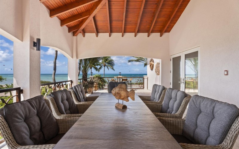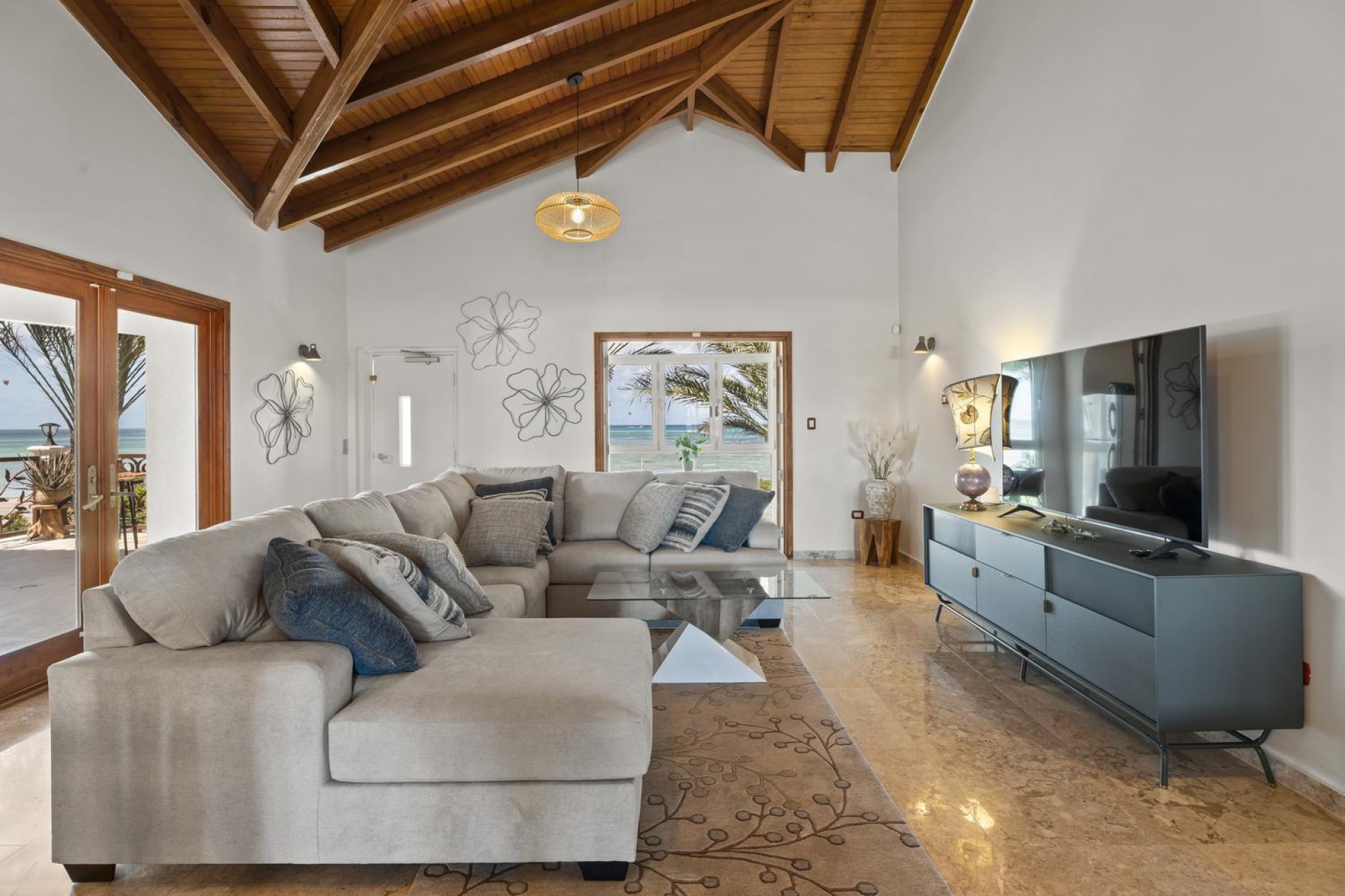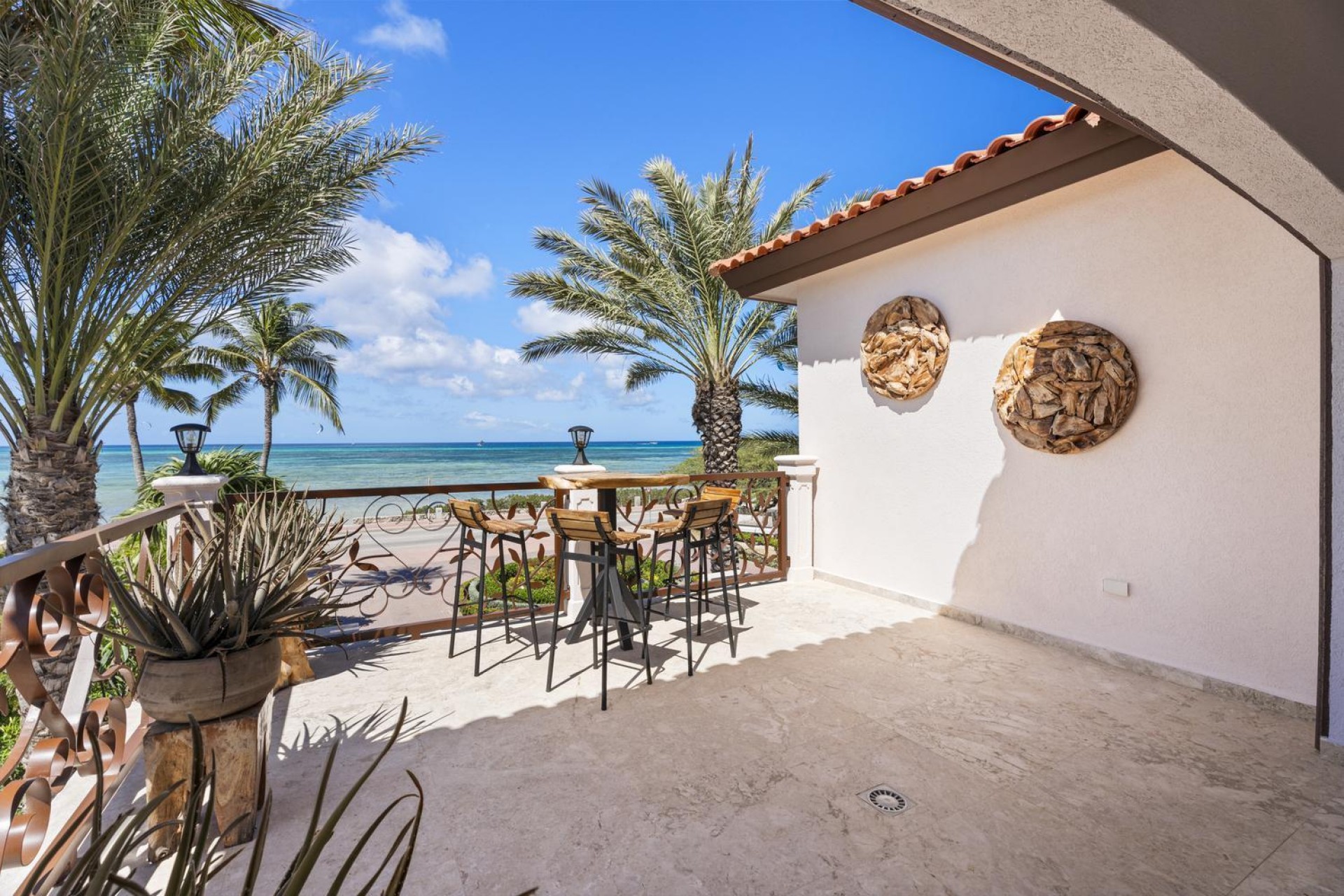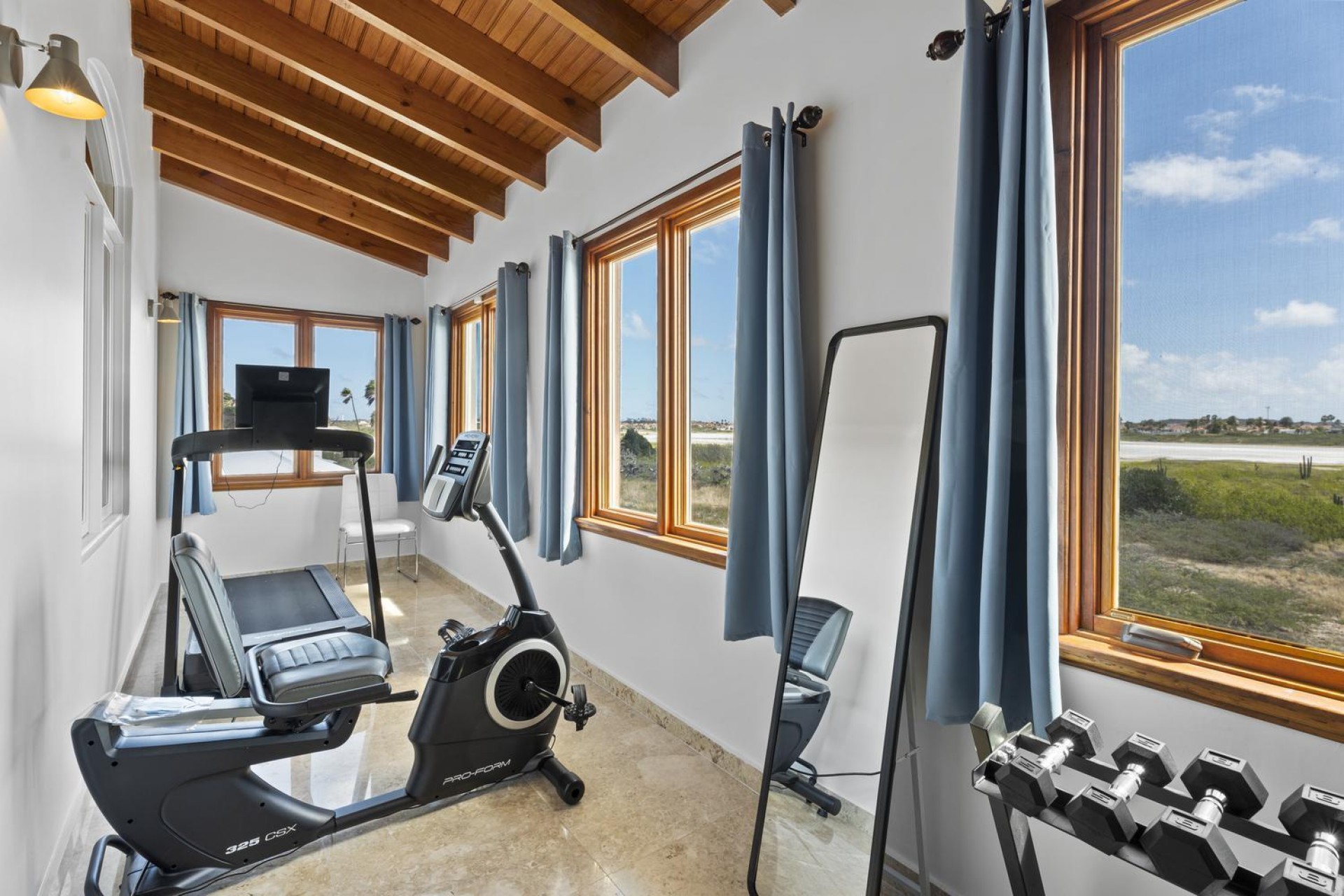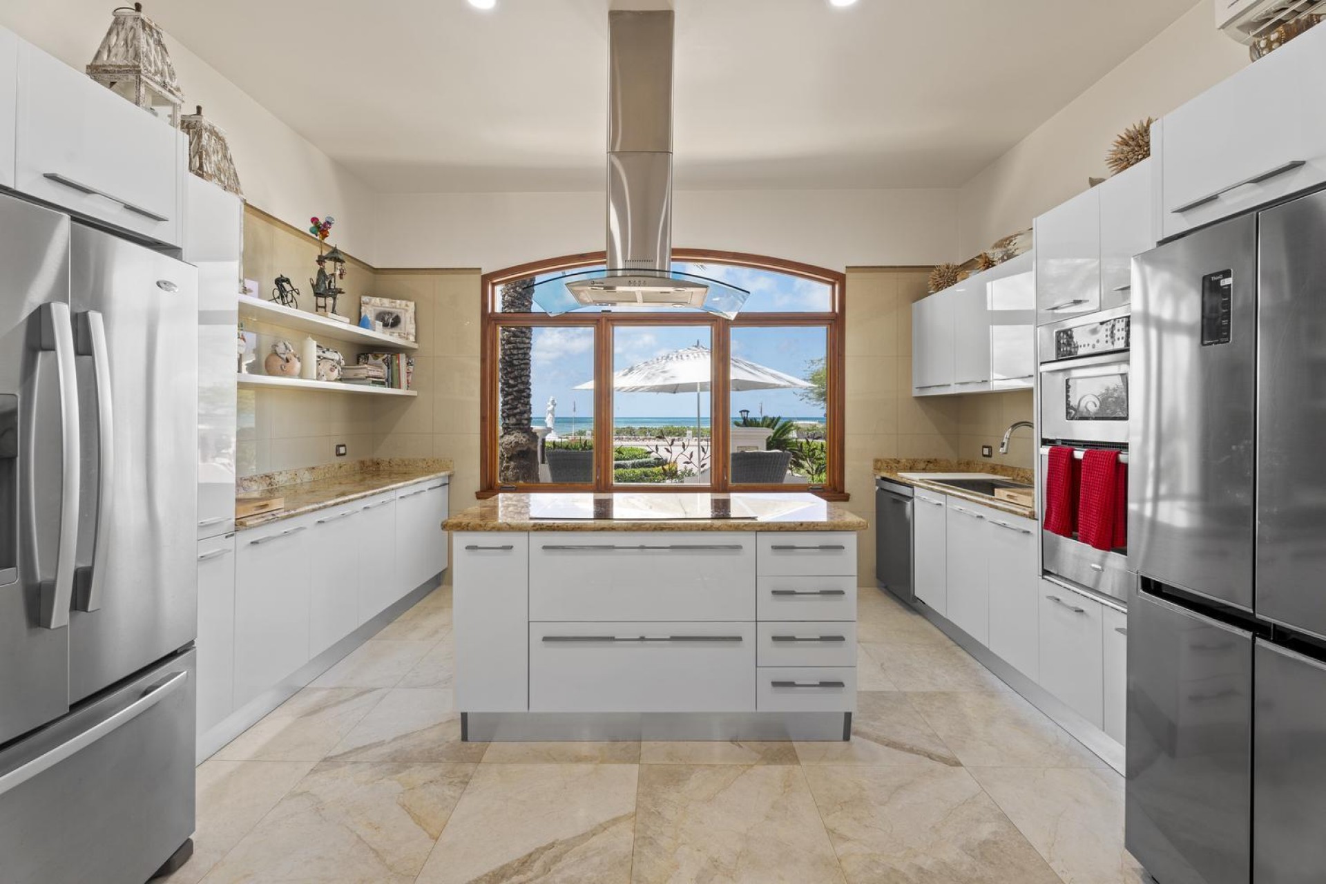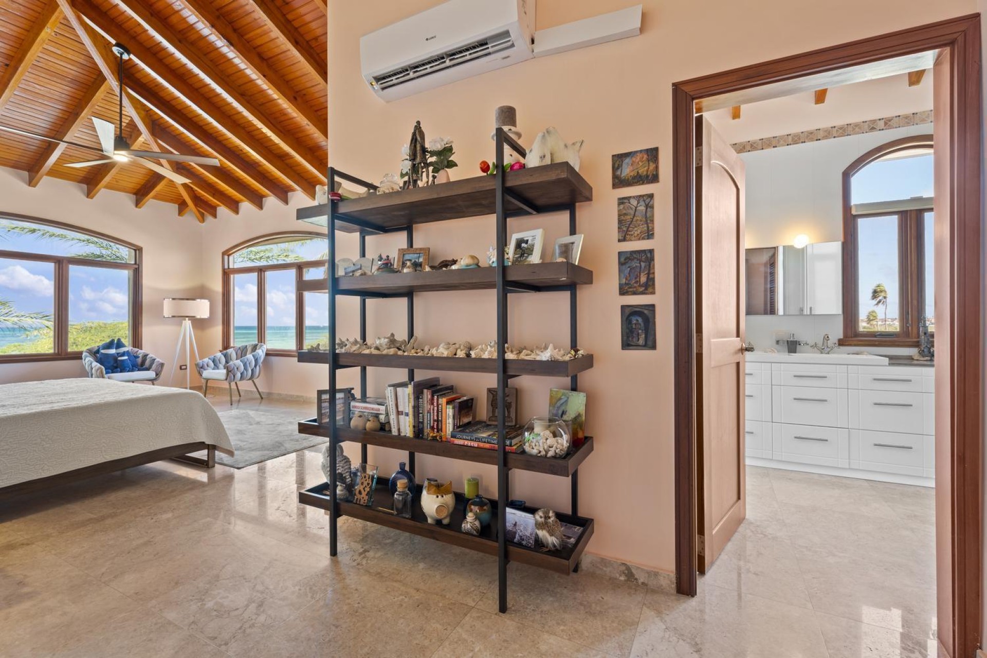 Oceanfront Elegance in Malmok – Aruba’s Most Exclusive Villa A villa of this caliber rarely comes to market. Perfectly positioned directly on the ocean in Malmok, with the Caribbean Sea as your backyard, breathtaking sunsets every evening, and the island’s most pristine beaches within walking distance. This is not just a home – this is pure oceanfront luxury. Fully renovated, fully furnished, and move-in ready, this estate combines timeless design with modern sophistication. From the elegant circular driveway, double front doors open into a spacious living area where the open design seamlessly connects to the backyard, creating an immediate sense of light and flow. A semi-open layout flows seamlessly into the fully equipped chef’s kitchen with a grand island – offering panoramic sea views that make cooking a true experience. The villa offers 5 bedrooms and 4.5 bathrooms across two levels. On the ground floor, two bright and spacious bedrooms each feature their own ensuite bathroom, providing comfort and privacy. A stylish powder room and an attached two-car garage with direct access to a dedicated laundry room complete this level. Upstairs, soaring ceilings define the second living area, with spectacular ocean views from every angle. An enclosed terrace offers a unique 360° panorama of the Caribbean Sea, while a large outdoor terrace expands the living space even further. The upper floor is home to three bedrooms: a spacious suite with its own ensuite bathroom, a versatile guest room, and the spectacular master suite with wraparound ocean views, a spa-like bathroom with jacuzzi, and a walk-in closet. Completing the upper level is a private gym overlooking the salina, while a second laundry room provides added ease and practicality. The property is fully gated and secured, ensuring complete privacy. The backyard offers a heated pool and shaded seating area, designed for outdoor living in comfort. A detached one-bedroom apartment with full kitchen and bath completes the estate, perfect for guests or staff. This is a once-in-a-lifetime opportunity to own one of Aruba’s rare oceanfront estates – where luxury, design, and location meet at the highest level. Contact us today to schedule your private (online) viewing. 📞 +297 742 0129 📨