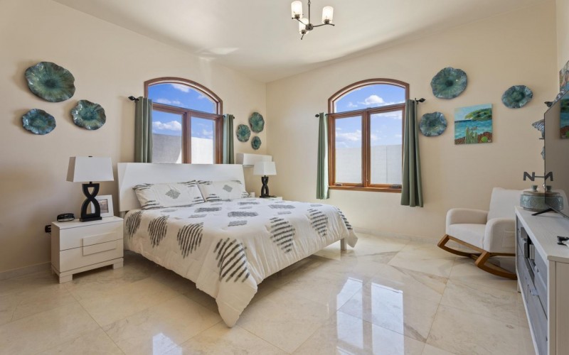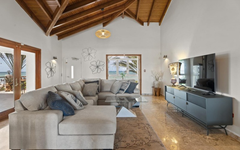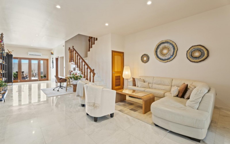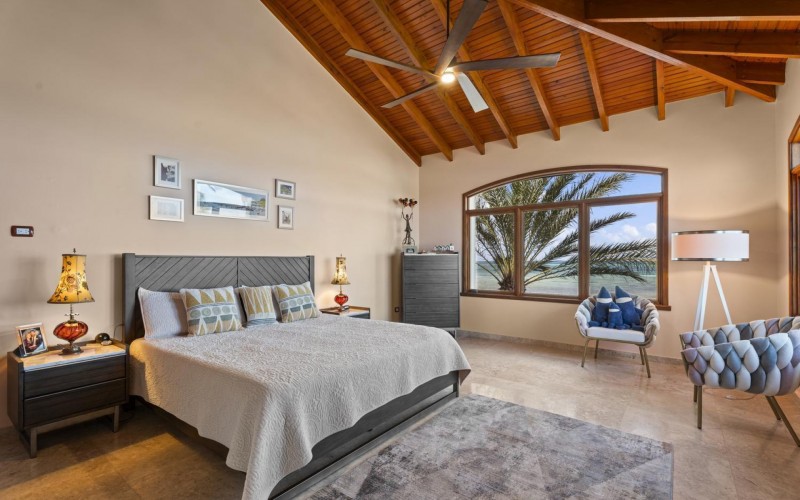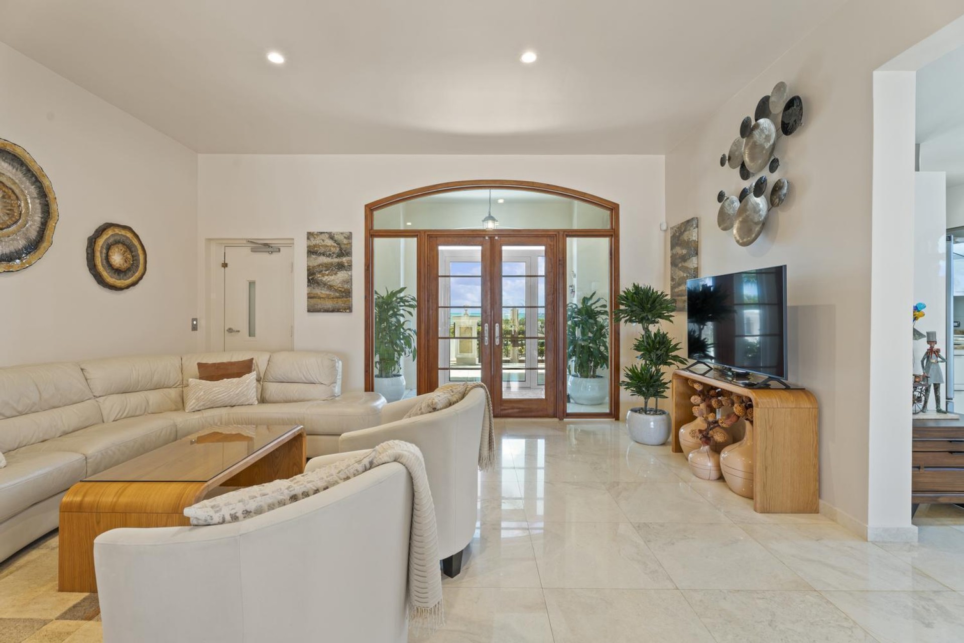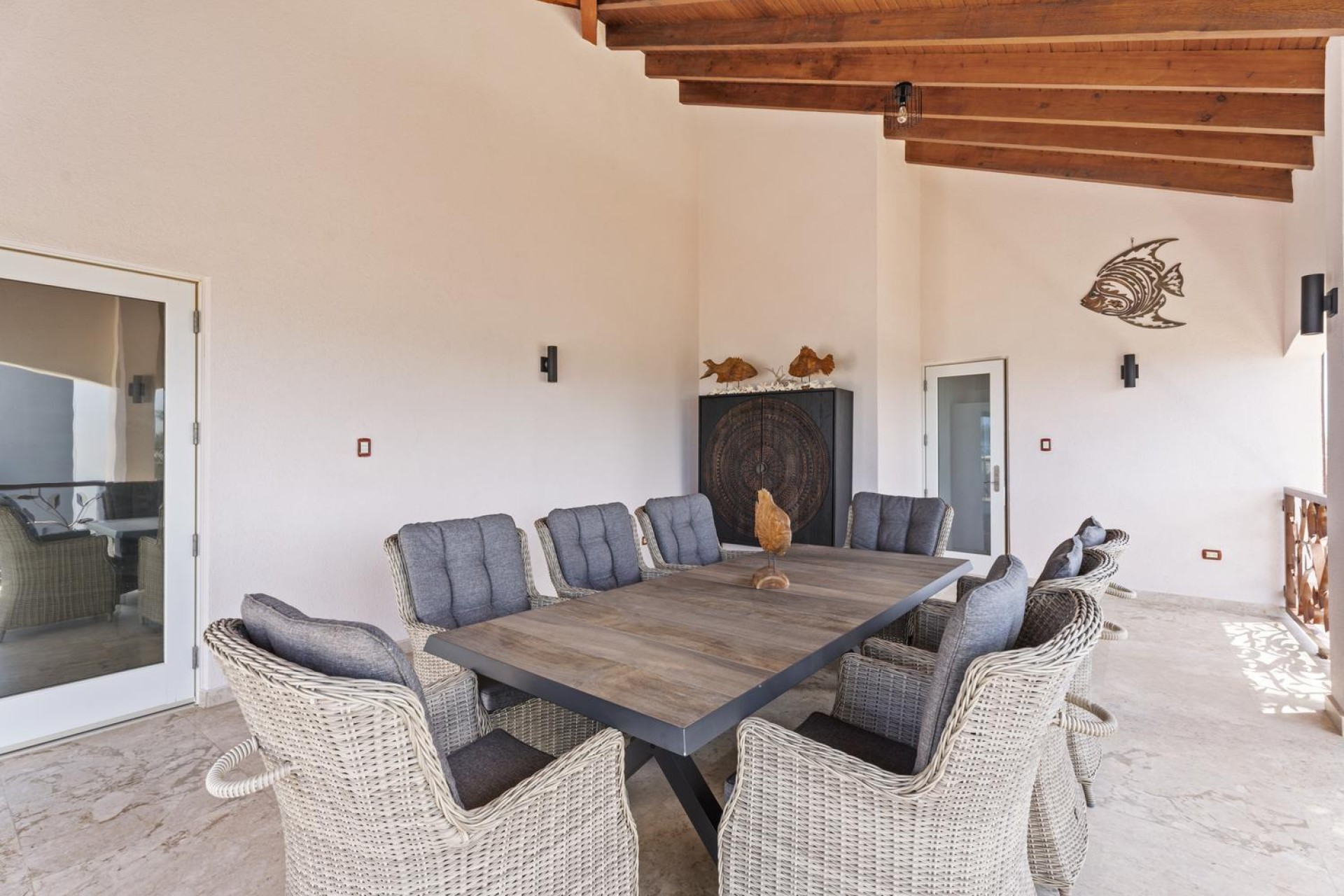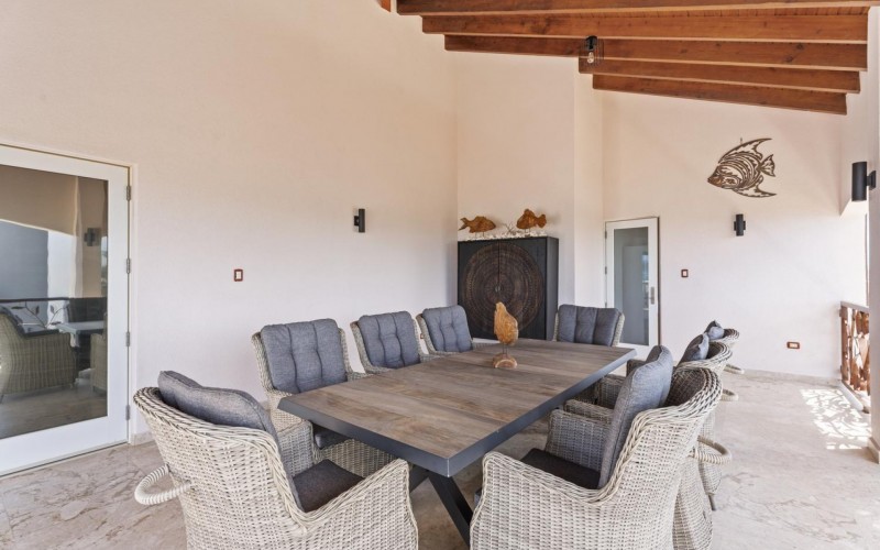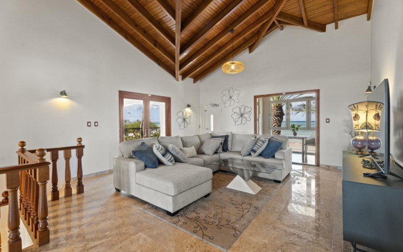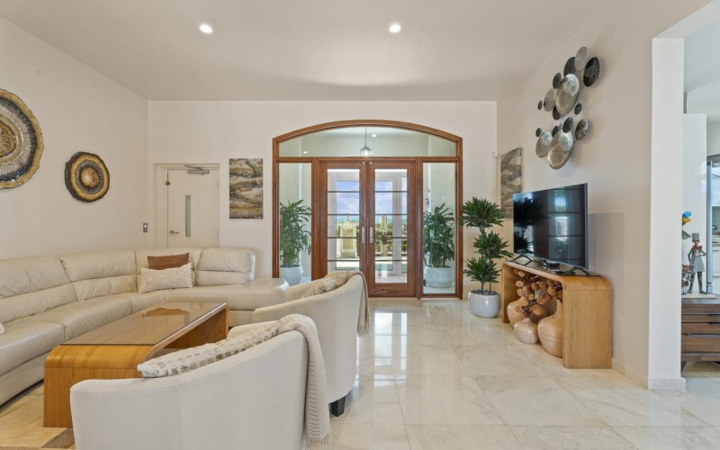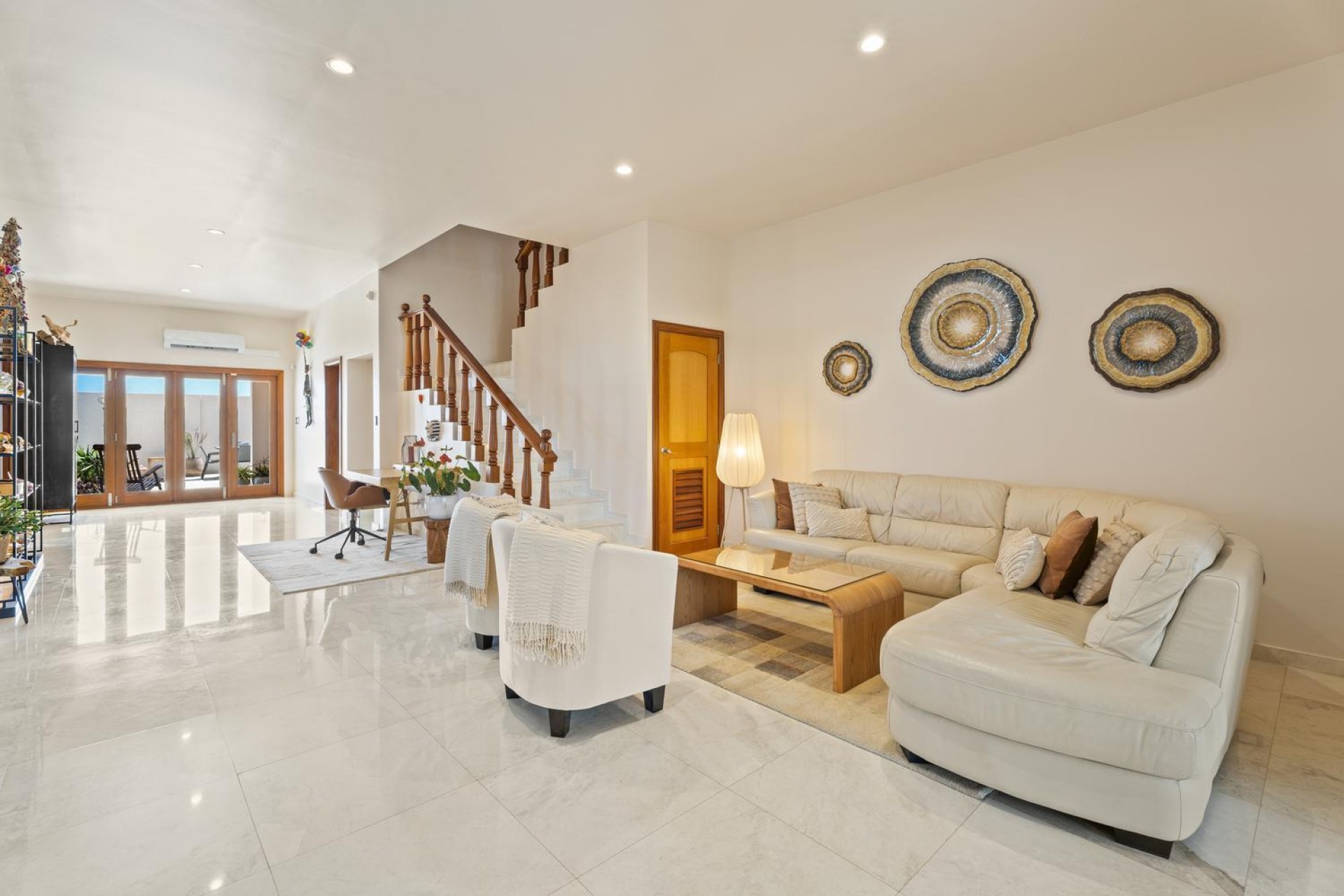 Oceanfront Elegance in Malmok – Aruba’s Most Exclusive Villa A villa of this caliber rarely comes to market. Perfectly positioned directly on the ocean in Malmok, with the Caribbean Sea as your backyard, breathtaking sunsets every evening, and the island’s most pristine beaches within walking distance. This is not just a home – this is pure oceanfront luxury. Fully renovated, fully furnished, and move-in ready, this estate combines timeless design with modern sophistication. From the elegant circular driveway, double front doors open into a spacious living area where the open design seamlessly connects to the backyard, creating an immediate sense of light and flow. A semi-open layout flows seamlessly into the fully equipped chef’s kitchen with a grand island – offering panoramic sea views that make cooking a true experience. The villa offers 5 bedrooms and 4.5 bathrooms across two levels. On the ground floor, two bright and spacious bedrooms each feature their own ensuite bathroom, providing comfort and privacy. A stylish powder room and an attached two-car garage with direct access to a dedicated laundry room complete this level. Upstairs, soaring ceilings define the second living area, with spectacular ocean views from every angle. An enclosed terrace offers a unique 360° panorama of the Caribbean Sea, while a large outdoor terrace expands the living space even further. The upper floor is home to three bedrooms: a spacious suite with its own ensuite bathroom, a versatile guest room, and the spectacular master suite with wraparound ocean views, a spa-like bathroom with jacuzzi, and a walk-in closet. Completing the upper level is a private gym overlooking the salina, while a second laundry room provides added ease and practicality. The property is fully gated and secured, ensuring complete privacy. The backyard offers a heated pool and shaded seating area, designed for outdoor living in comfort. A detached one-bedroom apartment with full kitchen and bath completes the estate, perfect for guests or staff. This is a once-in-a-lifetime opportunity to own one of Aruba’s rare oceanfront estates – where luxury, design, and location meet at the highest level. Contact us today to schedule your private (online) viewing. 📞 +297 742 0129 📨
