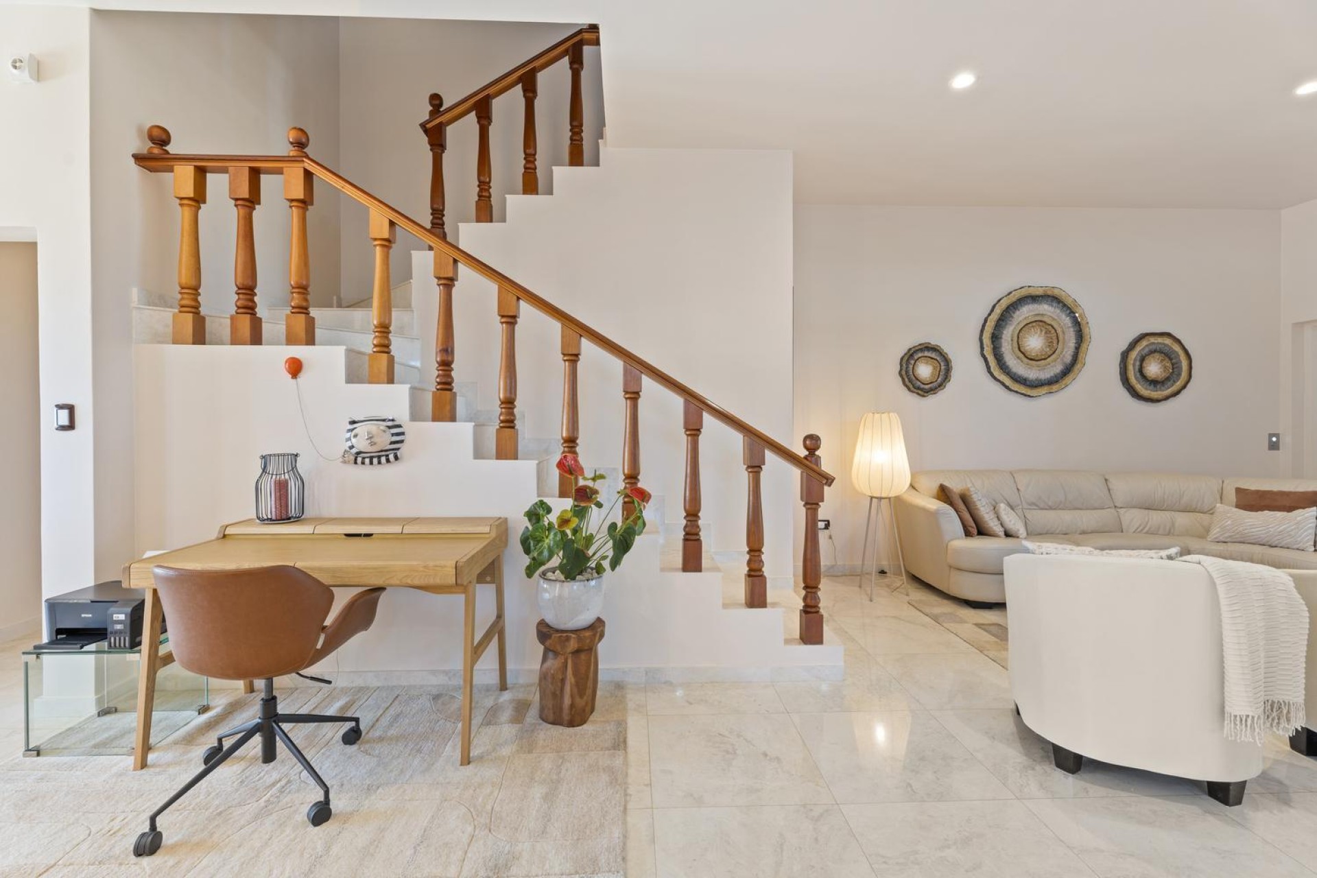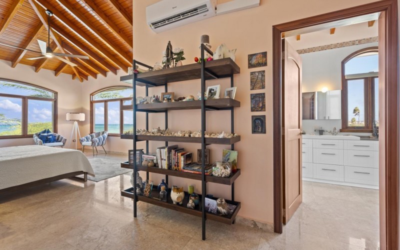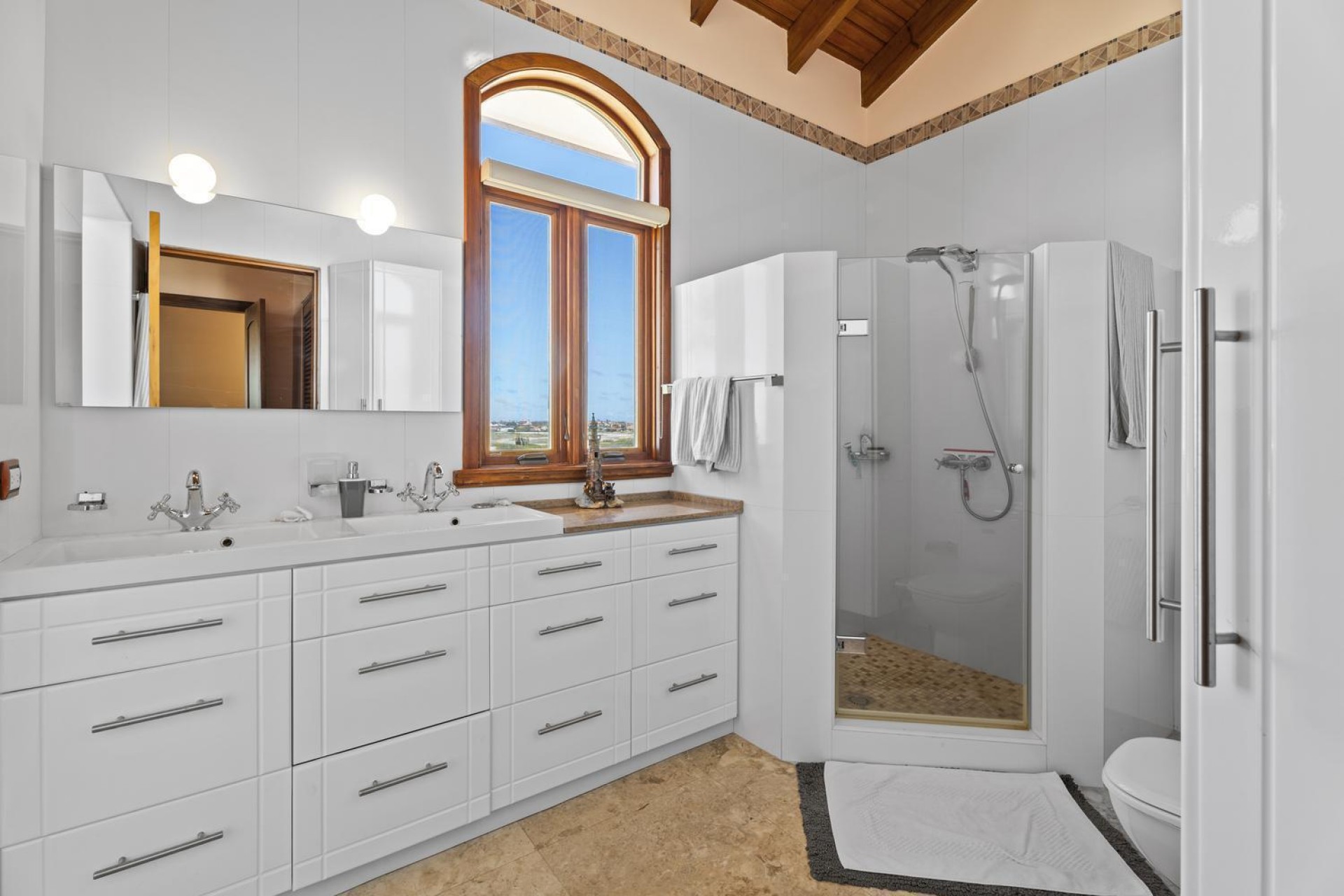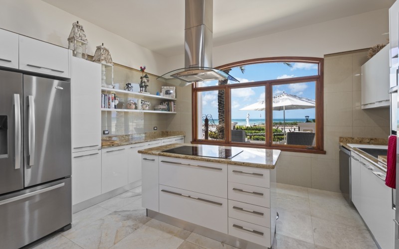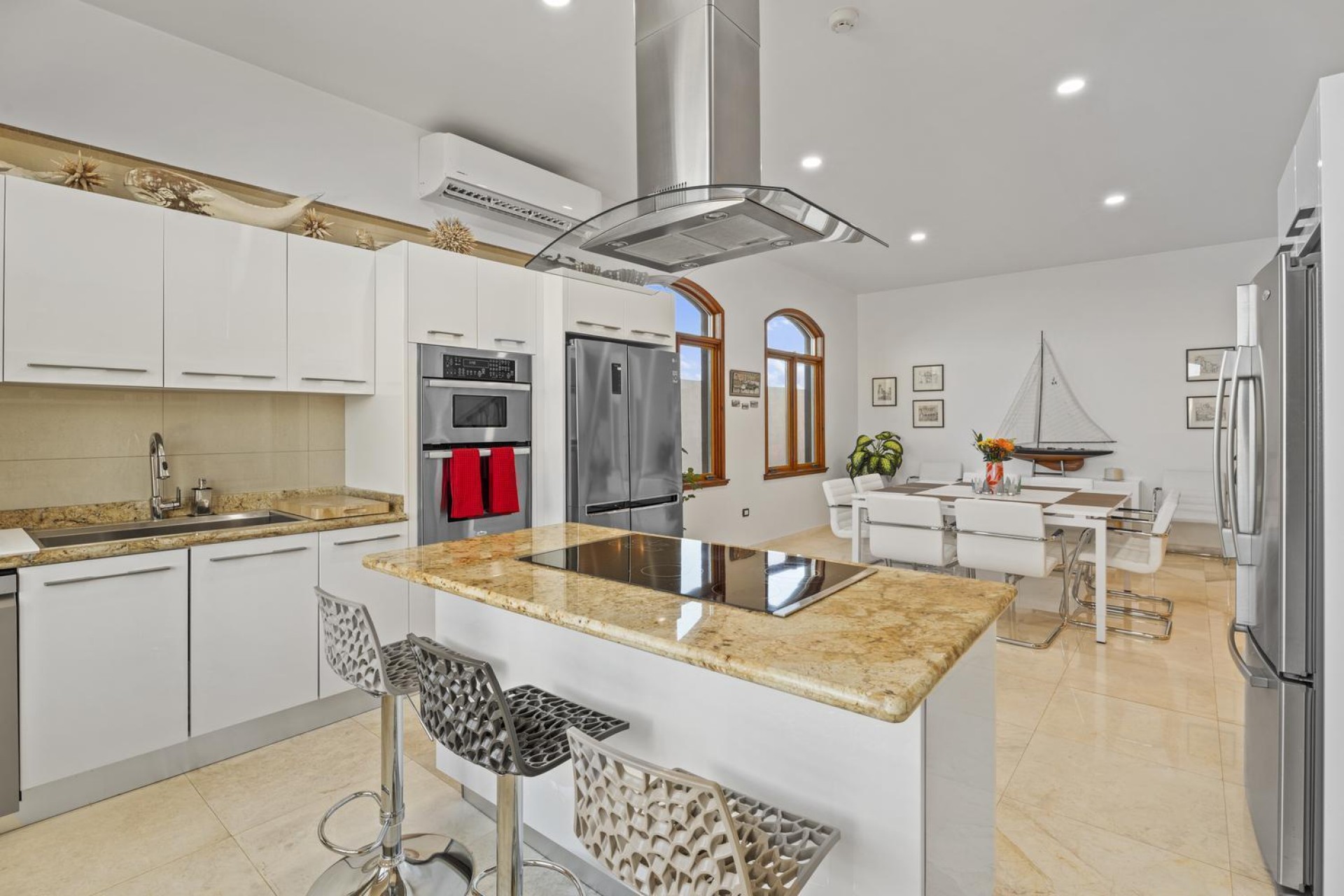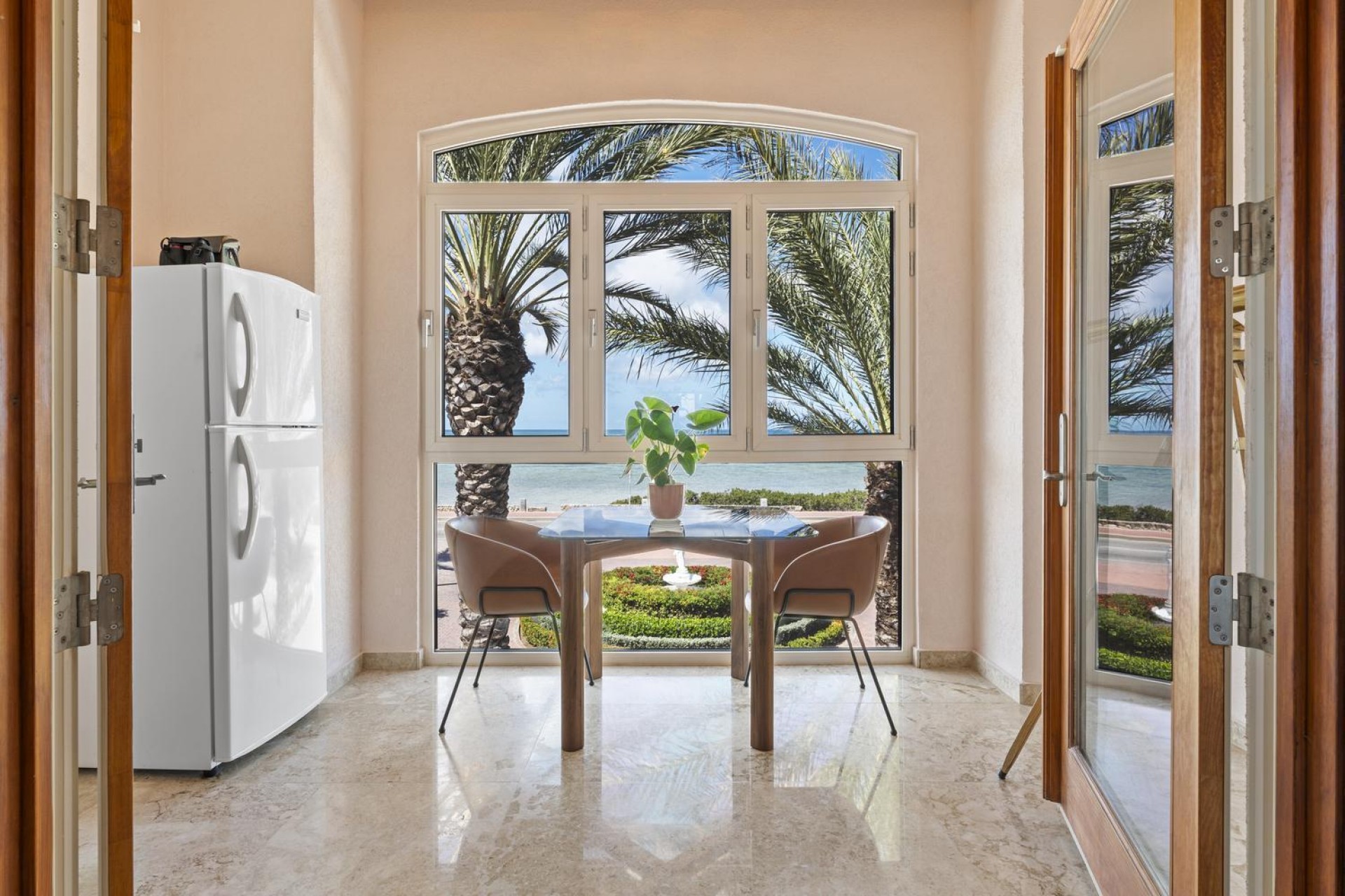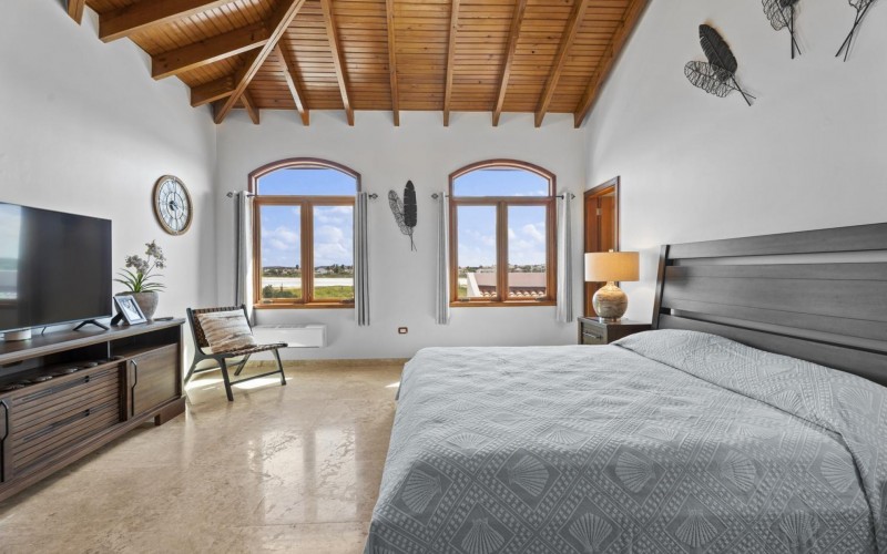 Oceanfront Elegance in Malmok – Aruba’s Most Exclusive Villa A villa of this caliber rarely comes to market. Perfectly positioned directly on the ocean in Malmok, with the Caribbean Sea as your backyard, breathtaking sunsets every evening, and the island’s most pristine beaches within walking distance. This is not just a home – this is pure oceanfront luxury. Fully renovated, fully furnished, and move-in ready, this estate combines timeless design with modern sophistication. From the elegant circular driveway, double front doors open into a spacious living area where the open design seamlessly connects to the backyard, creating an immediate sense of light and flow. A semi-open layout flows seamlessly into the fully equipped chef’s kitchen with a grand island – offering panoramic sea views that make cooking a true experience. The villa offers 5 bedrooms and 4.5 bathrooms across two levels. On the ground floor, two bright and spacious bedrooms each feature their own ensuite bathroom, providing comfort and privacy. A stylish powder room and an attached two-car garage with direct access to a dedicated laundry room complete this level. Upstairs, soaring ceilings define the second living area, with spectacular ocean views from every angle. An enclosed terrace offers a unique 360° panorama of the Caribbean Sea, while a large outdoor terrace expands the living space even further. The upper floor is home to three bedrooms: a spacious suite with its own ensuite bathroom, a versatile guest room, and the spectacular master suite with wraparound ocean views, a spa-like bathroom with jacuzzi, and a walk-in closet. Completing the upper level is a private gym overlooking the salina, while a second laundry room provides added ease and practicality. The property is fully gated and secured, ensuring complete privacy. The backyard offers a heated pool and shaded seating area, designed for outdoor living in comfort. A detached one-bedroom apartment with full kitchen and bath completes the estate, perfect for guests or staff. This is a once-in-a-lifetime opportunity to own one of Aruba’s rare oceanfront estates – where luxury, design, and location meet at the highest level. Contact us today to schedule your private (online) viewing. 📞 +297 742 0129 📨