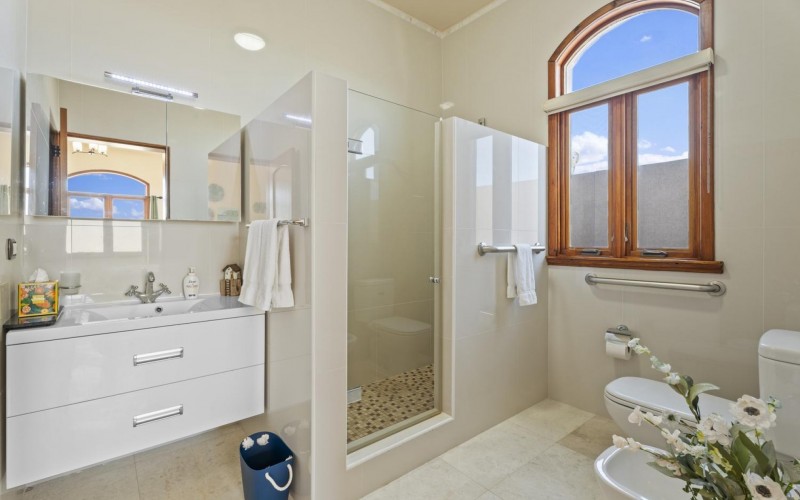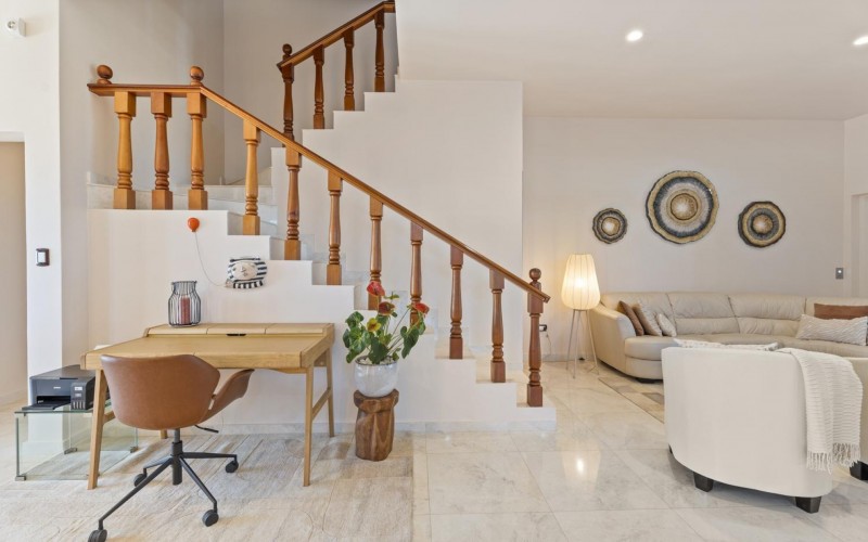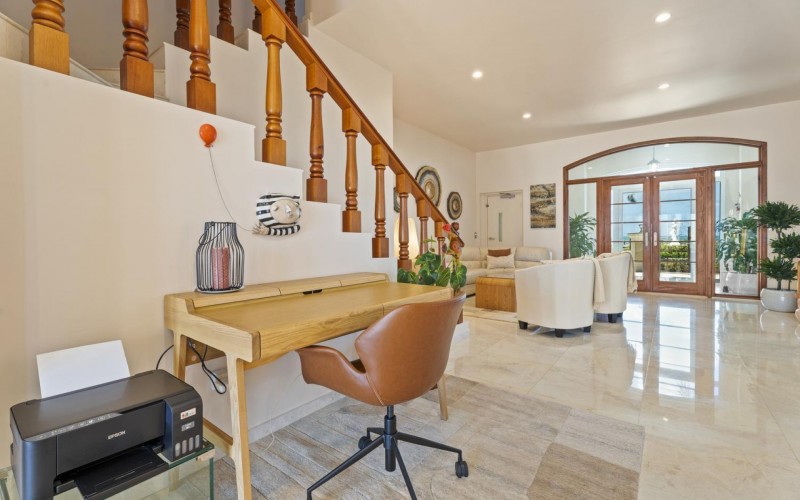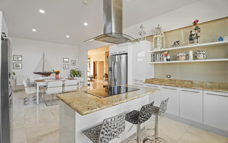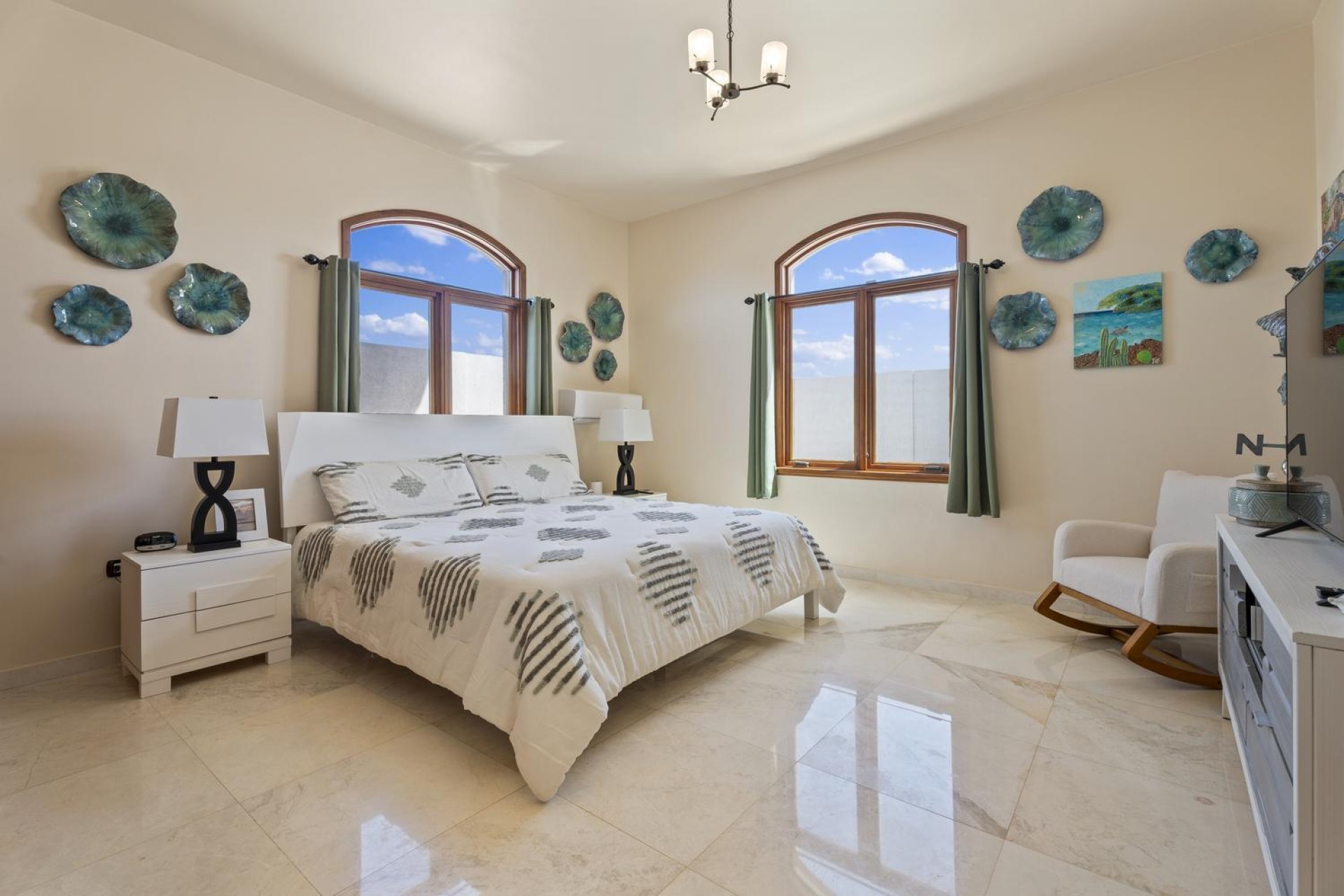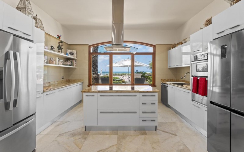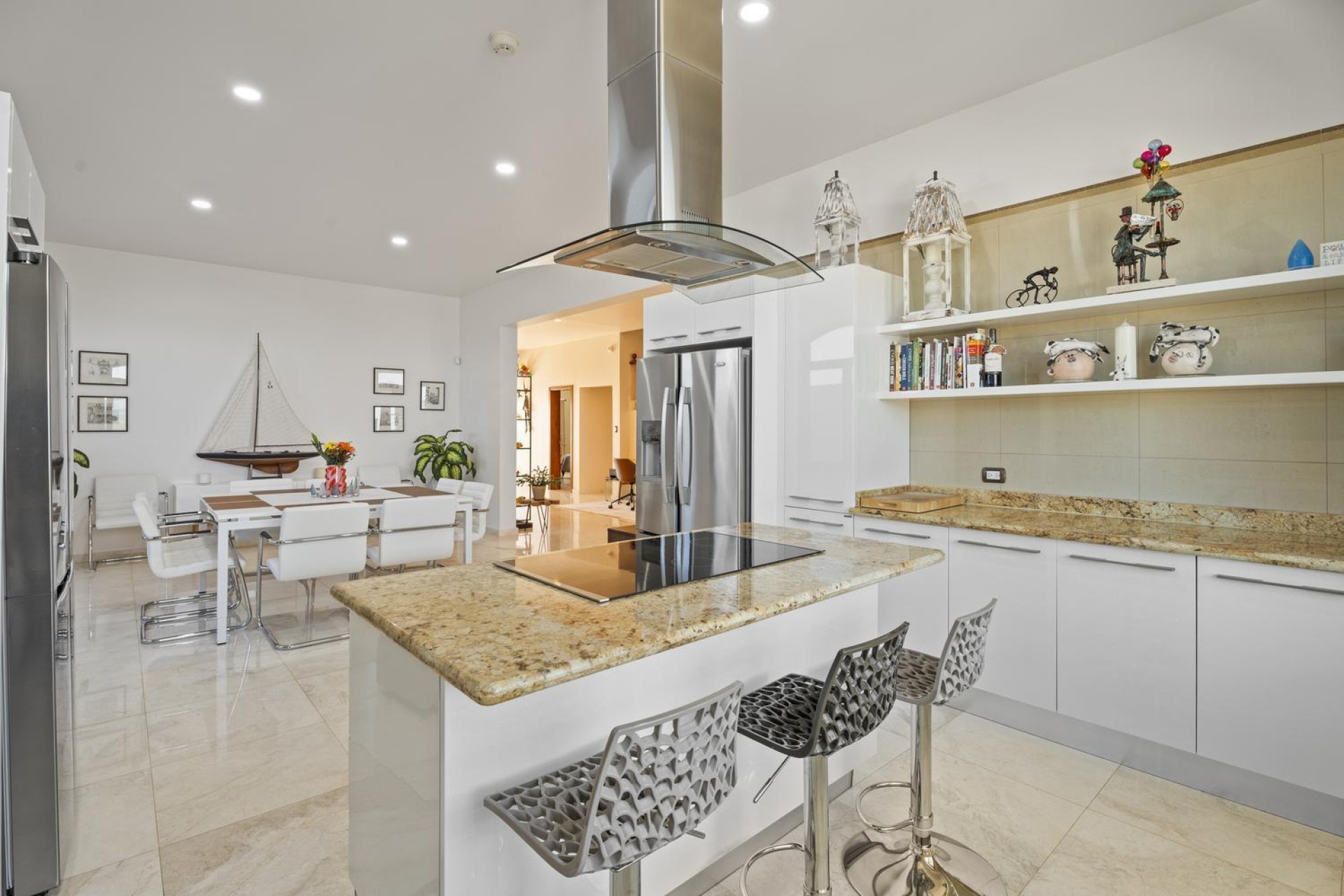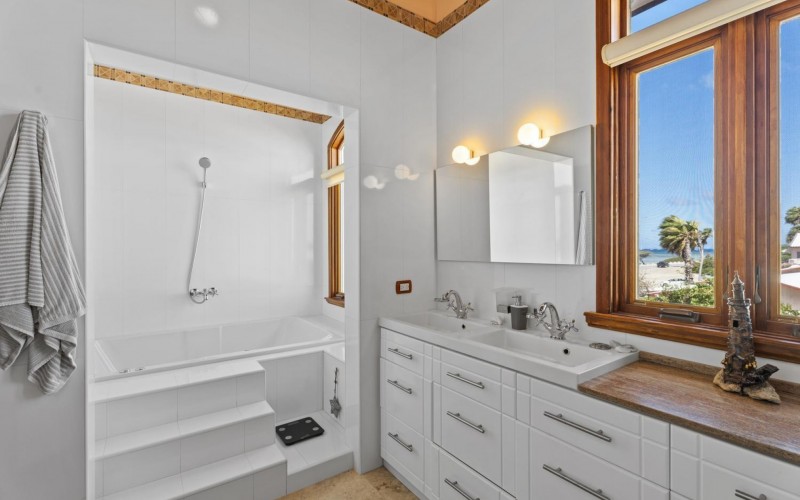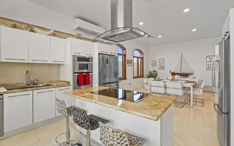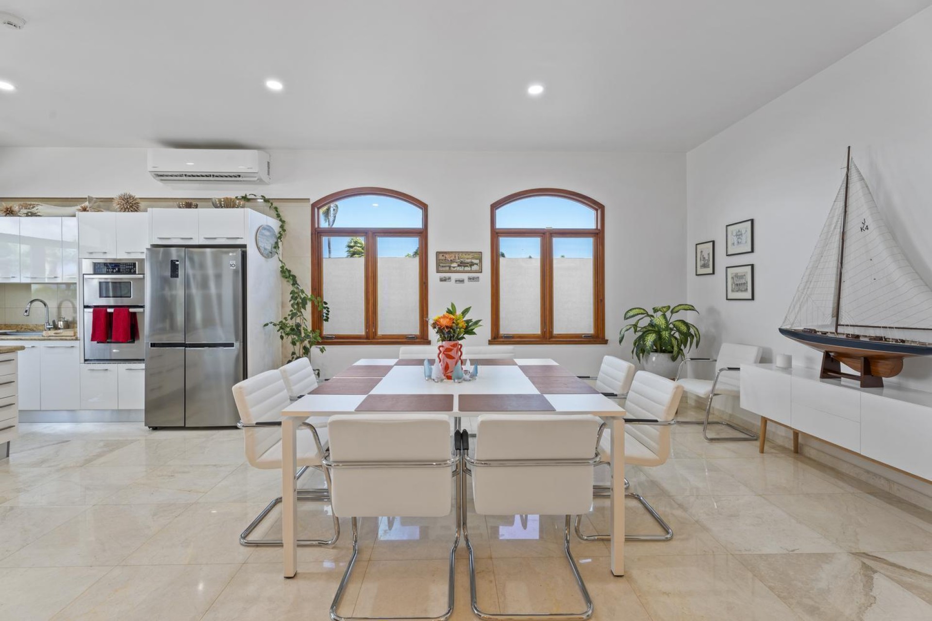Oceanfront Elegance in Malmok – Aruba’s Most Exclusive Villa A villa of this caliber rarely comes to market. Perfectly positioned directly on the ocean in Malmok, with the Caribbean Sea as your backyard, breathtaking sunsets every evening, and the island’s most pristine beaches within walking distance. This is not just a home – this is pure oceanfront luxury. Fully renovated, fully furnished, and move-in ready, this estate combines timeless design with modern sophistication. From the elegant circular driveway, double front doors open into a spacious living area where the open design seamlessly connects to the backyard, creating an immediate sense of light and flow. A semi-open layout flows seamlessly into the fully equipped chef’s kitchen with a grand island – offering panoramic sea views that make cooking a true experience. The villa offers 5 bedrooms and 4.5 bathrooms across two levels. On the ground floor, two bright and spacious bedrooms each feature their own ensuite bathroom, providing comfort and privacy. A stylish powder room and an attached two-car garage with direct access to a dedicated laundry room complete this level. Upstairs, soaring ceilings define the second living area, with spectacular ocean views from every angle. An enclosed terrace offers a unique 360° panorama of the Caribbean Sea, while a large outdoor terrace expands the living space even further. The upper floor is home to three bedrooms: a spacious suite with its own ensuite bathroom, a versatile guest room, and the spectacular master suite with wraparound ocean views, a spa-like bathroom with jacuzzi, and a walk-in closet. Completing the upper level is a private gym overlooking the salina, while a second laundry room provides added ease and practicality. The property is fully gated and secured, ensuring complete privacy. The backyard offers a heated pool and shaded seating area, designed for outdoor living in comfort. A detached one-bedroom apartment with full kitchen and bath completes the estate, perfect for guests or staff. This is a once-in-a-lifetime opportunity to own one of Aruba’s rare oceanfront estates – where luxury, design, and location meet at the highest level. Contact us today to schedule your private (online) viewing. 📞 +297 742 0129 📨
