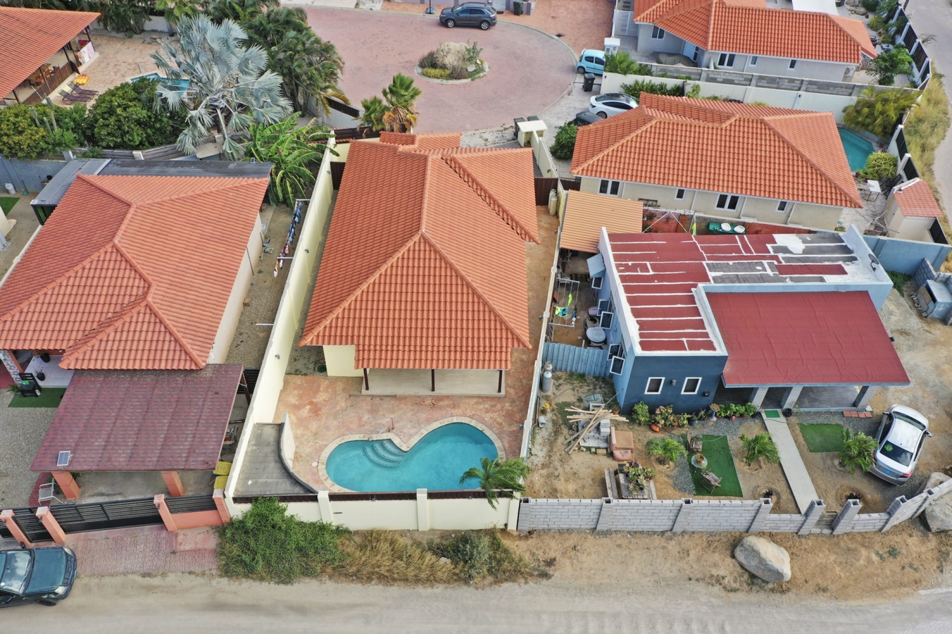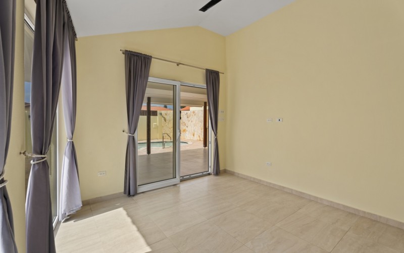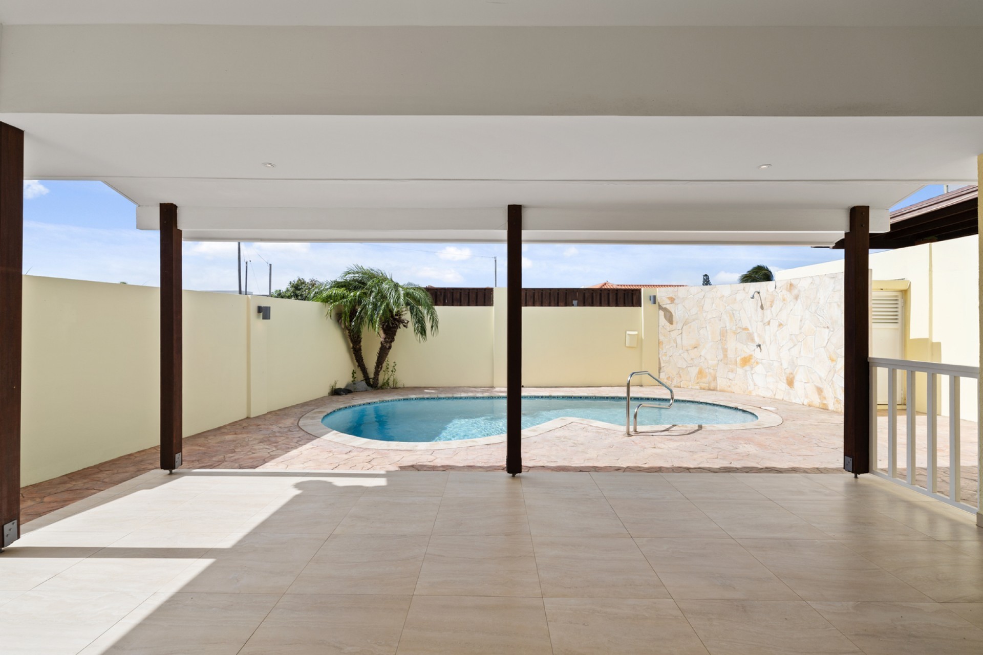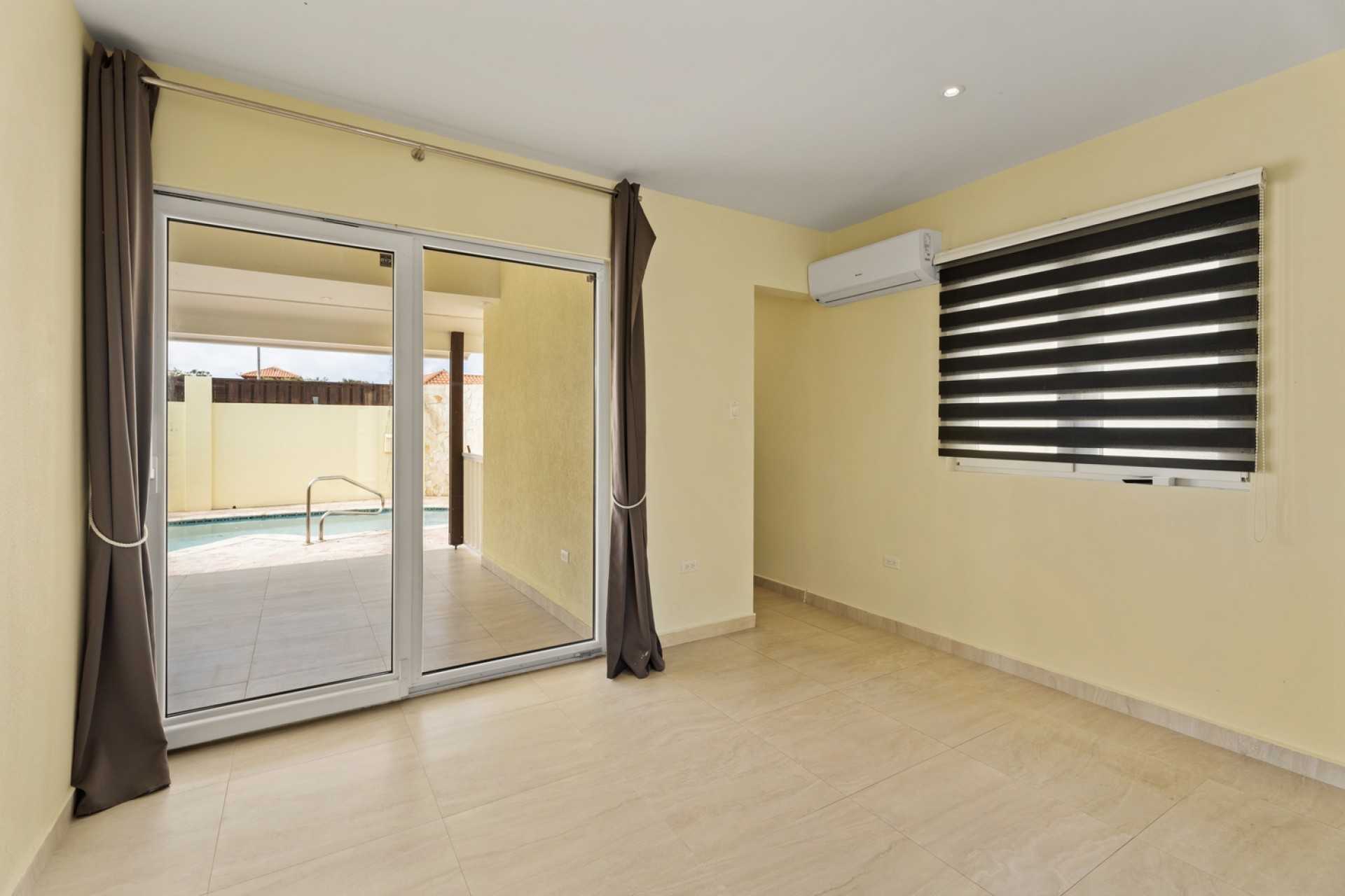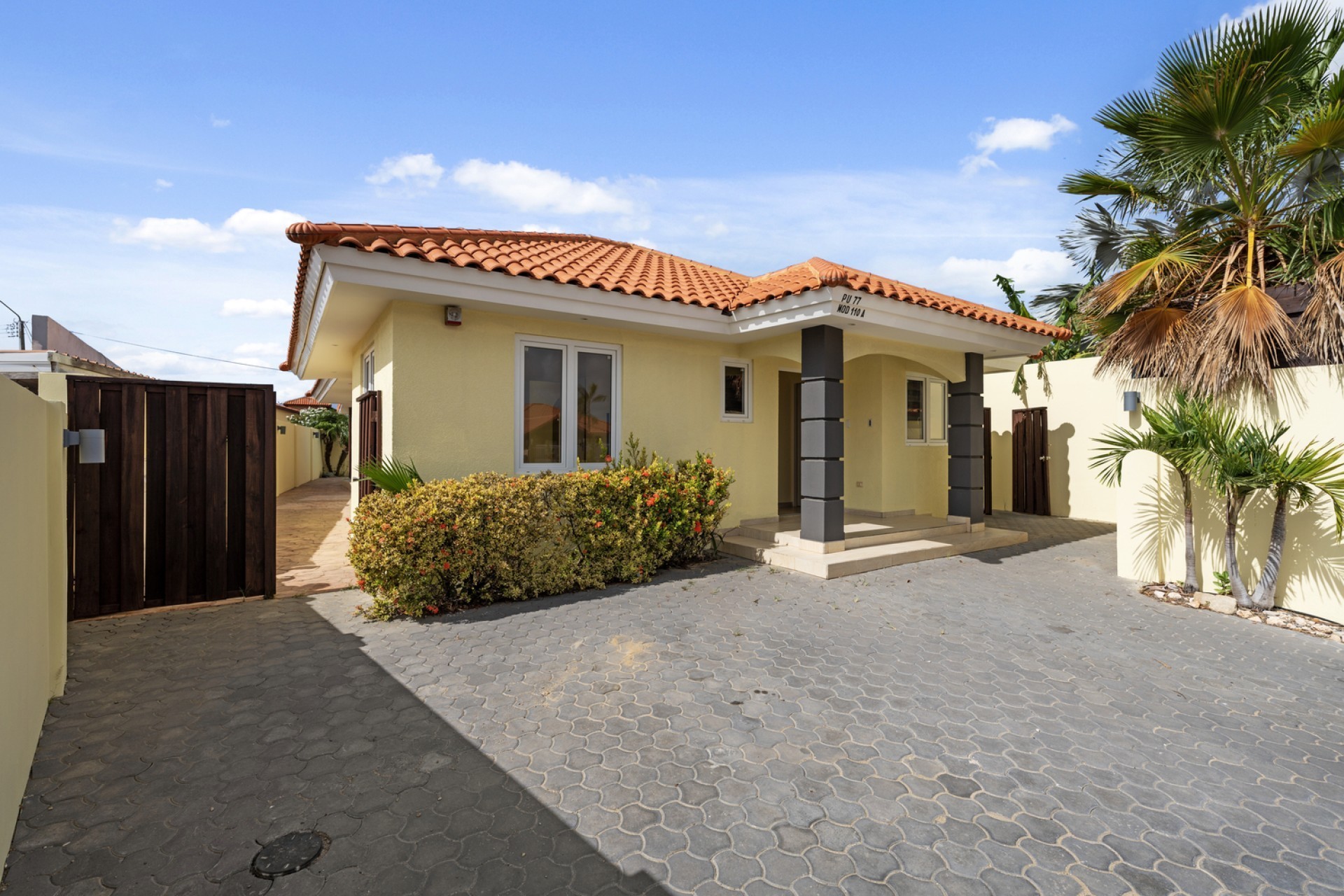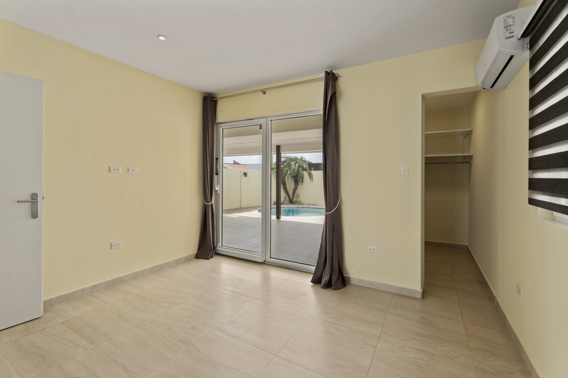 Family Living in Modanza Villa Park – Turn-Key Comfort with Pool Discover the perfect blend of comfort, style, and modern convenience in this move-in-ready family home at Modanza Villa Park. Situated on 326 m² of property land with 132 m² of thoughtfully designed living space, this home enjoys a prime position at the end of a quiet cul-de-sac—offering peace, privacy, and a true family-friendly atmosphere. Step inside and you’re welcomed by a bright, open-concept layout where kitchen, dining, and living areas flow seamlessly together. Large windows fill the home with natural light, while oversized sliding doors invite the outdoors in. From here, your living space extends effortlessly onto the covered porch and backyard oasis. With a sparkling pool, outdoor shower, and shaded lounge areas, every day feels like a private retreat designed for both relaxation and entertaining. This home features 3 bedrooms and 2 bathrooms. The master suite conveniently has its ensuite bathroom, walk-in closet, and direct access to the pool. A second bedroom also boasts a walk-in closet, while the versatile third bedroom is ideal as a guest room, home office, or children’s room. The second bathroom is cleverly arranged with a separate guest toilet and a dedicated shower room, ensuring comfort and convenience for both family and visitors. Practical features add to the home’s appeal: a separate laundry room, hot water throughout, and a fully fenced yard that wraps around the property for added privacy and security. Perfect as a family residence or a turn-key investment, this home in Modanza Villa Park combines modern living with a Caribbean setting in a sought-after neighborhood known for its tranquility, privacy, and family-friendly setting. Ready to move in and start living the island lifestyle? Contact us today to book your private (or virtual) tour. 📞 +297 742 0129 📨