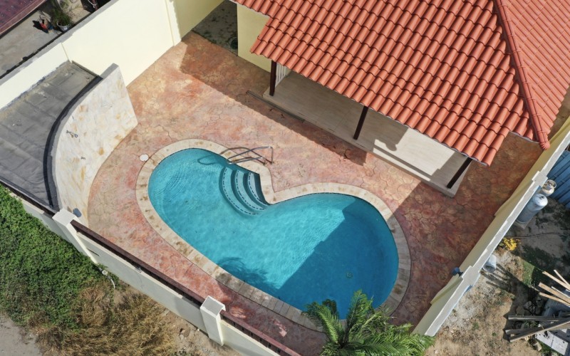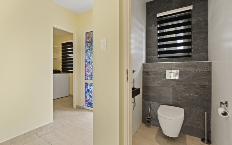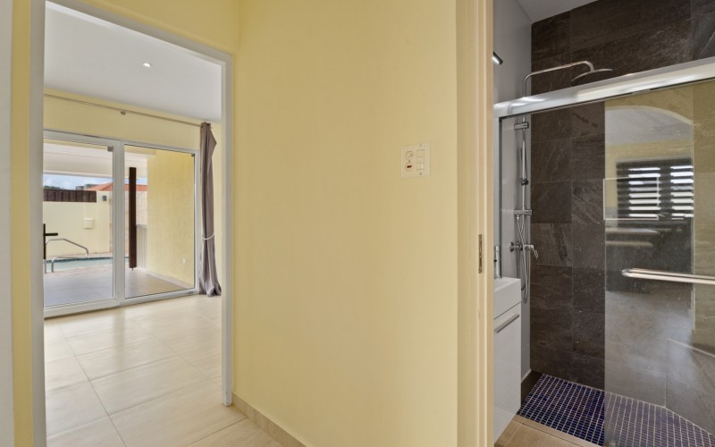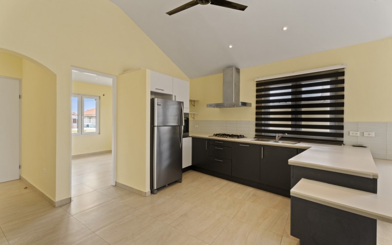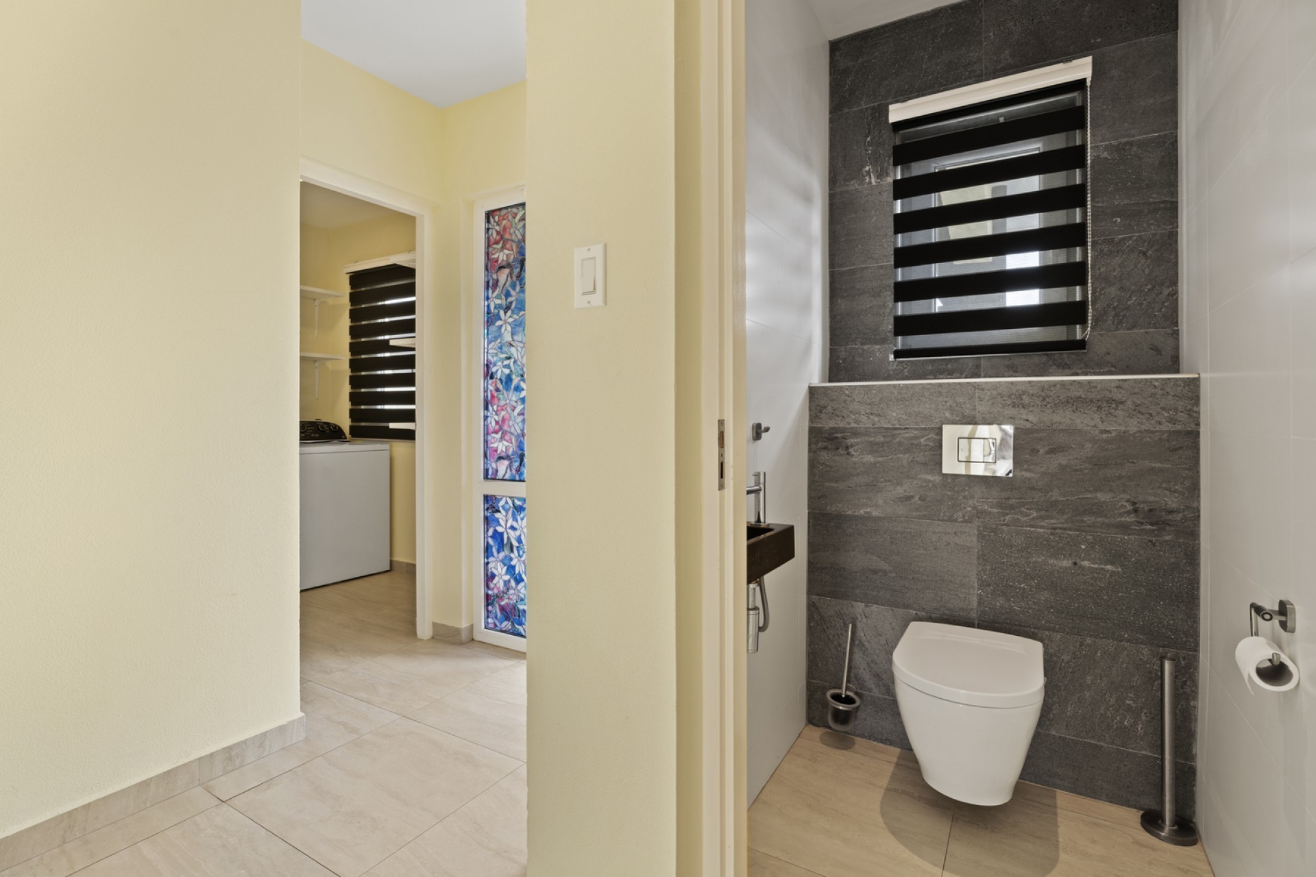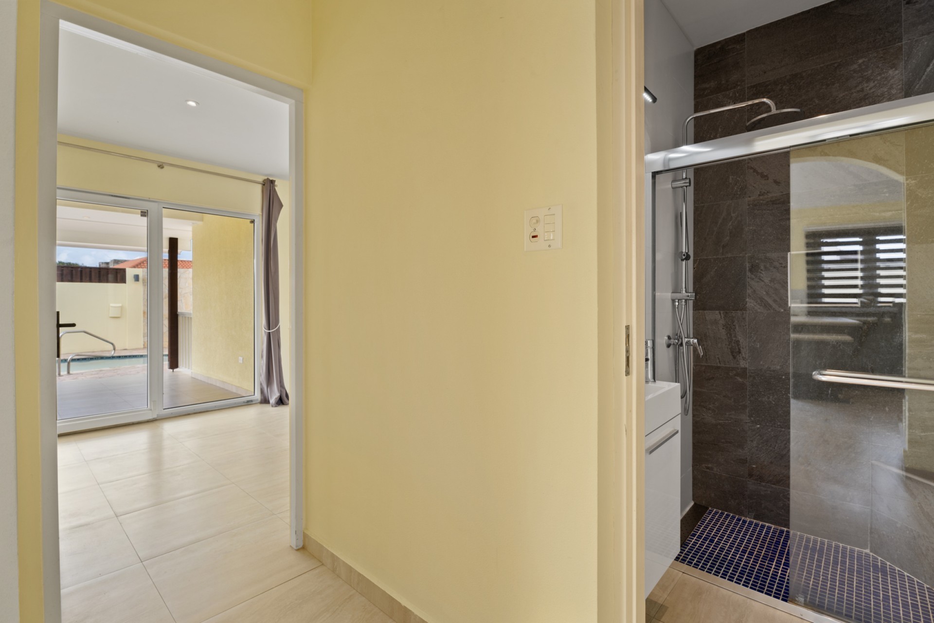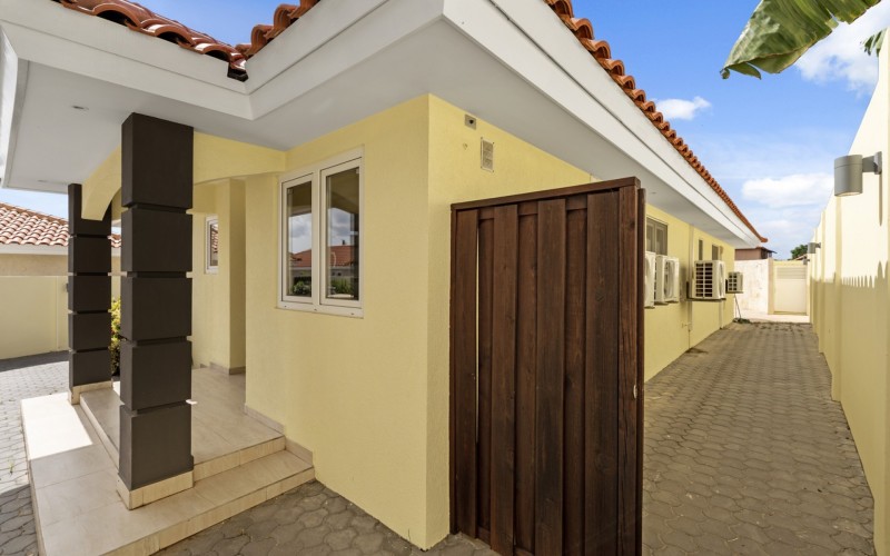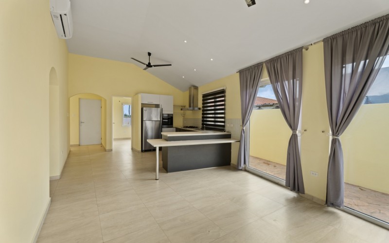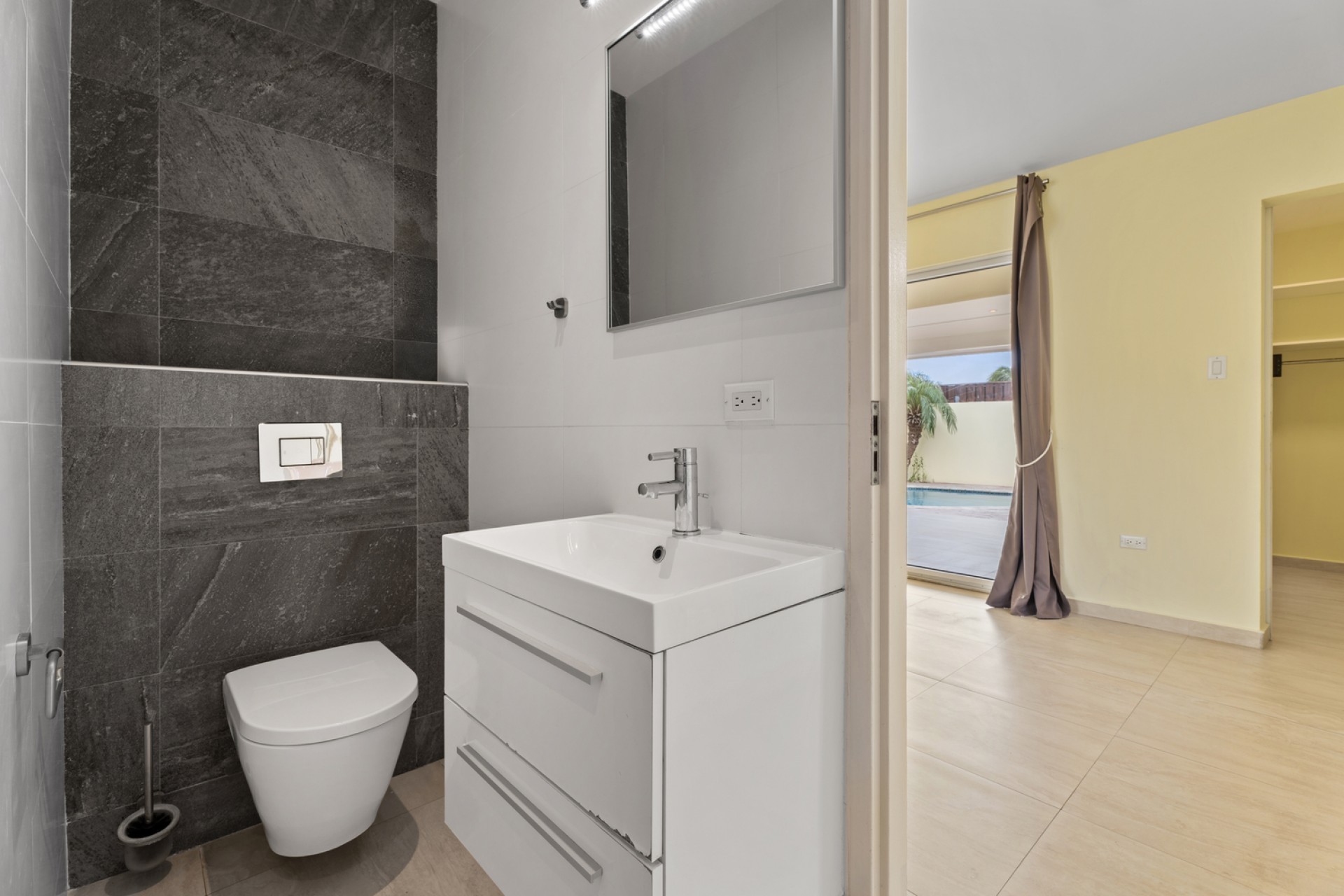 Family Living in Modanza Villa Park – Turn-Key Comfort with Pool Discover the perfect blend of comfort, style, and modern convenience in this move-in-ready family home at Modanza Villa Park. Situated on 326 m² of property land with 132 m² of thoughtfully designed living space, this home enjoys a prime position at the end of a quiet cul-de-sac—offering peace, privacy, and a true family-friendly atmosphere. Step inside and you’re welcomed by a bright, open-concept layout where kitchen, dining, and living areas flow seamlessly together. Large windows fill the home with natural light, while oversized sliding doors invite the outdoors in. From here, your living space extends effortlessly onto the covered porch and backyard oasis. With a sparkling pool, outdoor shower, and shaded lounge areas, every day feels like a private retreat designed for both relaxation and entertaining. This home features 3 bedrooms and 2 bathrooms. The master suite conveniently has its ensuite bathroom, walk-in closet, and direct access to the pool. A second bedroom also boasts a walk-in closet, while the versatile third bedroom is ideal as a guest room, home office, or children’s room. The second bathroom is cleverly arranged with a separate guest toilet and a dedicated shower room, ensuring comfort and convenience for both family and visitors. Practical features add to the home’s appeal: a separate laundry room, hot water throughout, and a fully fenced yard that wraps around the property for added privacy and security. Perfect as a family residence or a turn-key investment, this home in Modanza Villa Park combines modern living with a Caribbean setting in a sought-after neighborhood known for its tranquility, privacy, and family-friendly setting. Ready to move in and start living the island lifestyle? Contact us today to book your private (or virtual) tour. 📞 +297 742 0129 📨